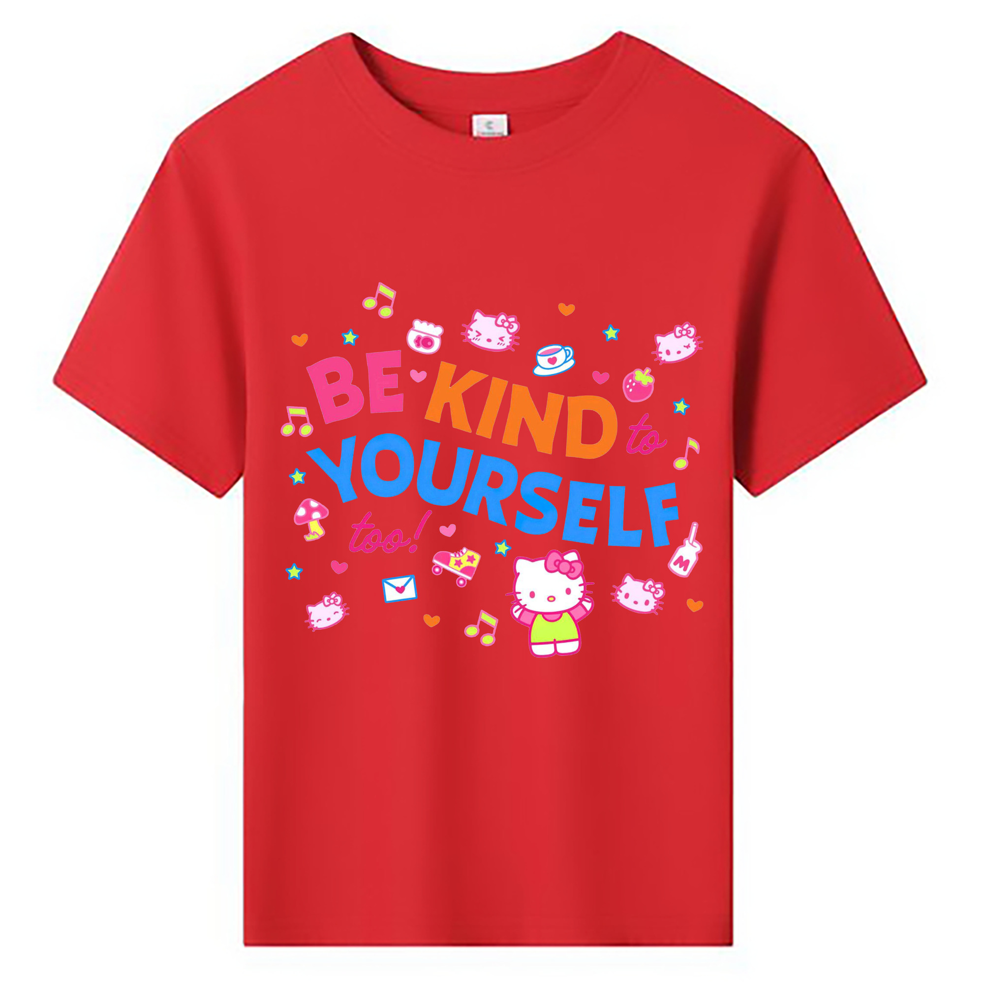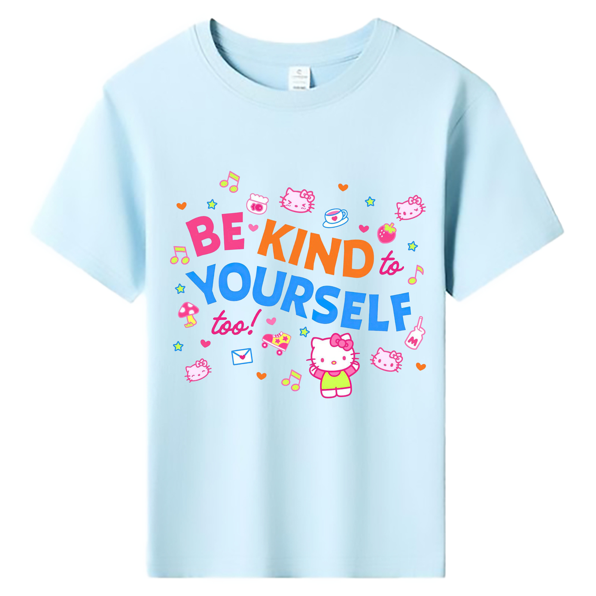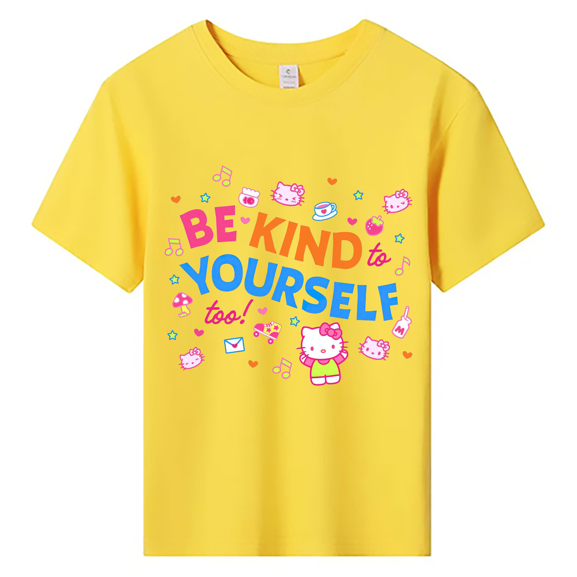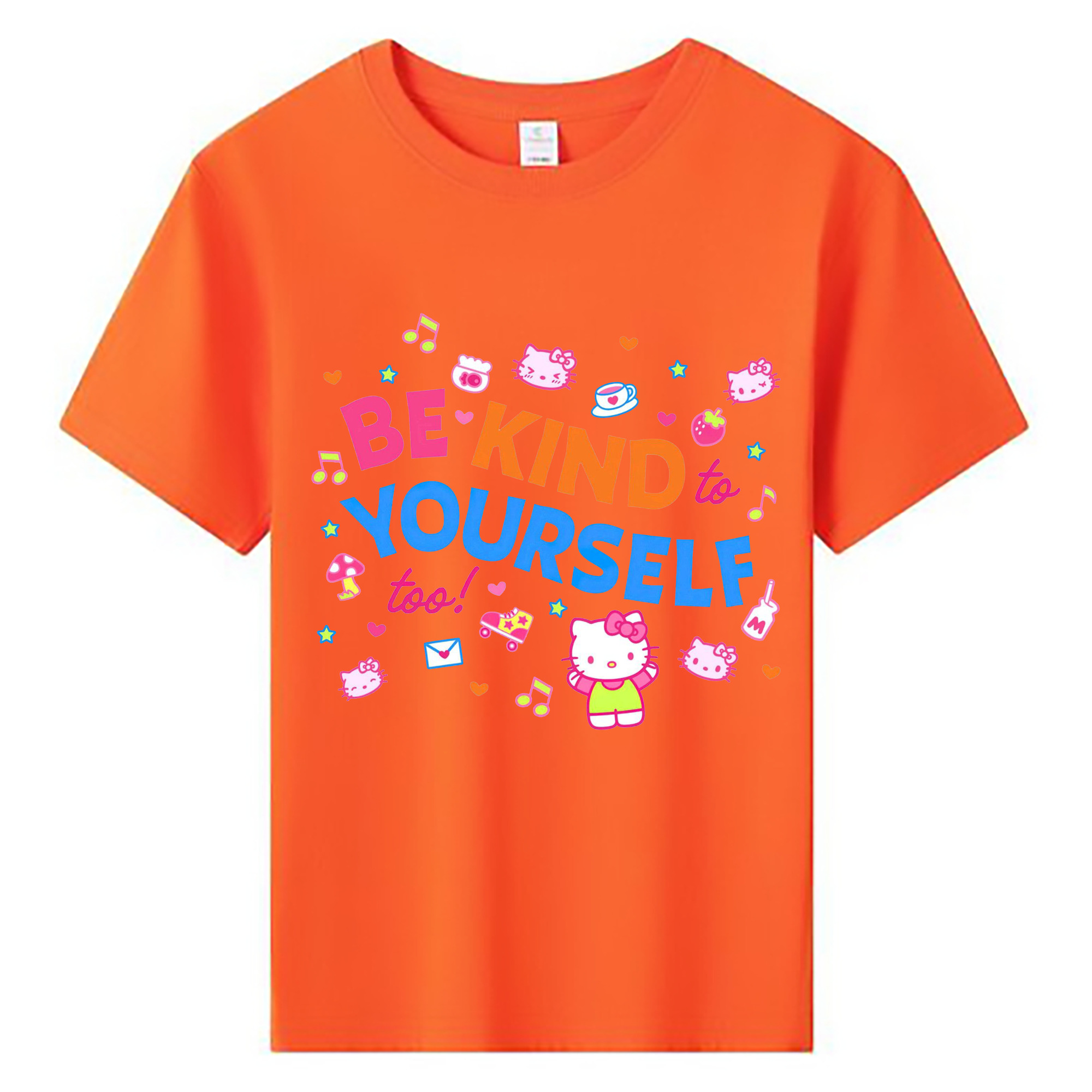 遊び心満載のハローキティ - 綿100% キッズTシャツ ・ フロントプリント ・ 快適 通気性 ・ スポーツ カジュアル 散歩用