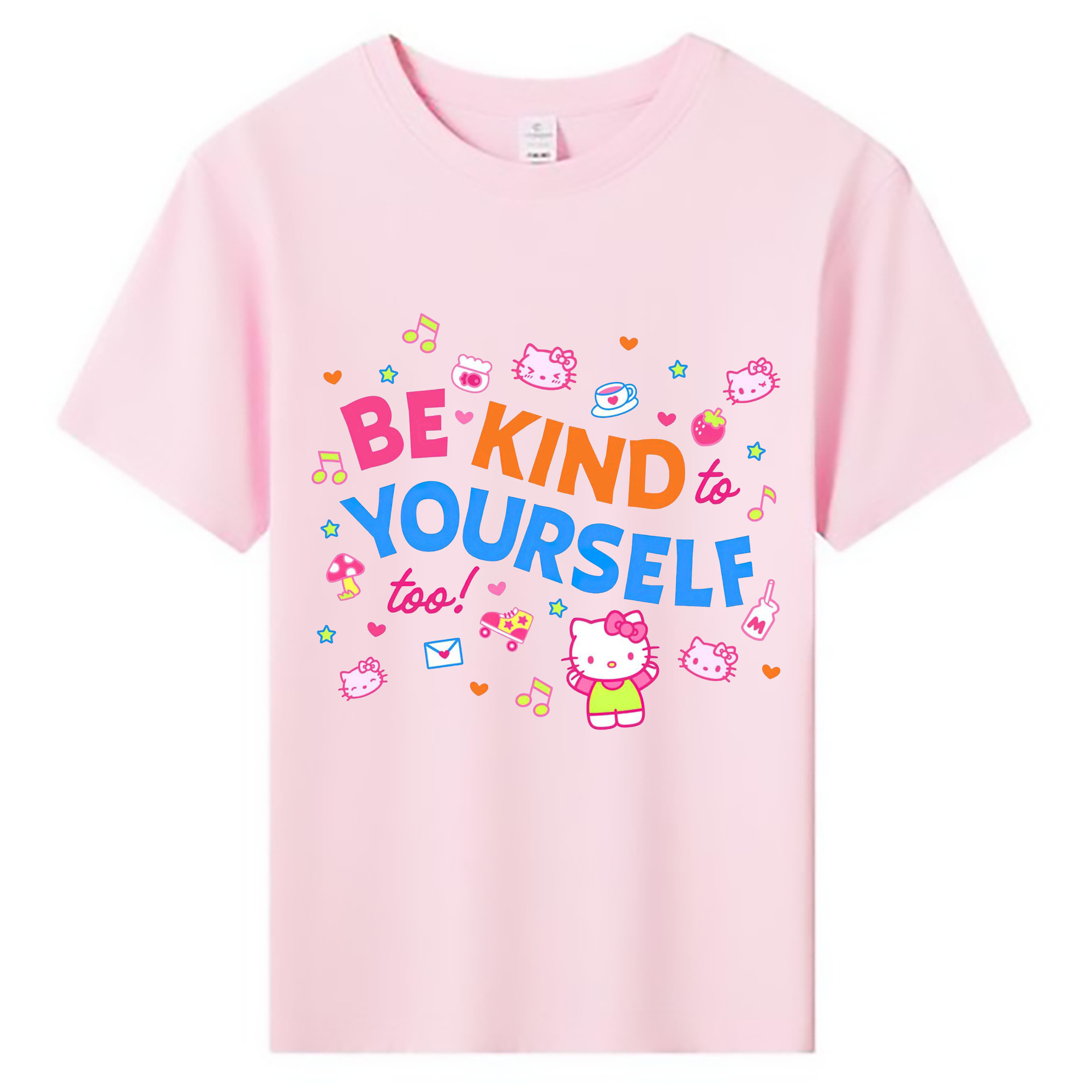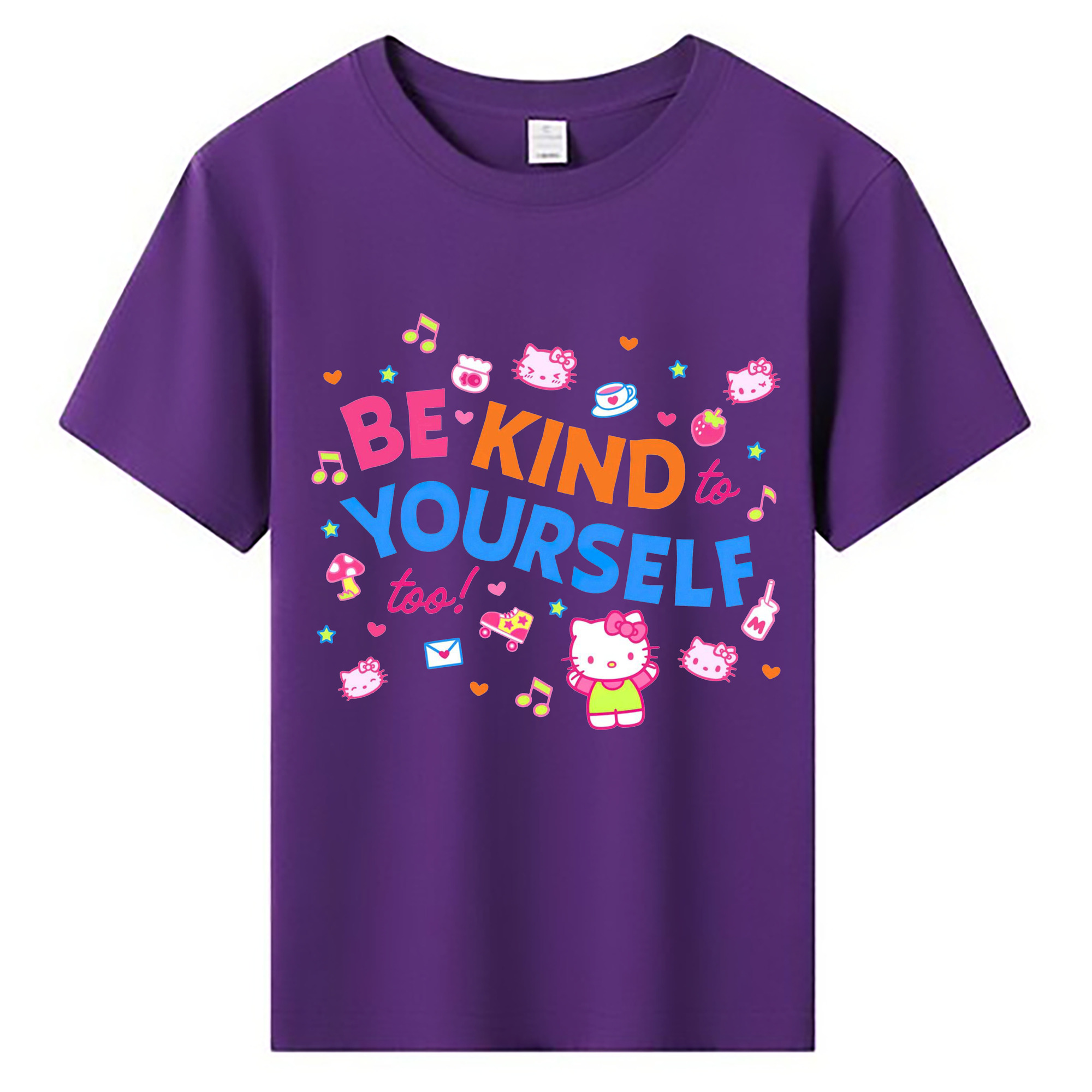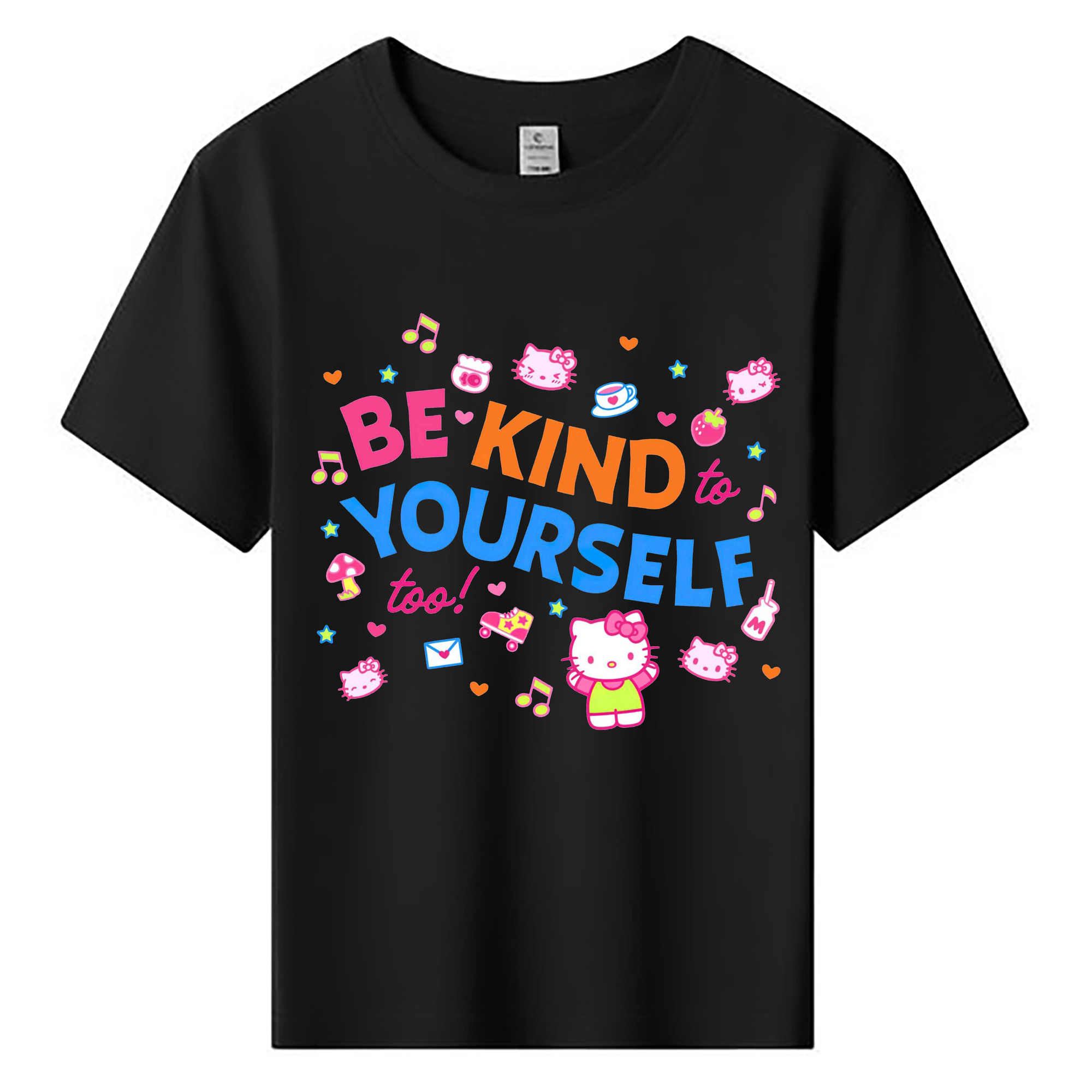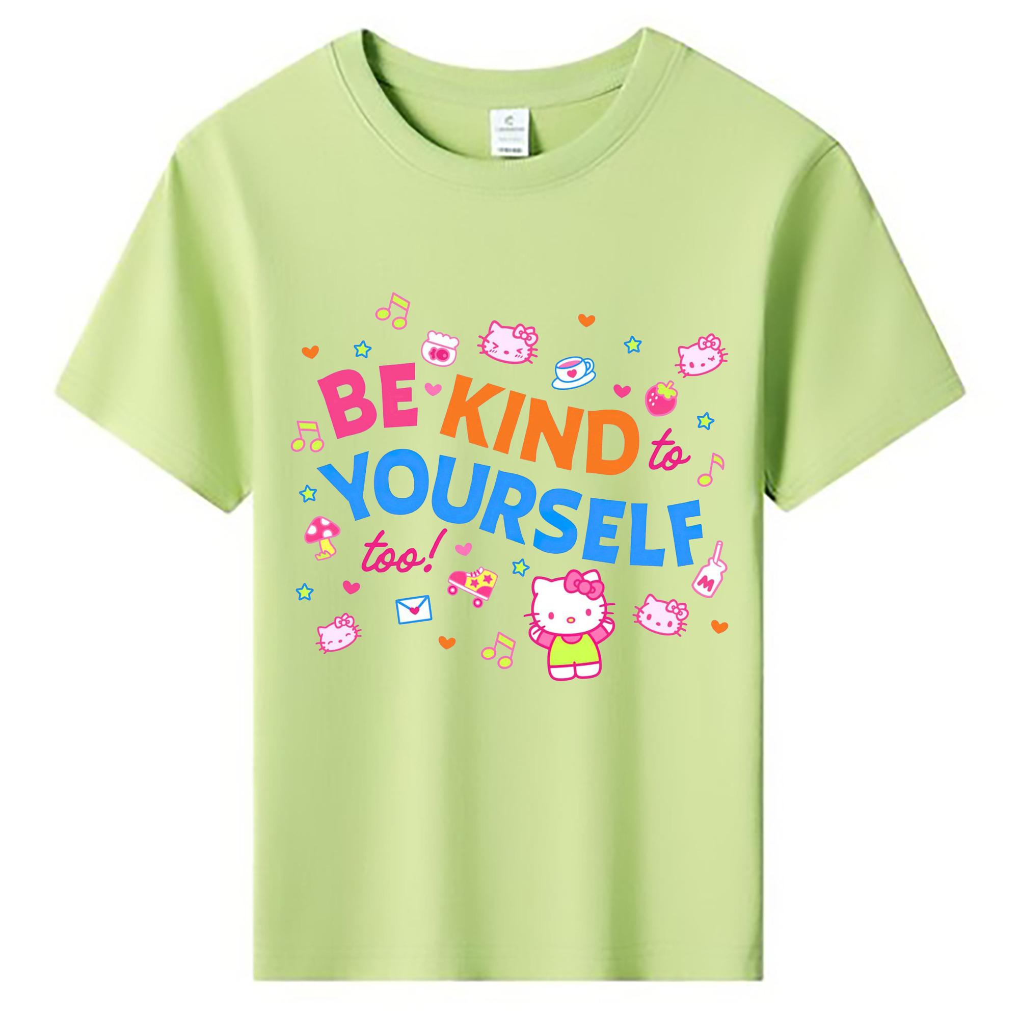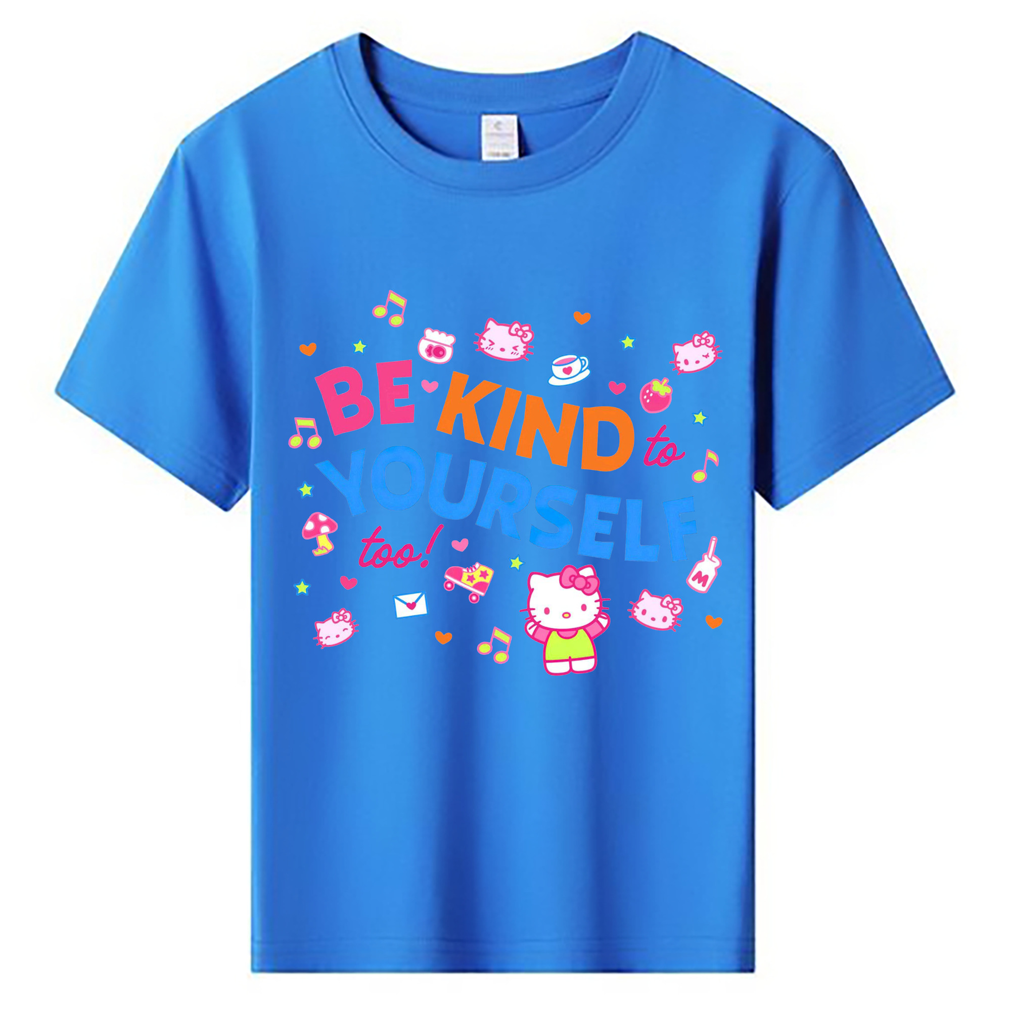 遊び心満載のハローキティ - 綿100% キッズTシャツ ・ フロントプリント ・ 快適 通気性 ・ スポーツ カジュアル 散歩用