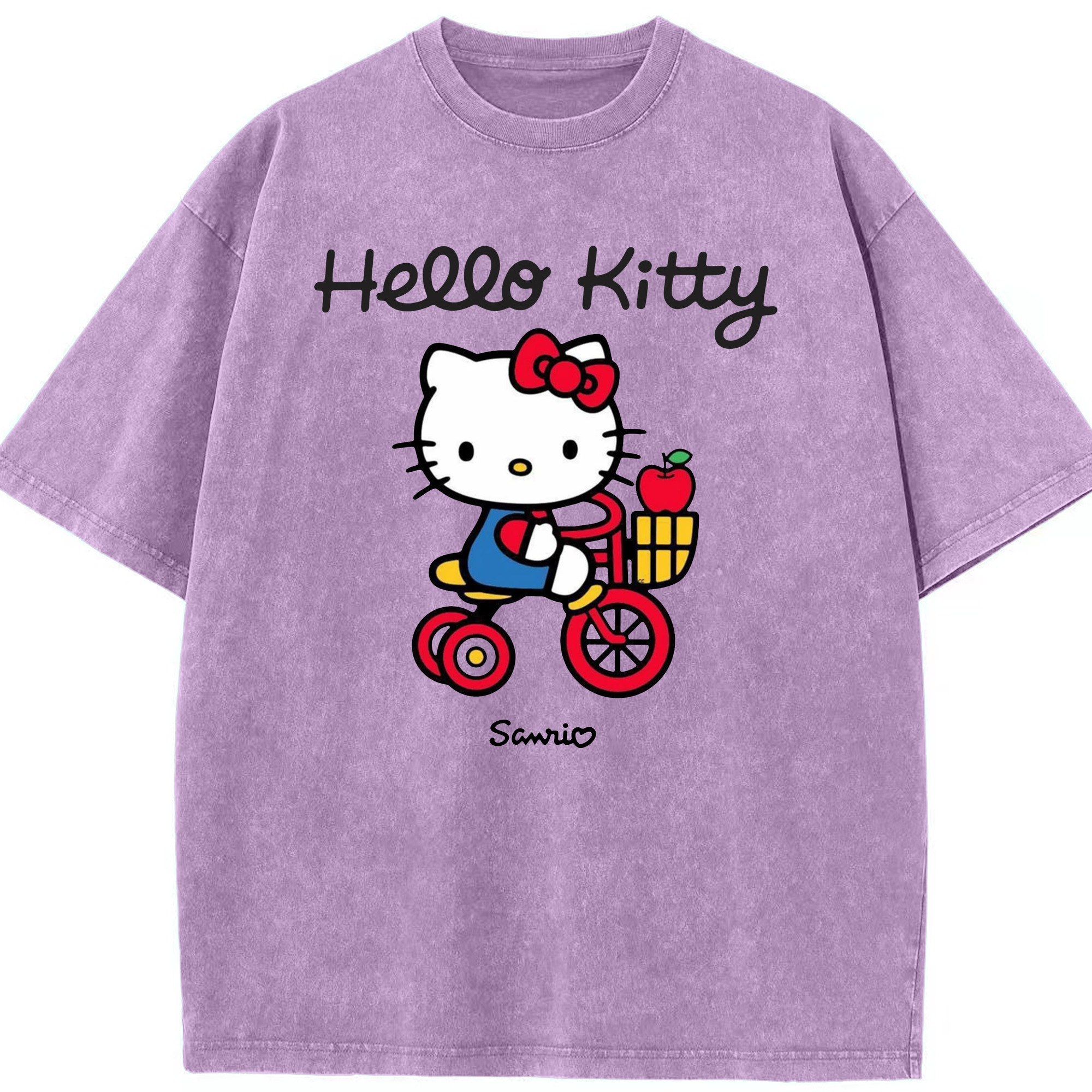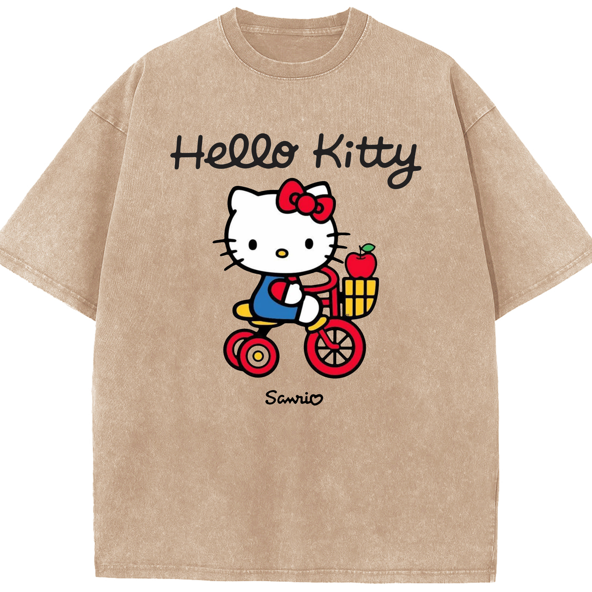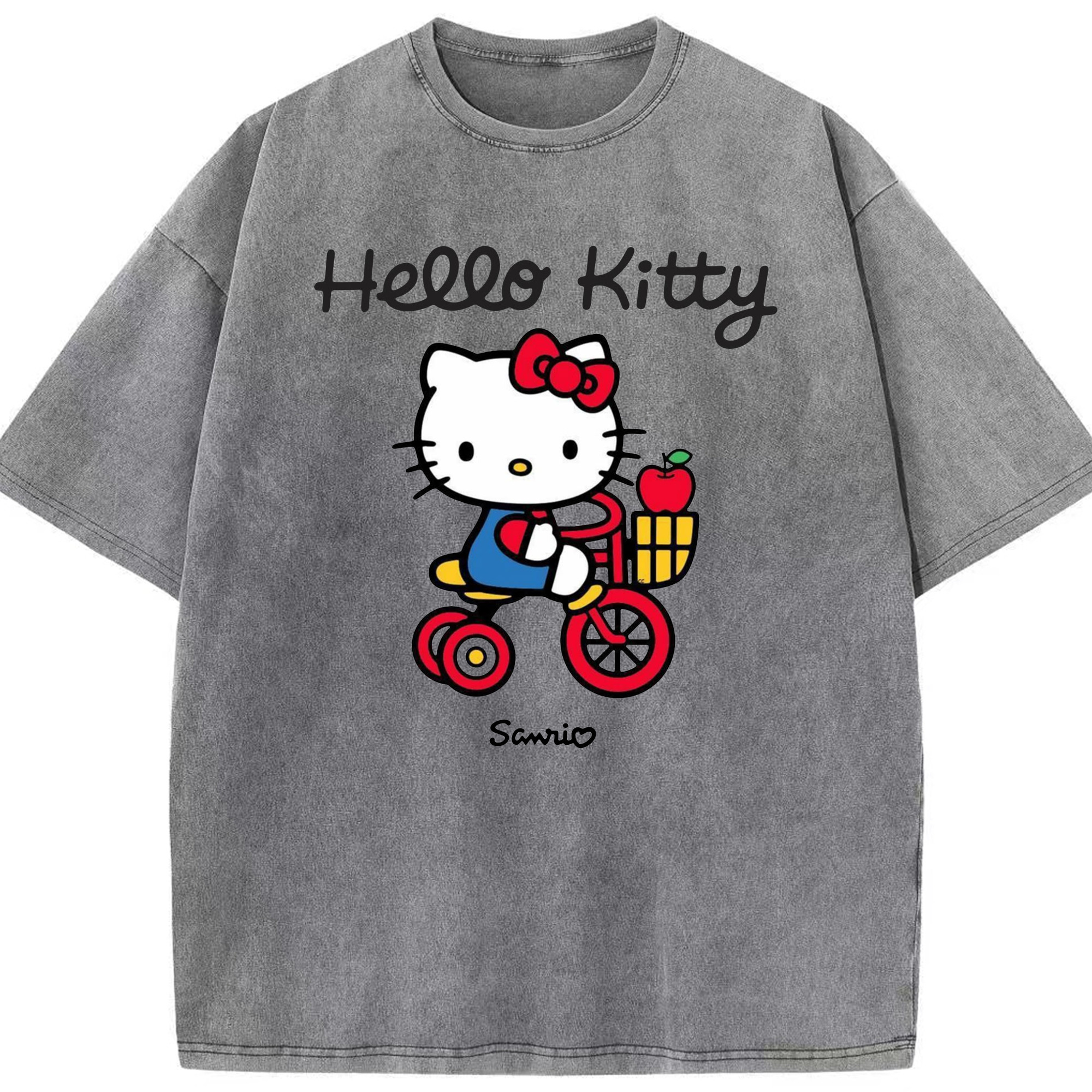 サンリオハローキティ - 綿100% ヴィンテージ風 半袖Tシャツ ・ 背面プリント ・ 柔らか肌触り ・ 通気性 快適 ・ スポーツ カジュアル 外出用