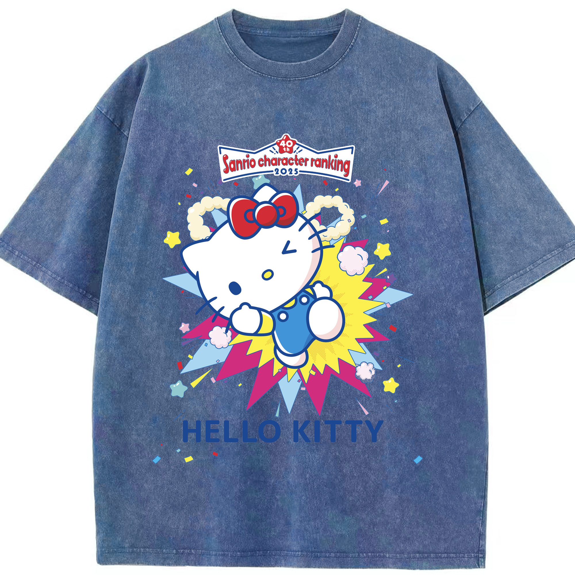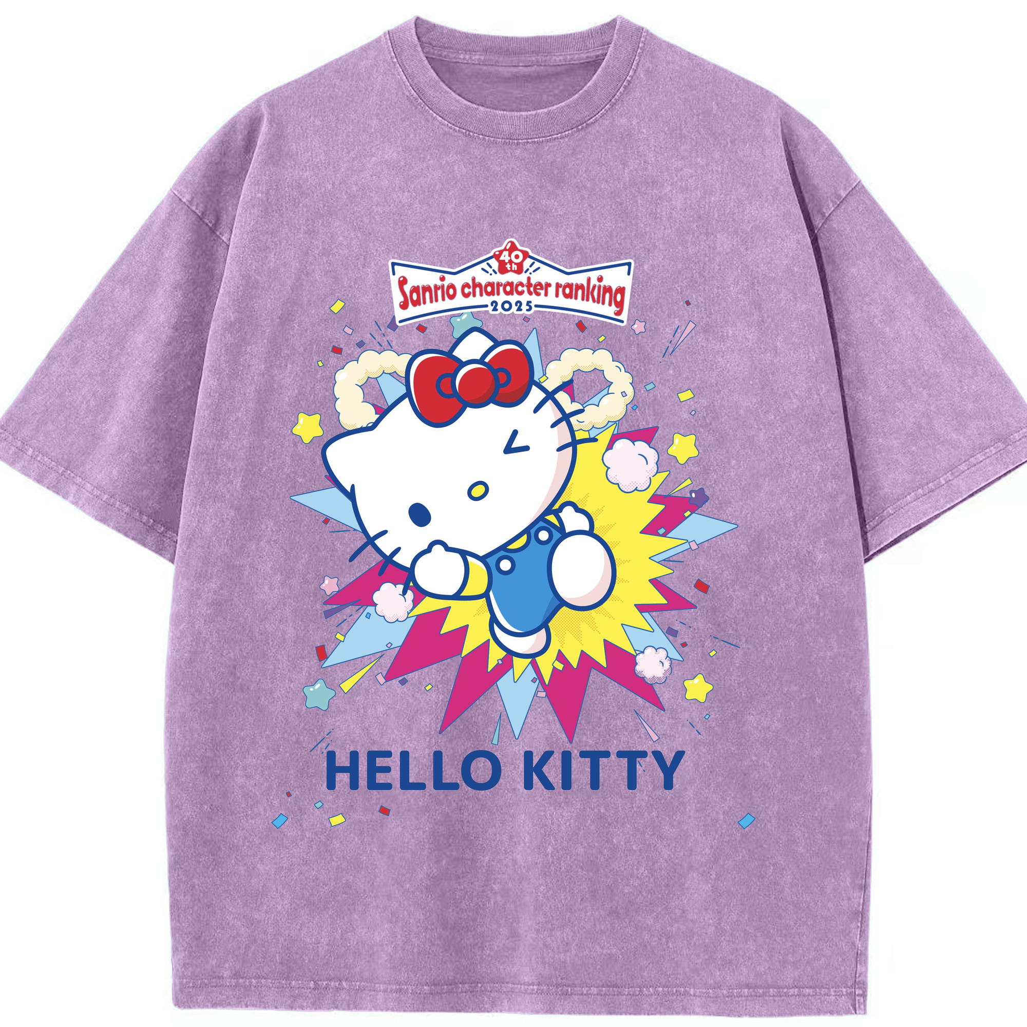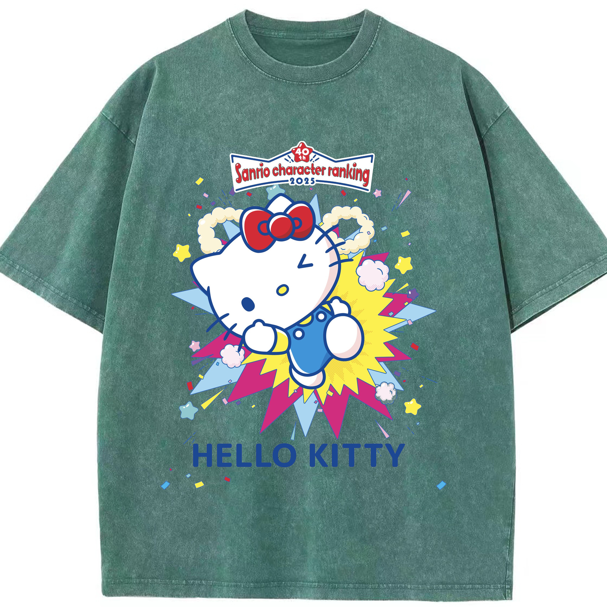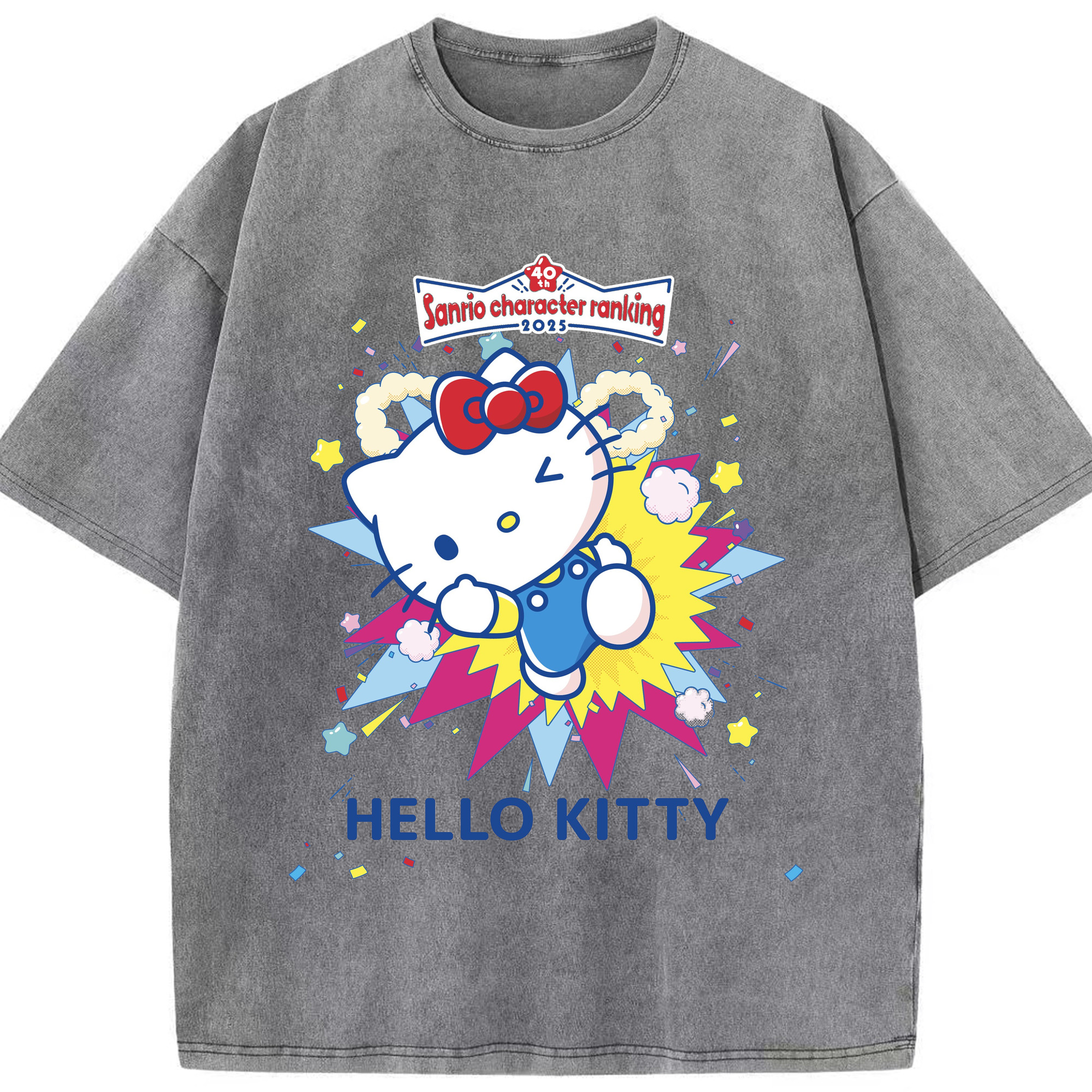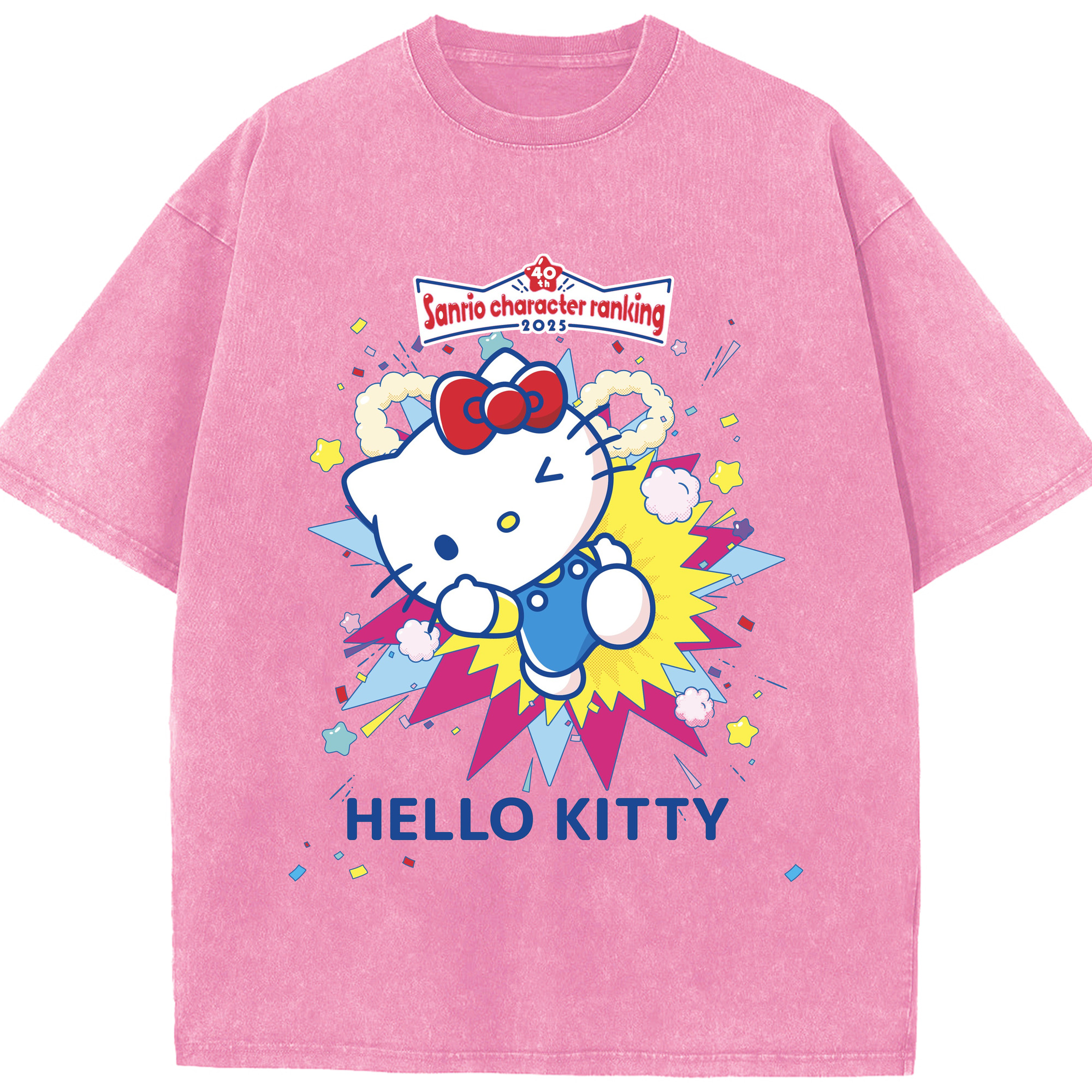 サンリオハローキティ - 綿100% ヴィンテージ風 半袖Tシャツ ・ 背面プリント ・ 柔らか肌触り ・ 通気性 快適 ・ スポーツ カジュアル 外出用