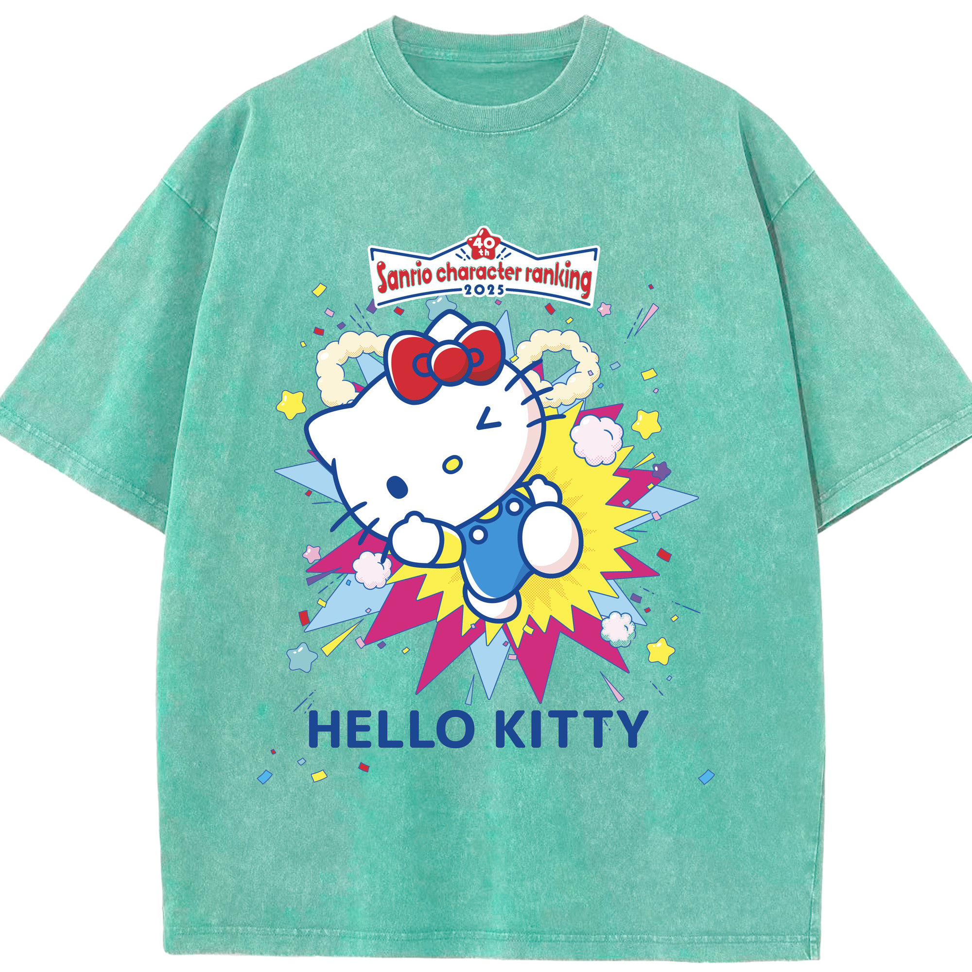 サンリオ - 綿100% ヴィンテージ風 半袖Tシャツ ・ フロントプリント ・ 柔らか肌触り ・ 通気性 快適 ・ スポーツ カジュアル 外出用