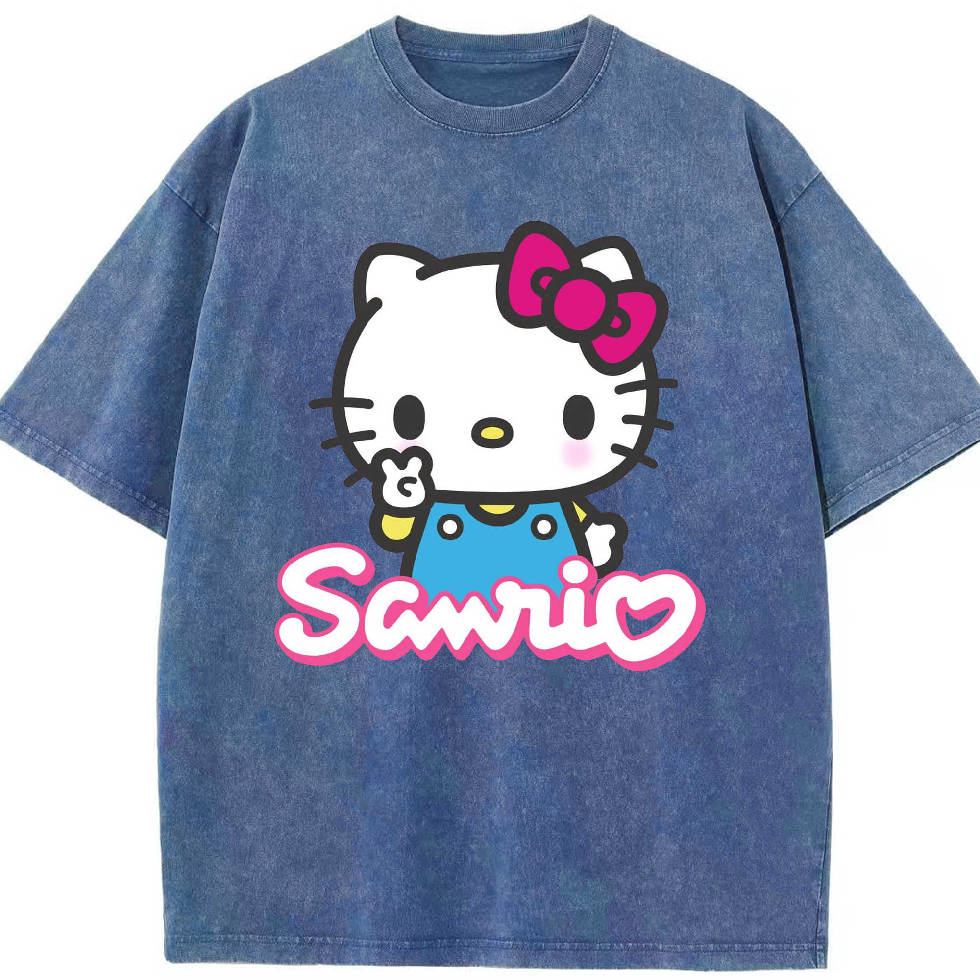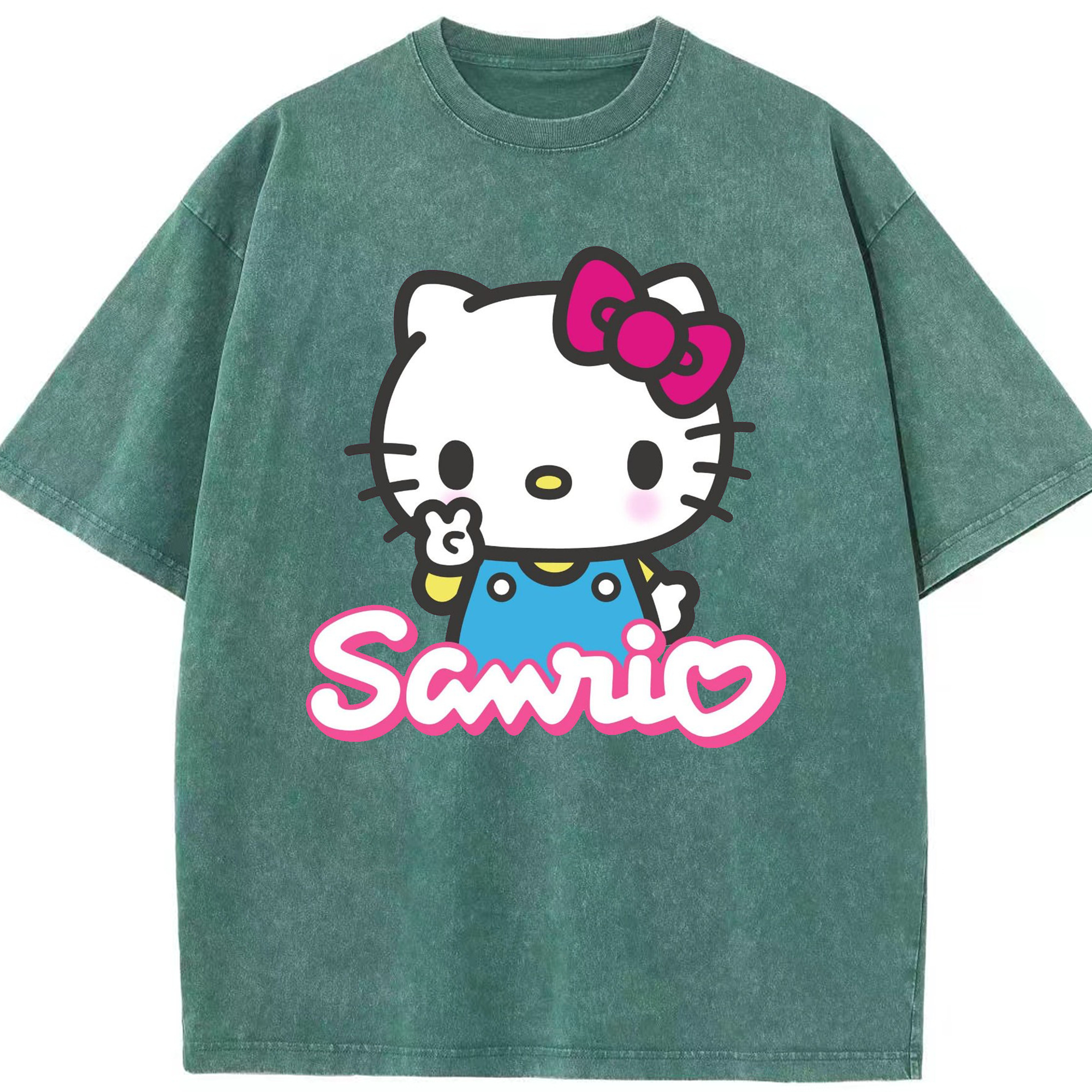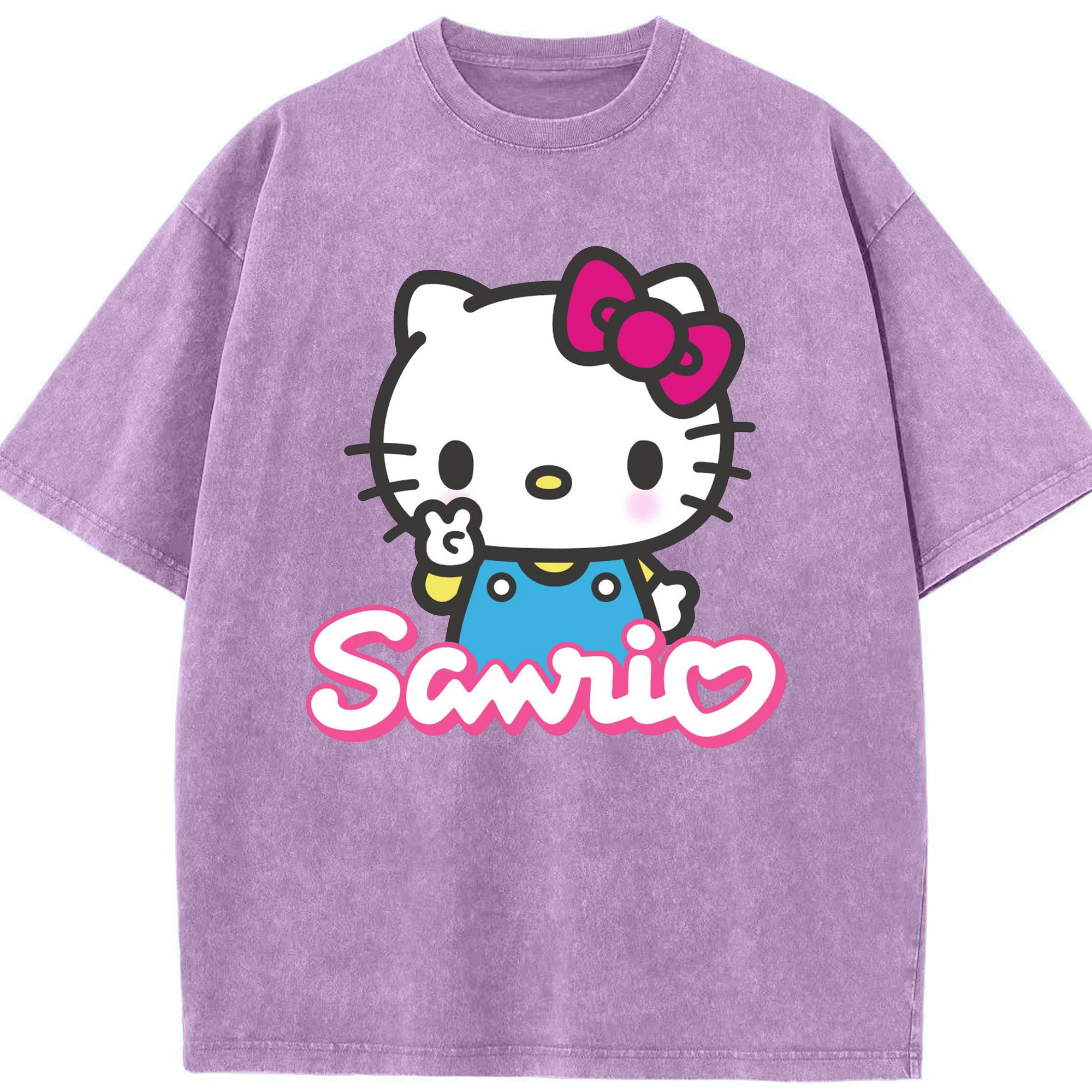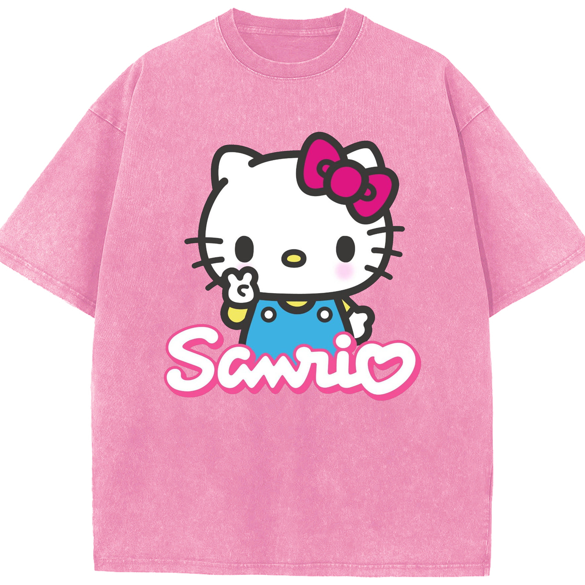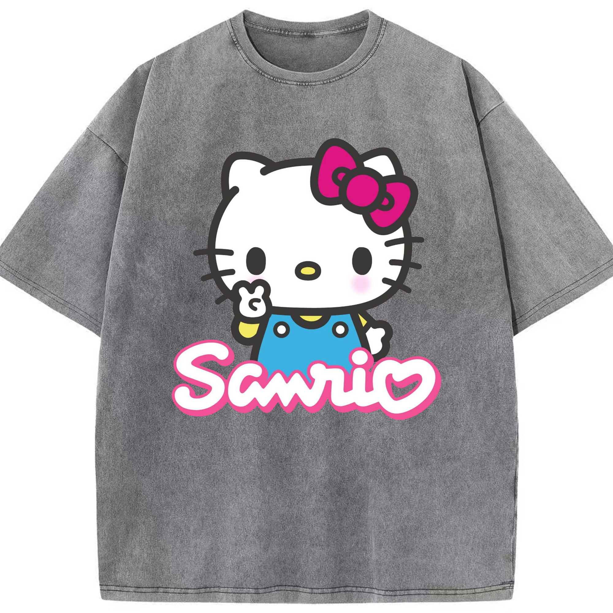 サンリオハローキティ - 綿100% ヴィンテージ風 半袖Tシャツ ・ 背面プリント ・ 柔らか肌触り ・ 通気性 快適 ・ スポーツ カジュアル 外出用