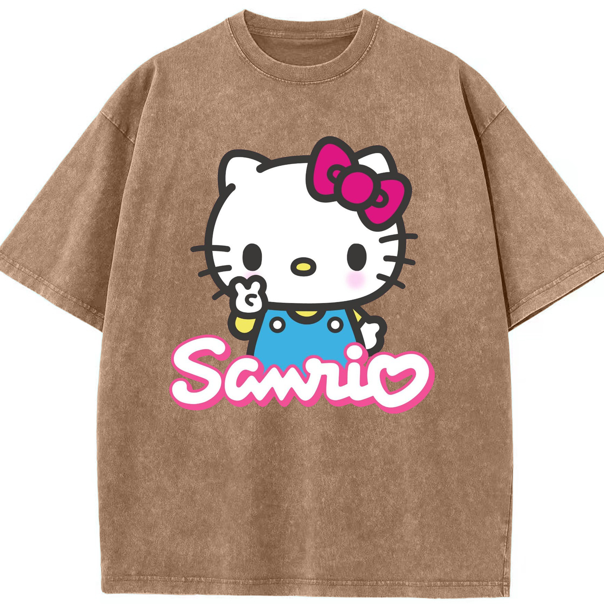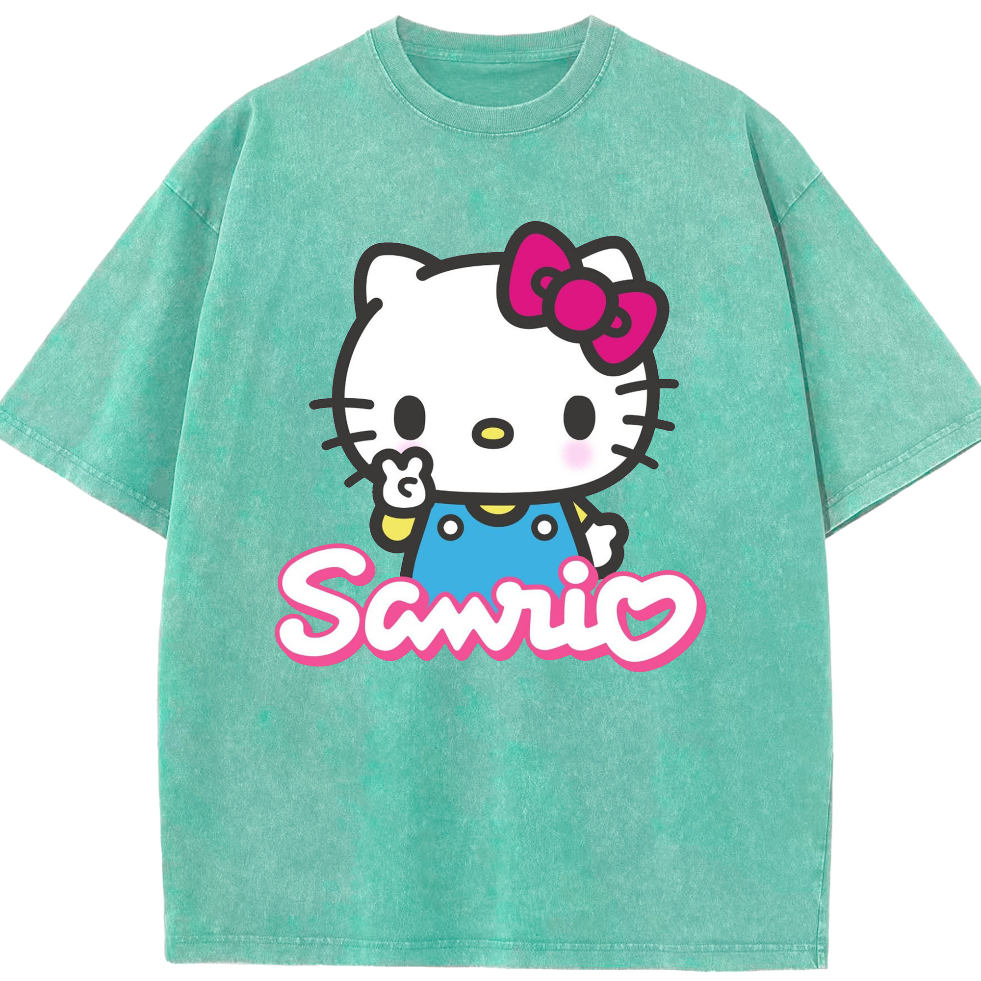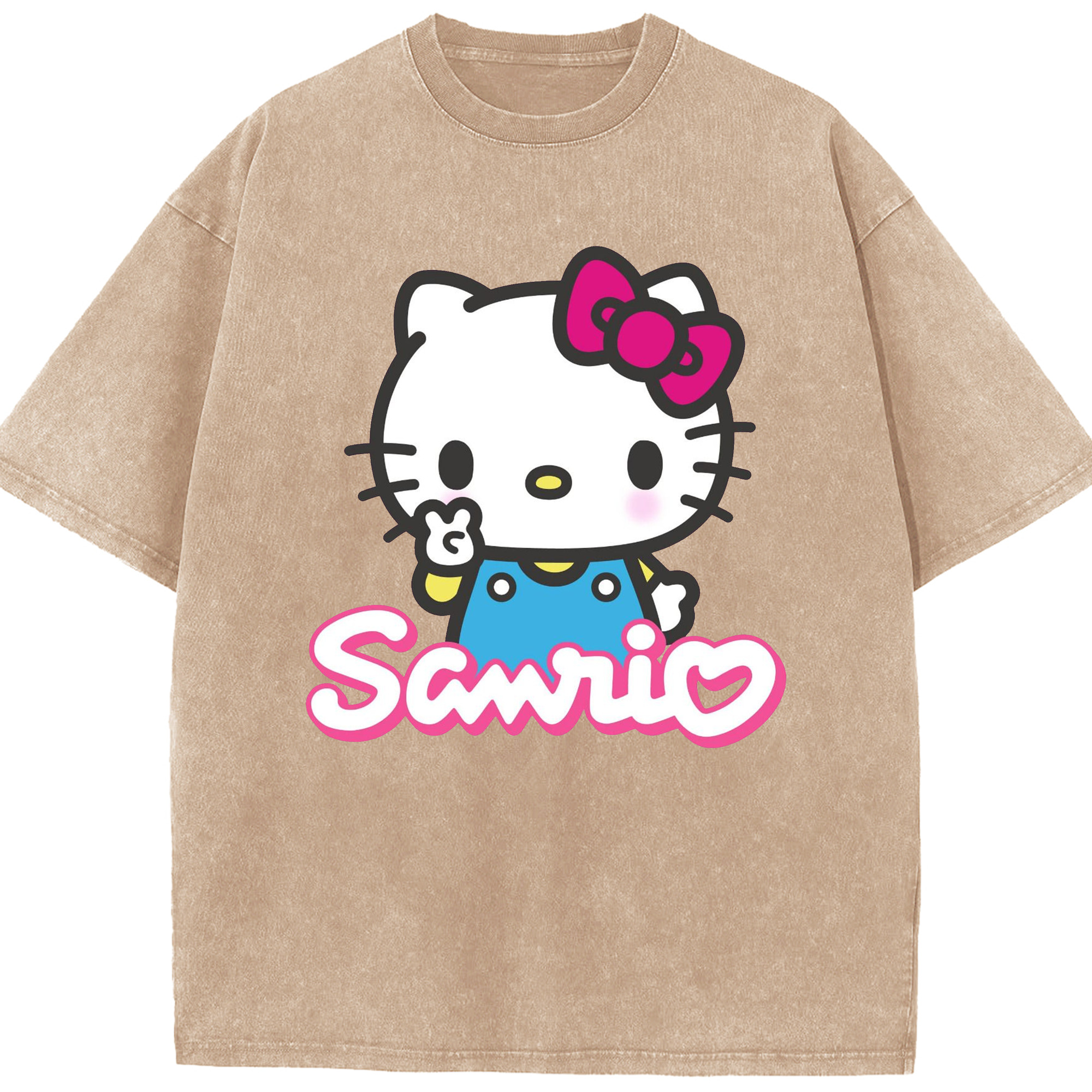 サンリオファミリー 2025年新作 - 綿100% ヴィンテージ風 半袖Tシャツ ・ フロントプリント ・ 柔らか肌触り ・ 通気性 快適 ・ スポーツ カジュアル 外出用