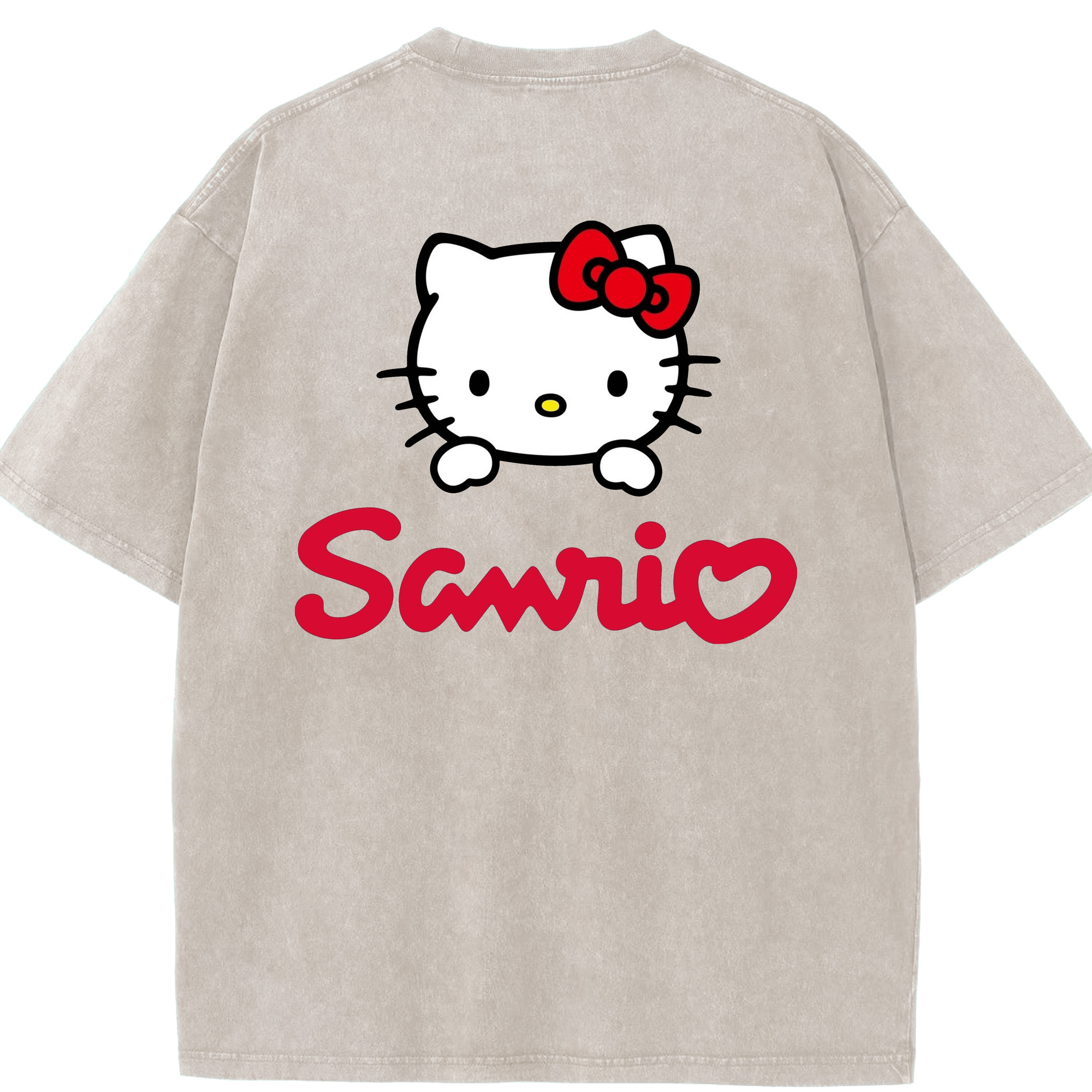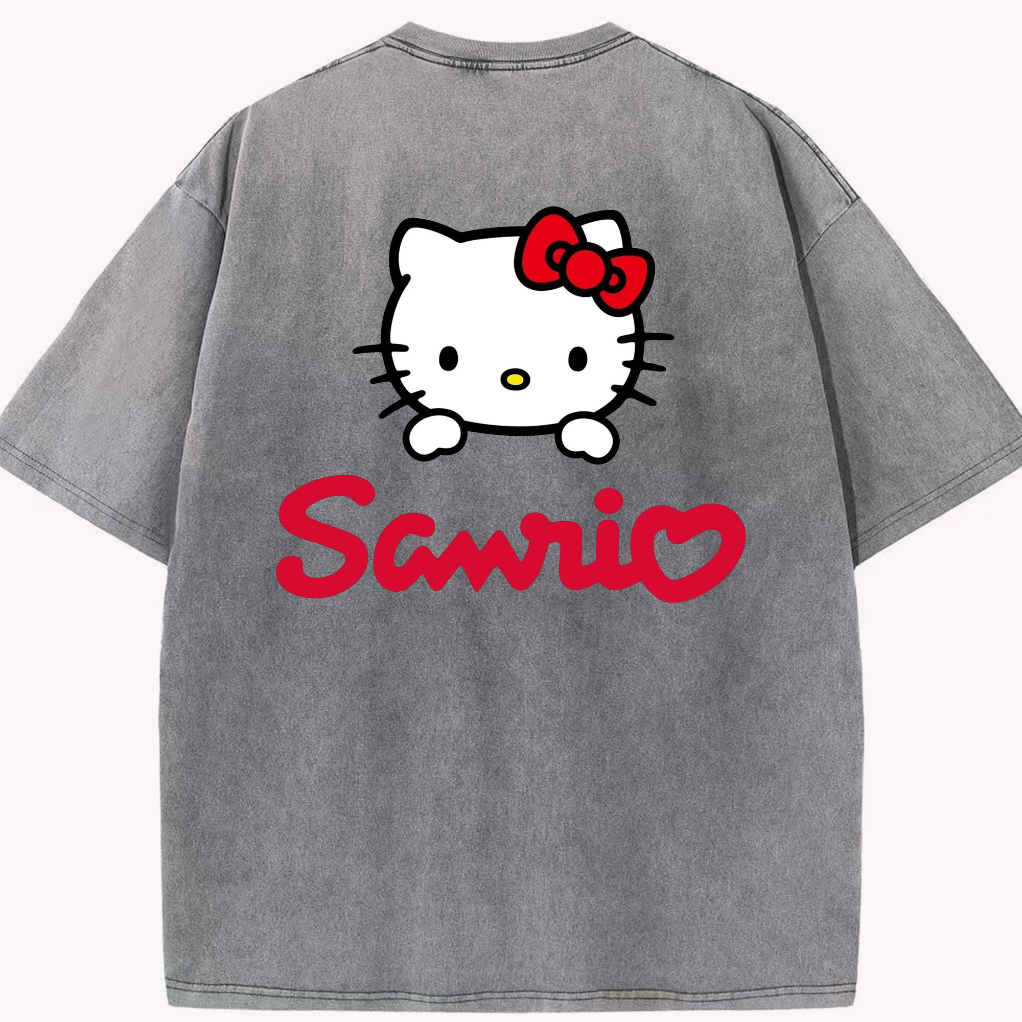 サンリオ - 綿100% ヴィンテージ風 半袖Tシャツ ・ 背面プリント ・ 柔らか肌触り ・ 通気性 快適 ・ スポーツ カジュアル 外出用