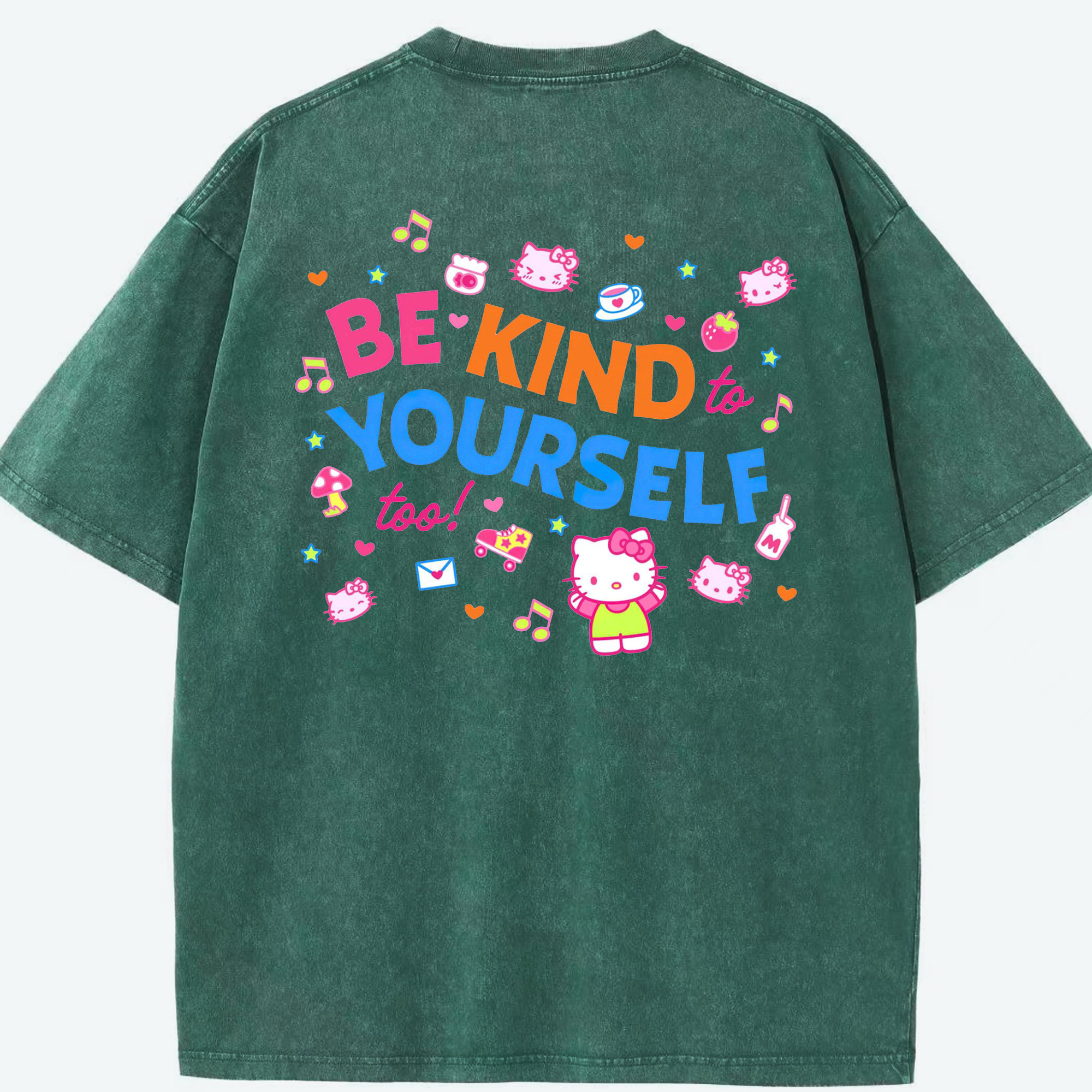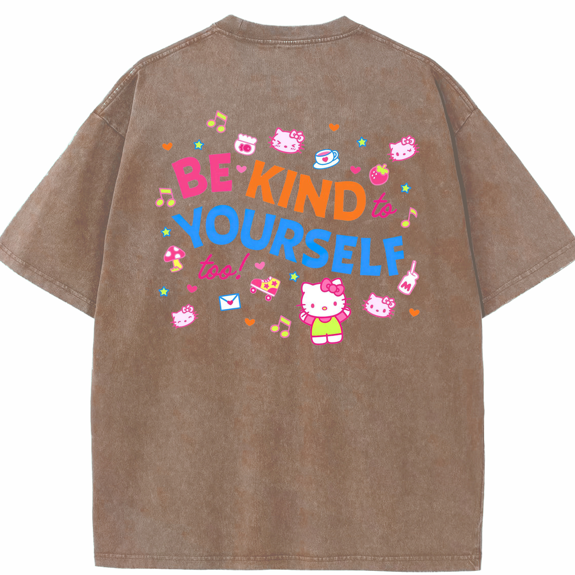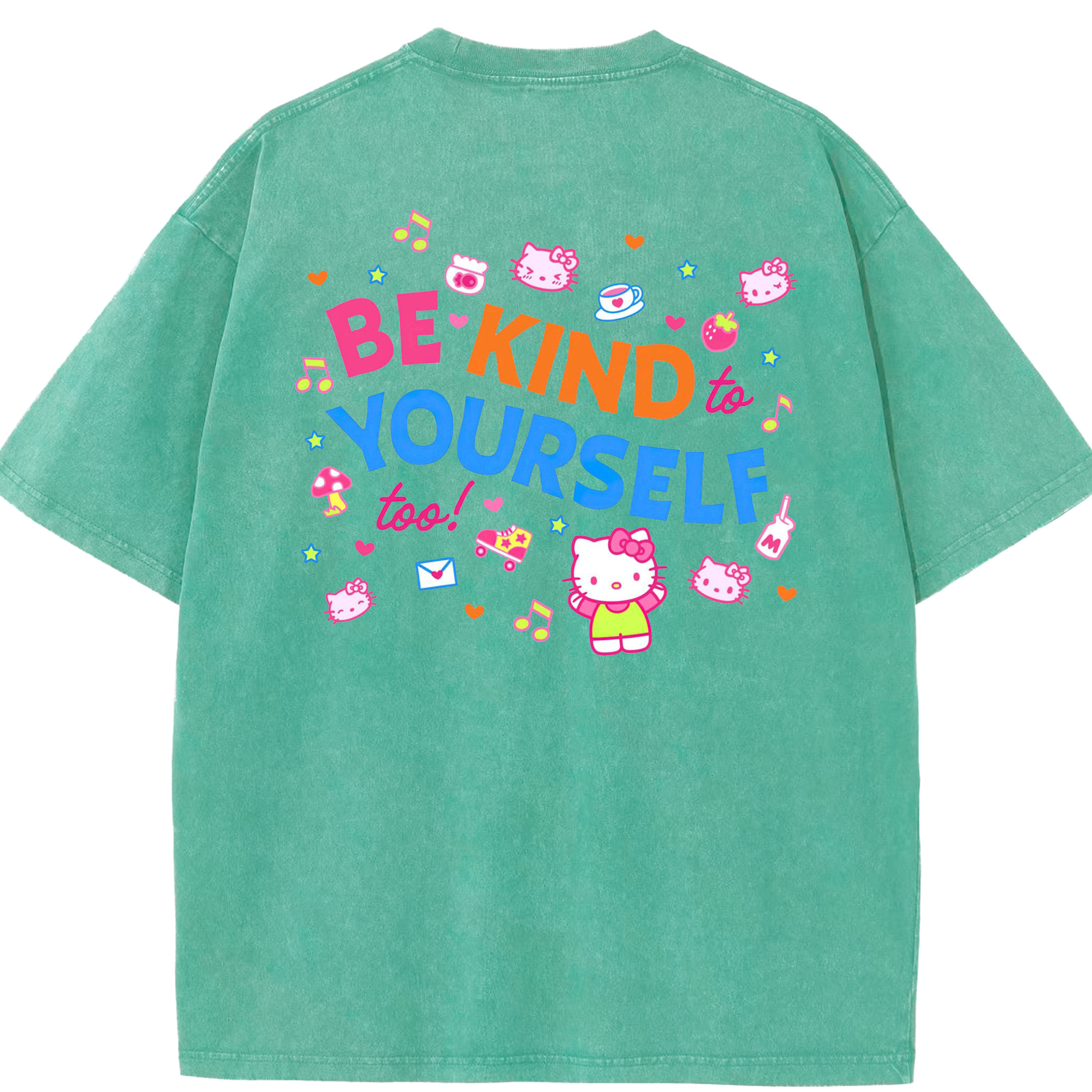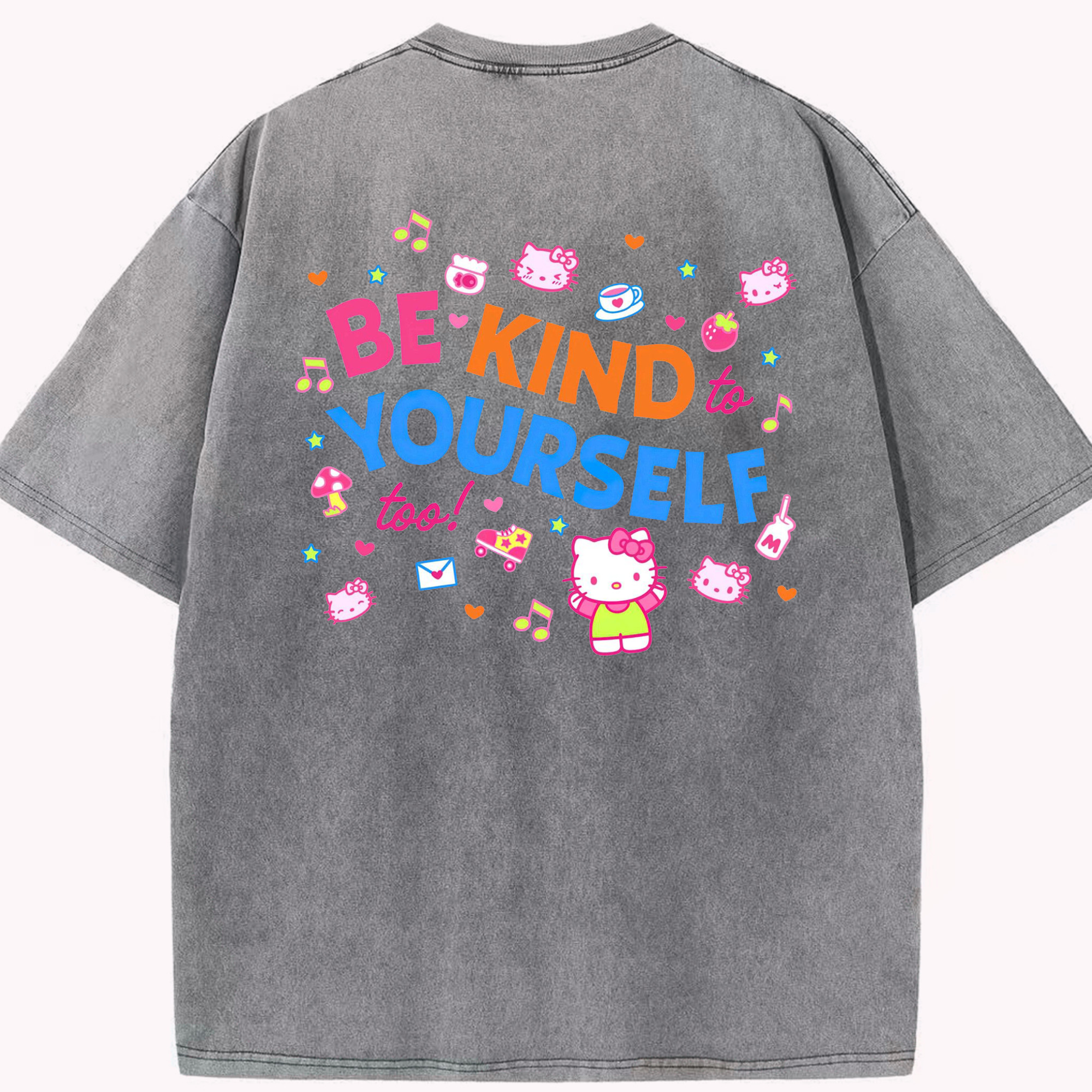 環境にやさしいハローキティ - 綿100% ヴィンテージ風 半袖Tシャツ ・ 背面プリント ・ 柔らか肌触り ・ 通気性 快適 ・ スポーツ カジュアル 外出用