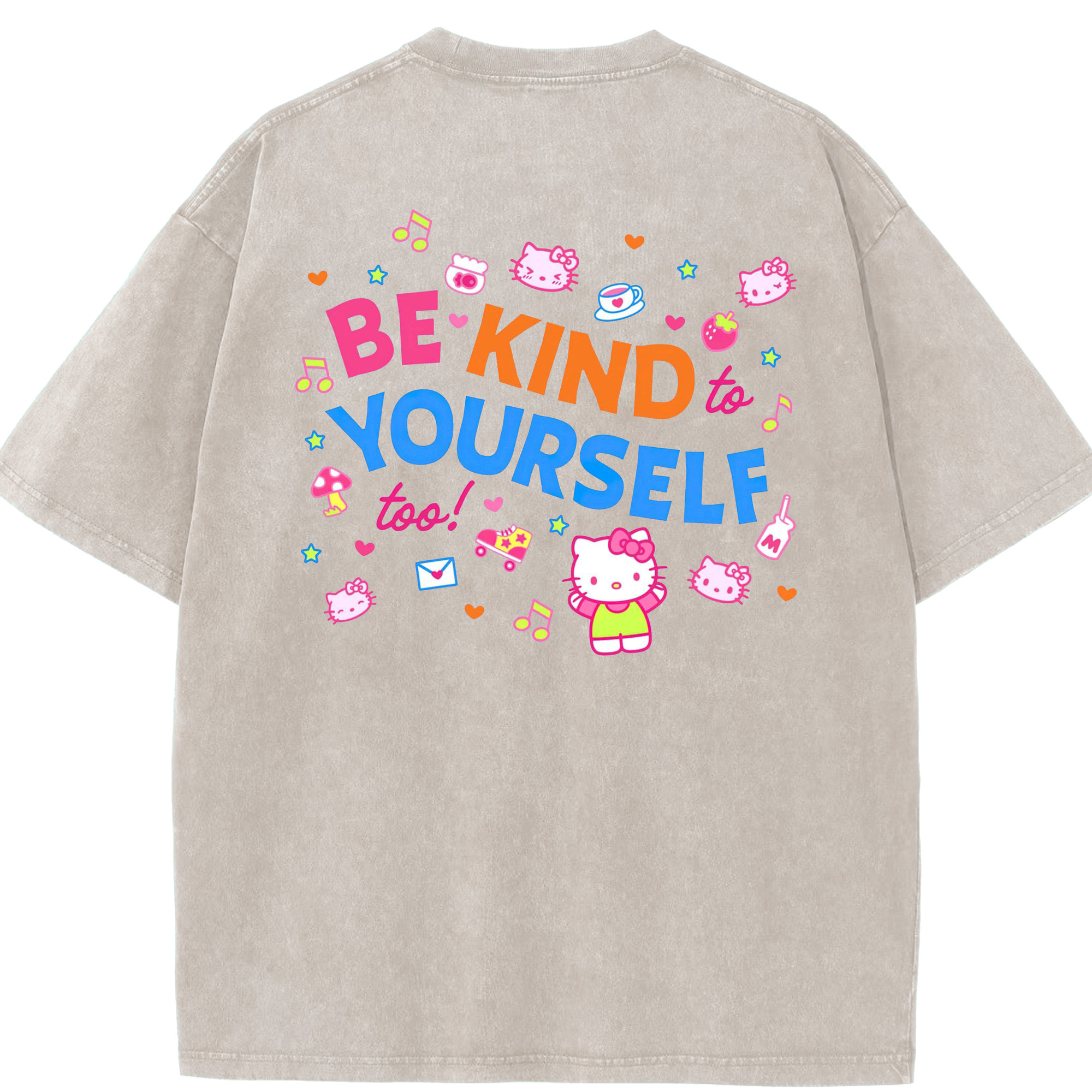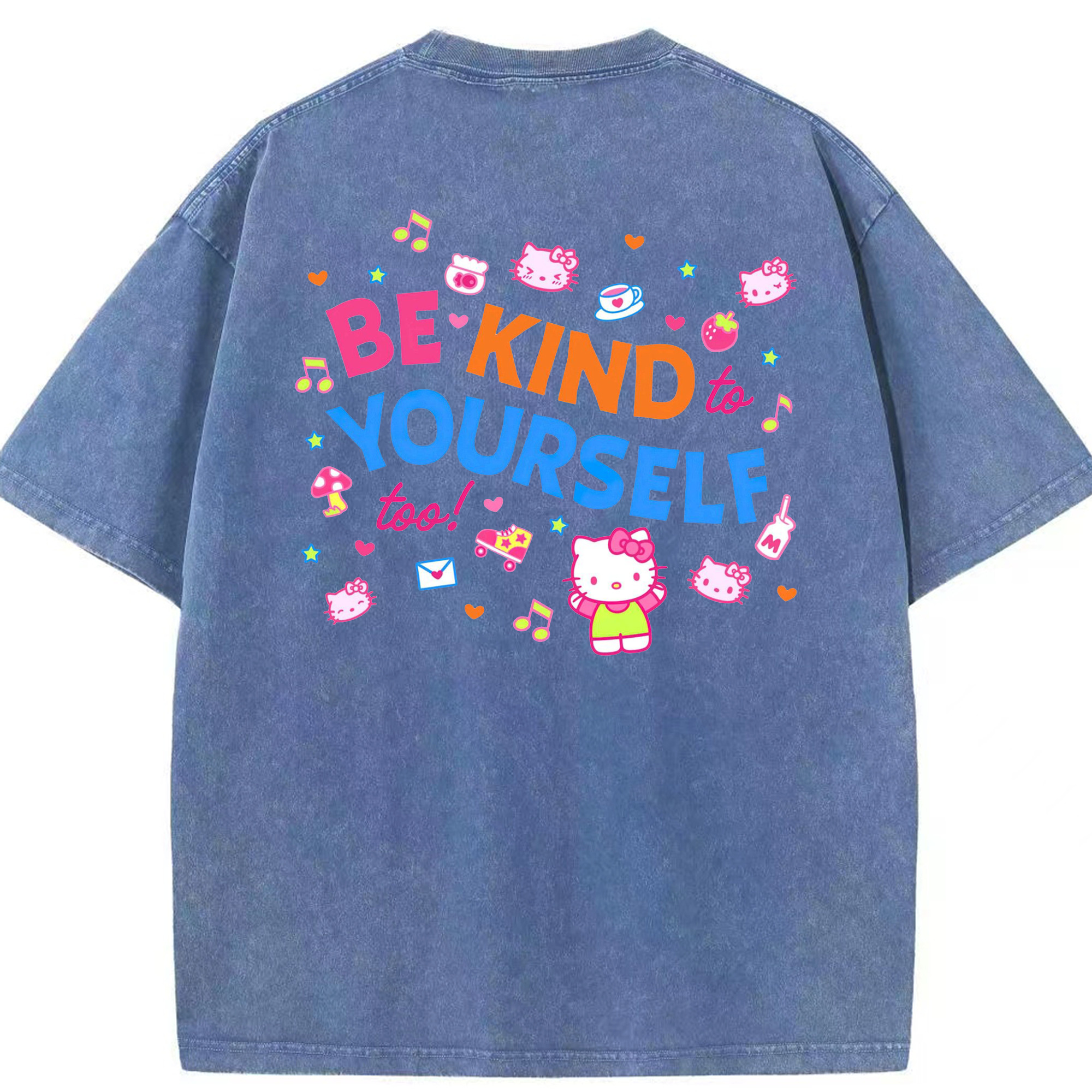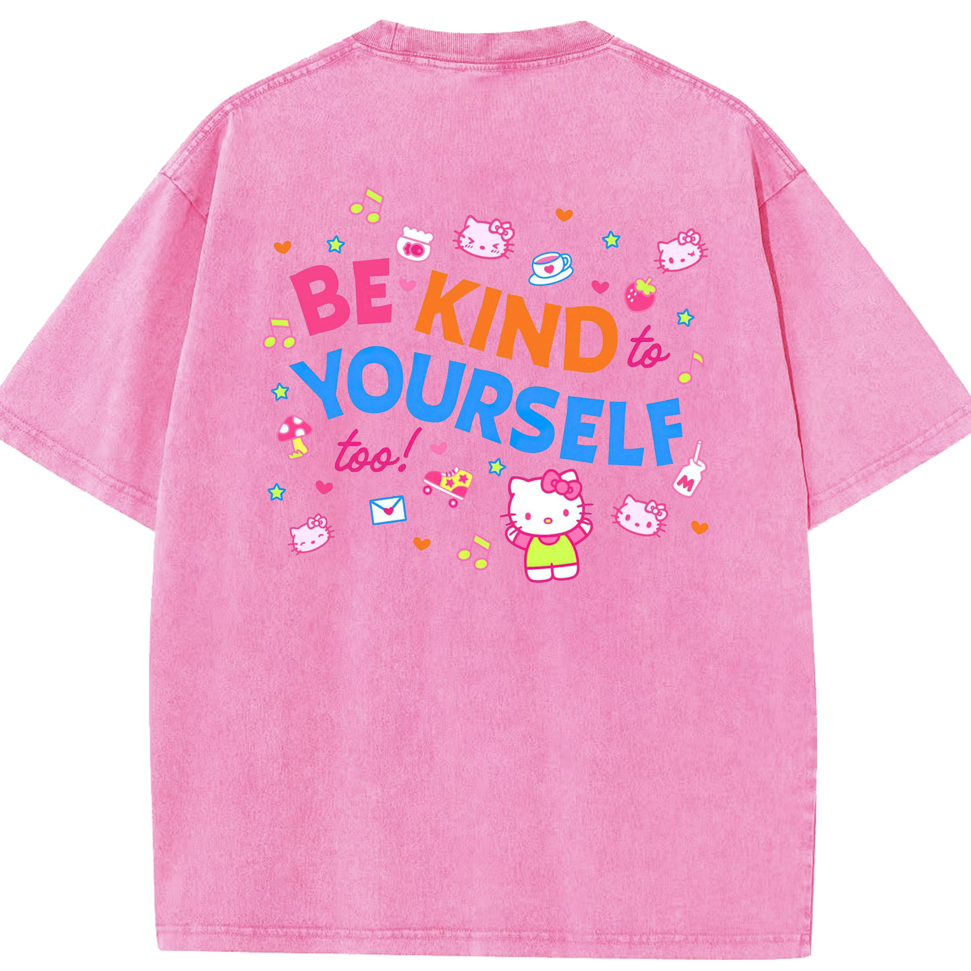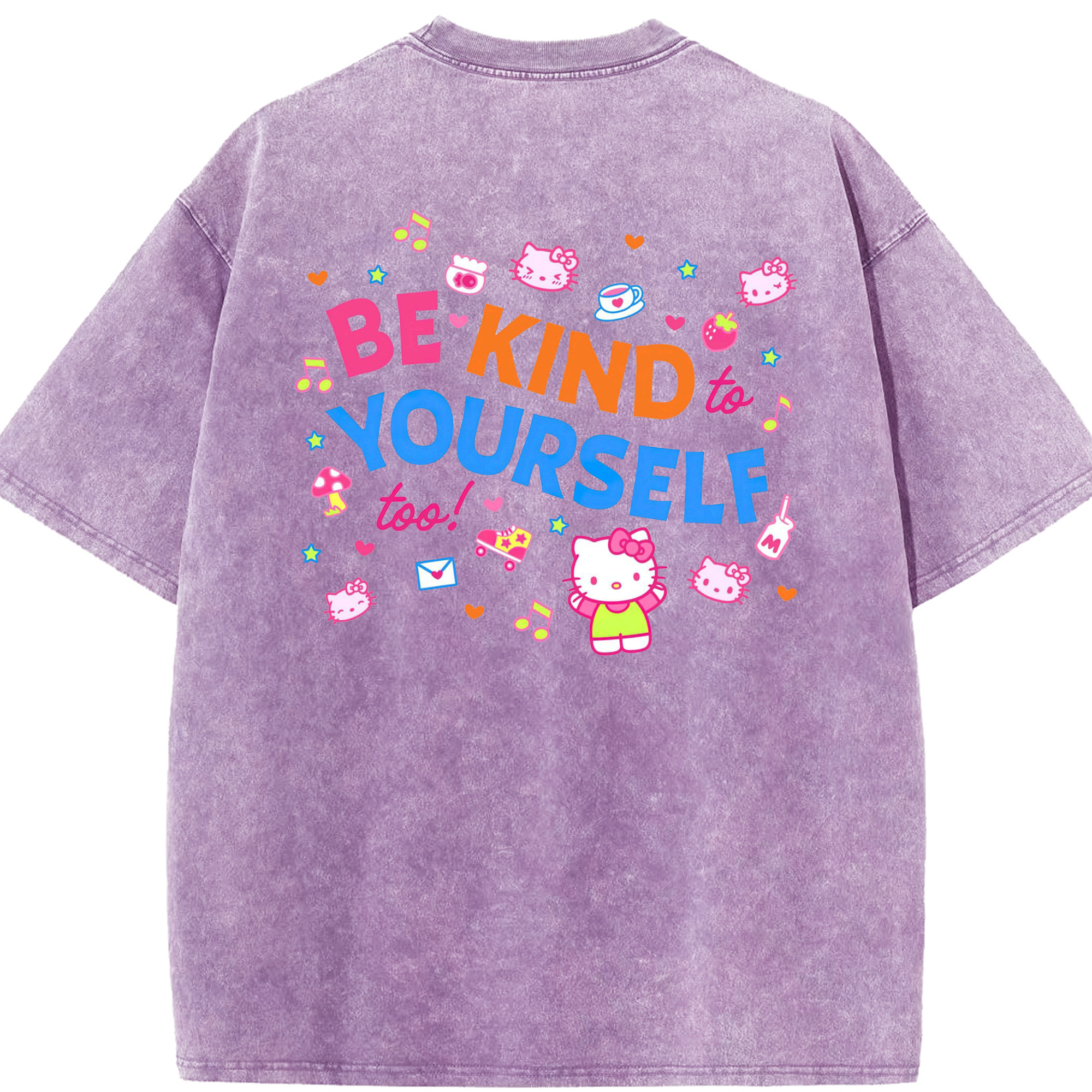 とびきりキュートなハローキティ - 綿100% ヴィンテージ風 半袖Tシャツ ・ 背面プリント ・ 柔らか肌触り ・ 通気性 快適 ・ スポーツ カジュアル 外出用