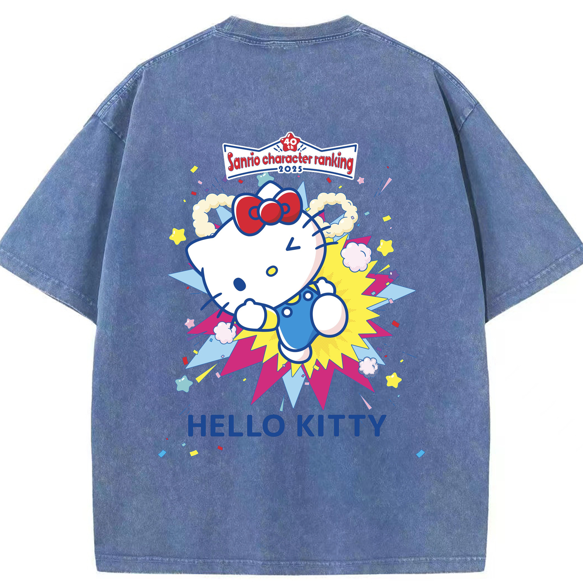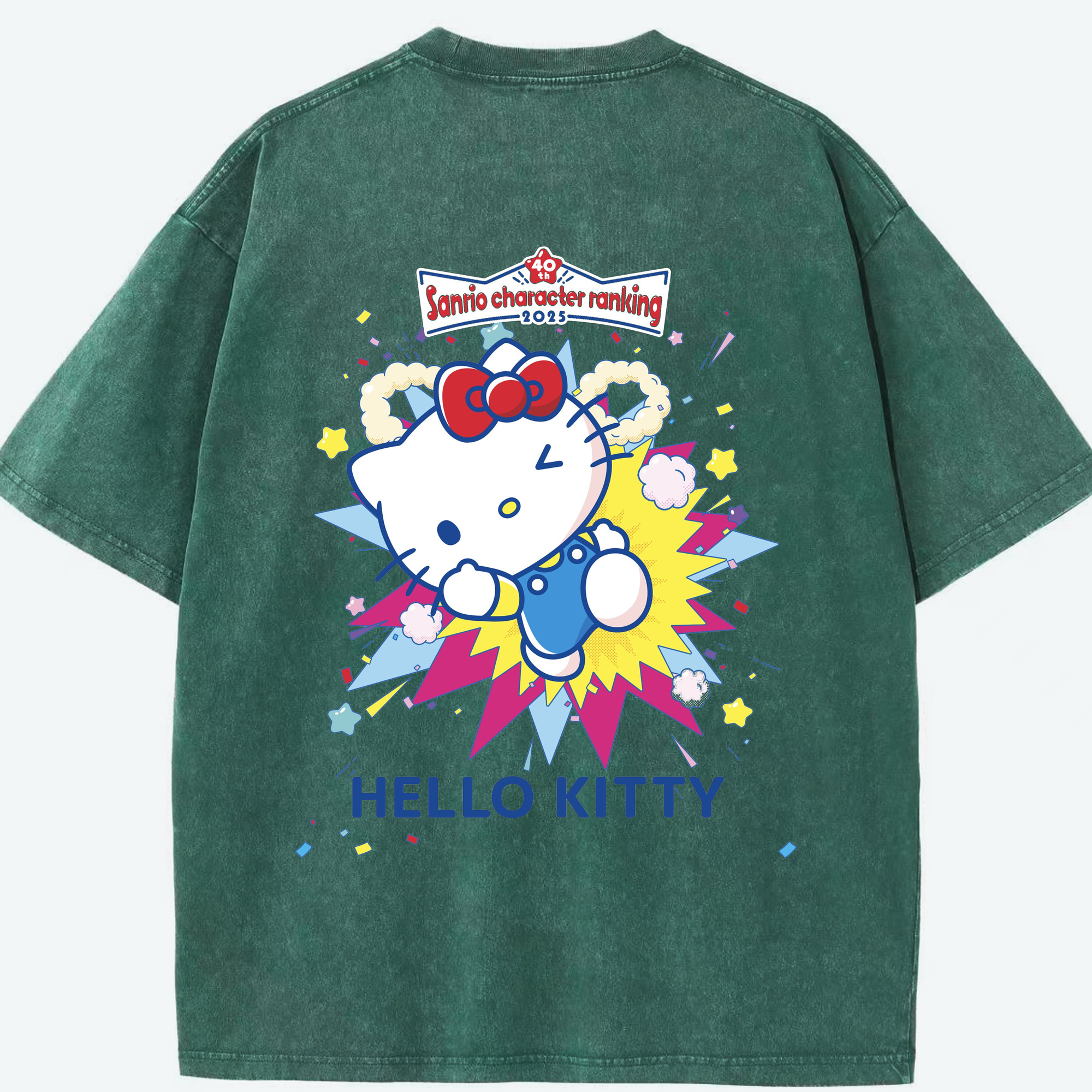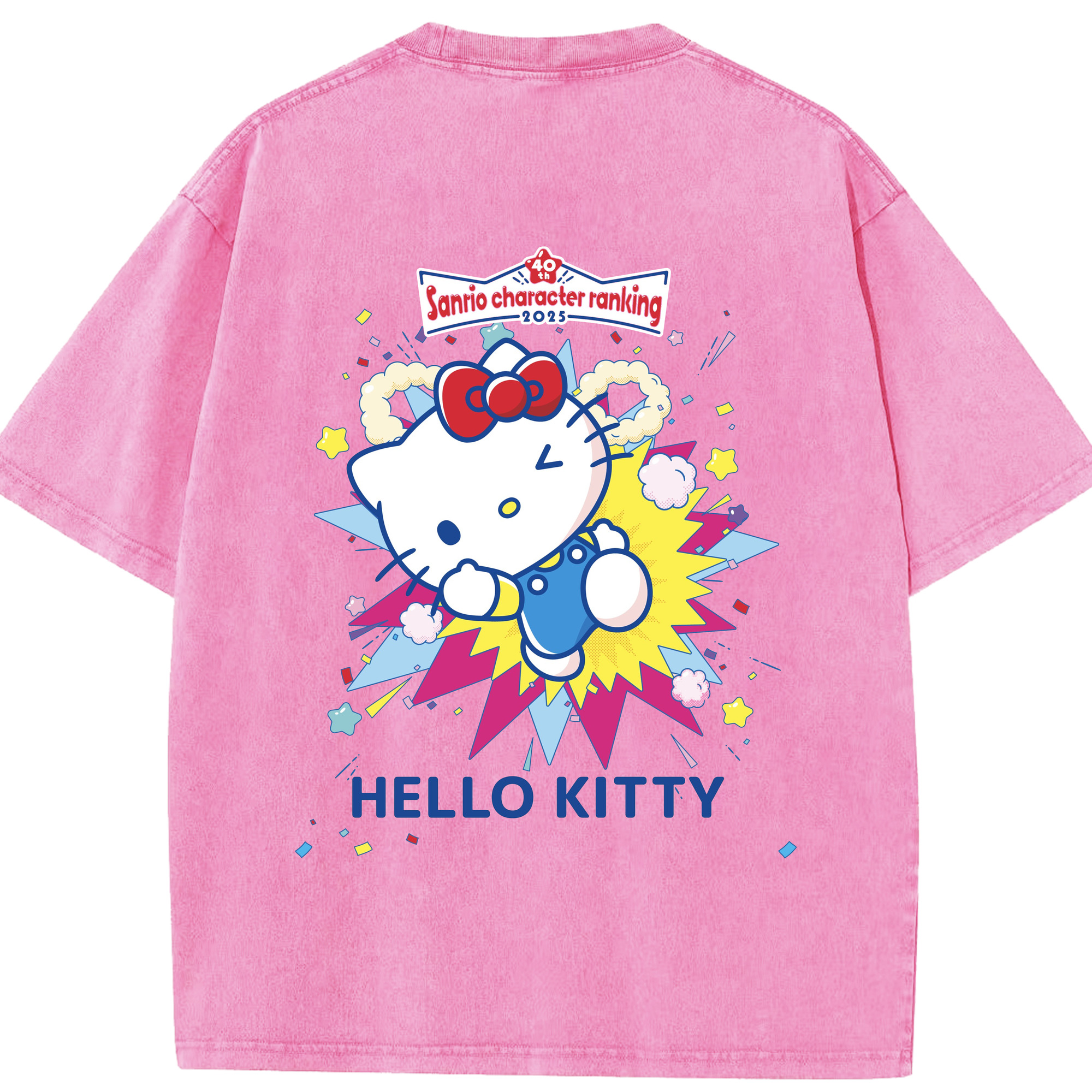 とびきりキュートなハローキティ - 綿100% ヴィンテージ風 半袖Tシャツ ・ 背面プリント ・ 柔らか肌触り ・ 通気性 快適 ・ スポーツ カジュアル 外出用