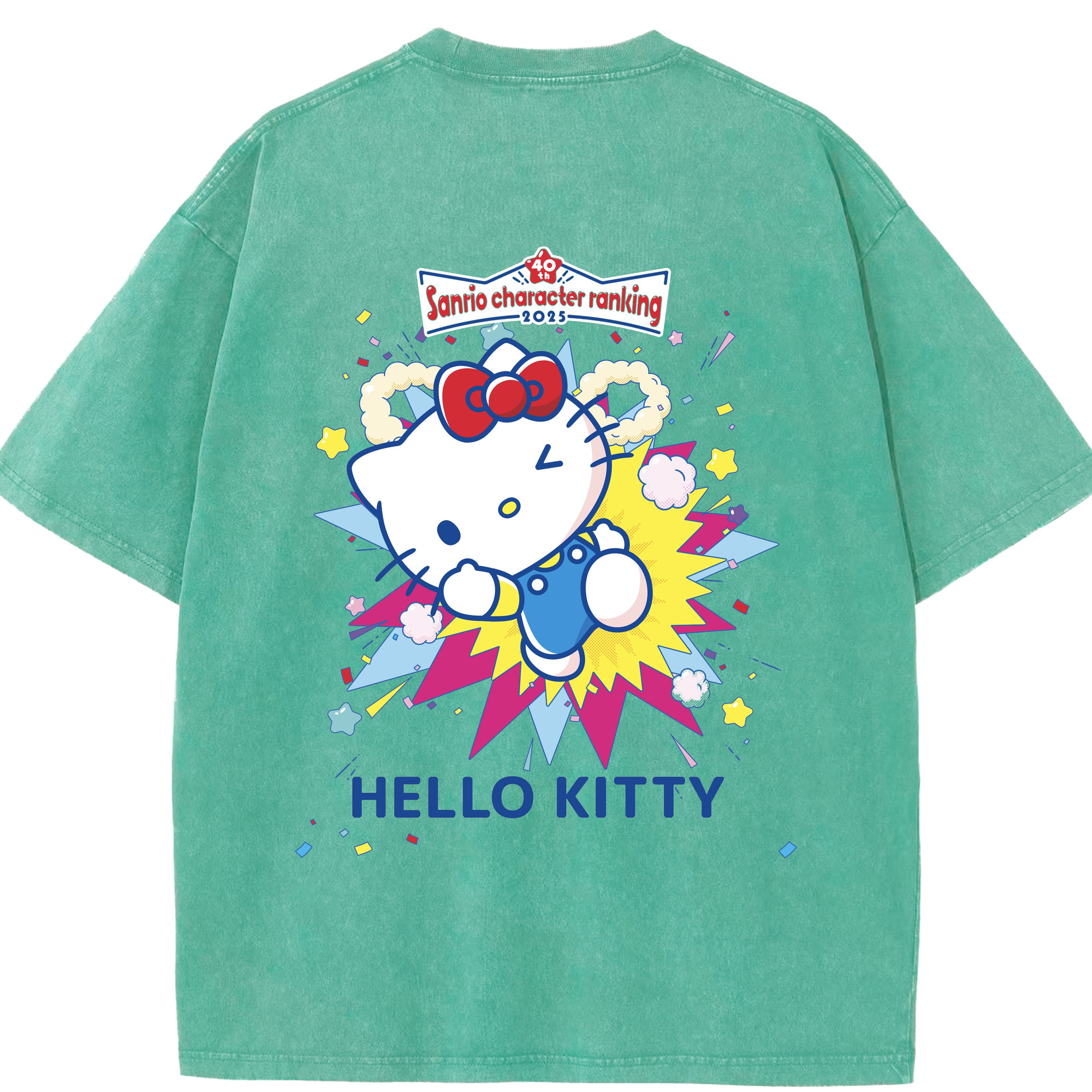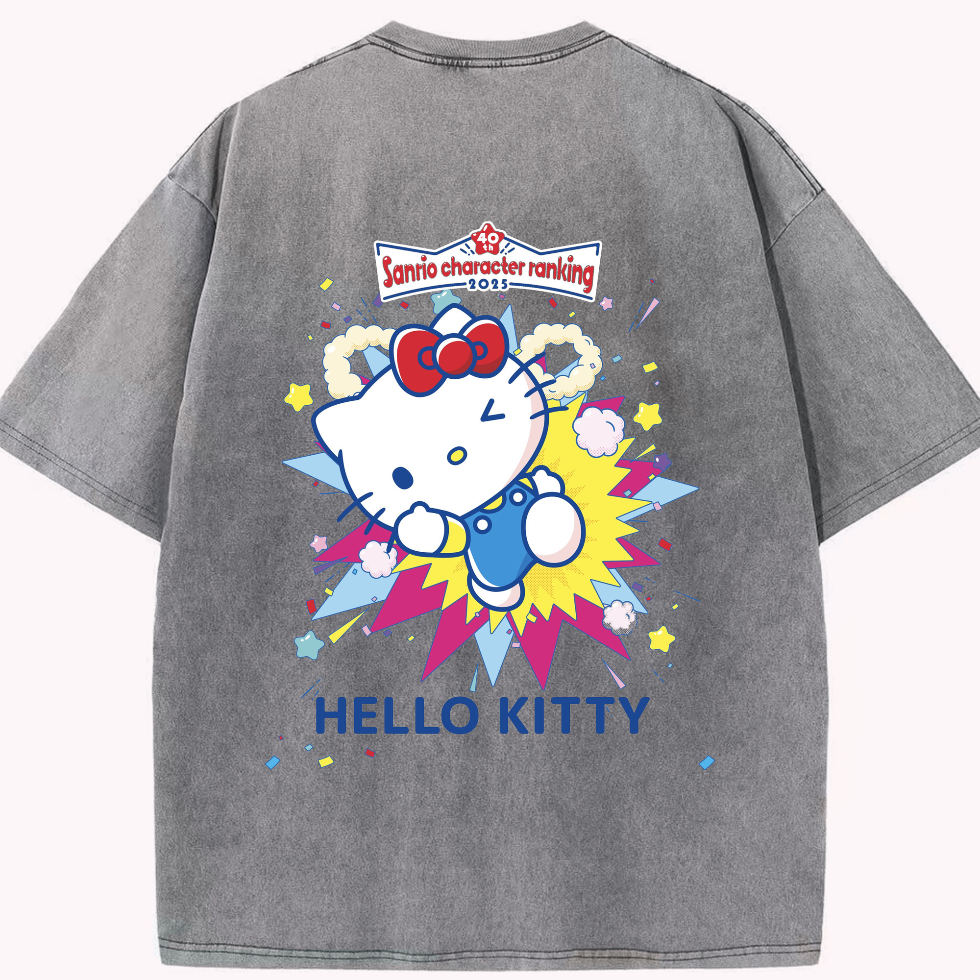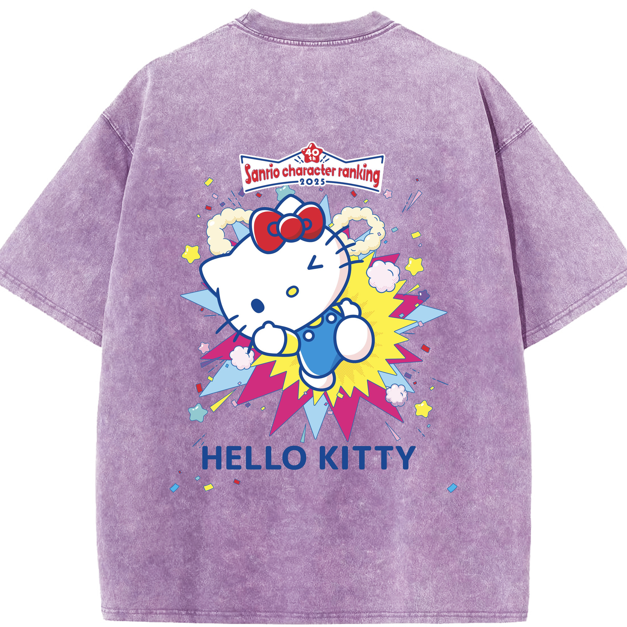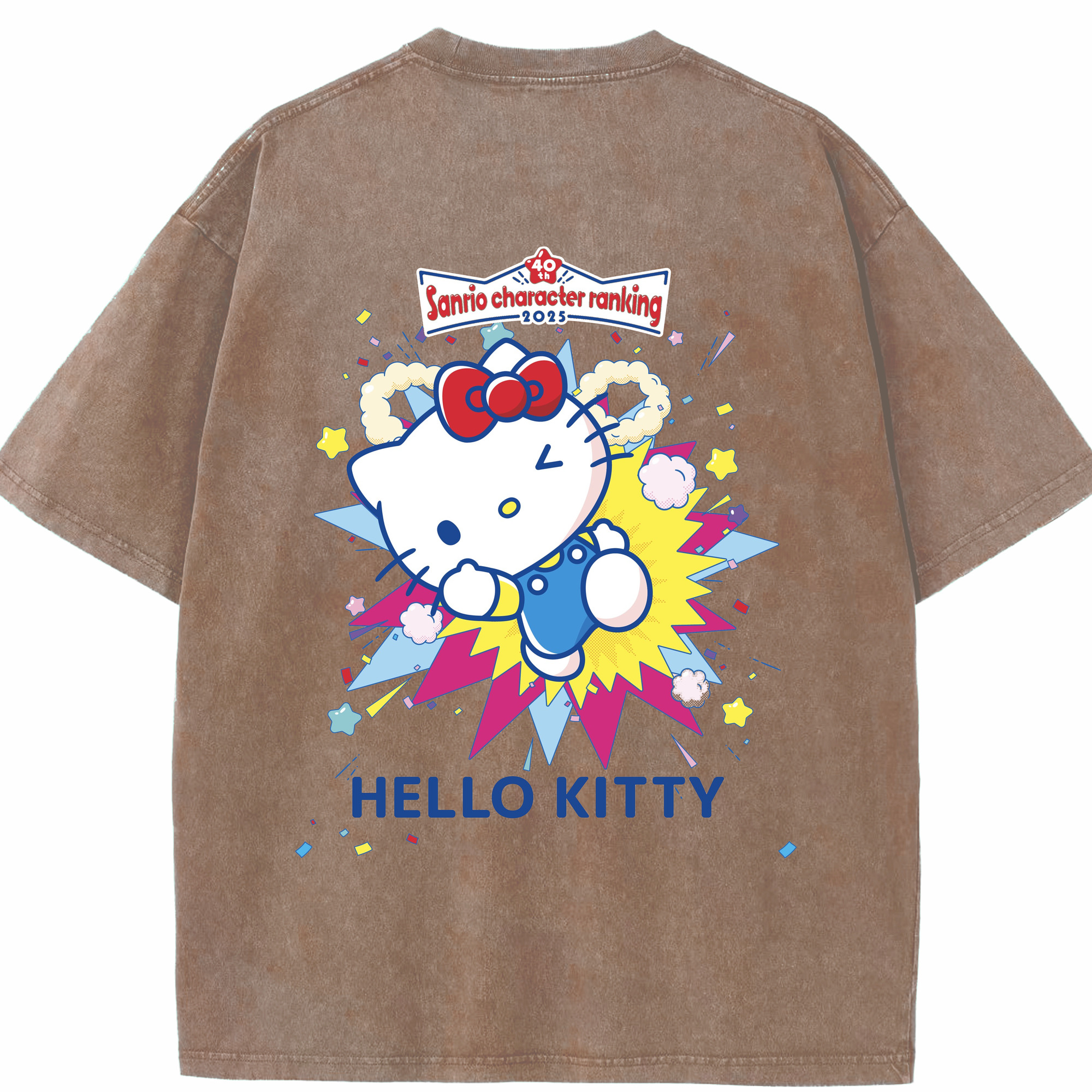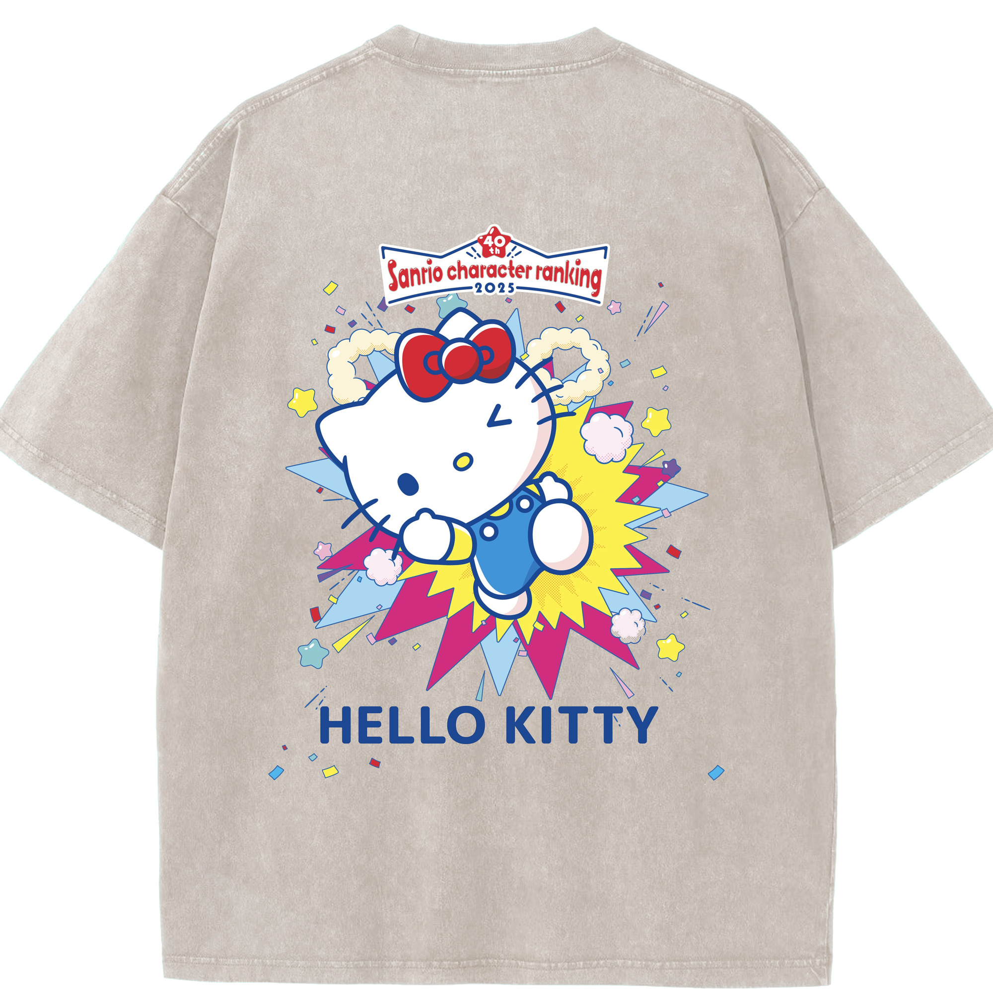 サンリオハローキティ - 綿100% ヴィンテージ風 半袖Tシャツ ・ 背面プリント ・ 柔らか肌触り ・ 通気性 快適 ・ スポーツ カジュアル 外出用