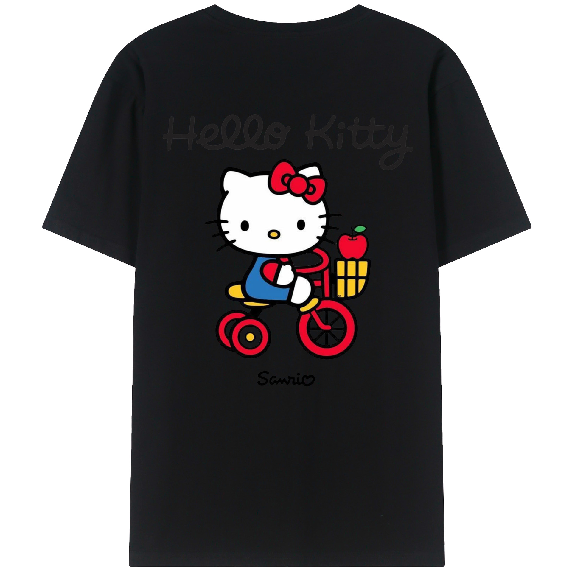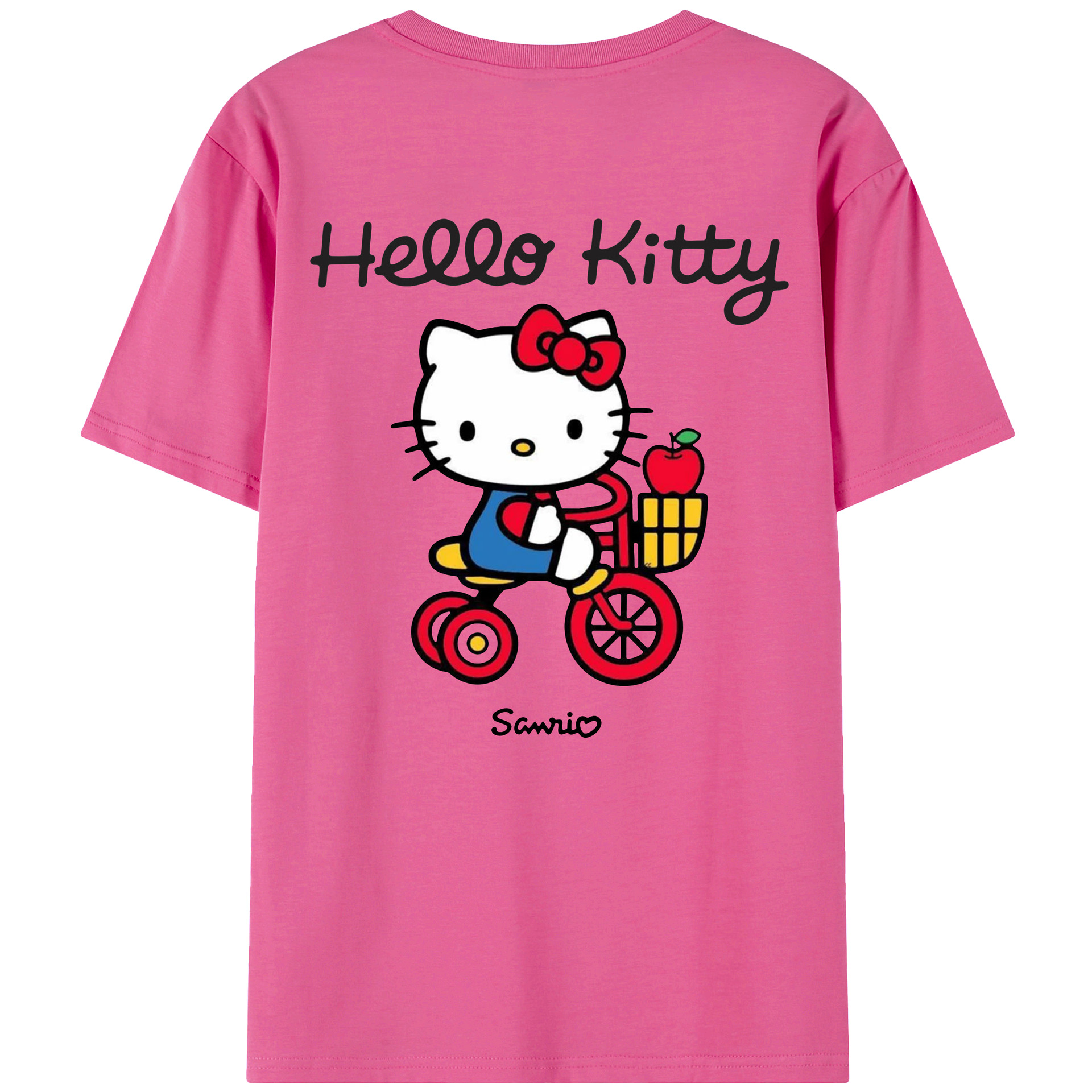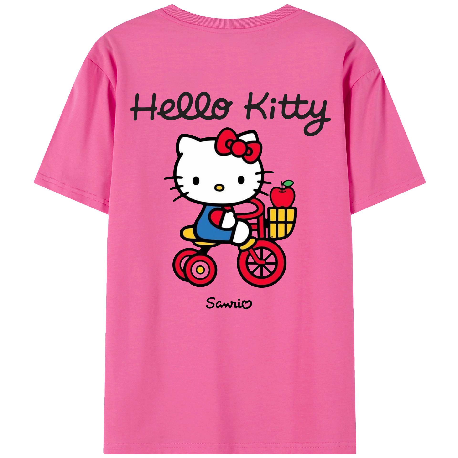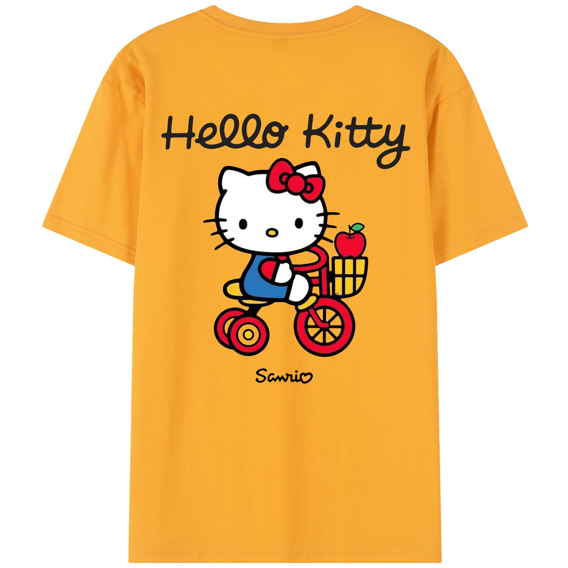 サンリオハローキティ - レディース半袖Tシャツ ・ 綿100% ・ バックプリント ・ 強化クルーネック ・ 二重折り袖口 ・ 快適 通気性 ・ フィットネス カジュアル 旅行用