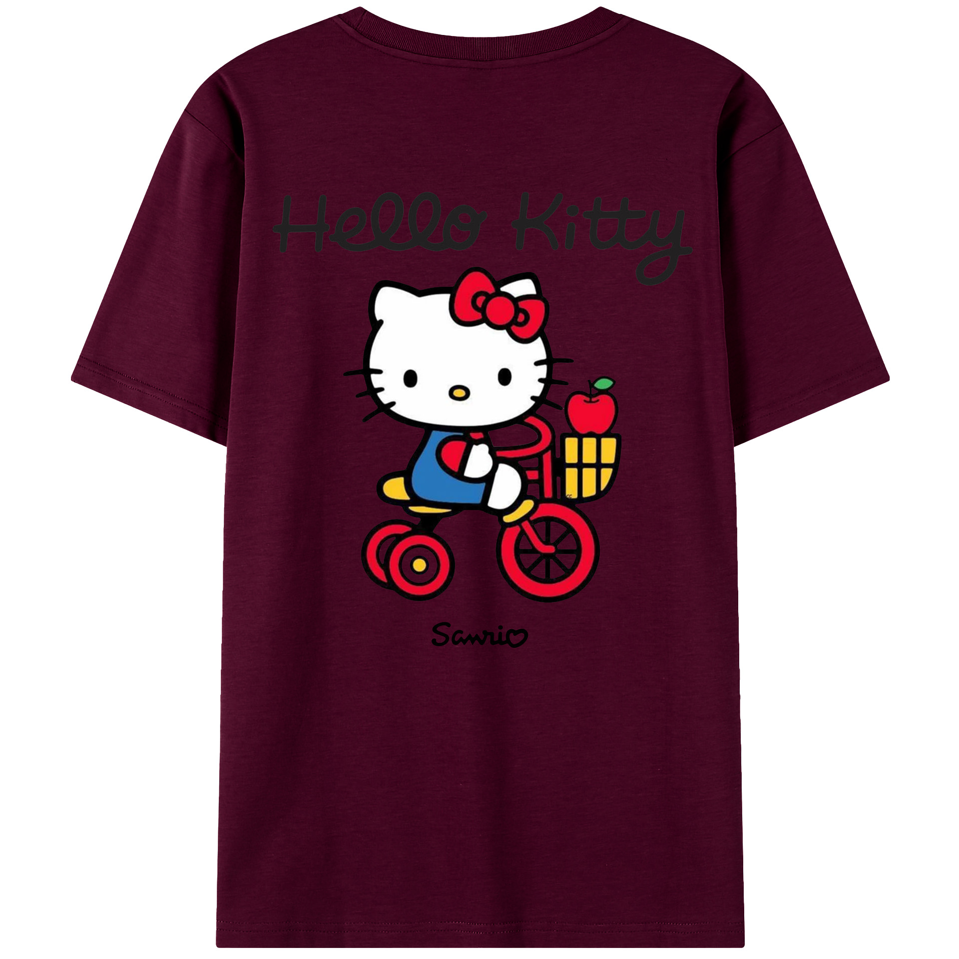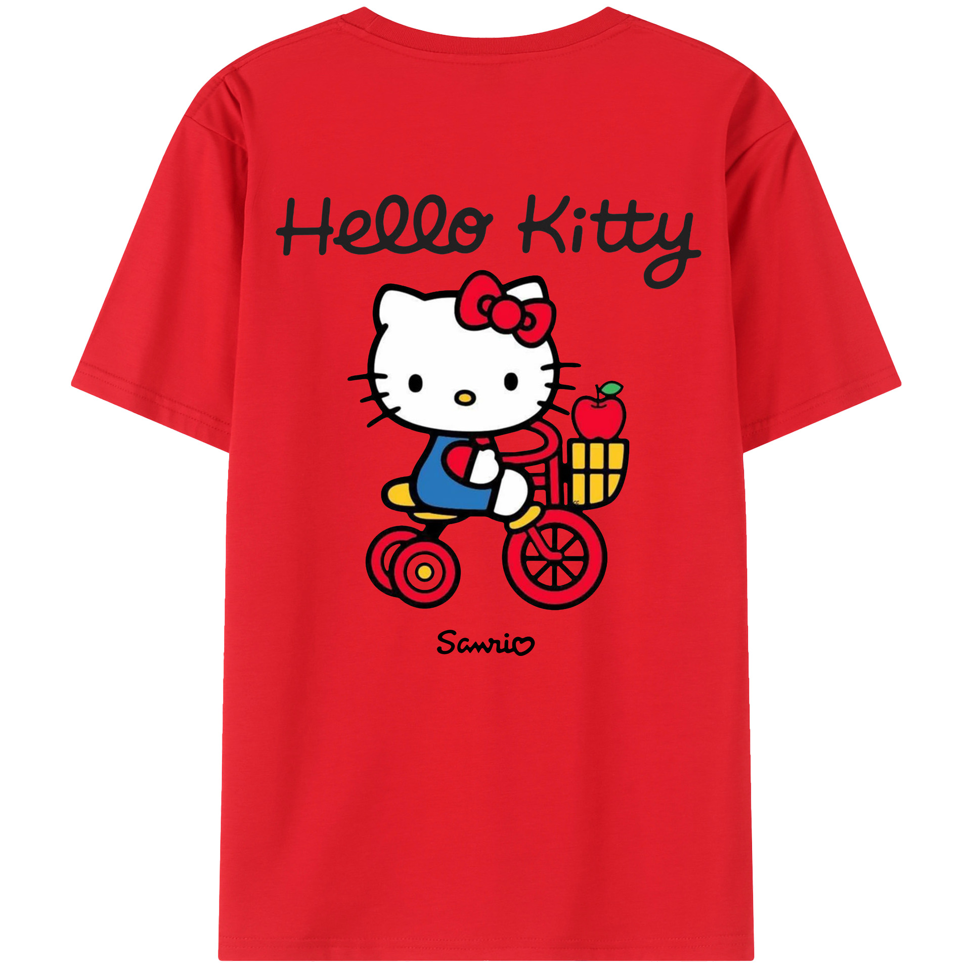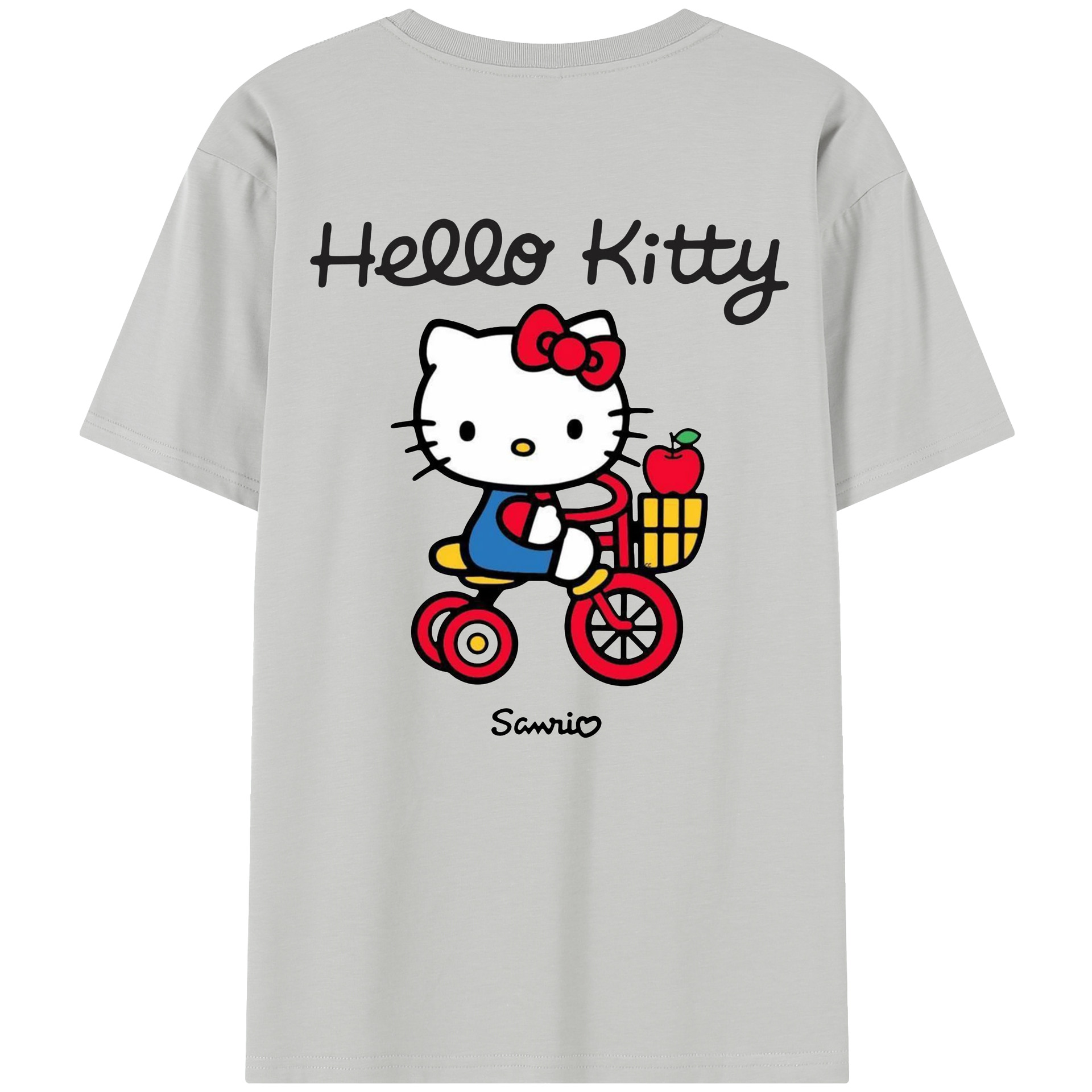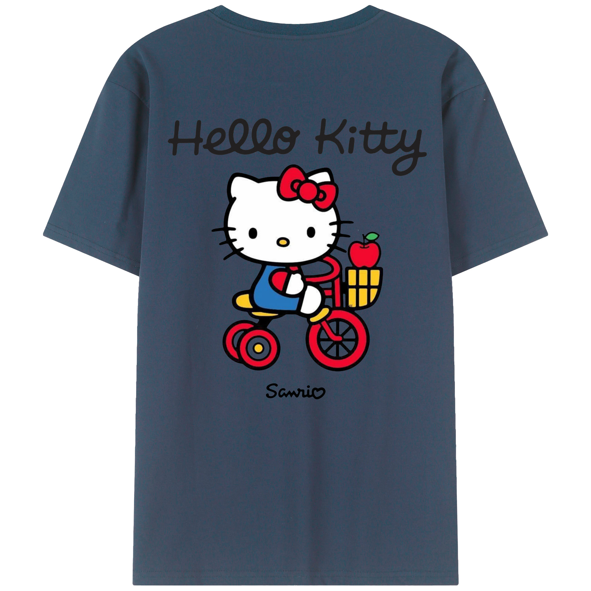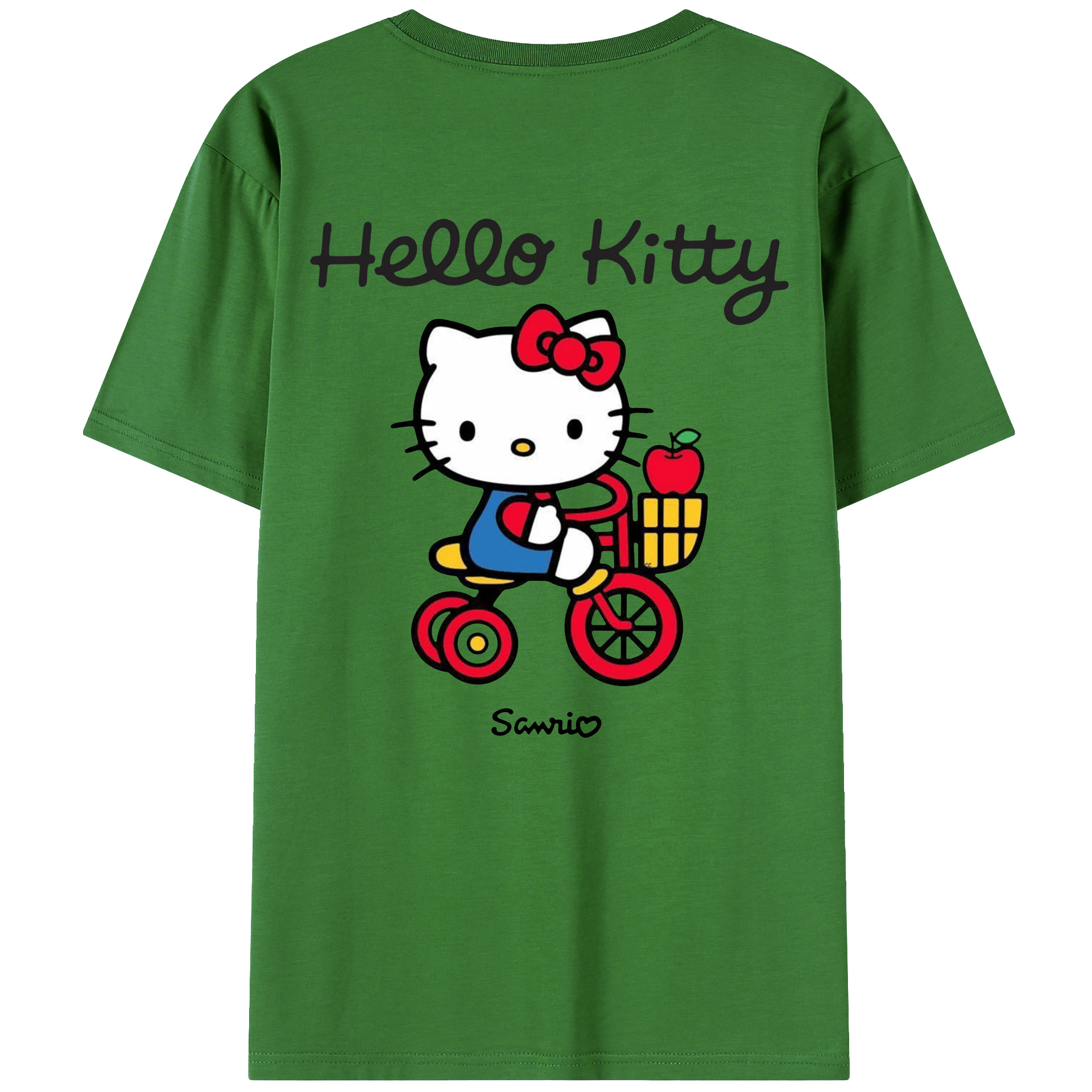 サンリオハローキティ - レディース半袖Tシャツ ・ 綿100% ・ バックプリント ・ 強化クルーネック ・ 二重折り袖口 ・ 快適 通気性 ・ フィットネス カジュアル 旅行用