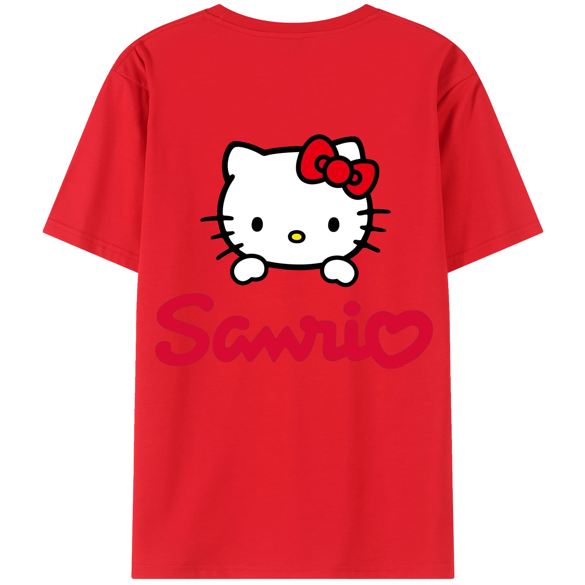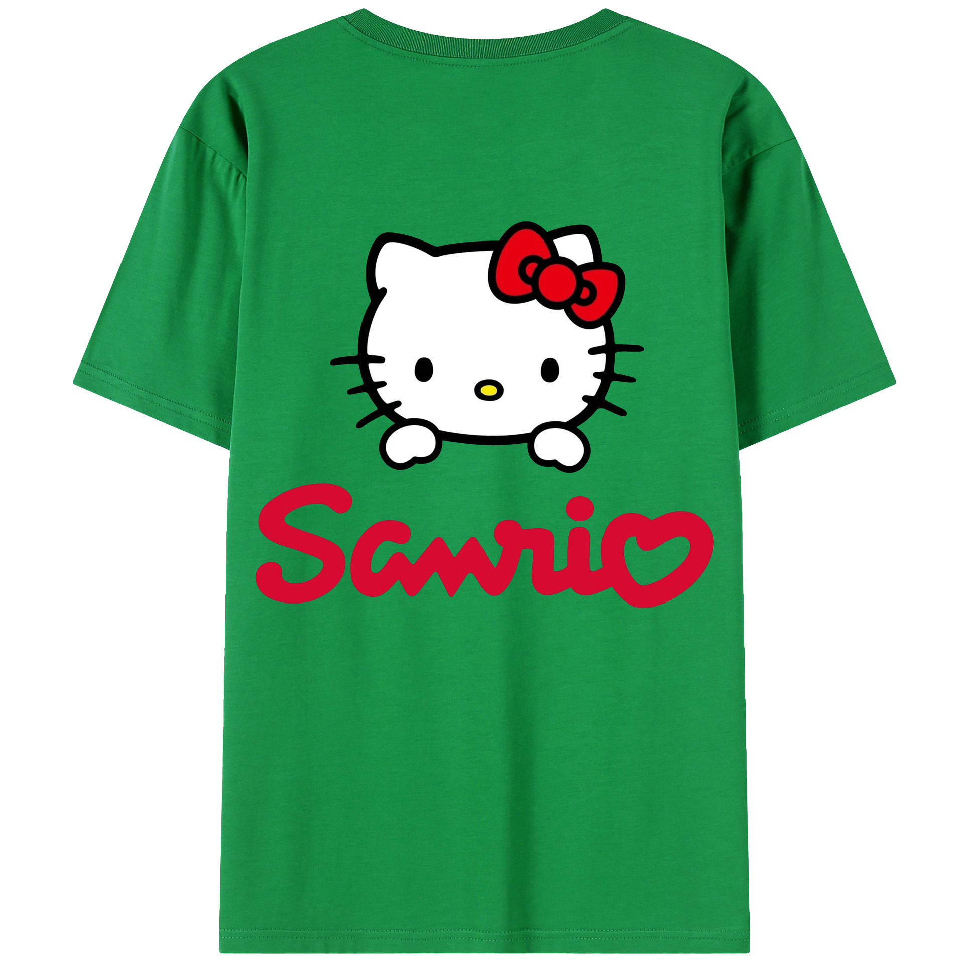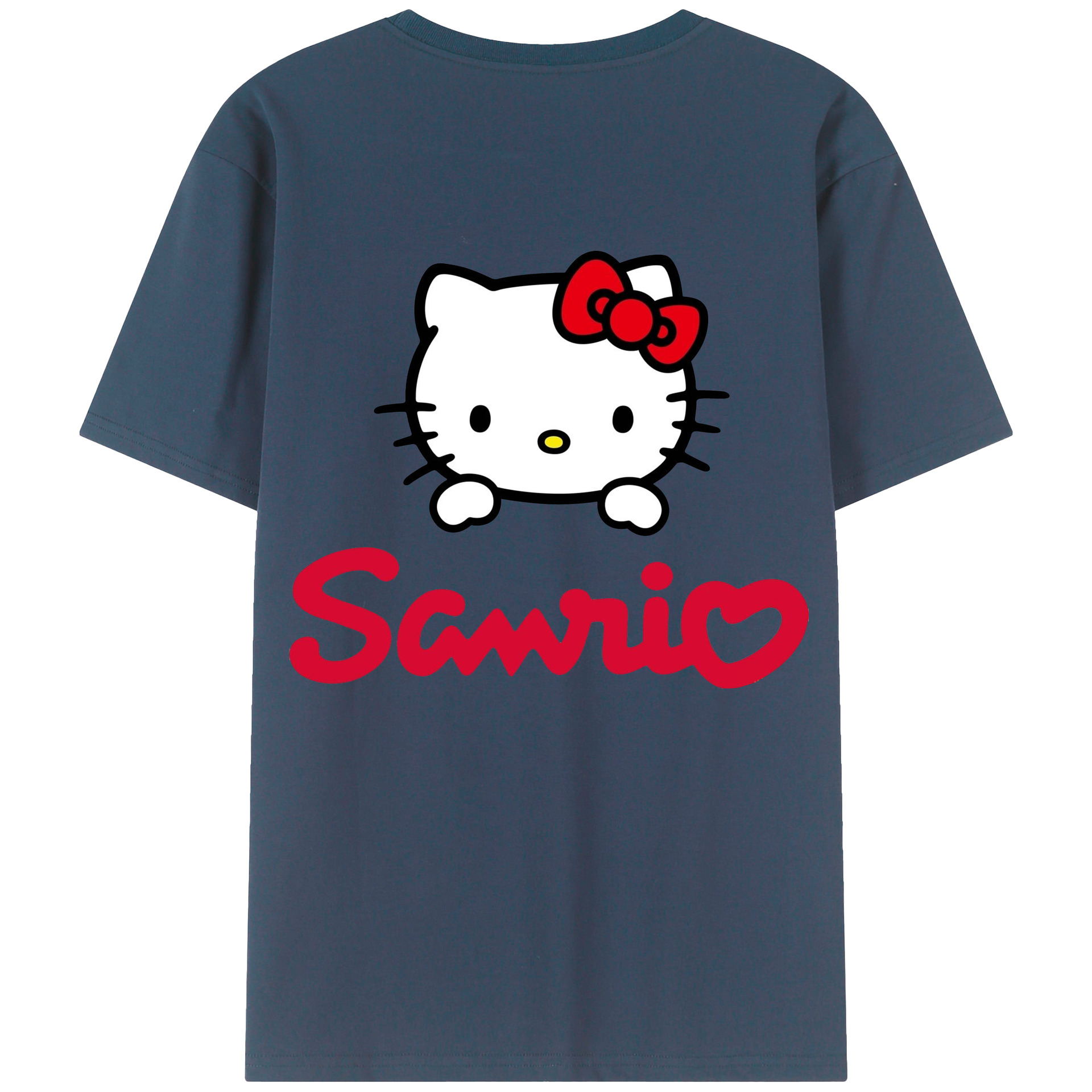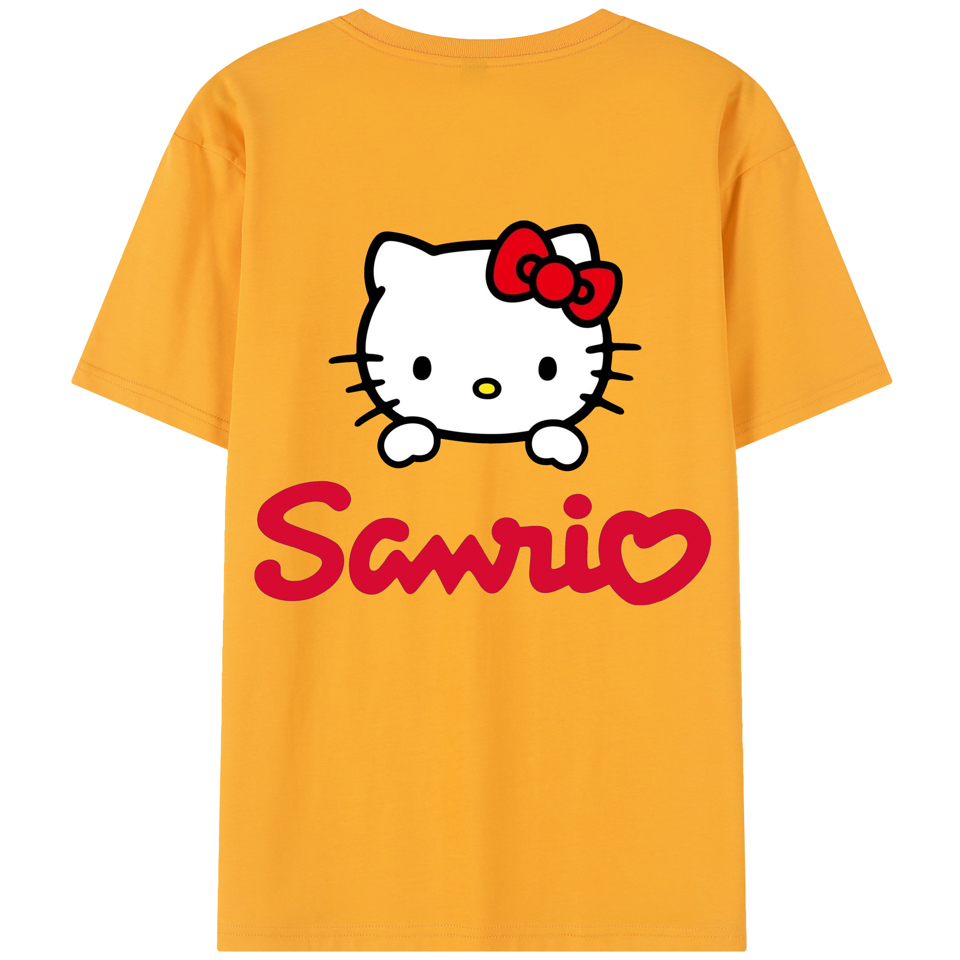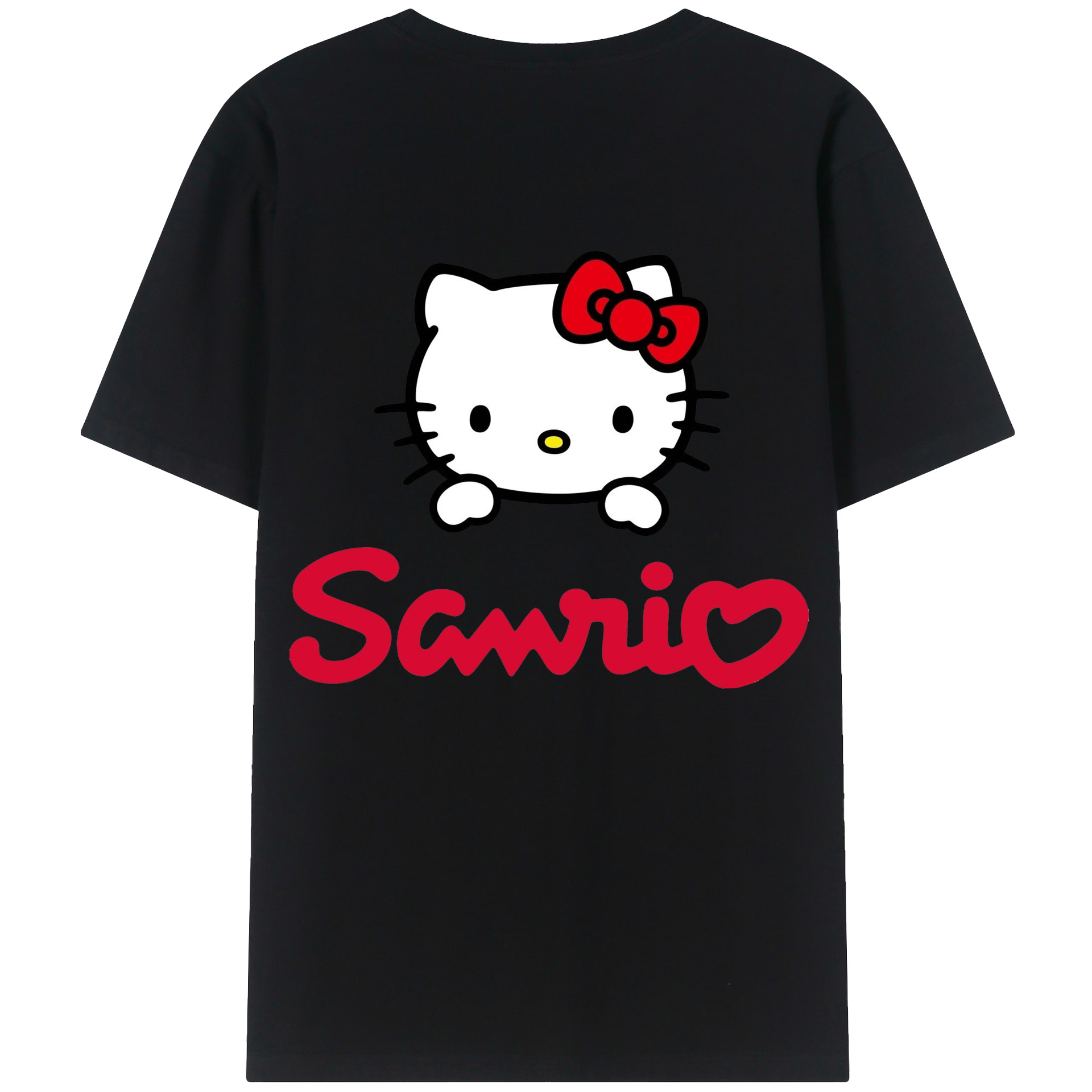 サンリオハローキティ - レディース半袖Tシャツ ・ 綿100% ・ バックプリント ・ 強化クルーネック ・ 二重折り袖口 ・ 快適 通気性 ・ フィットネス カジュアル 旅行用