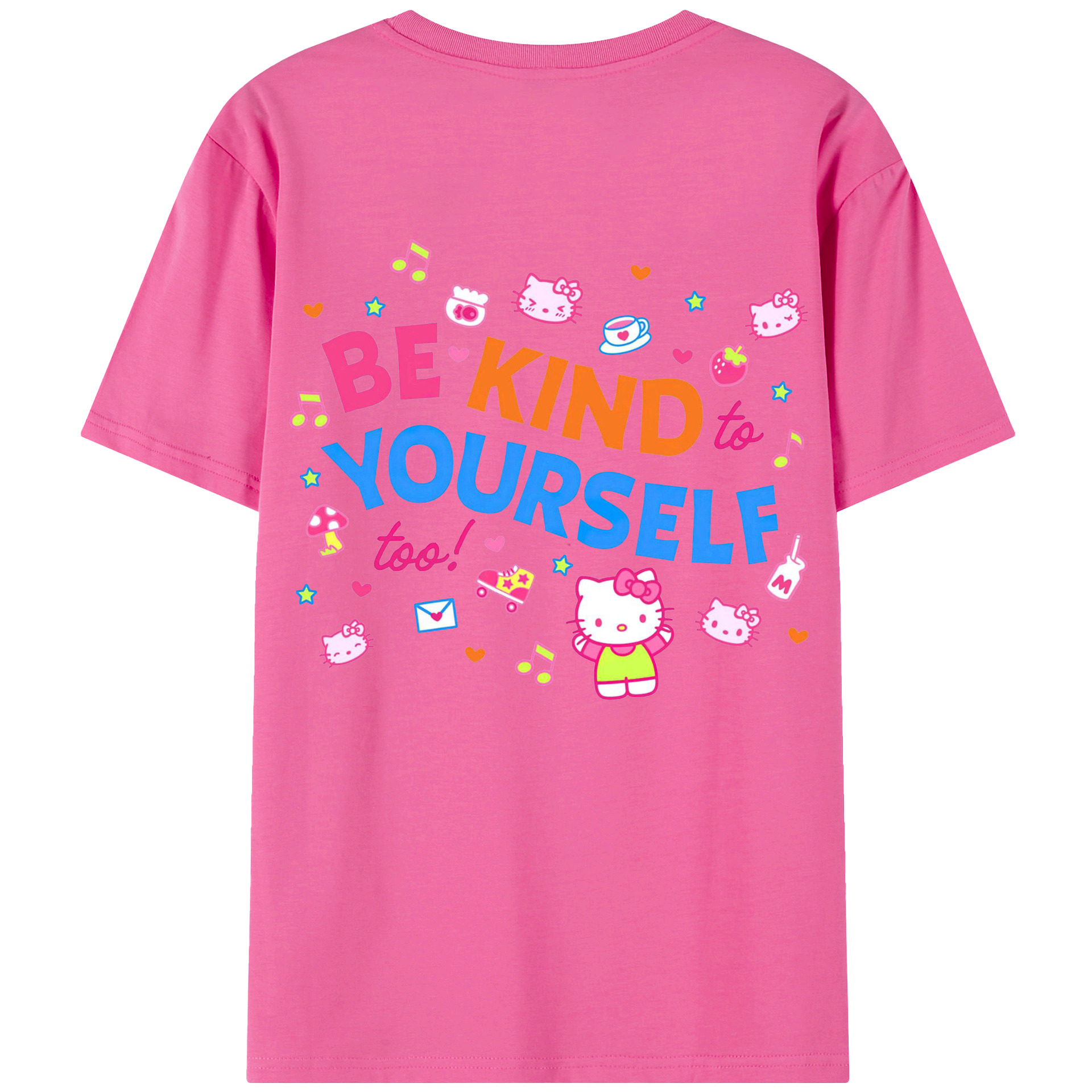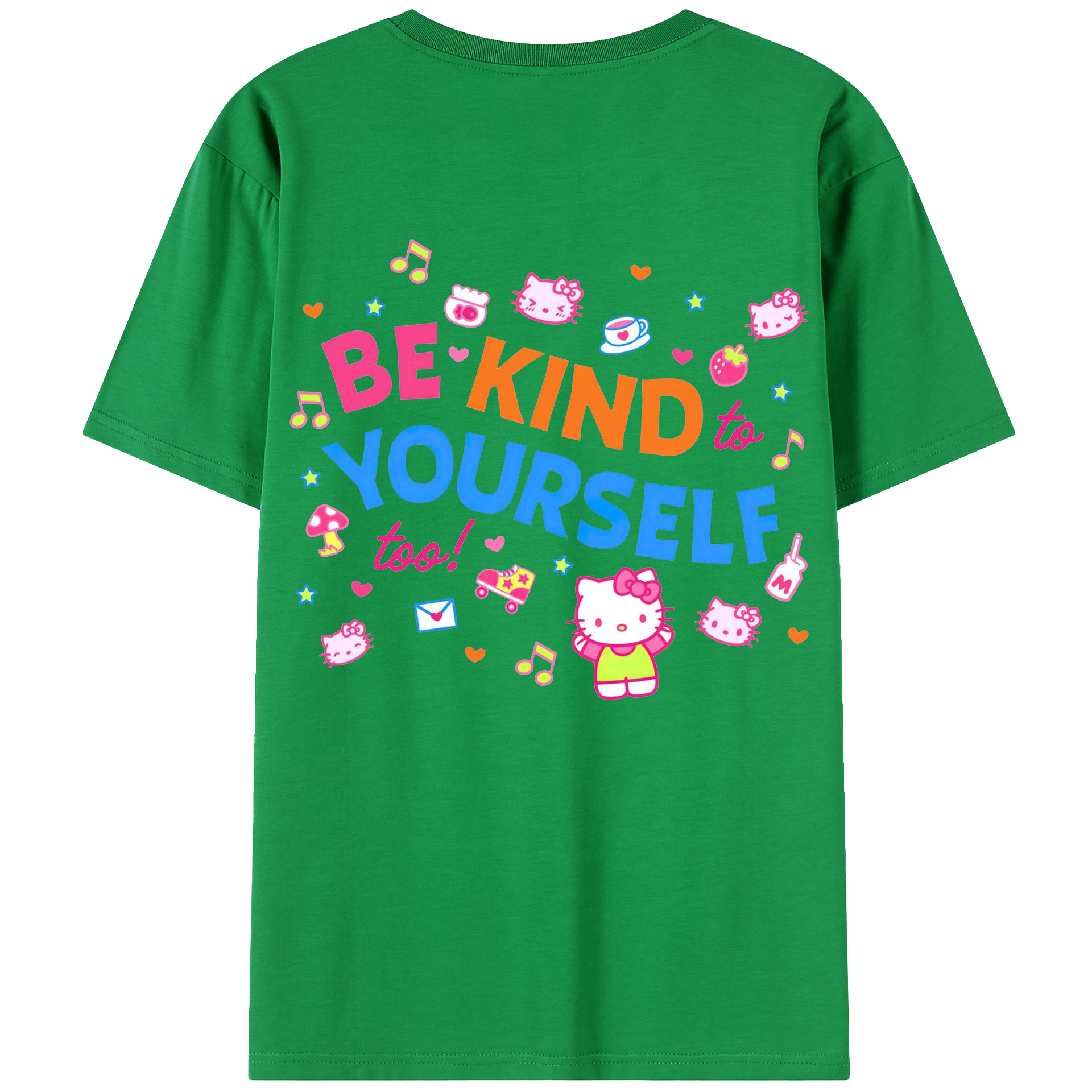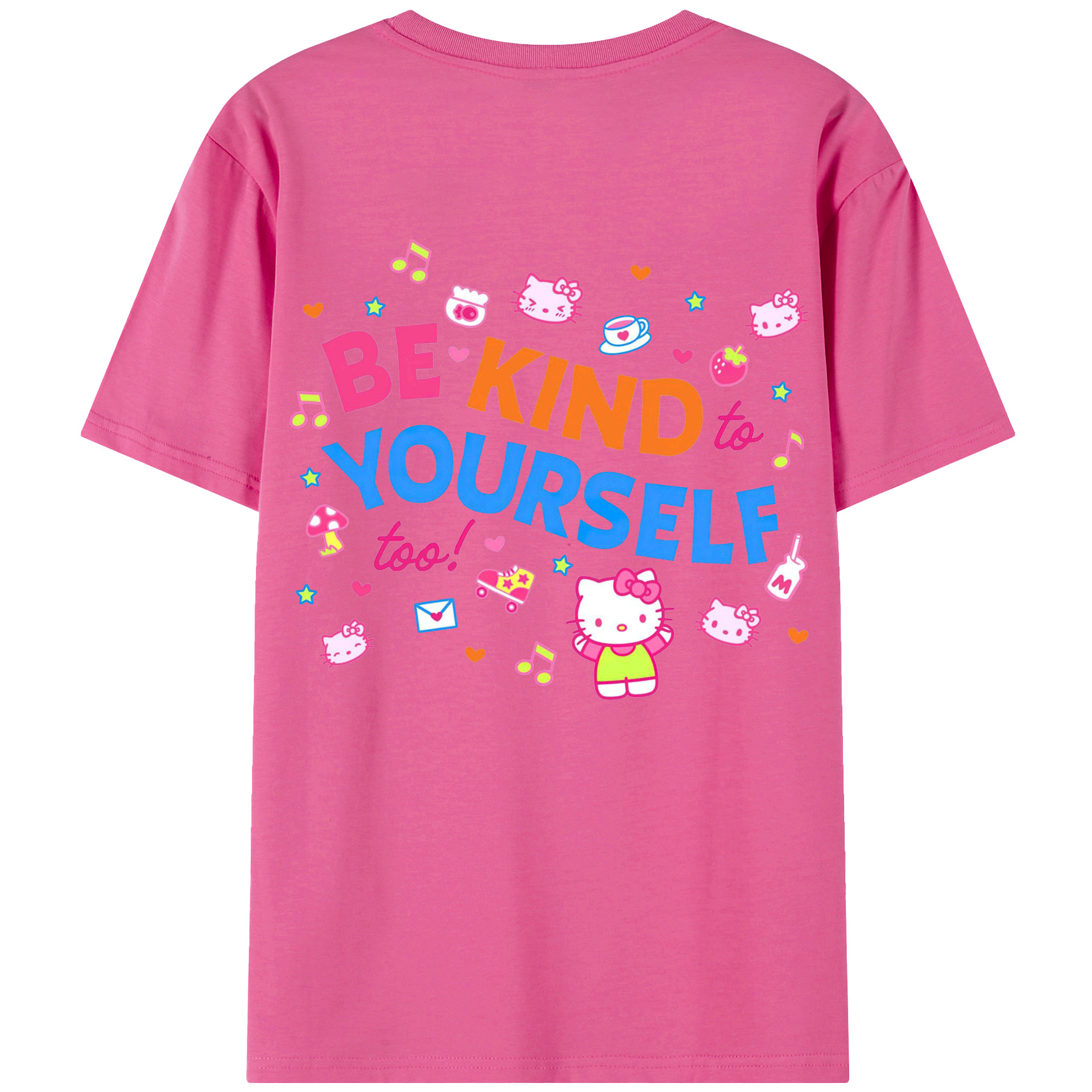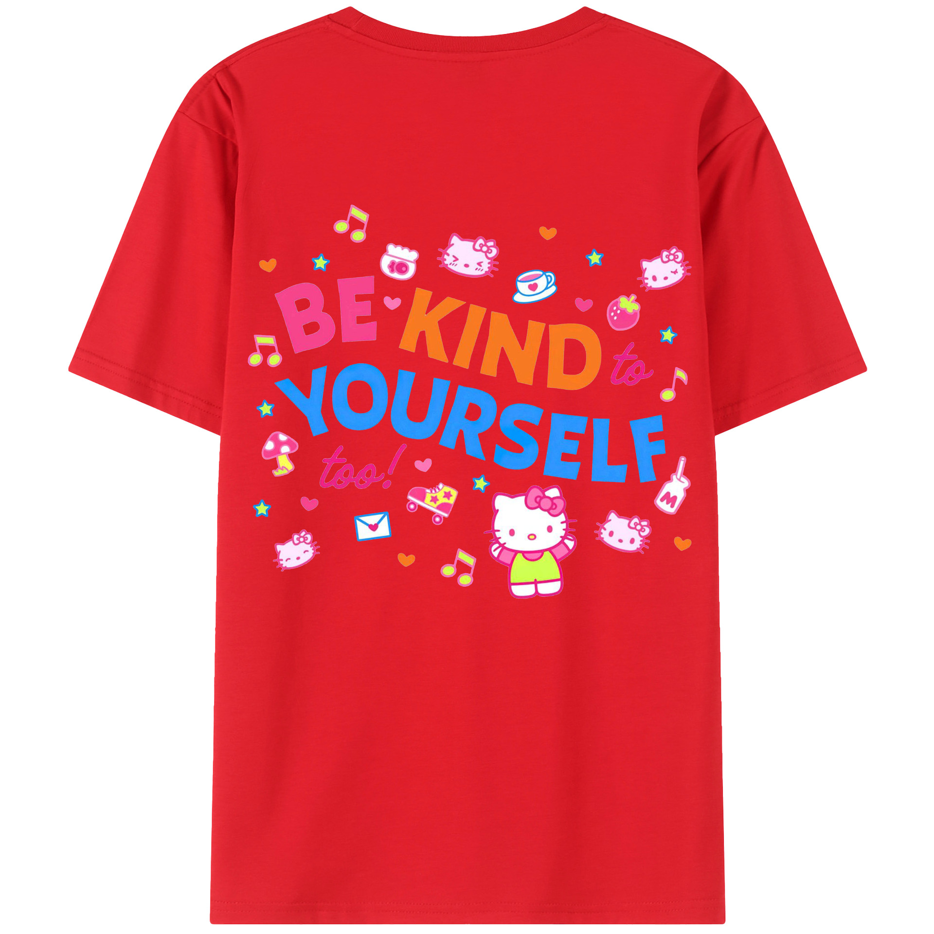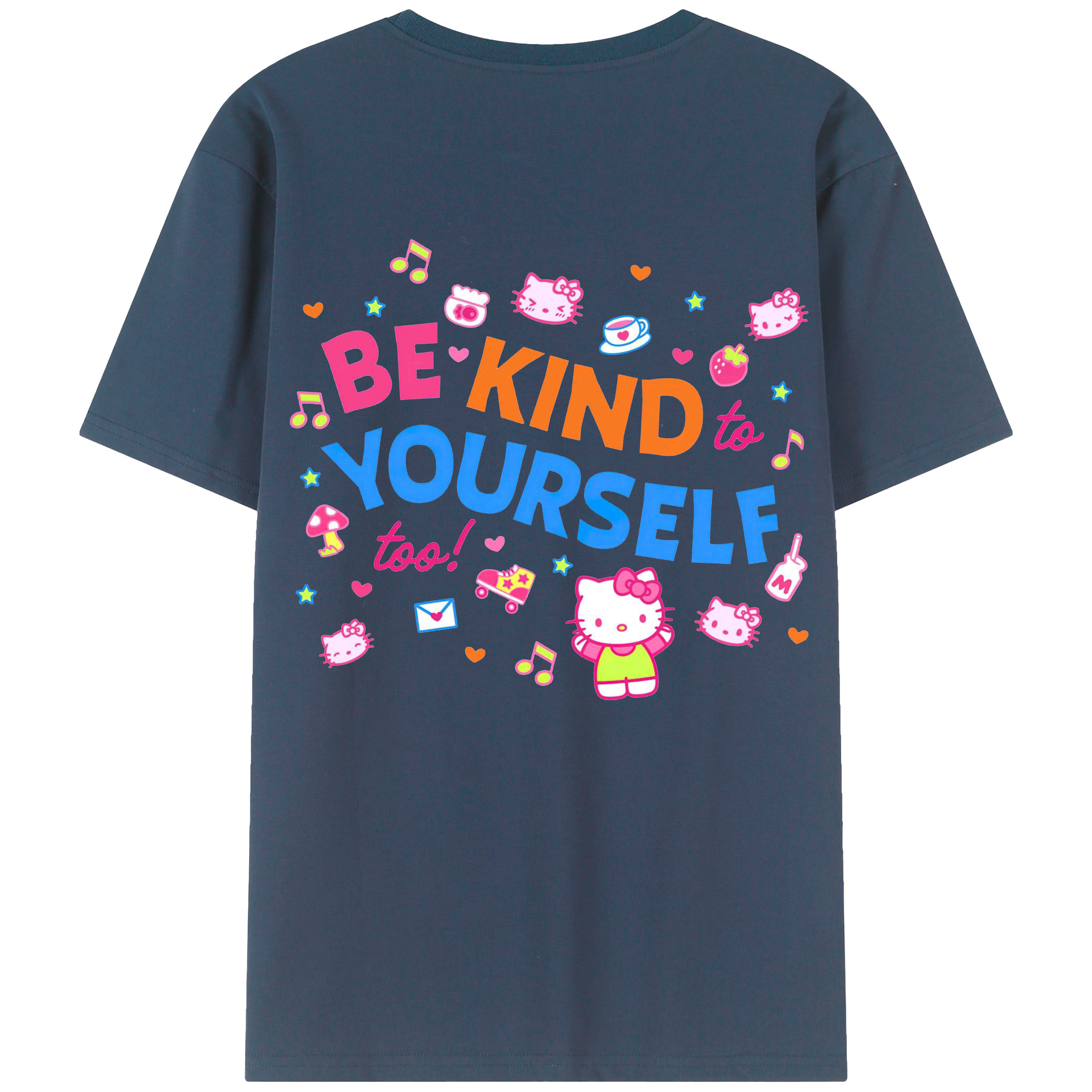 サンリオハローキティ - レディース半袖Tシャツ ・ 綿100% ・ バックプリント ・ 強化クルーネック ・ 二重折り袖口 ・ 快適 通気性 ・ フィットネス カジュアル 旅行用