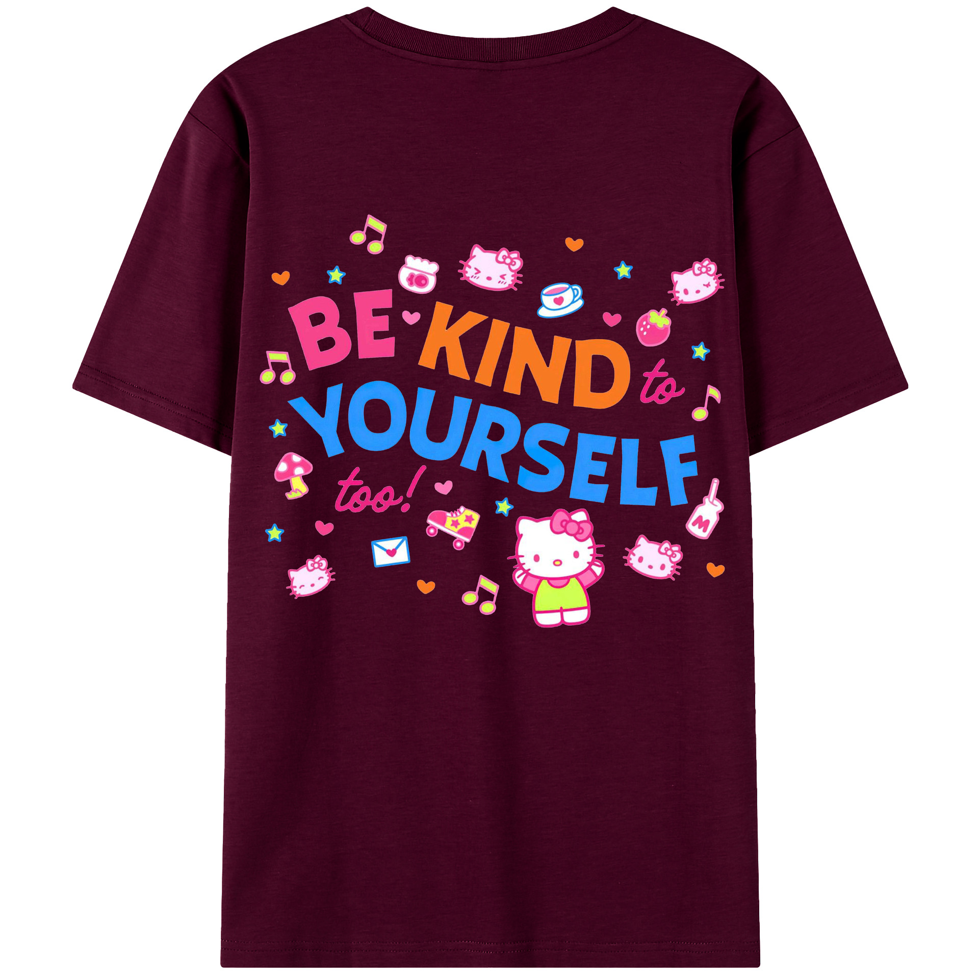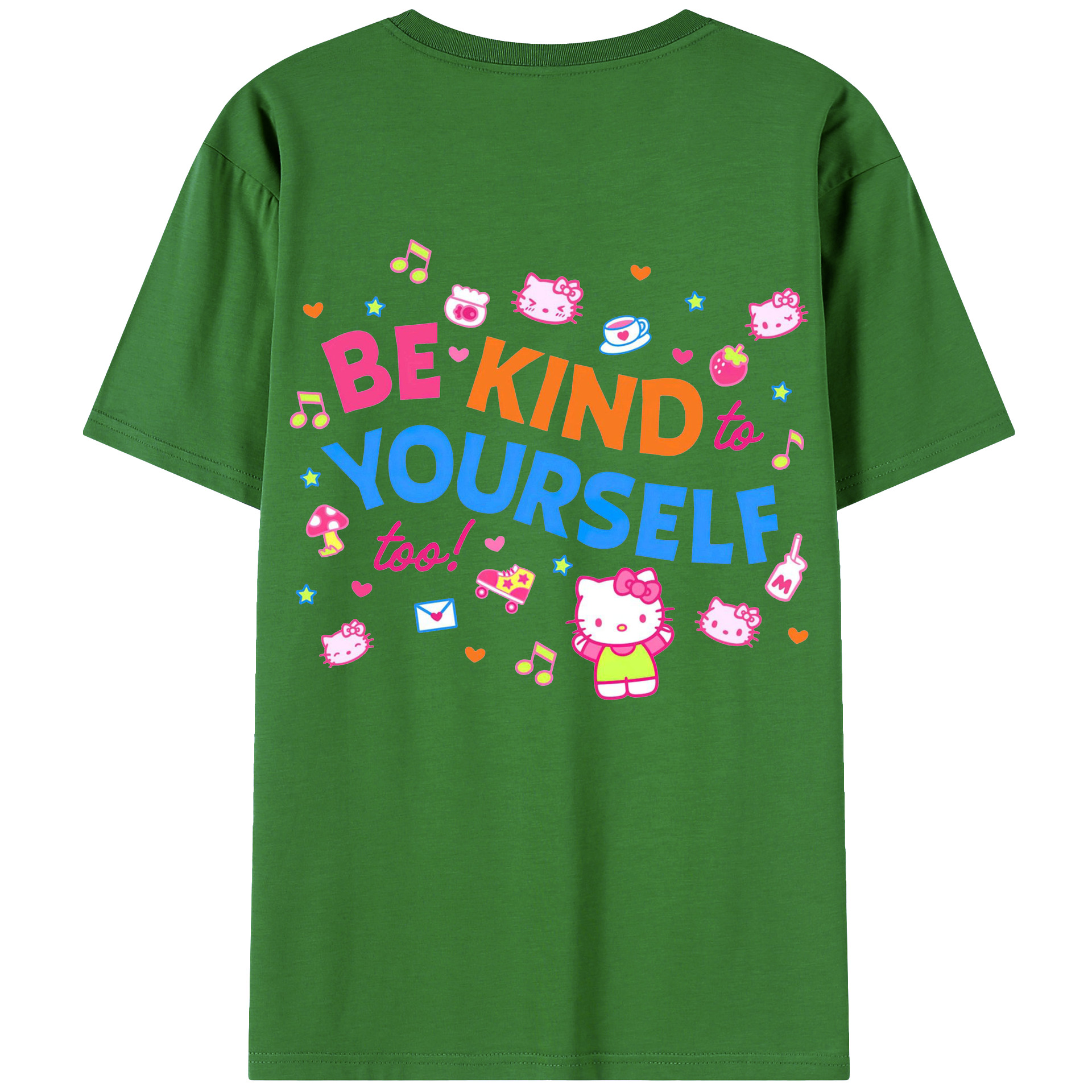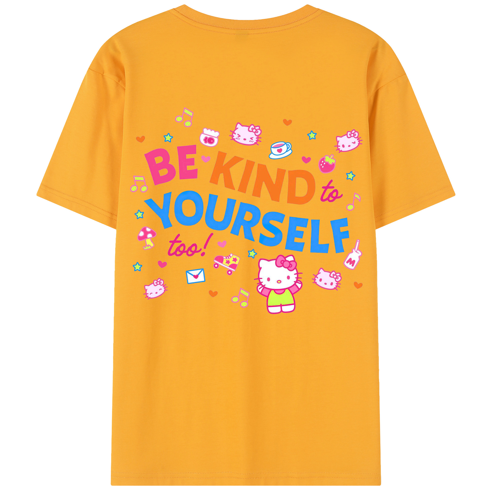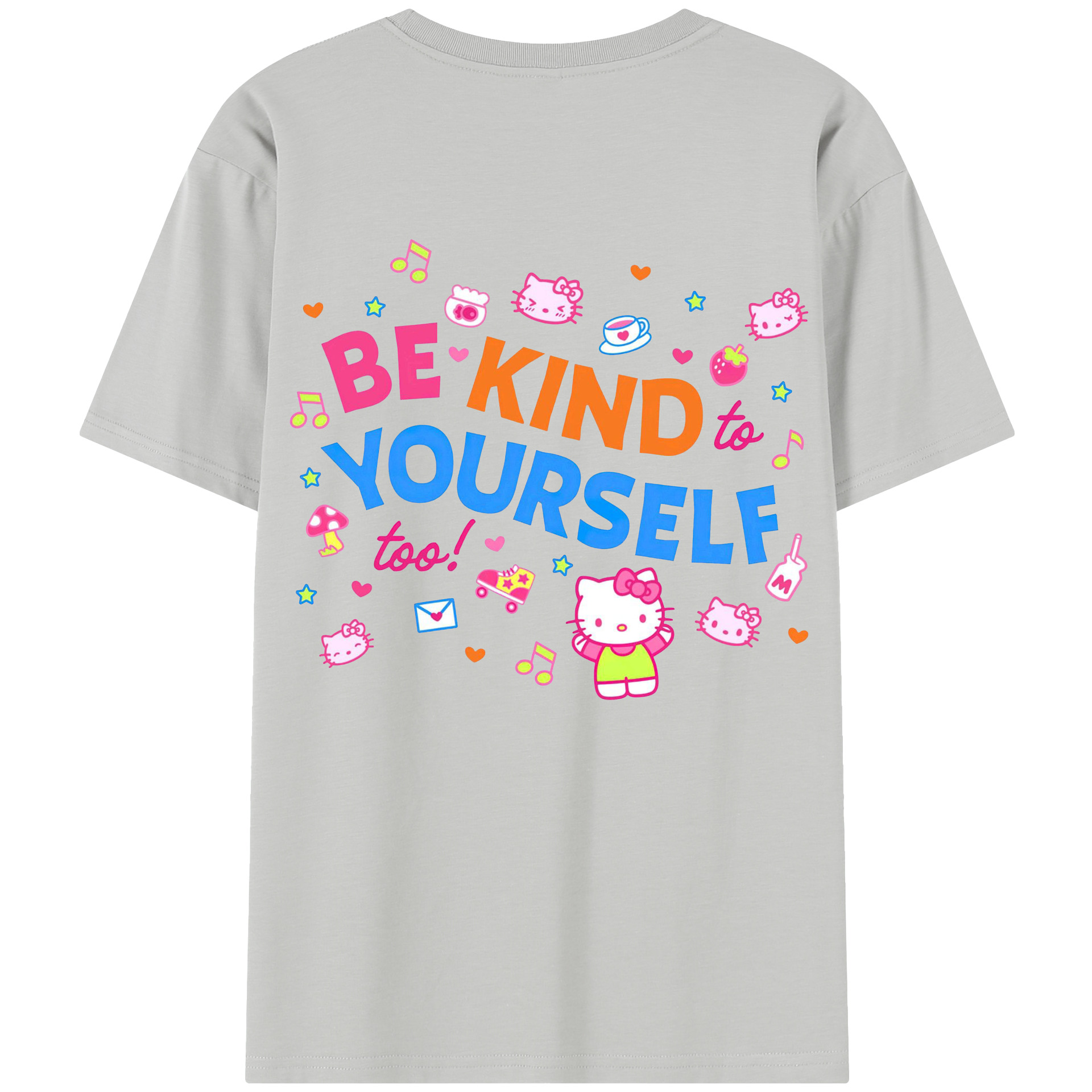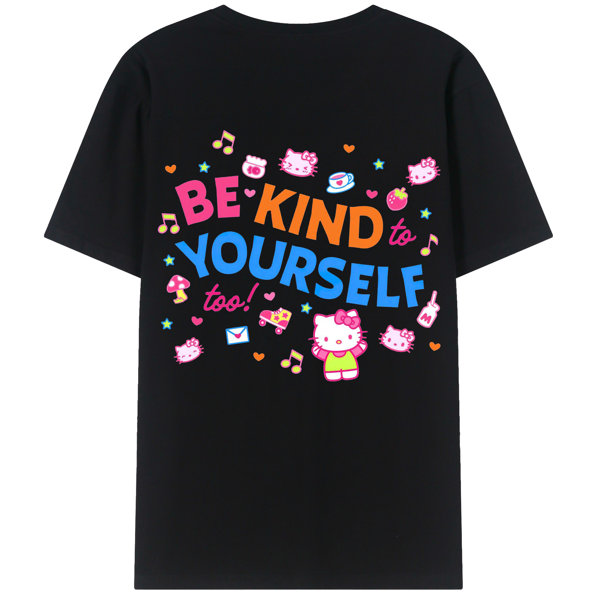 サンリオハローキティ - レディース半袖Tシャツ ・ 綿100% ・ バックプリント ・ 強化クルーネック ・ 二重折り袖口 ・ 快適 通気性 ・ フィットネス カジュアル 旅行用