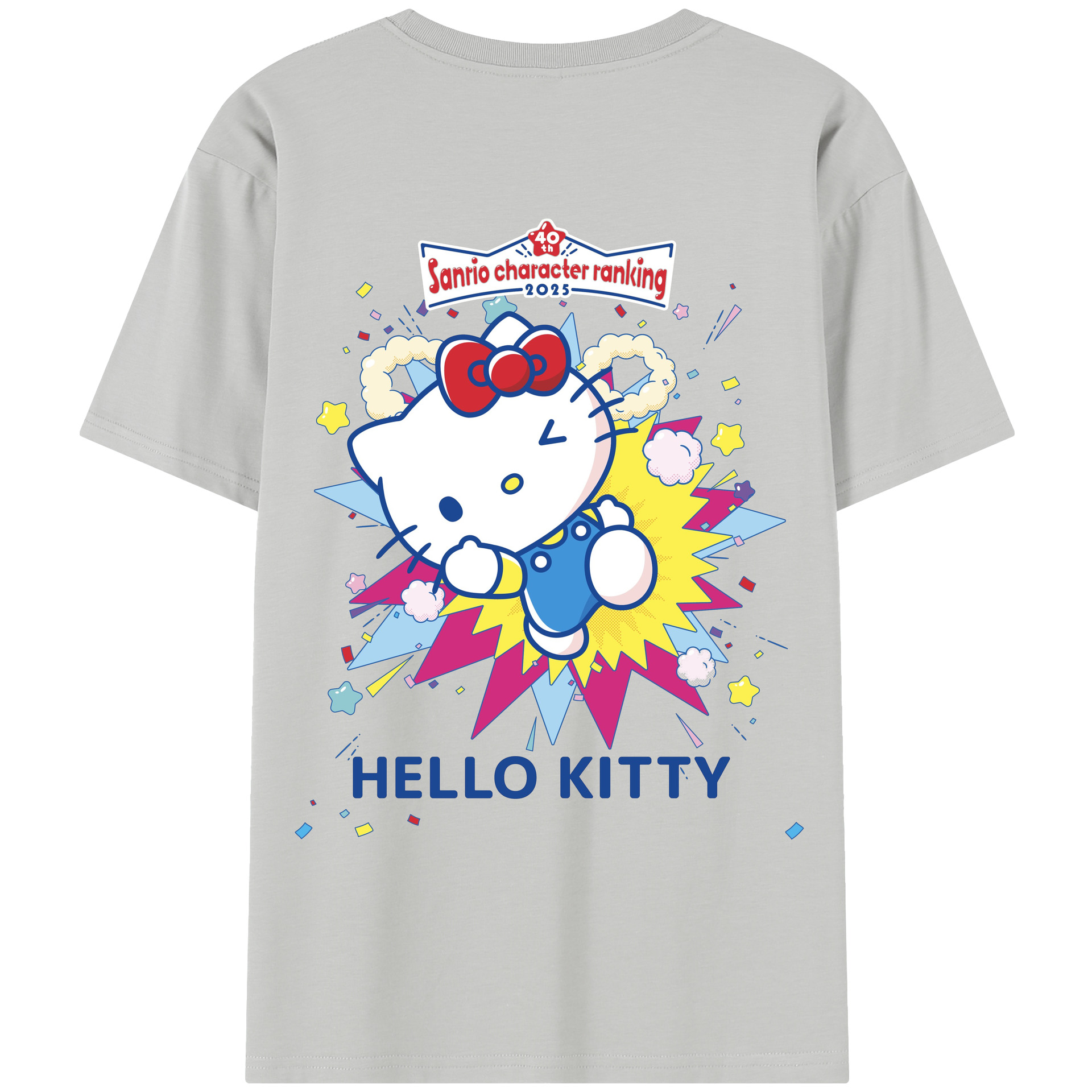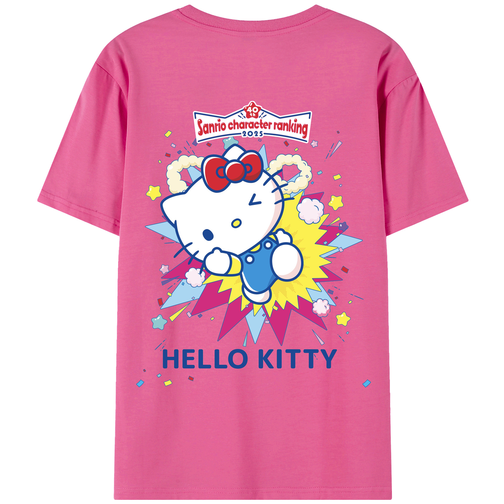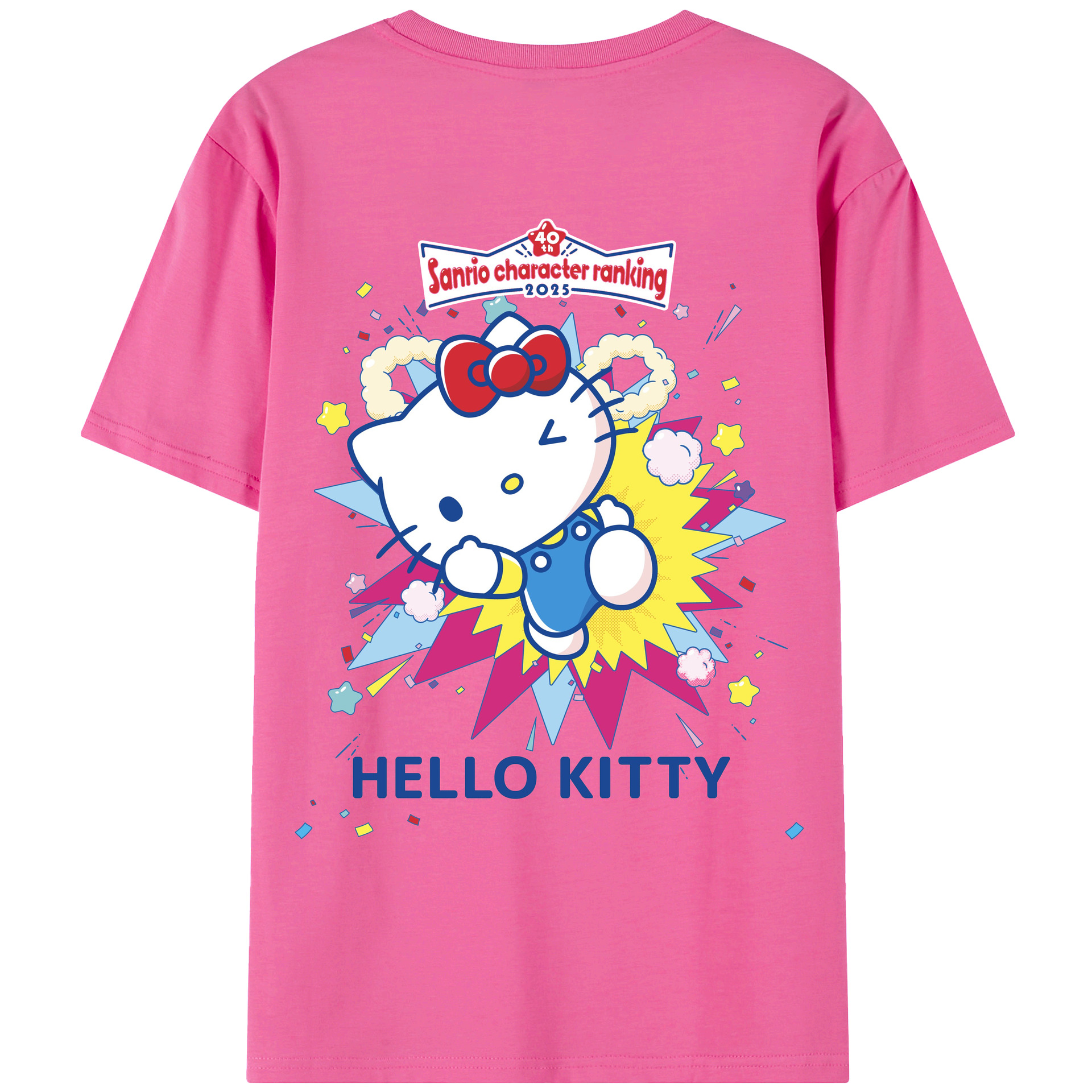 サンリオハローキティ - レディース半袖Tシャツ ・ 綿100% ・ バックプリント ・ 強化クルーネック ・ 二重折り袖口 ・ 快適 通気性 ・ フィットネス カジュアル 旅行用