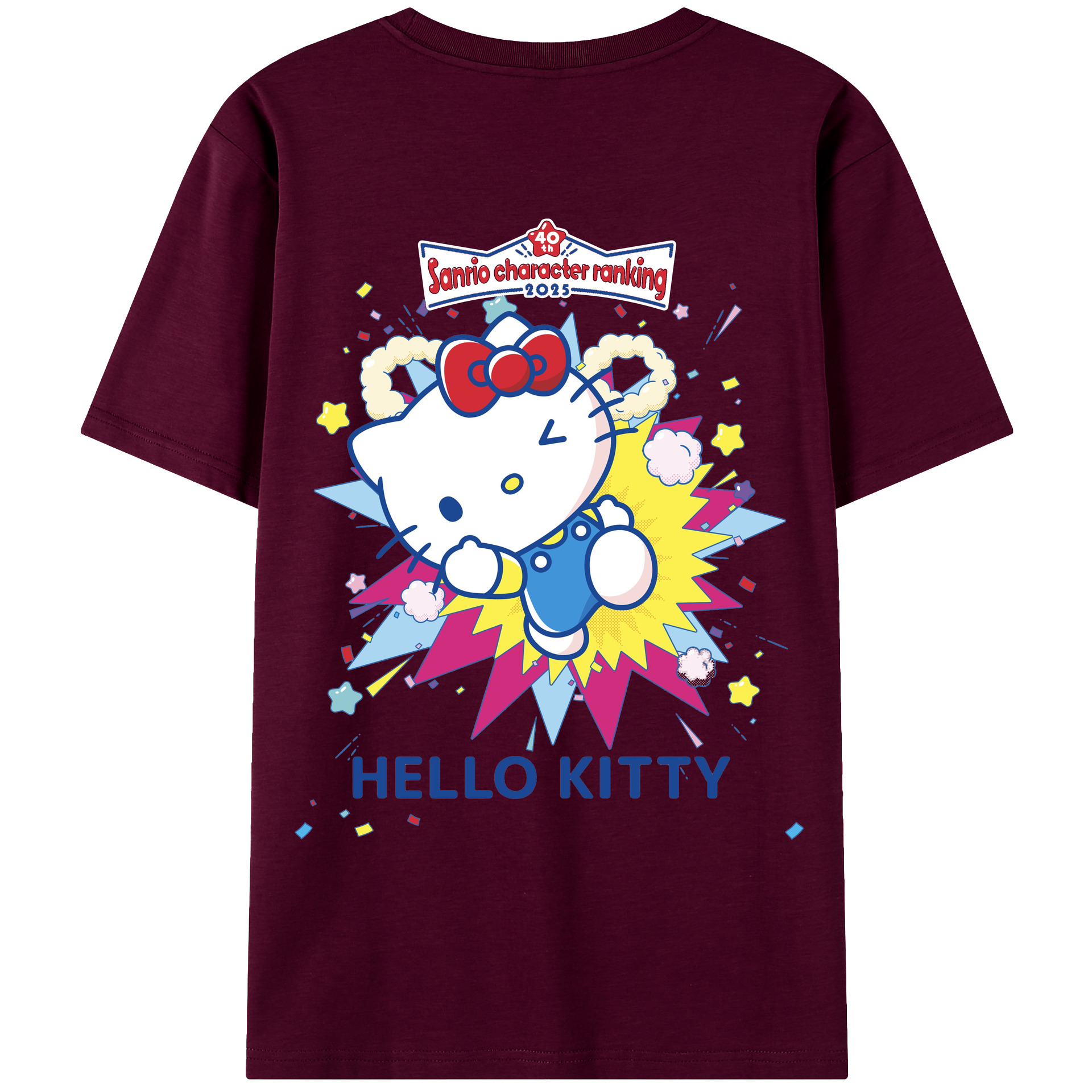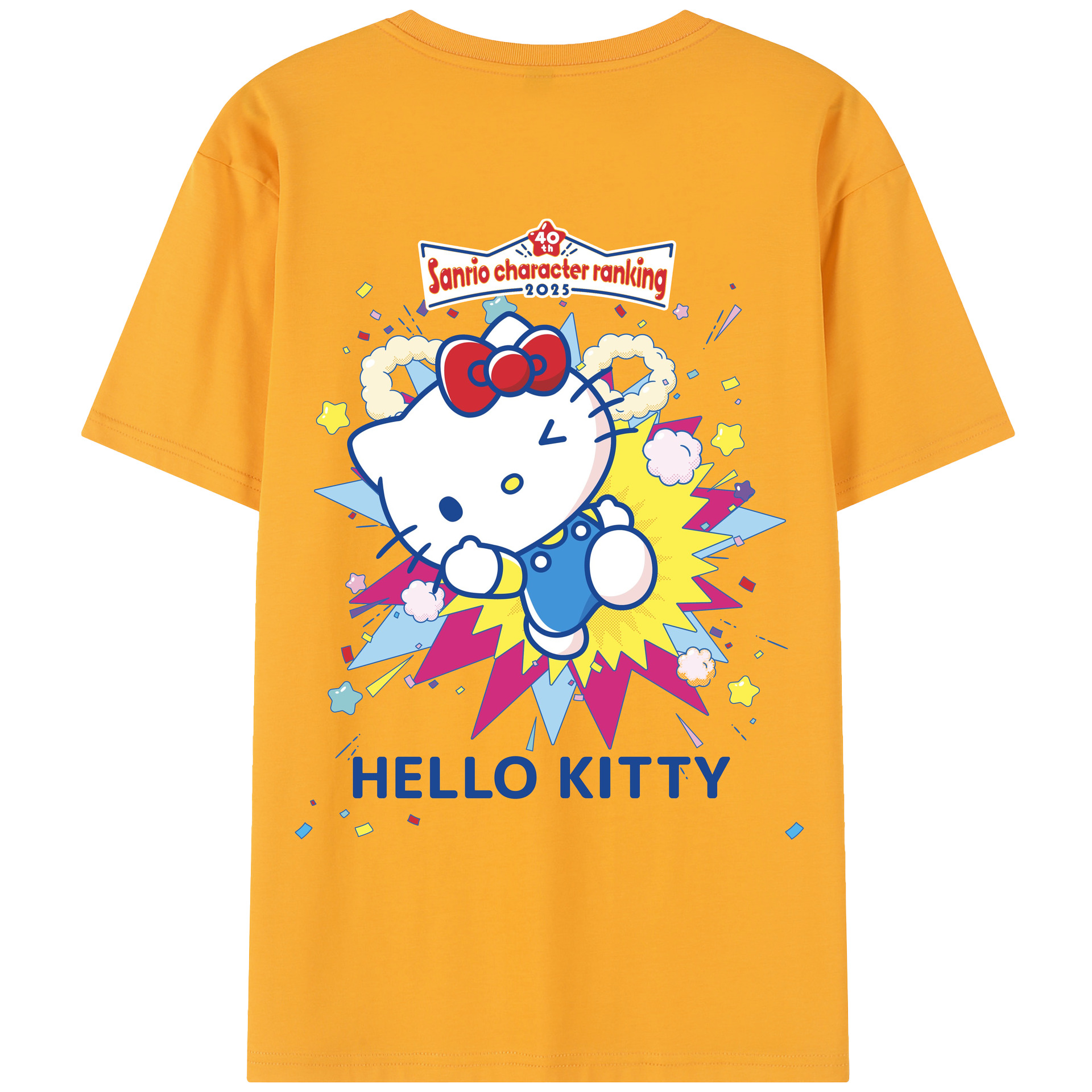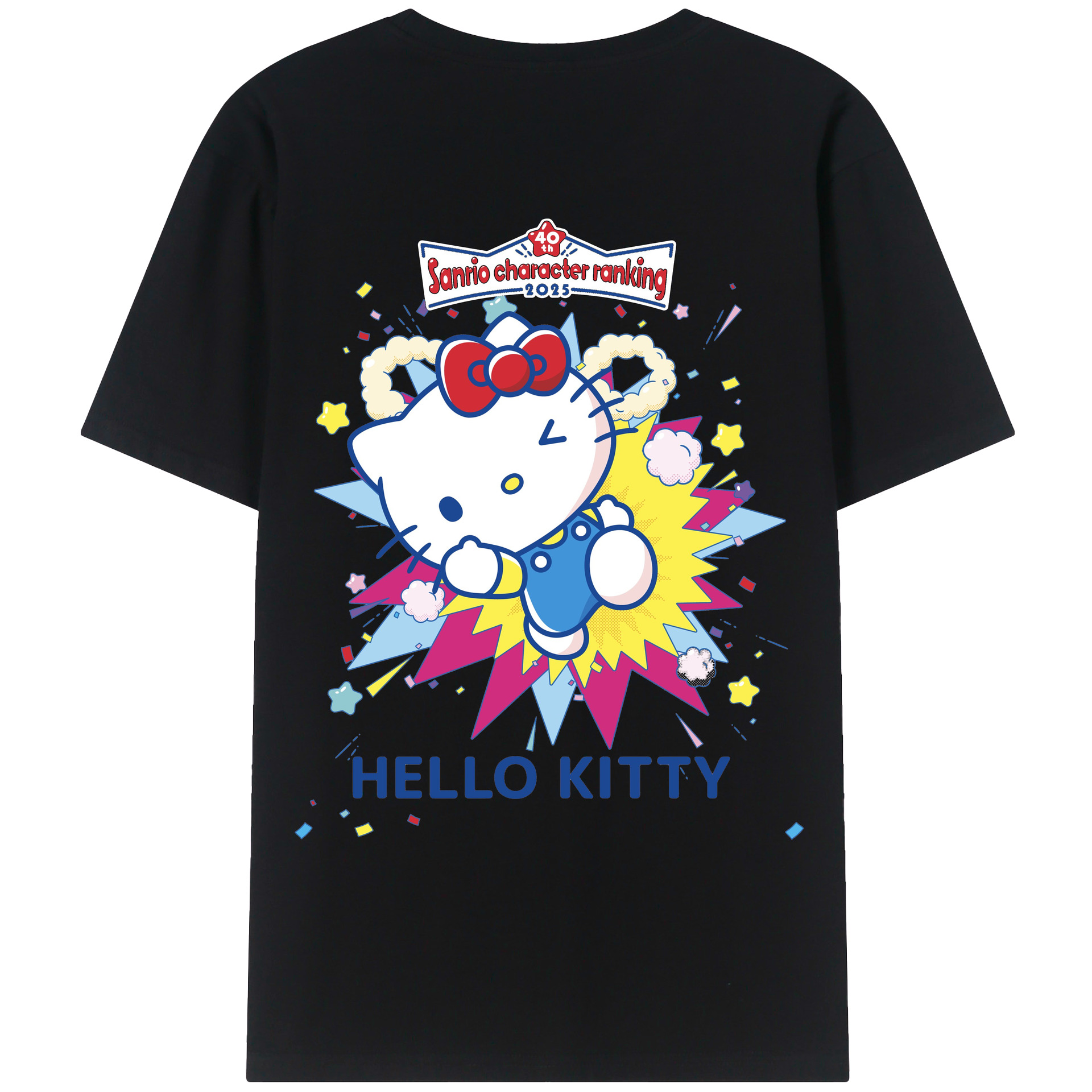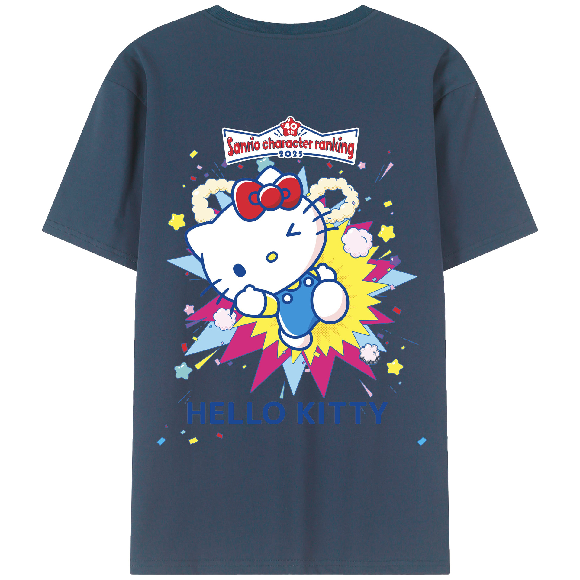 サンリオハローキティ - レディース半袖Tシャツ ・ 綿100% ・ バックプリント ・ 強化クルーネック ・ 二重折り袖口 ・ 快適 通気性 ・ フィットネス カジュアル 旅行用