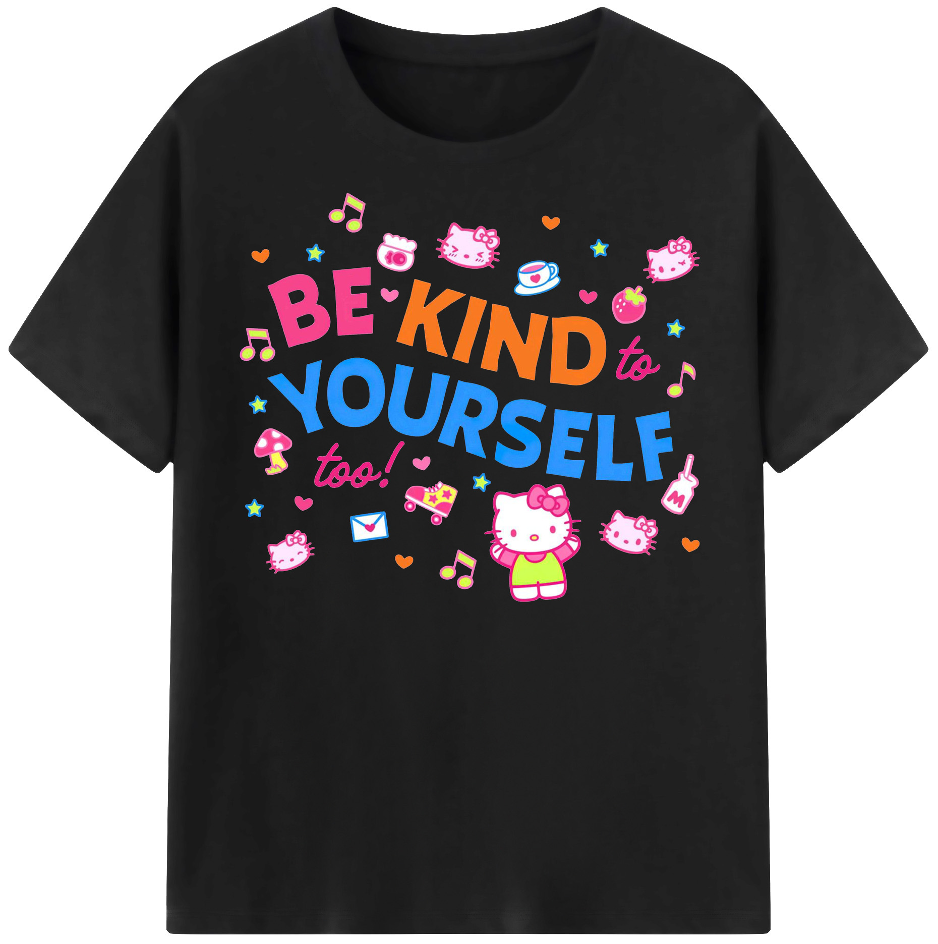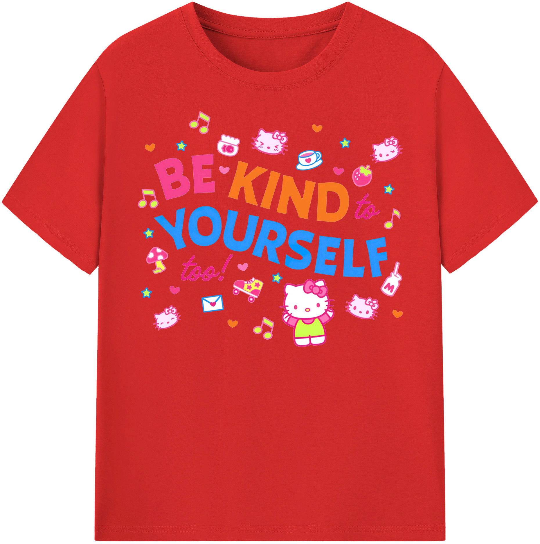 サンリオハローキティ - レディースカジュアルプリントTシャツ ・ 綿100% ・ クルーネック ・ フロントプリント ・ 柔らかく快適 ・ フィットネス カジュアル 旅行用