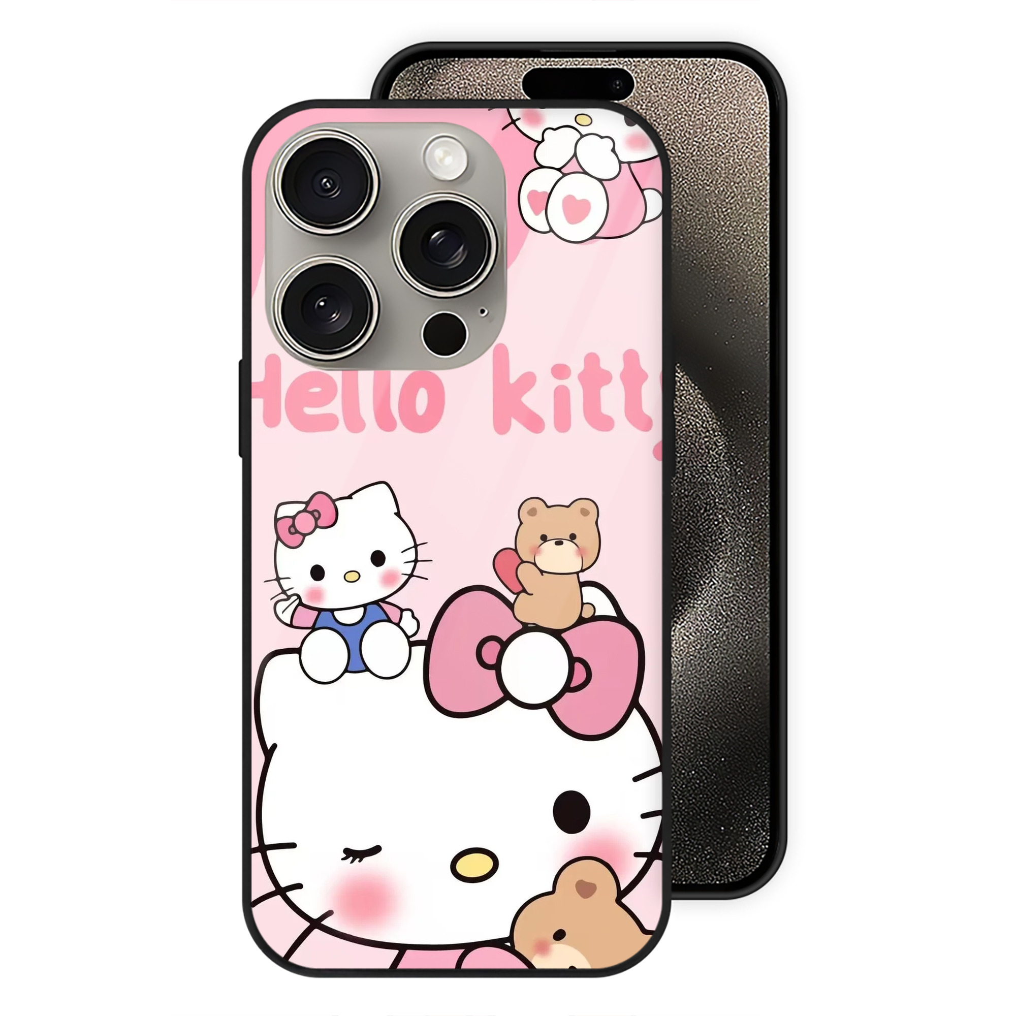 サンリオハローキティ - IPhone15Pro対応 ・ スマホケース ・ 背面ガラス ・ TPU+強化ガラス ・ 耐衝撃 ・ 黄変防止 ・ ワイヤレス充電対応 ・ 3D立体ボタン