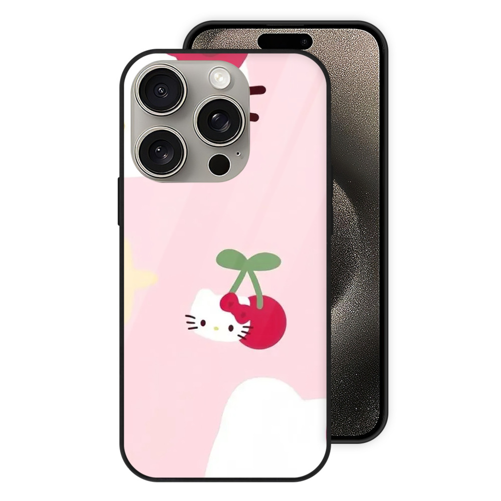 サンリオハローキティ - IPhone15Pro対応 ・ スマホケース ・ 背面ガラス ・ TPU+強化ガラス ・ 耐衝撃 ・ 黄変防止 ・ ワイヤレス充電対応 ・ 3D立体ボタン