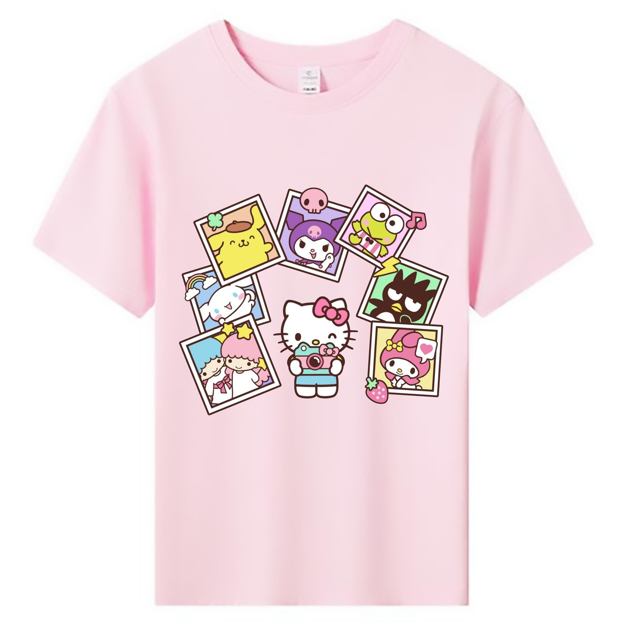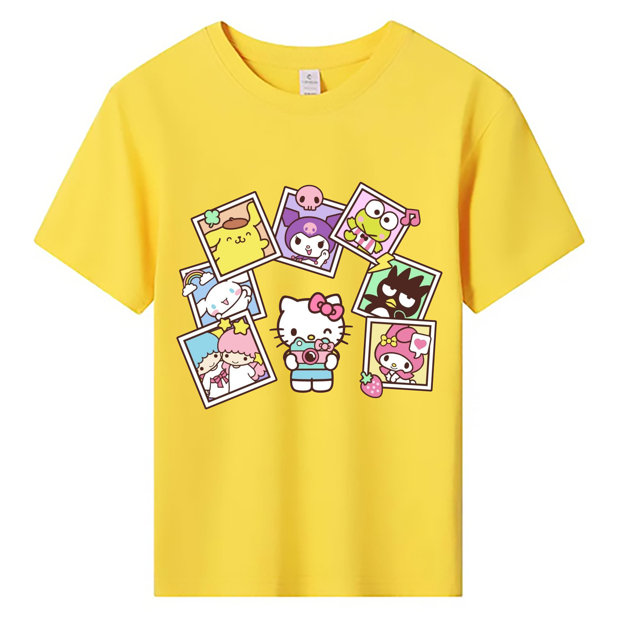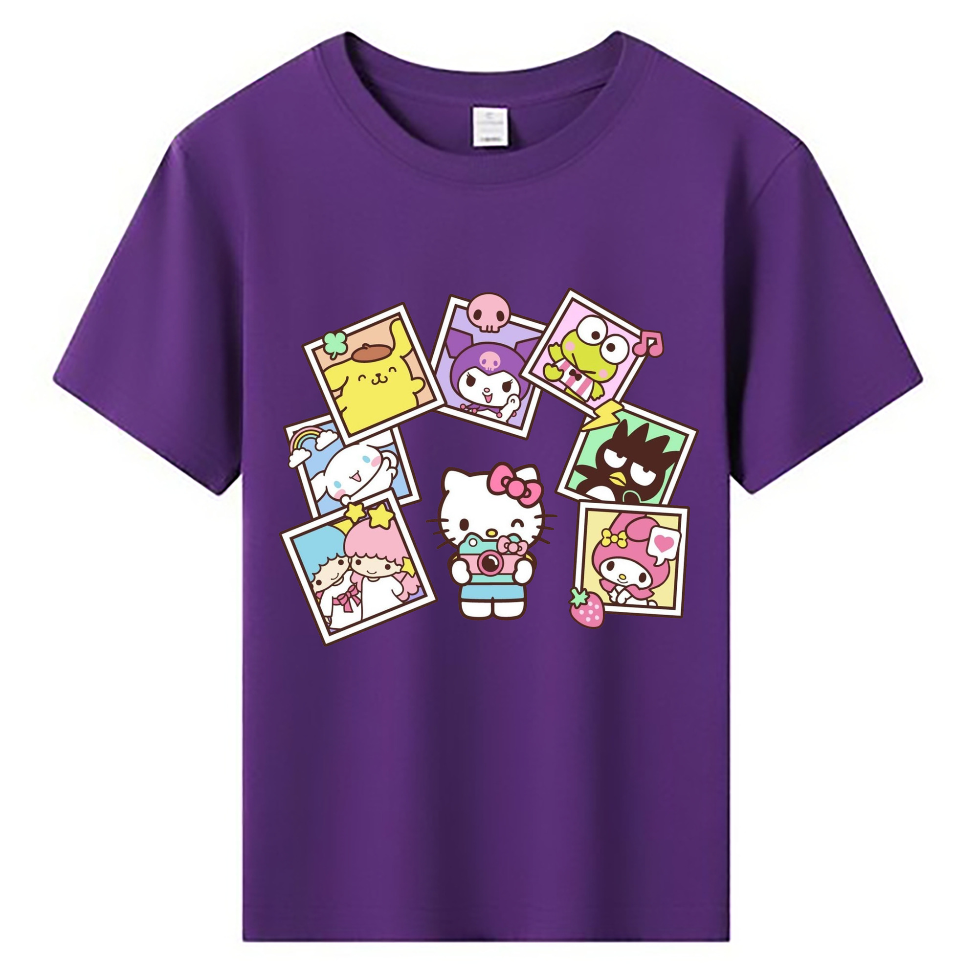 サンリオファミリー - 綿100% キッズTシャツ ・ フロントプリント ・ 快適 通気性 ・ スポーツ カジュアル 散歩用