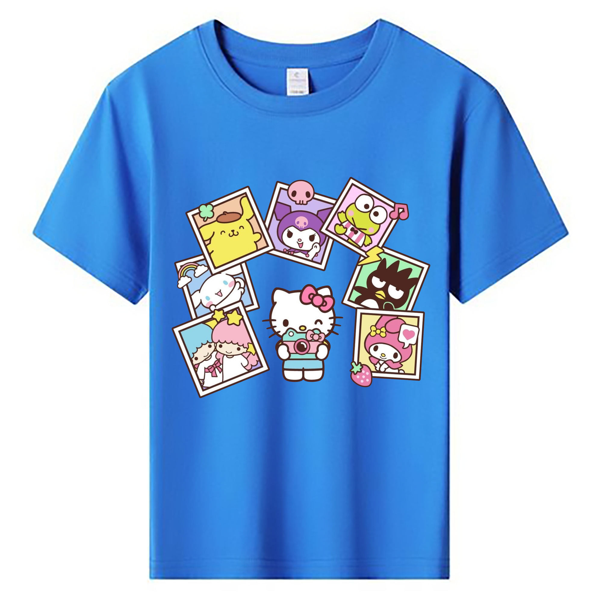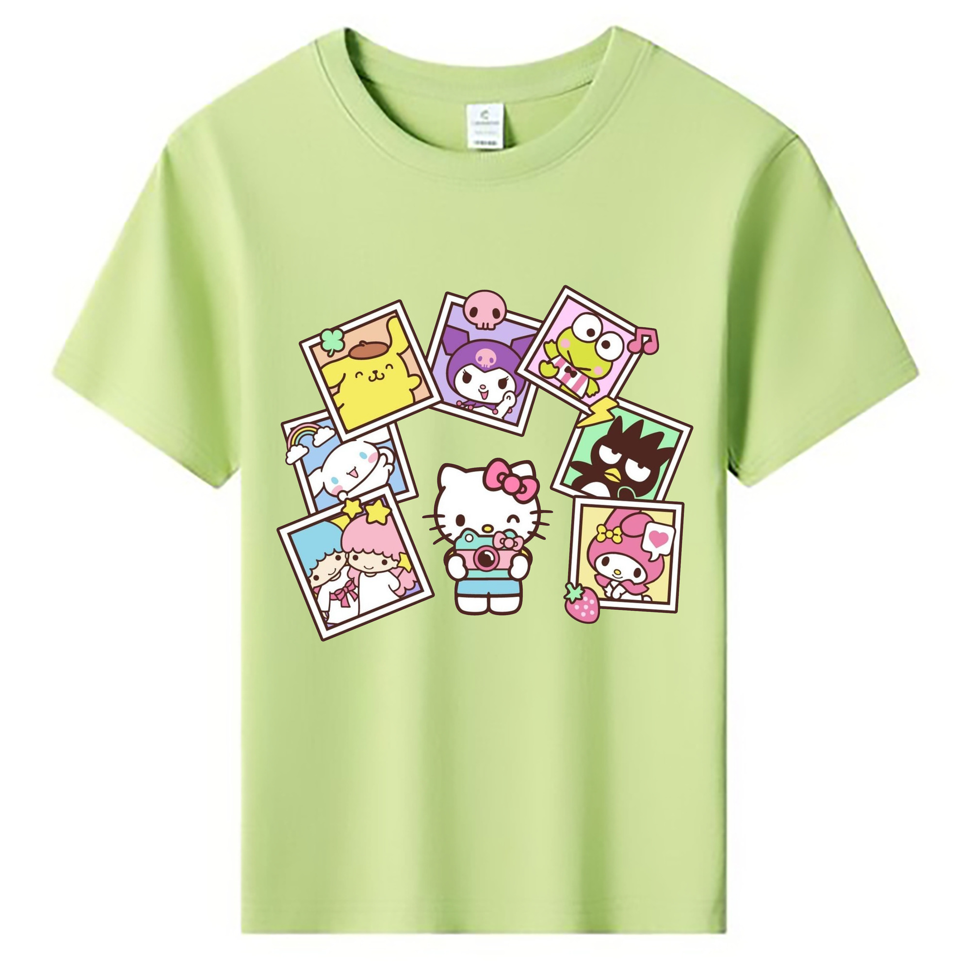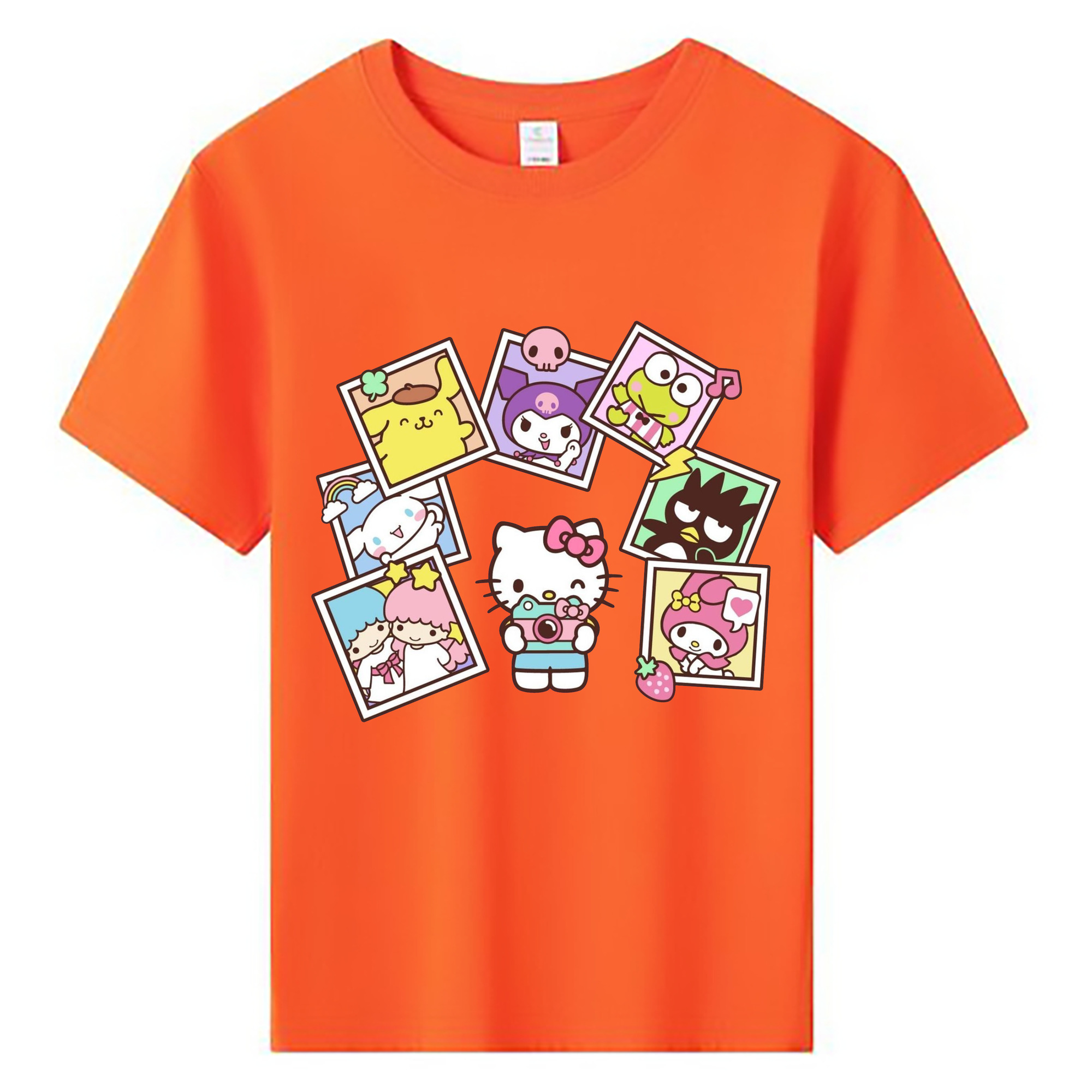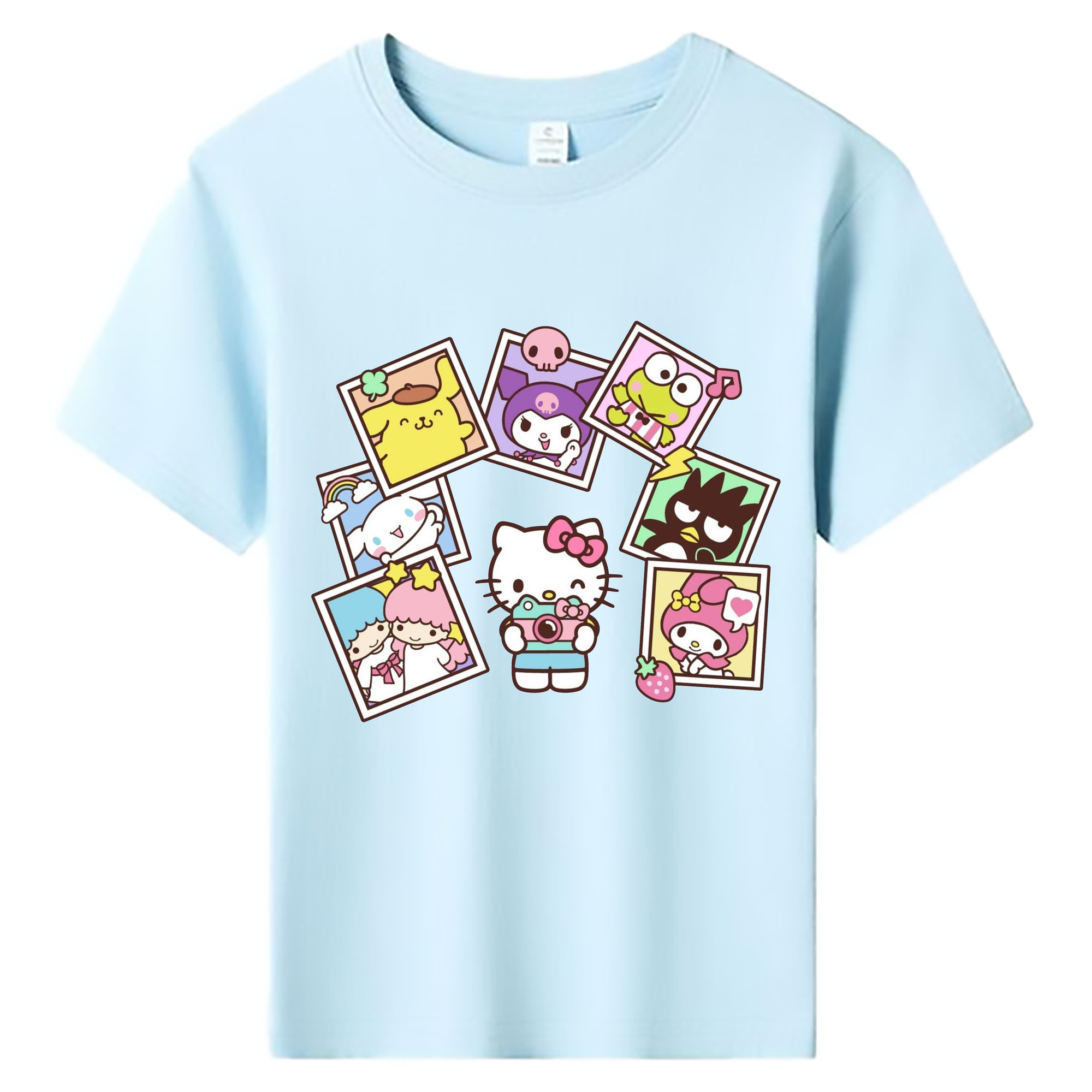 サンリオファミリー - 綿100% キッズTシャツ ・ フロントプリント ・ 快適 通気性 ・ スポーツ カジュアル 散歩用