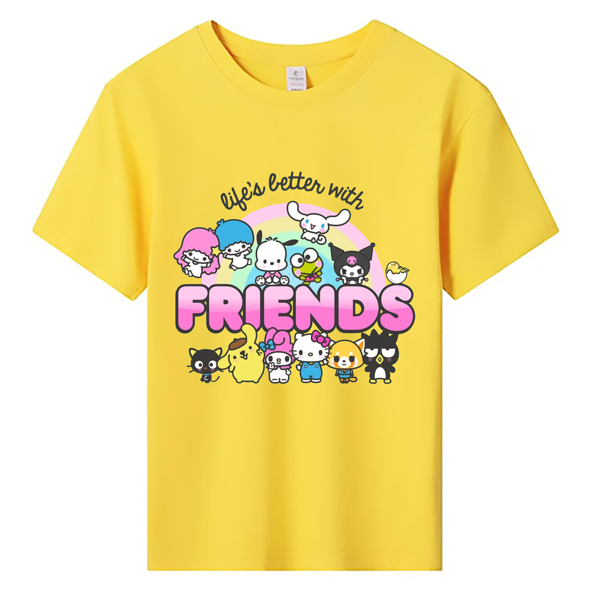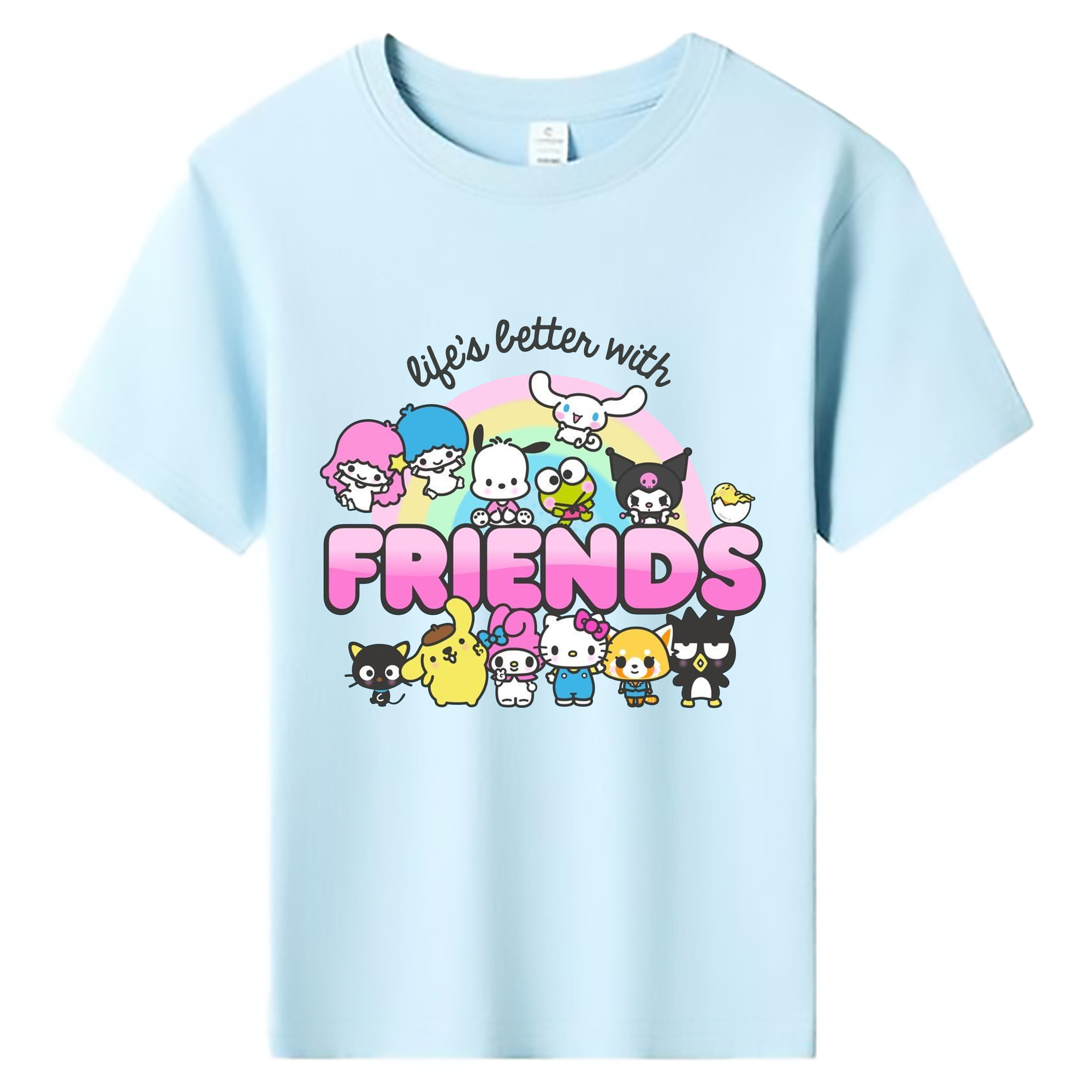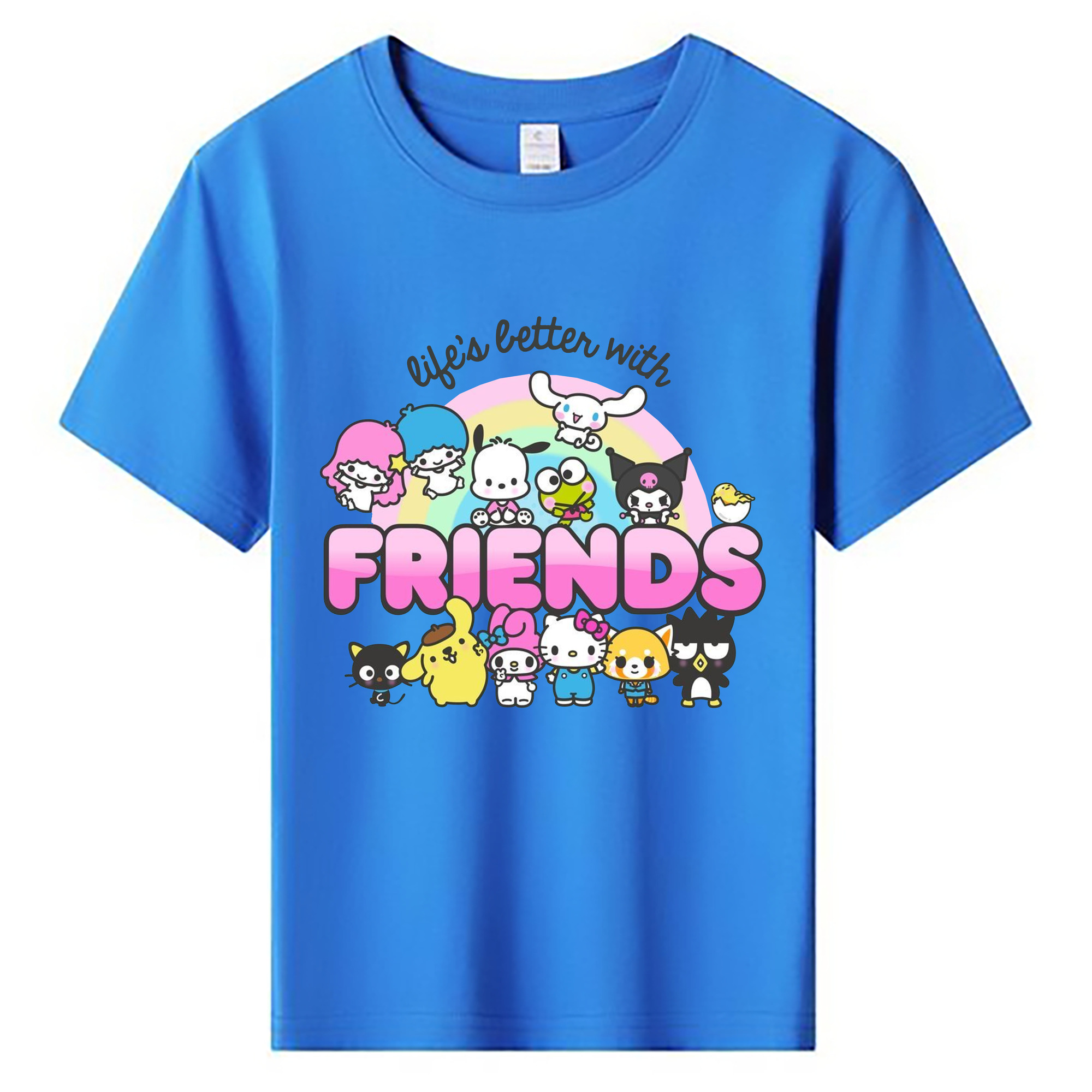 ハローキティ&ちいかわ - 綿100% キッズTシャツ ・ フロントプリント ・ 快適 通気性 ・ スポーツ カジュアル 散歩用