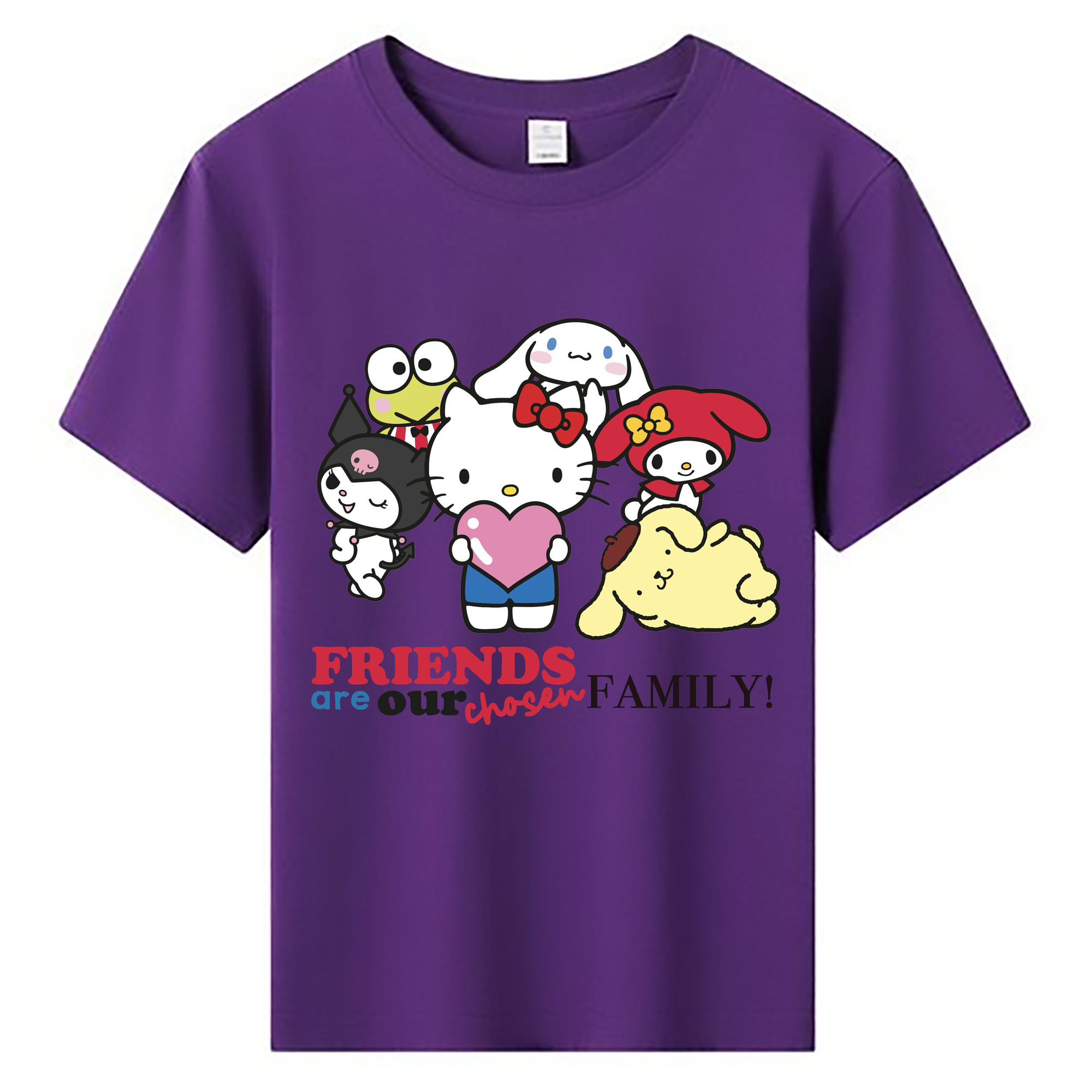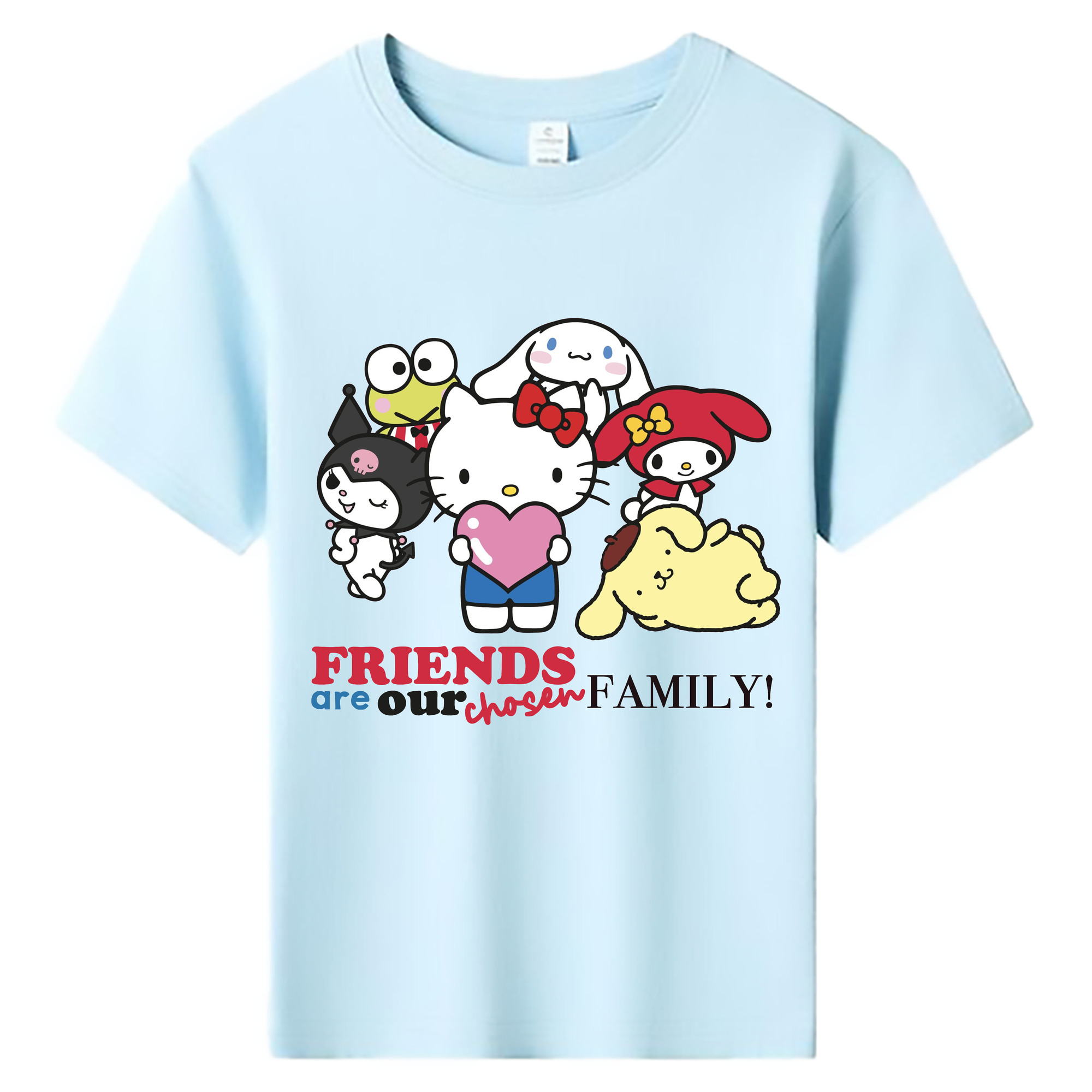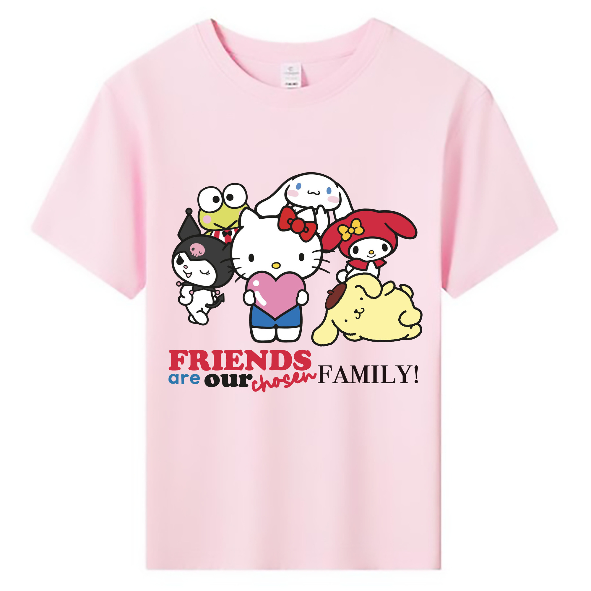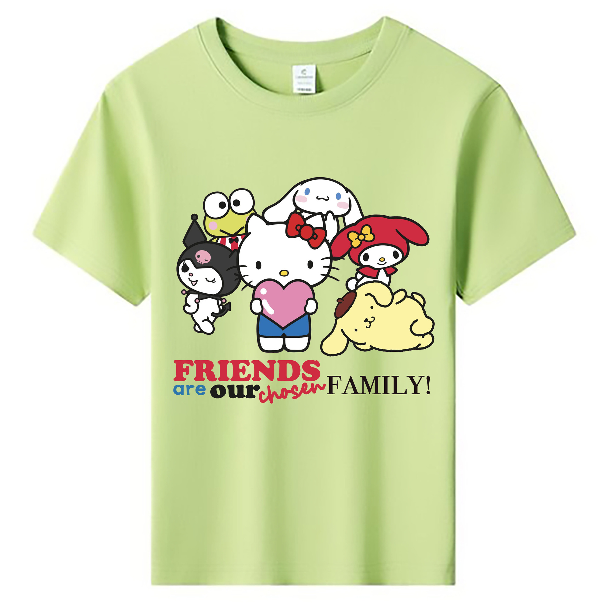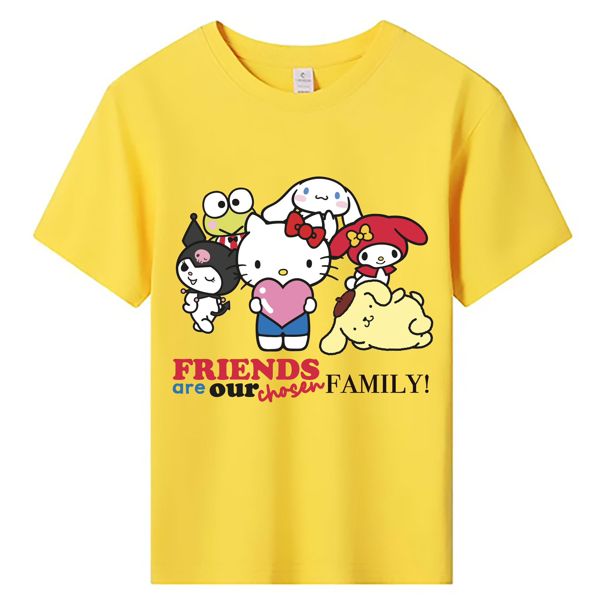 かわいい系サンリオ - 綿100% キッズTシャツ ・ フロントプリント ・ 快適 通気性 ・ スポーツ カジュアル 散歩用