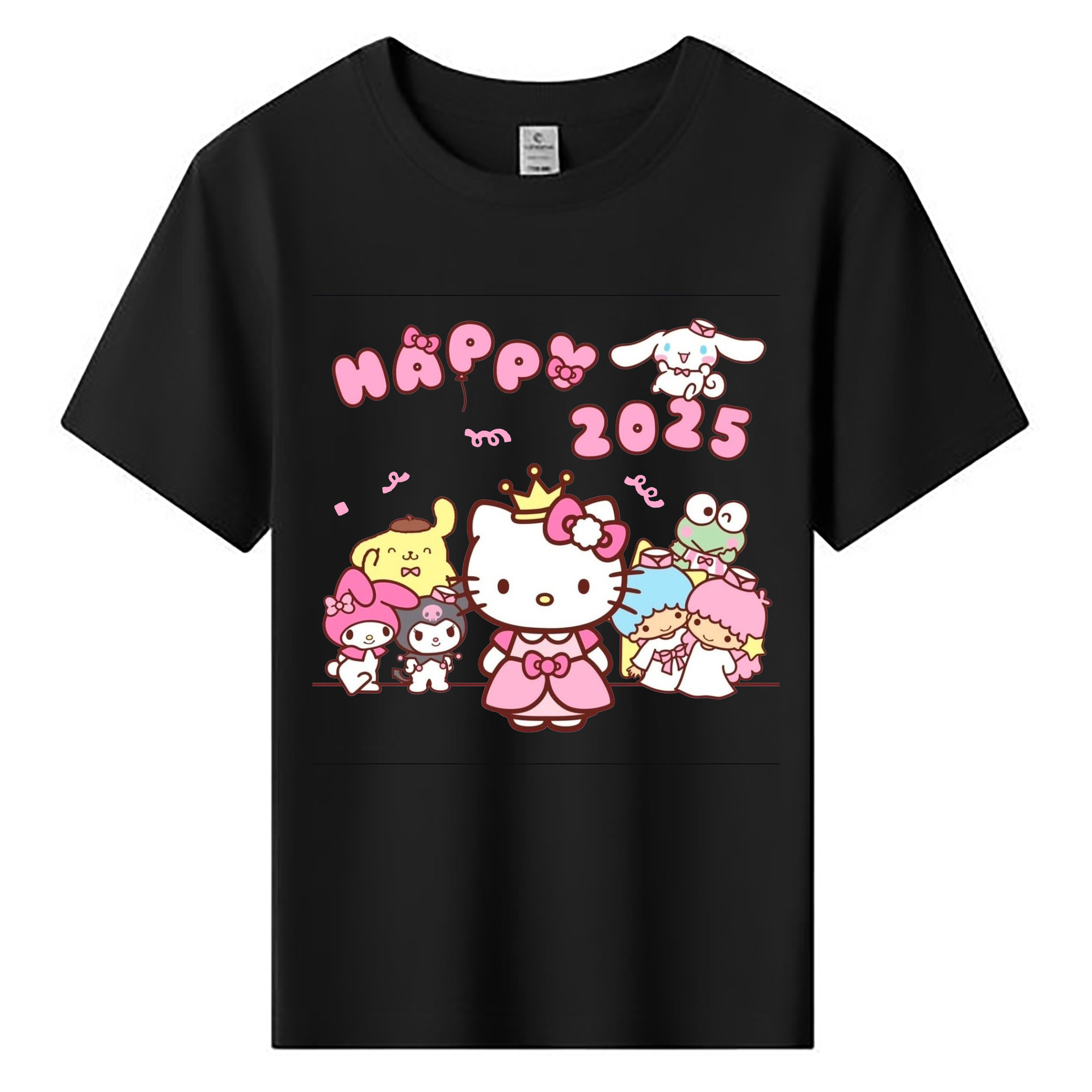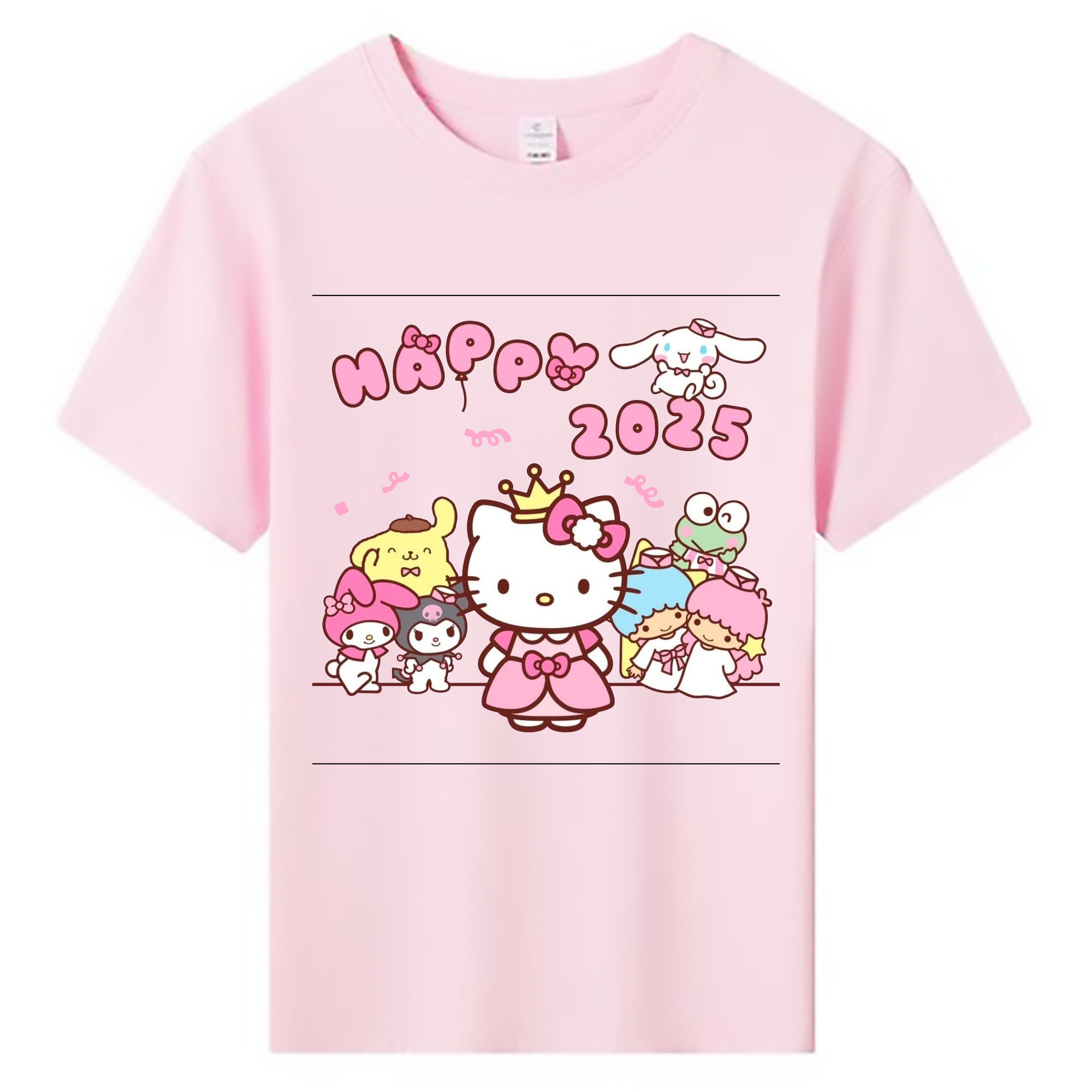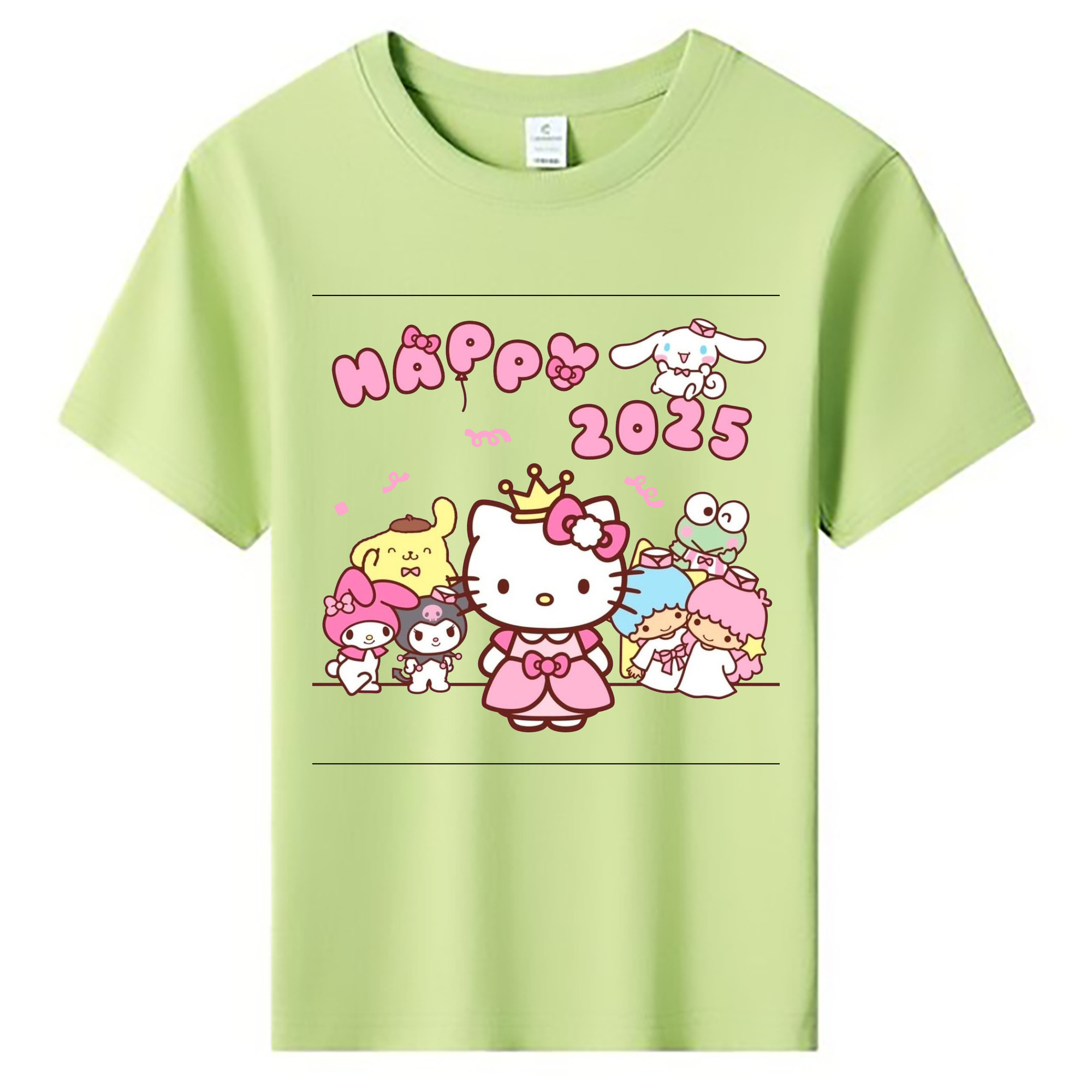 サンリオハローキティ&LABUBU ラブブ - 綿100% キッズTシャツ ・ フロントプリント ・ 快適 通気性 ・ スポーツ カジュアル 散歩用