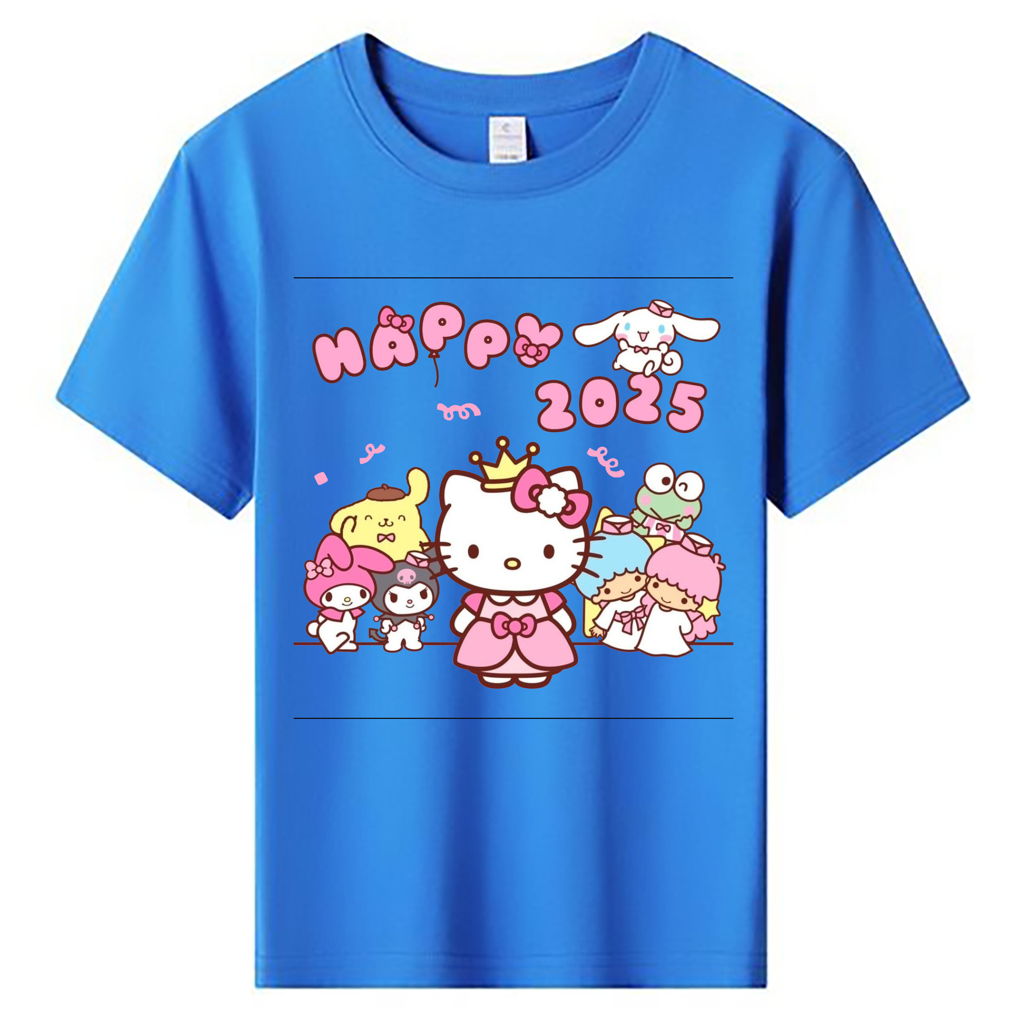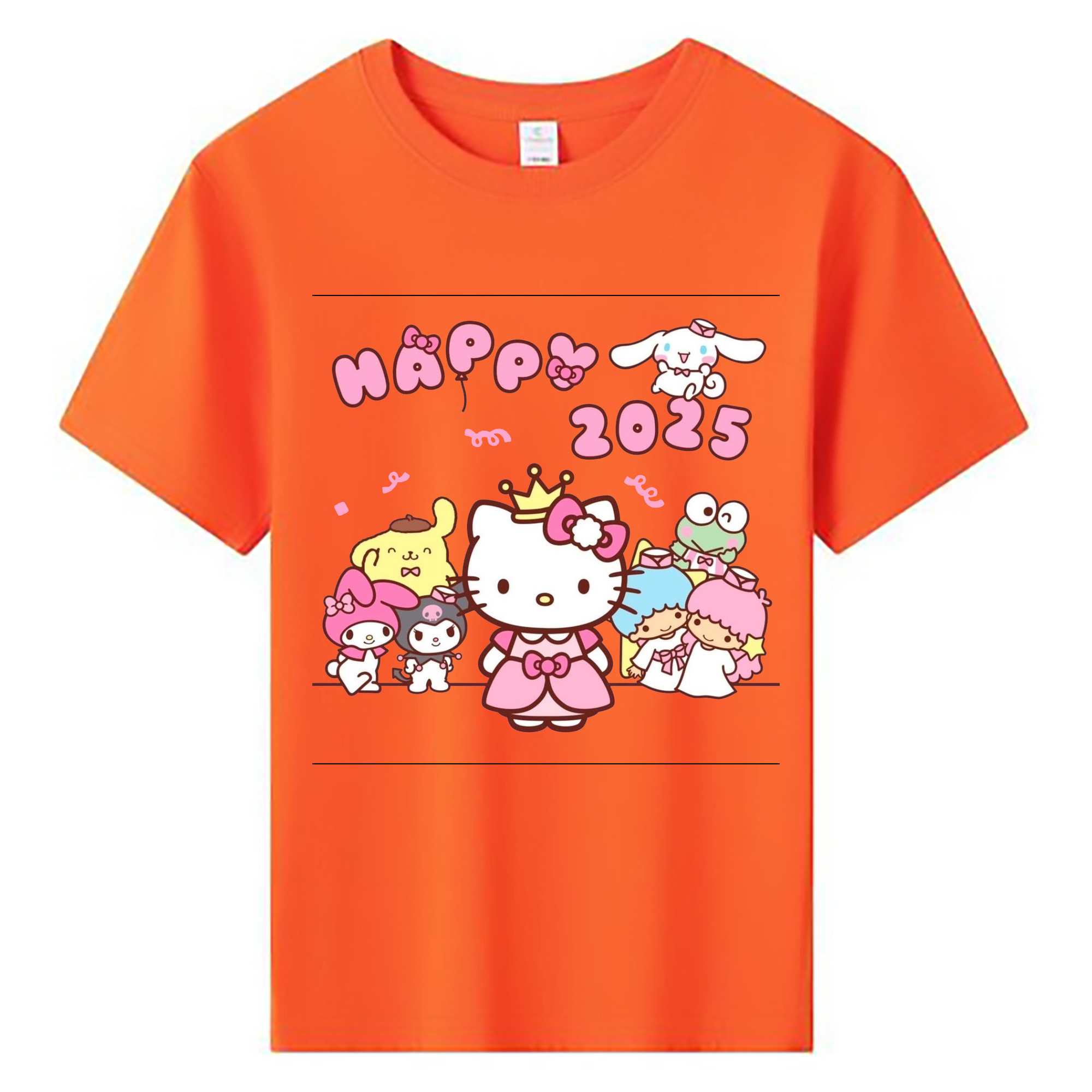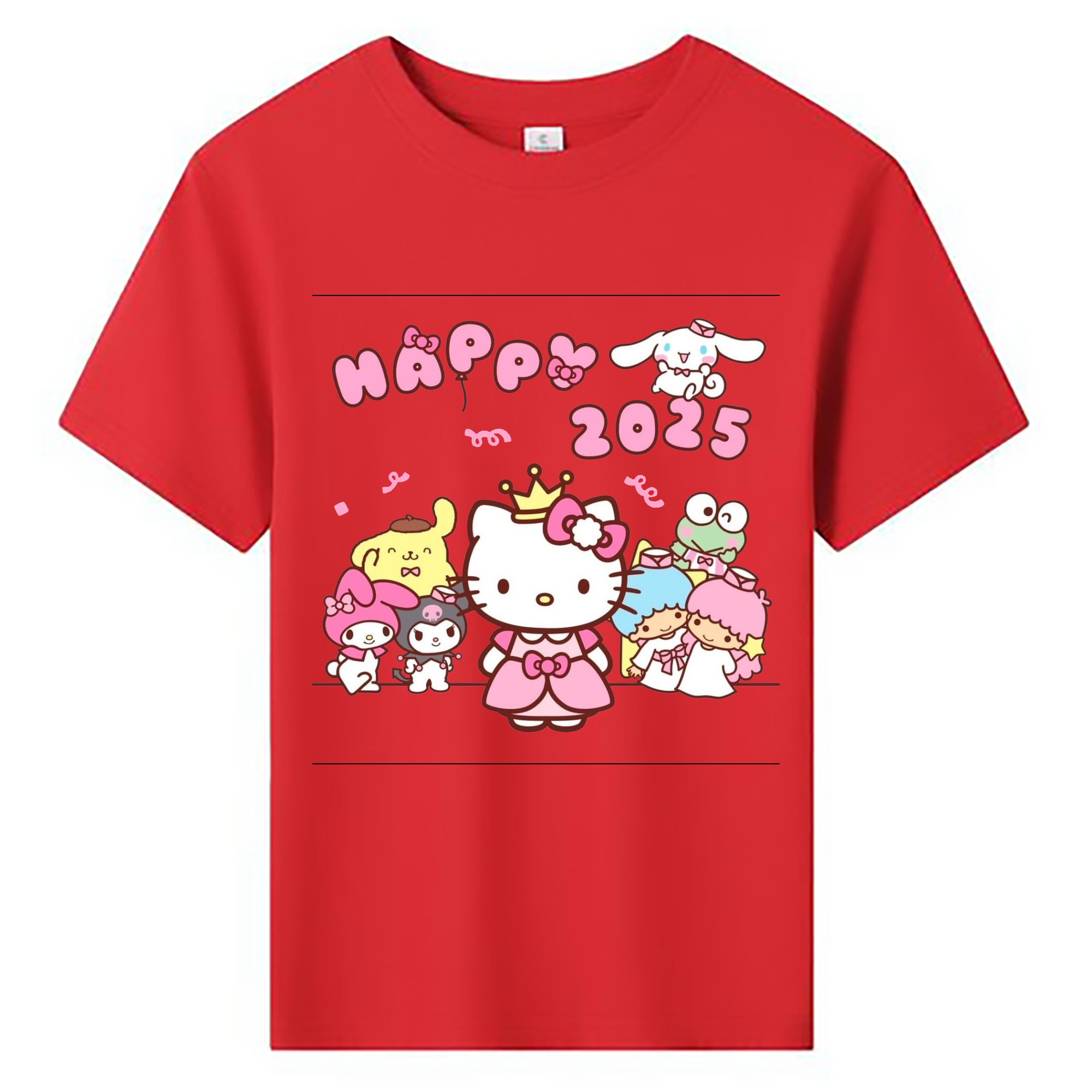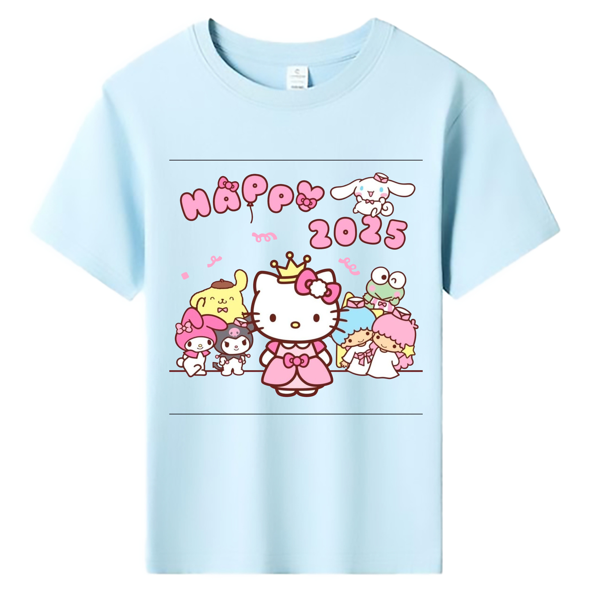 サンリオハローキティ&LABUBU ラブブ - 綿100% キッズTシャツ ・ フロントプリント ・ 快適 通気性 ・ スポーツ カジュアル 散歩用