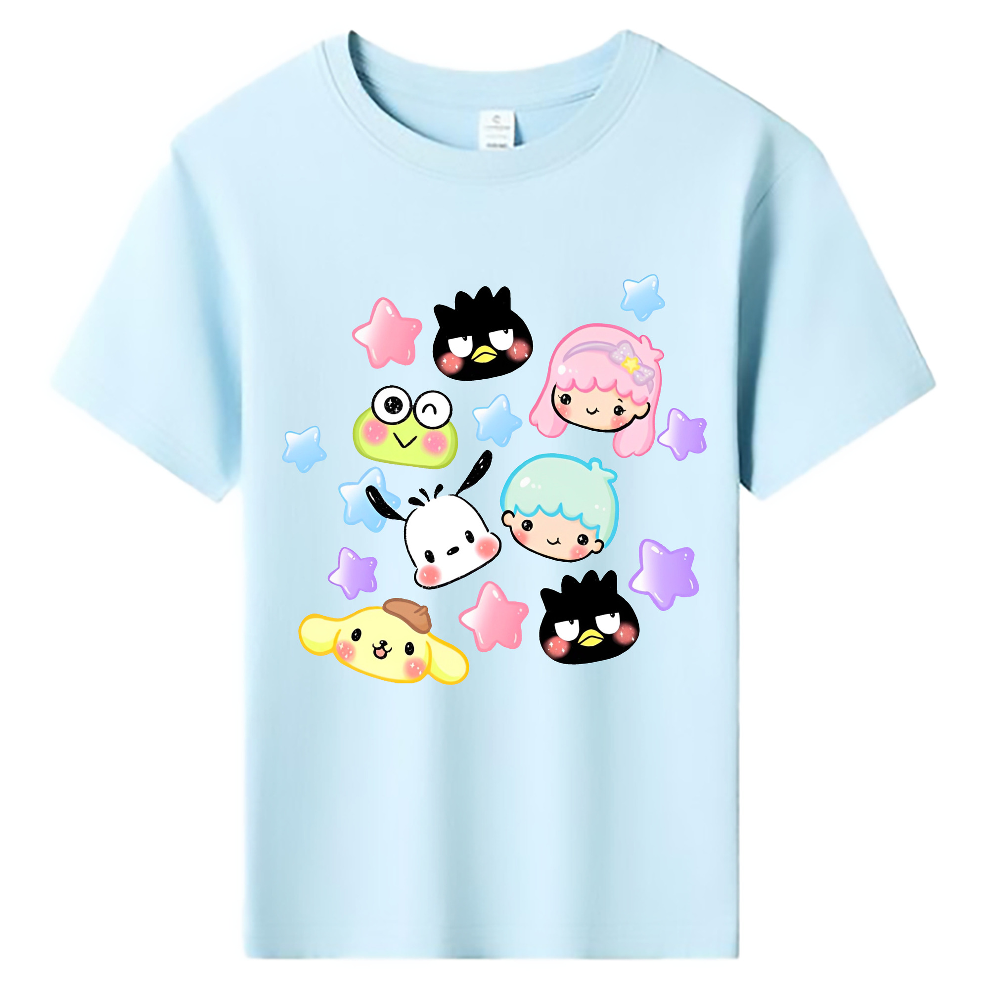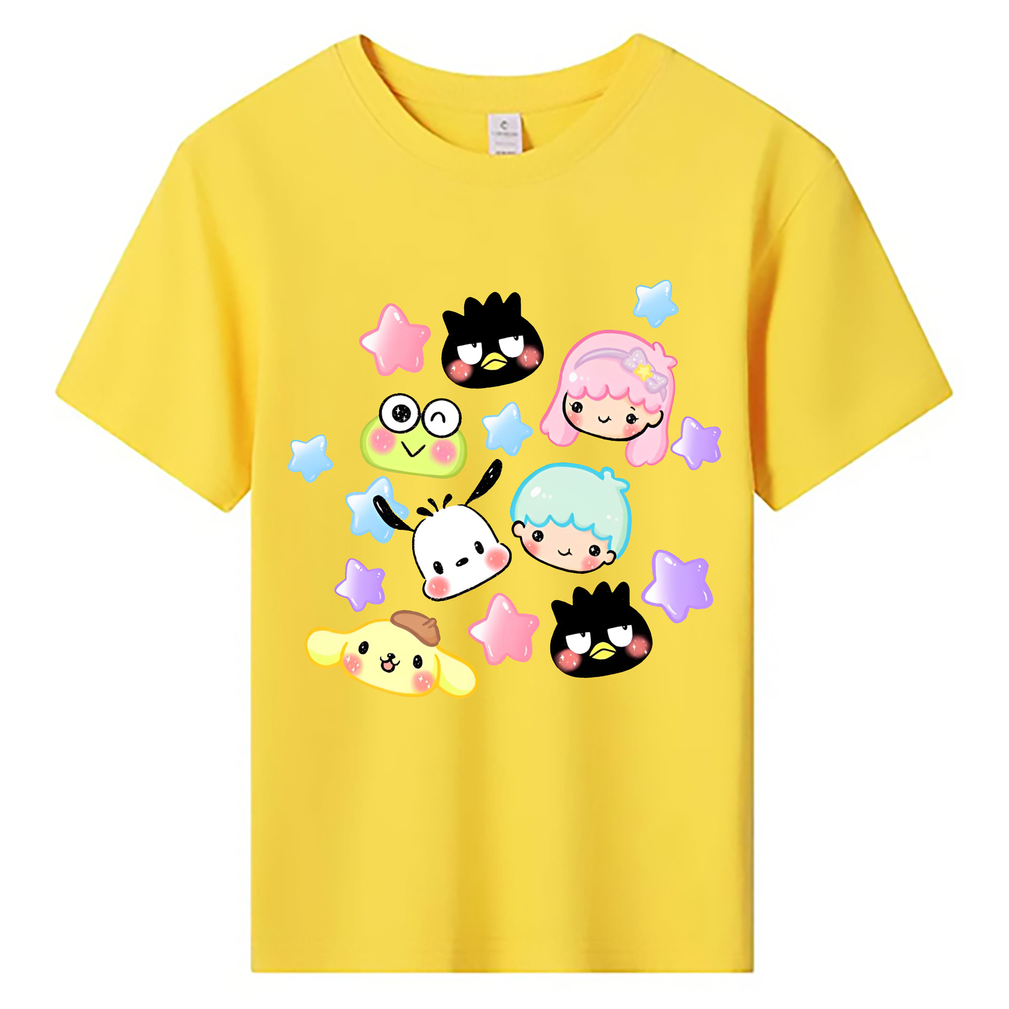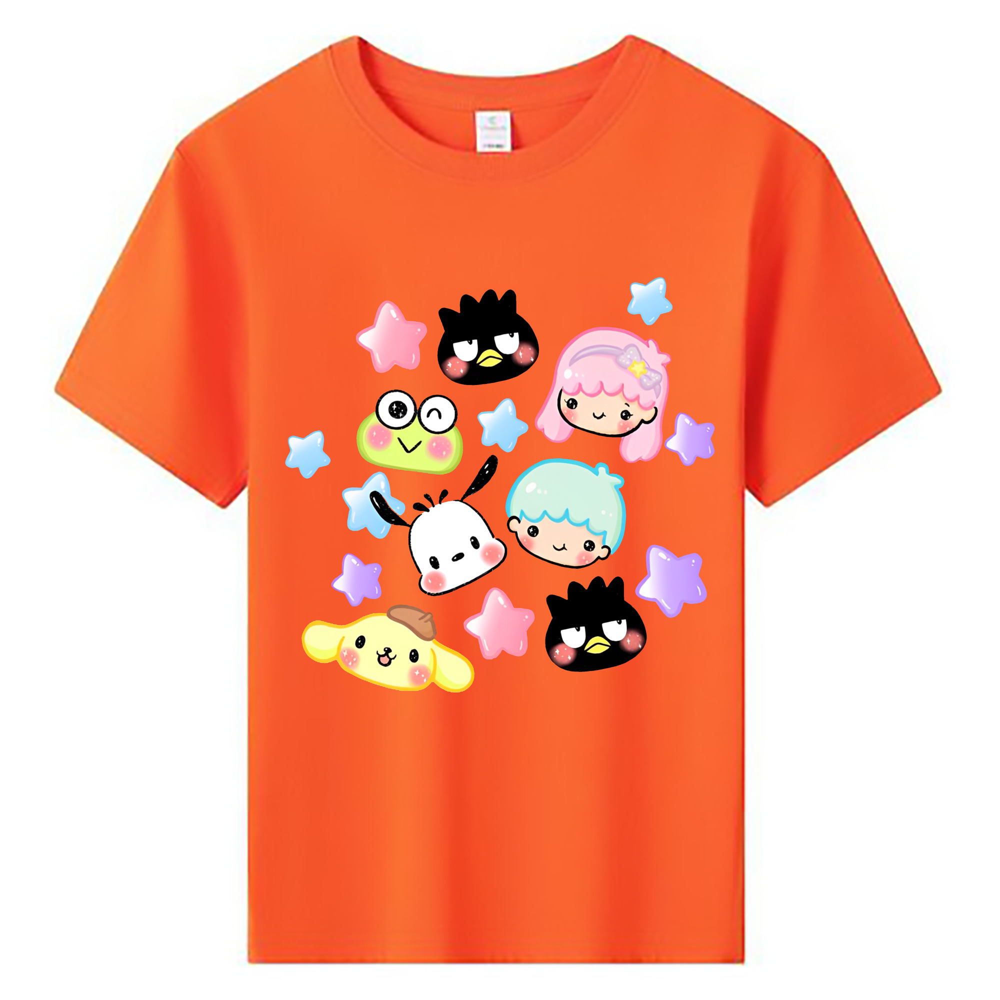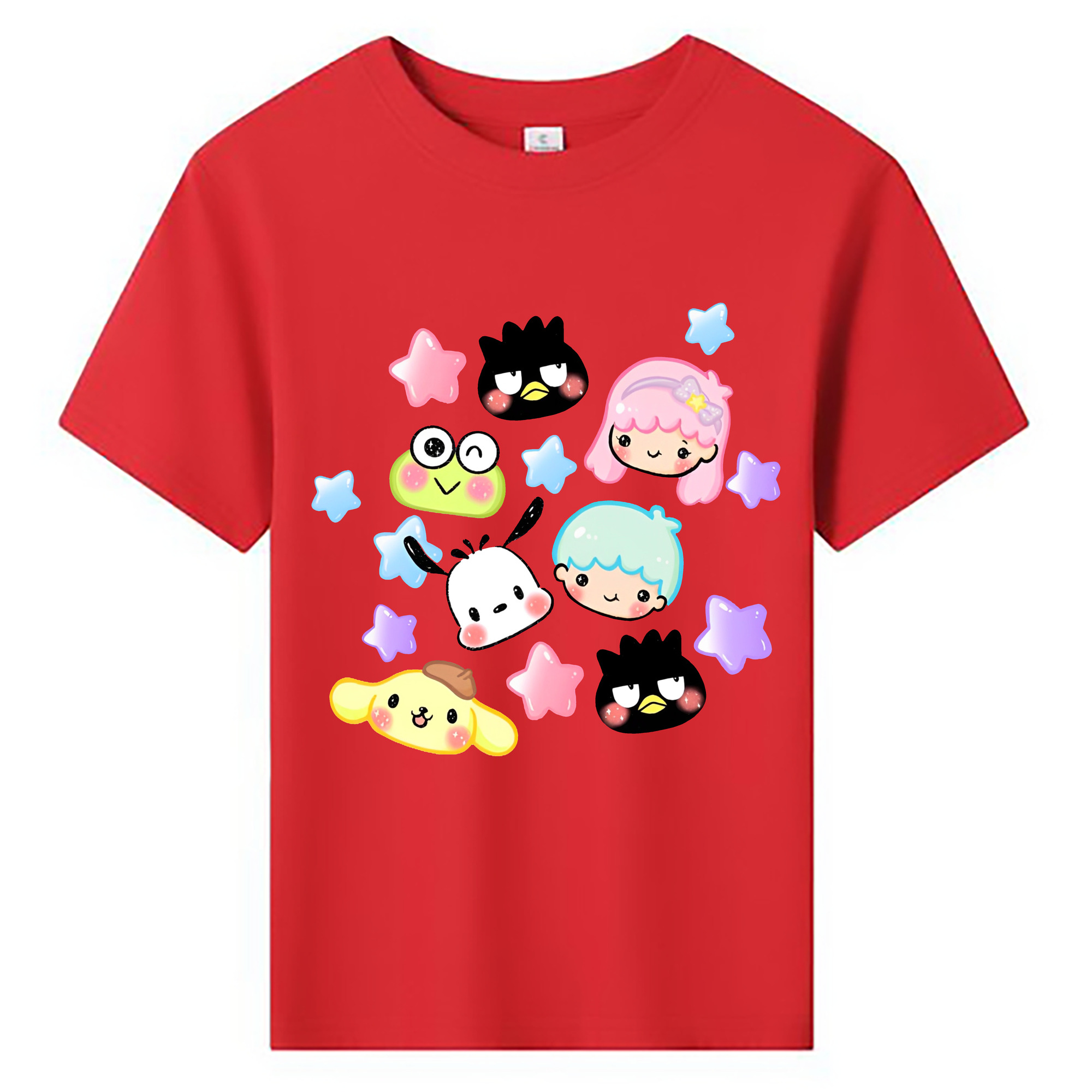 サンリオファミリー - 綿100% キッズTシャツ ・ フロントプリント ・ 快適 通気性 ・ スポーツ カジュアル 散歩用