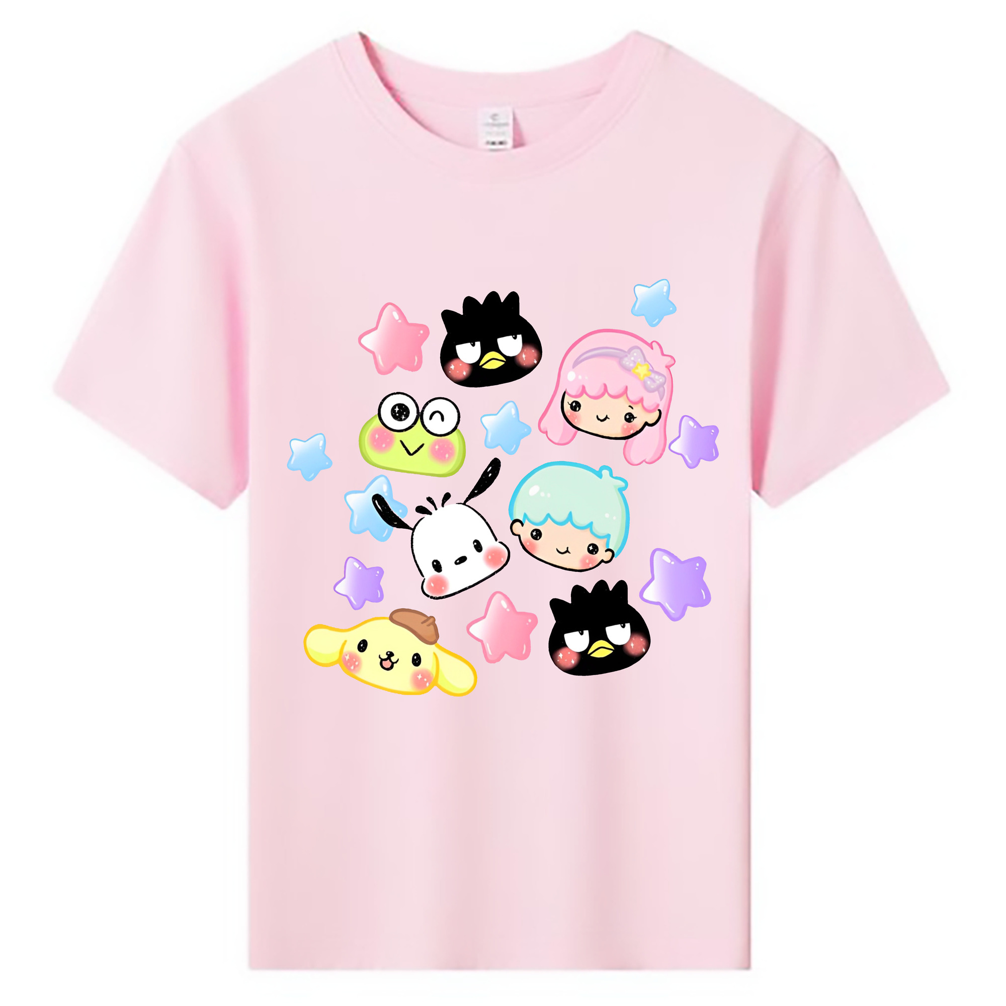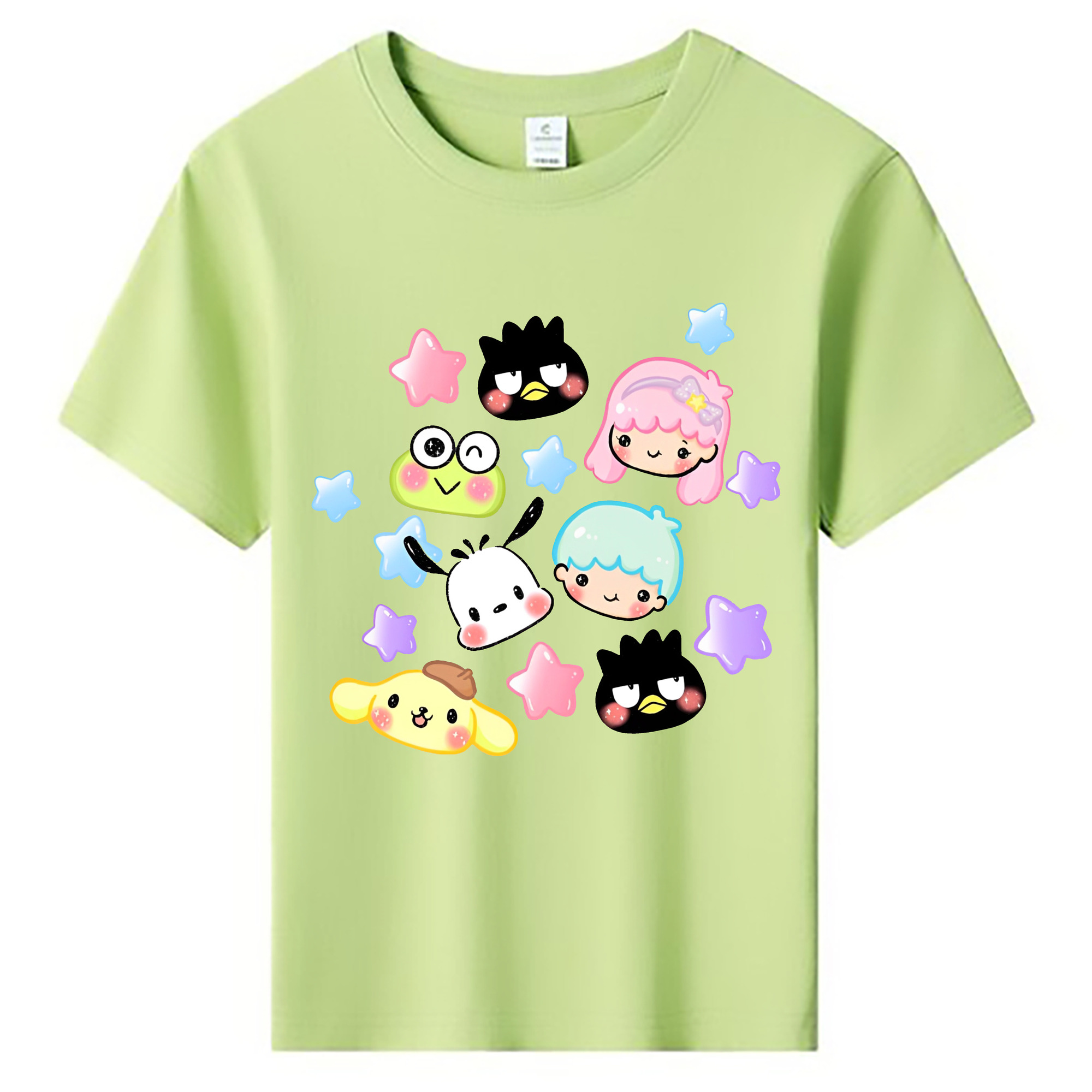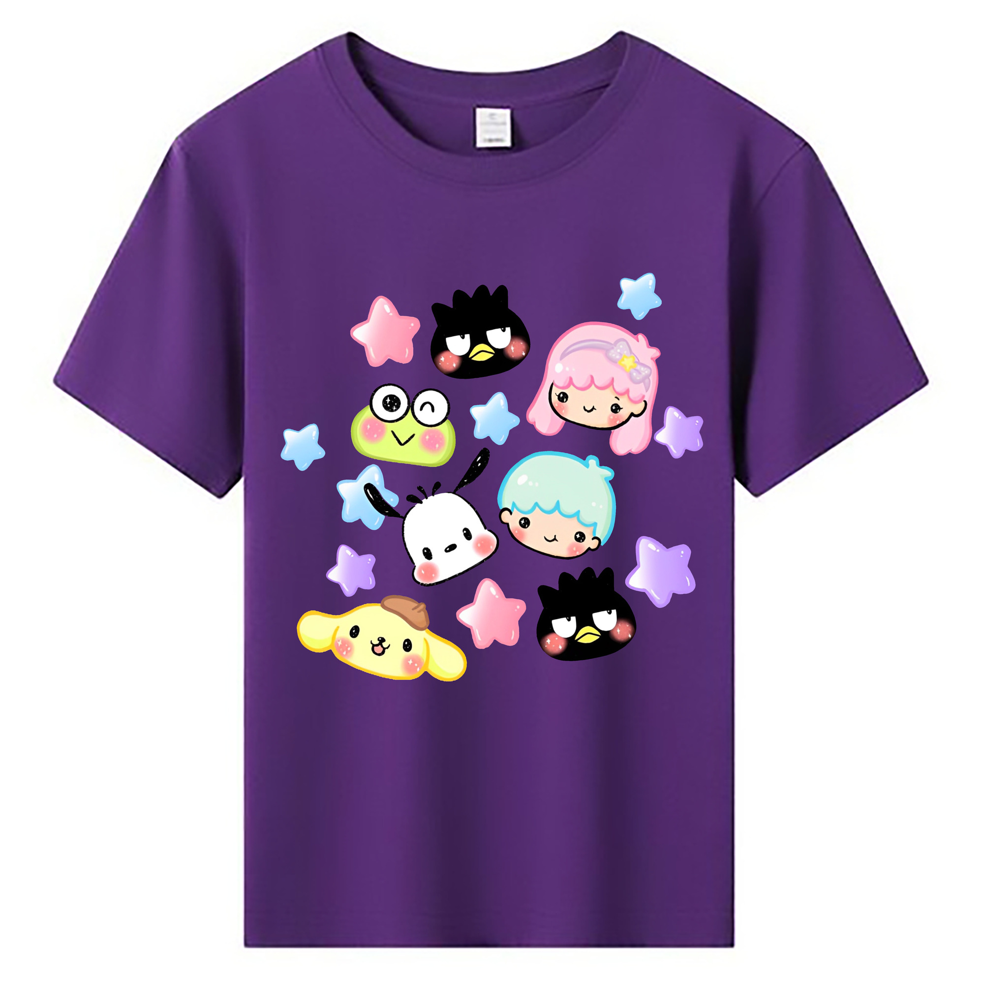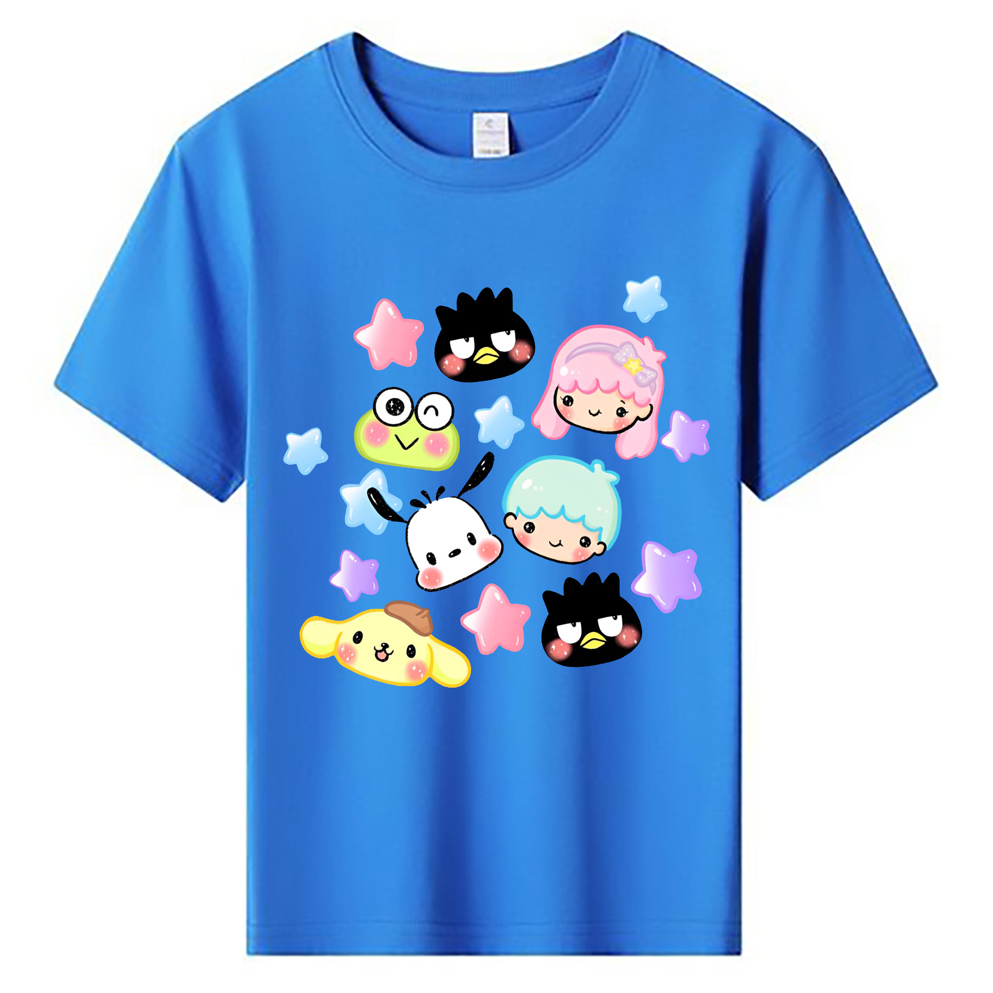 サンリオファミリー - 綿100% キッズTシャツ ・ フロントプリント ・ 快適 通気性 ・ スポーツ カジュアル 散歩用