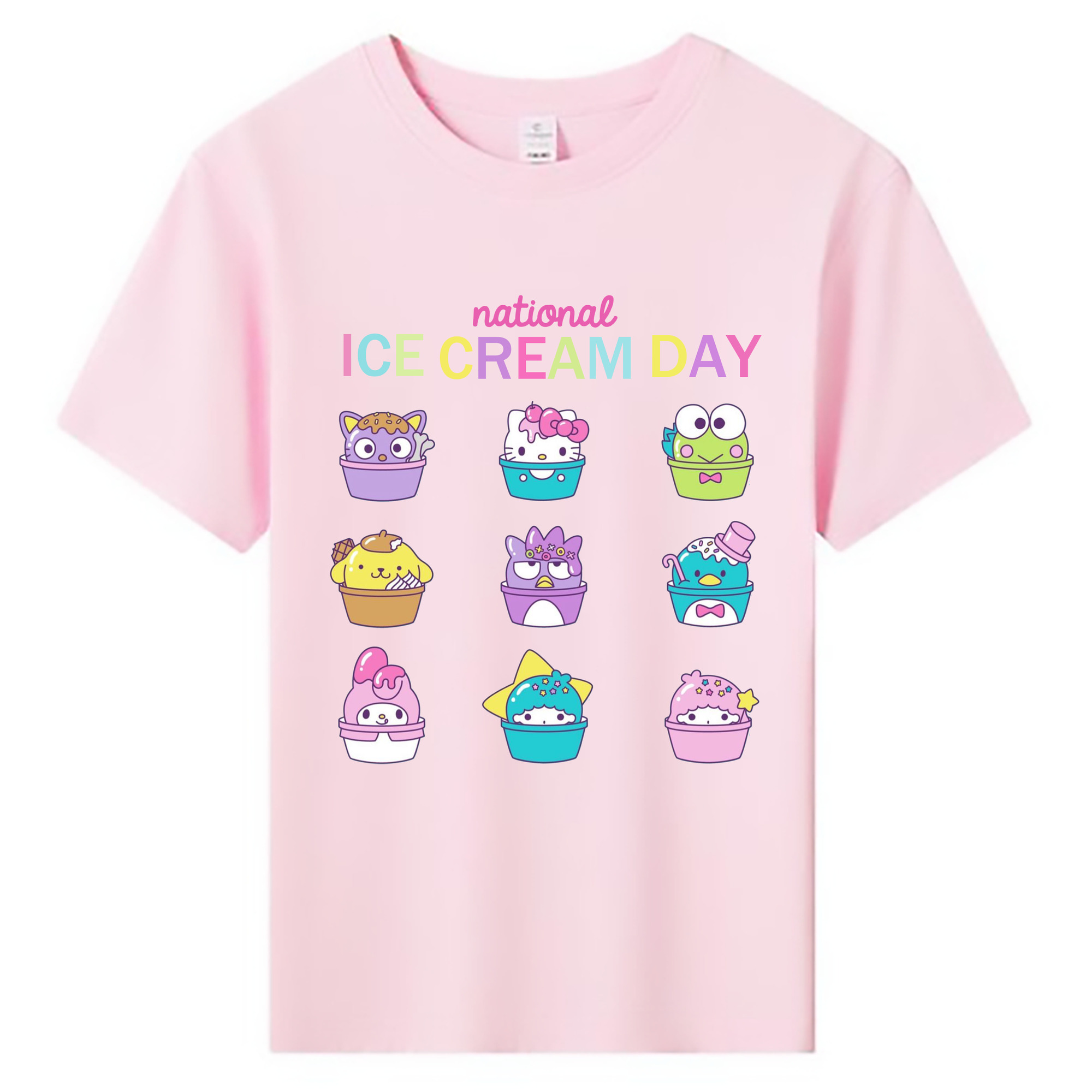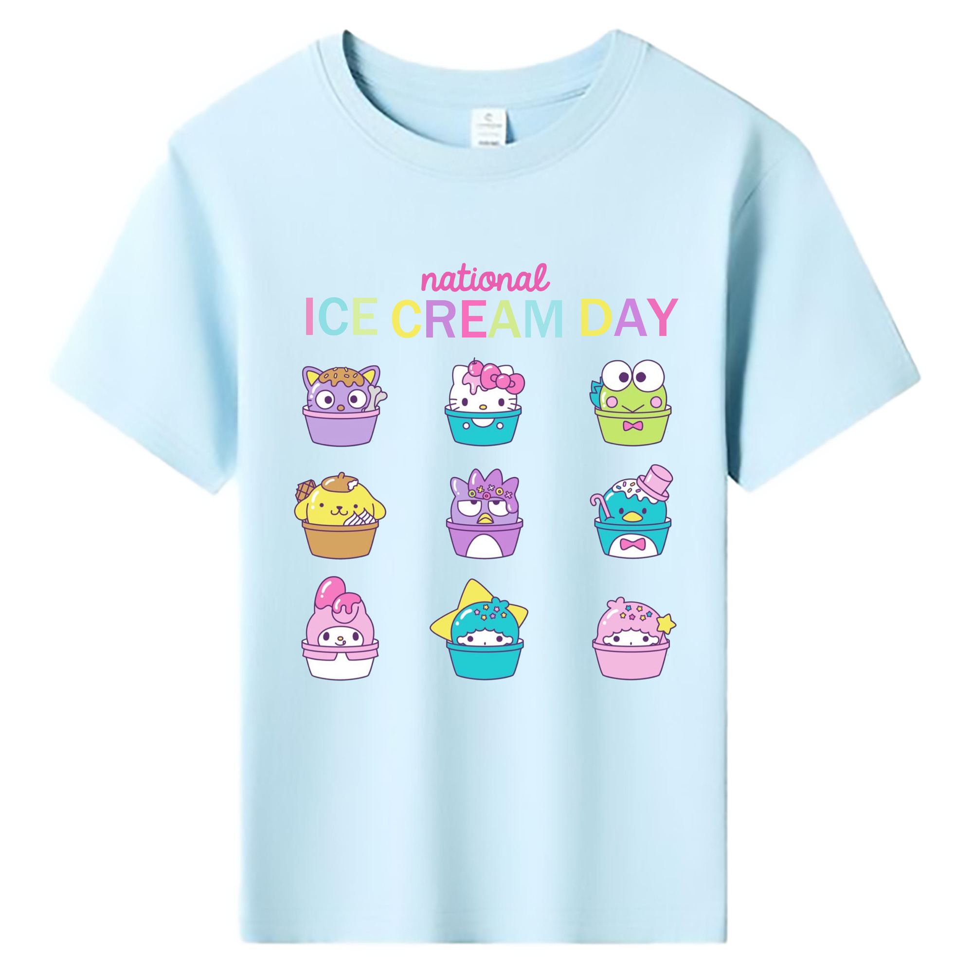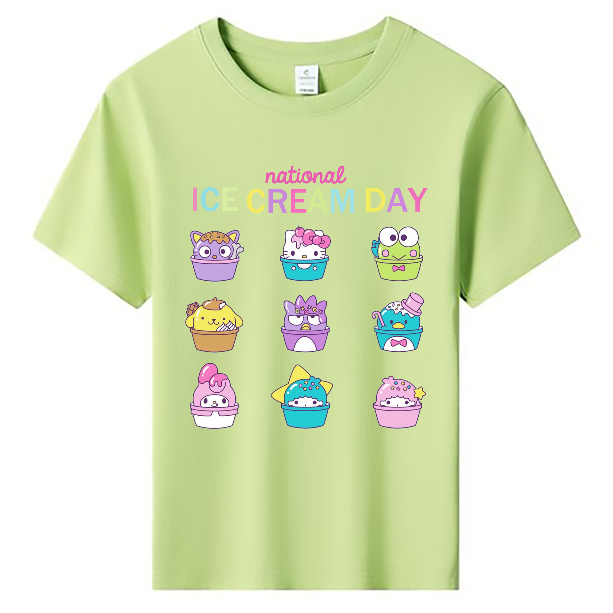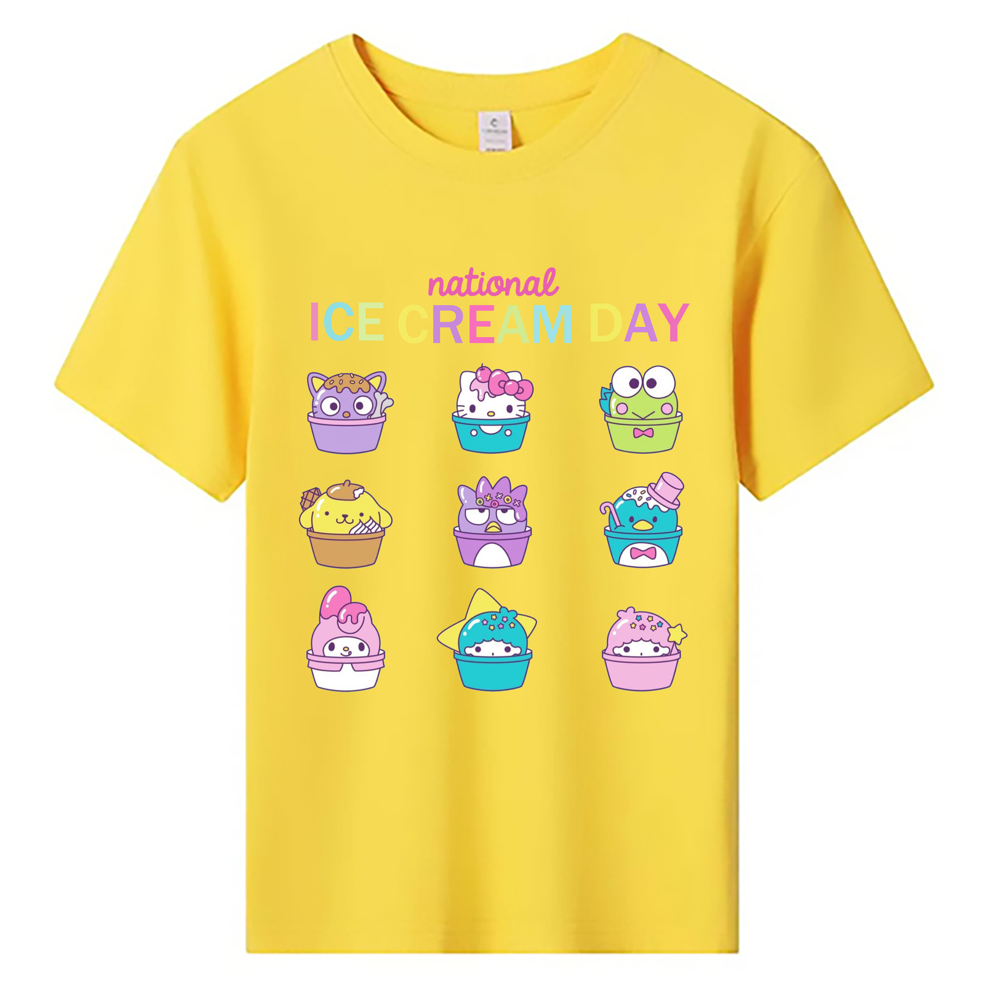 サンリオファミリー 2025年新作 - 綿100% キッズTシャツ ・ フロントプリント ・ 快適 通気性 ・ スポーツ カジュアル 散歩用