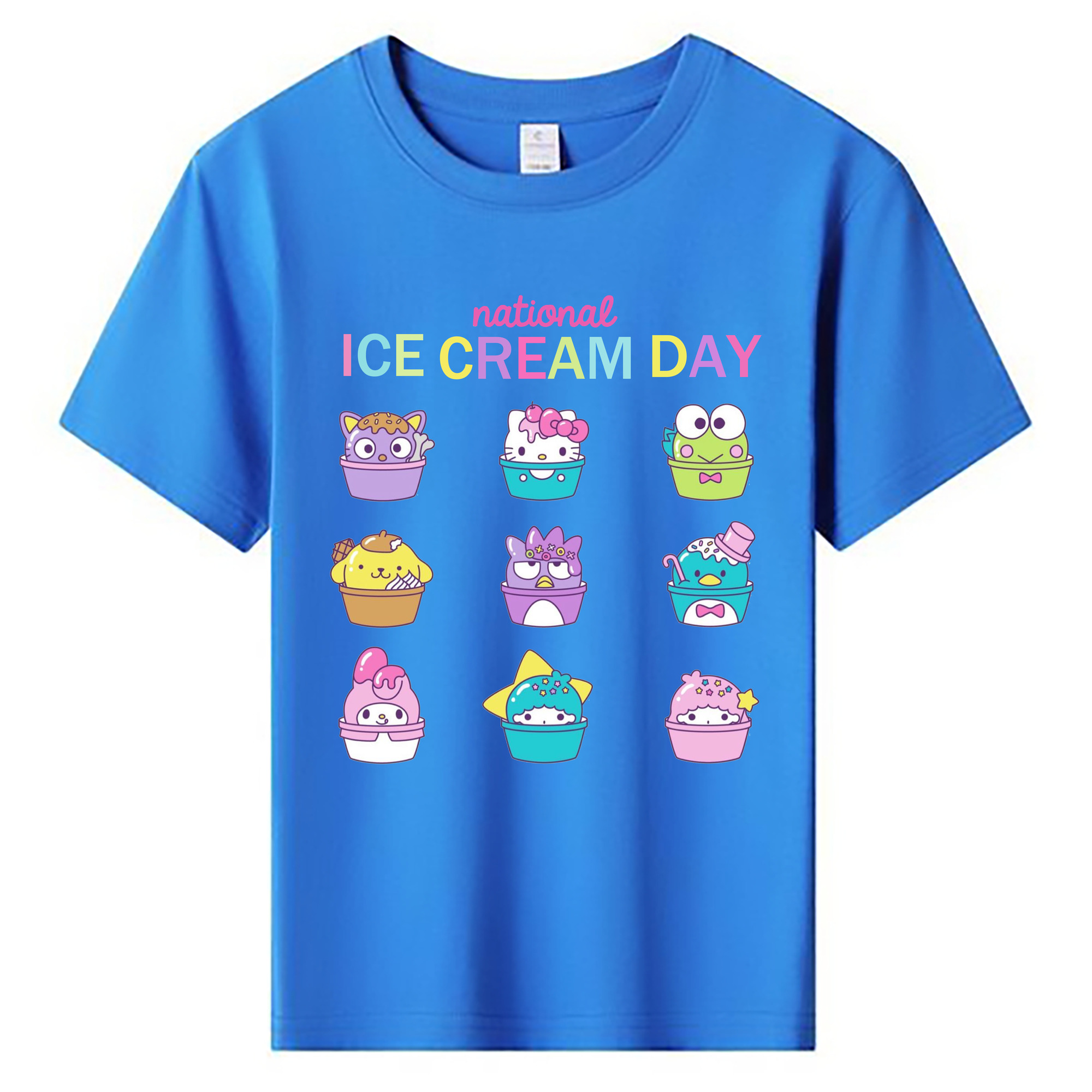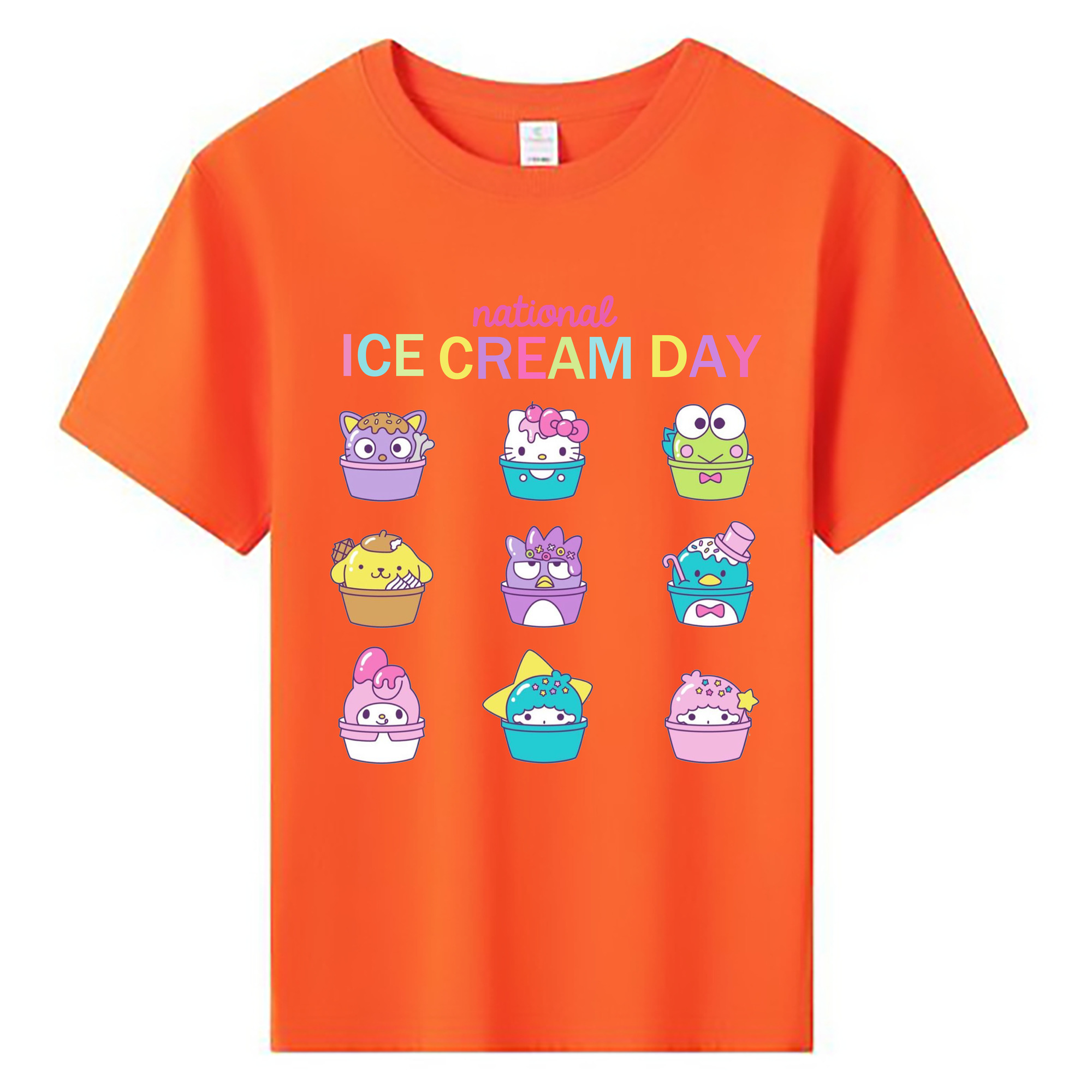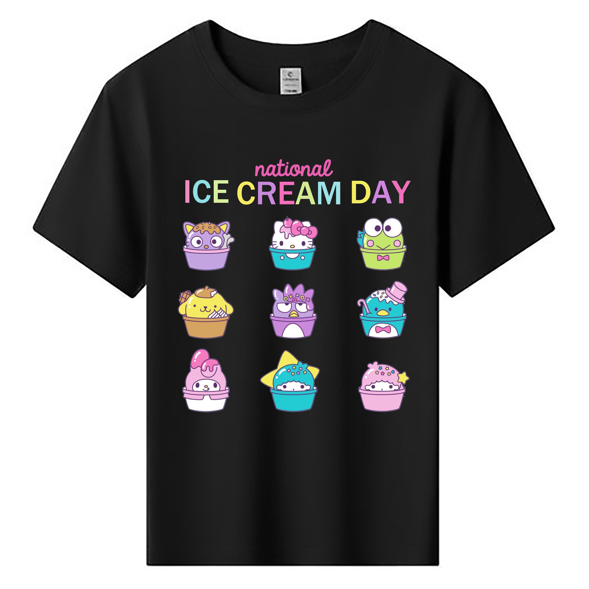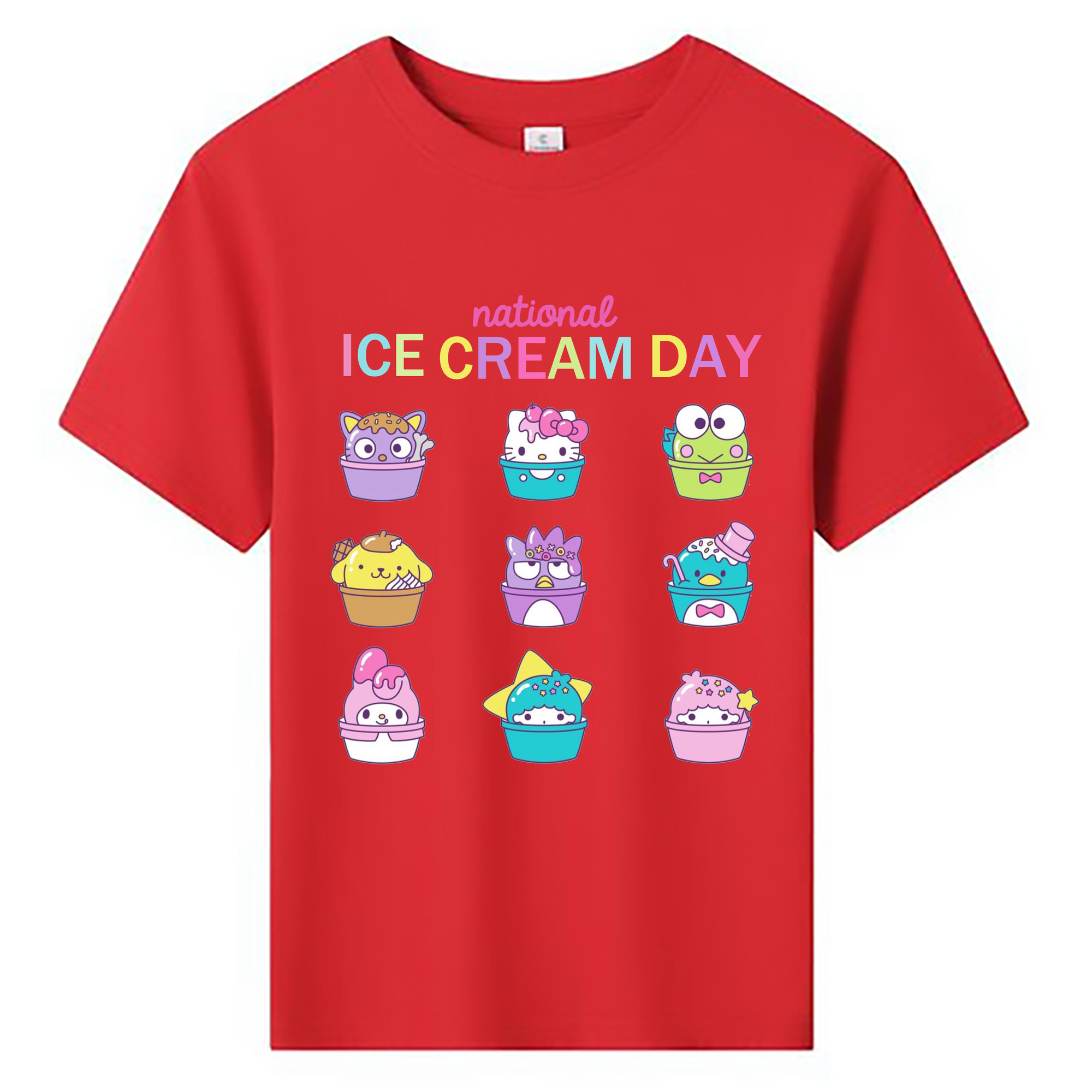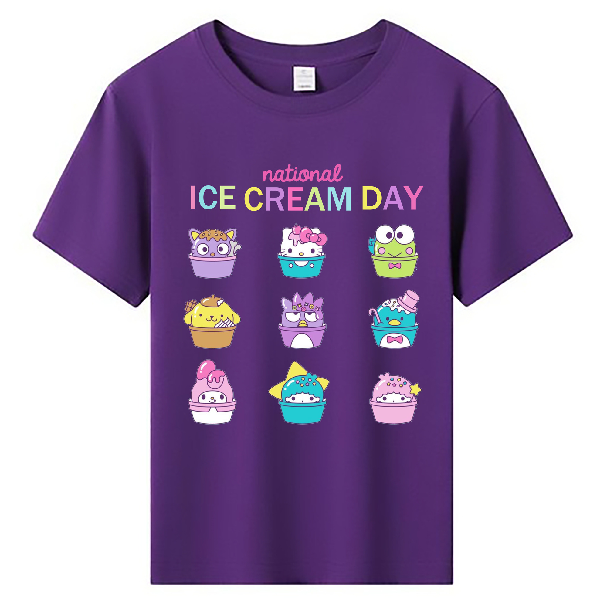 サンリオファミリー 2025年新作 - 綿100% キッズTシャツ ・ フロントプリント ・ 快適 通気性 ・ スポーツ カジュアル 散歩用