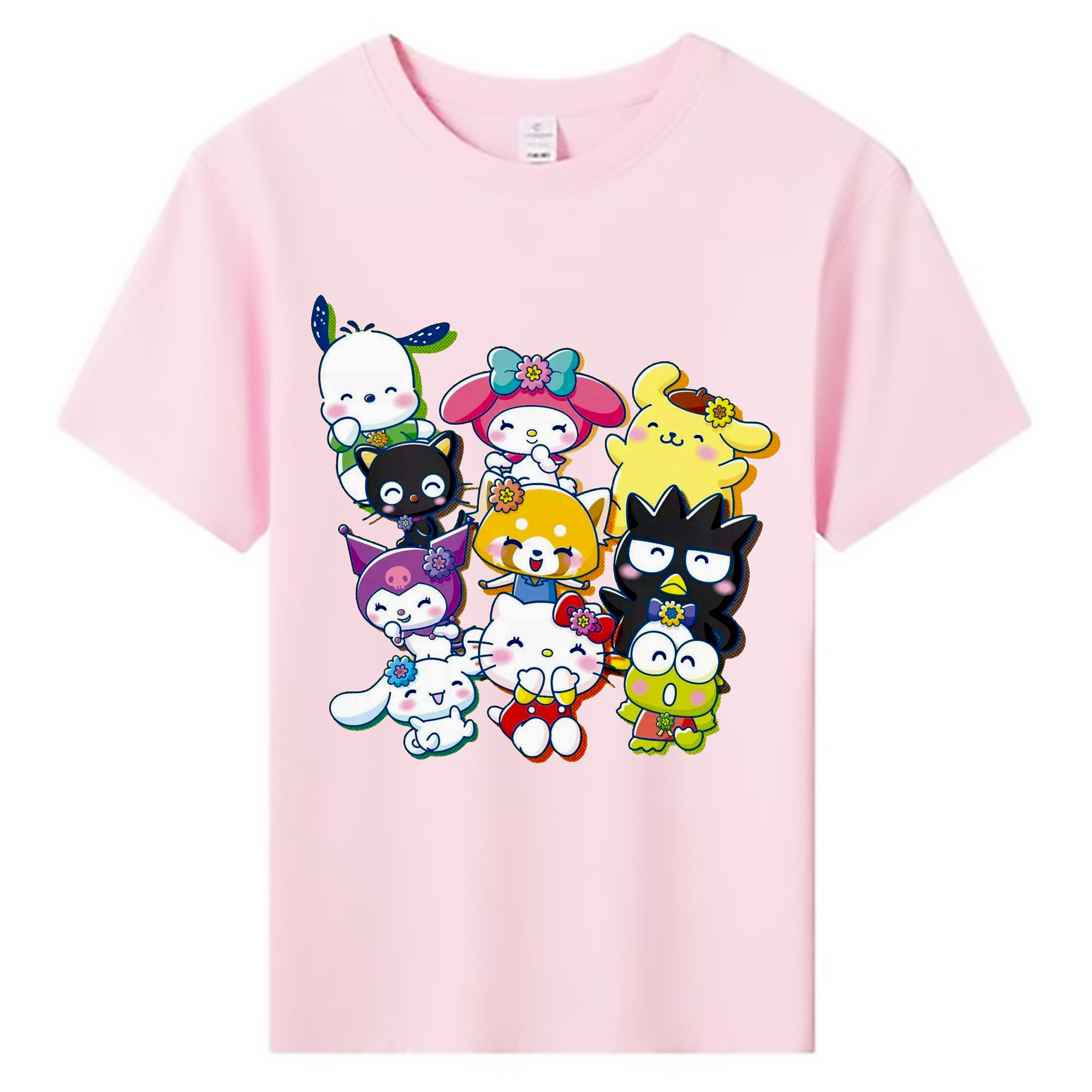 サンリオファミリー - 綿100% ヴィンテージ風 半袖Tシャツ ・ フロントプリント ・ 柔らか肌触り ・ 通気性 快適 ・ スポーツ カジュアル 外出用