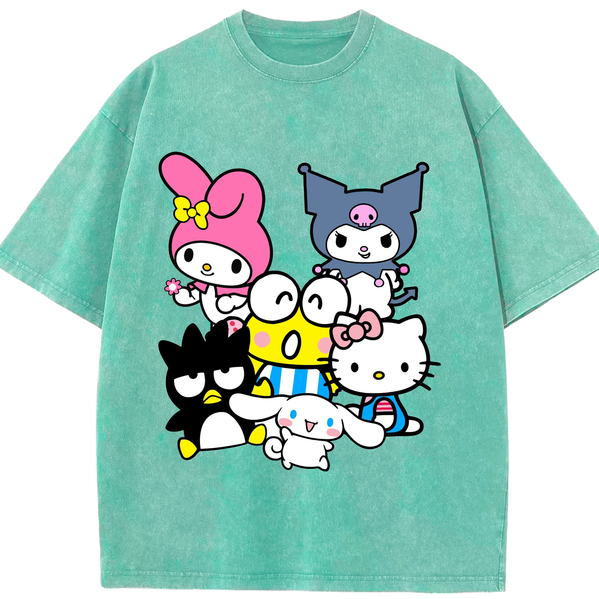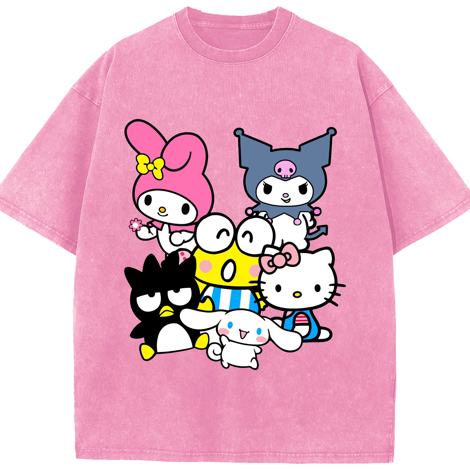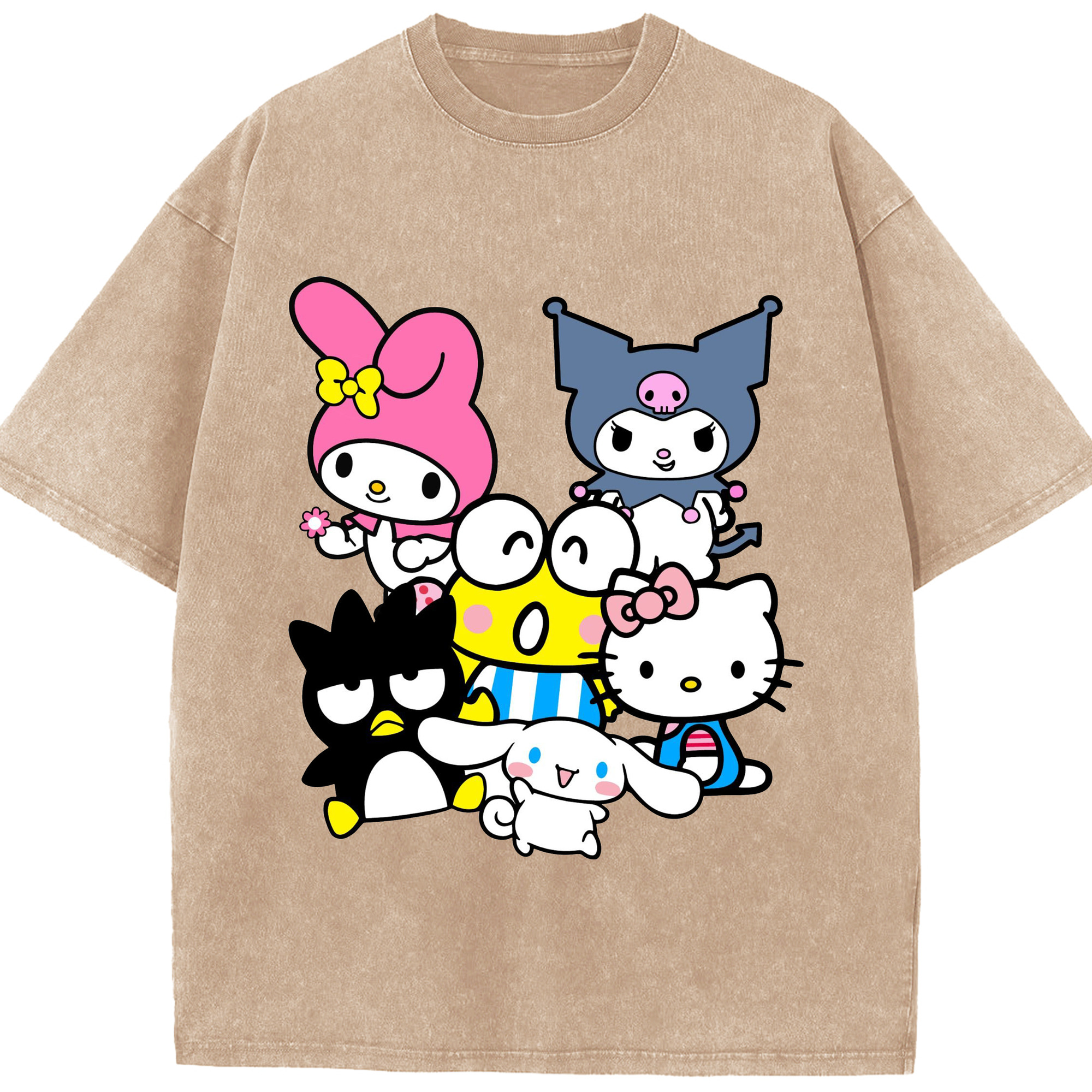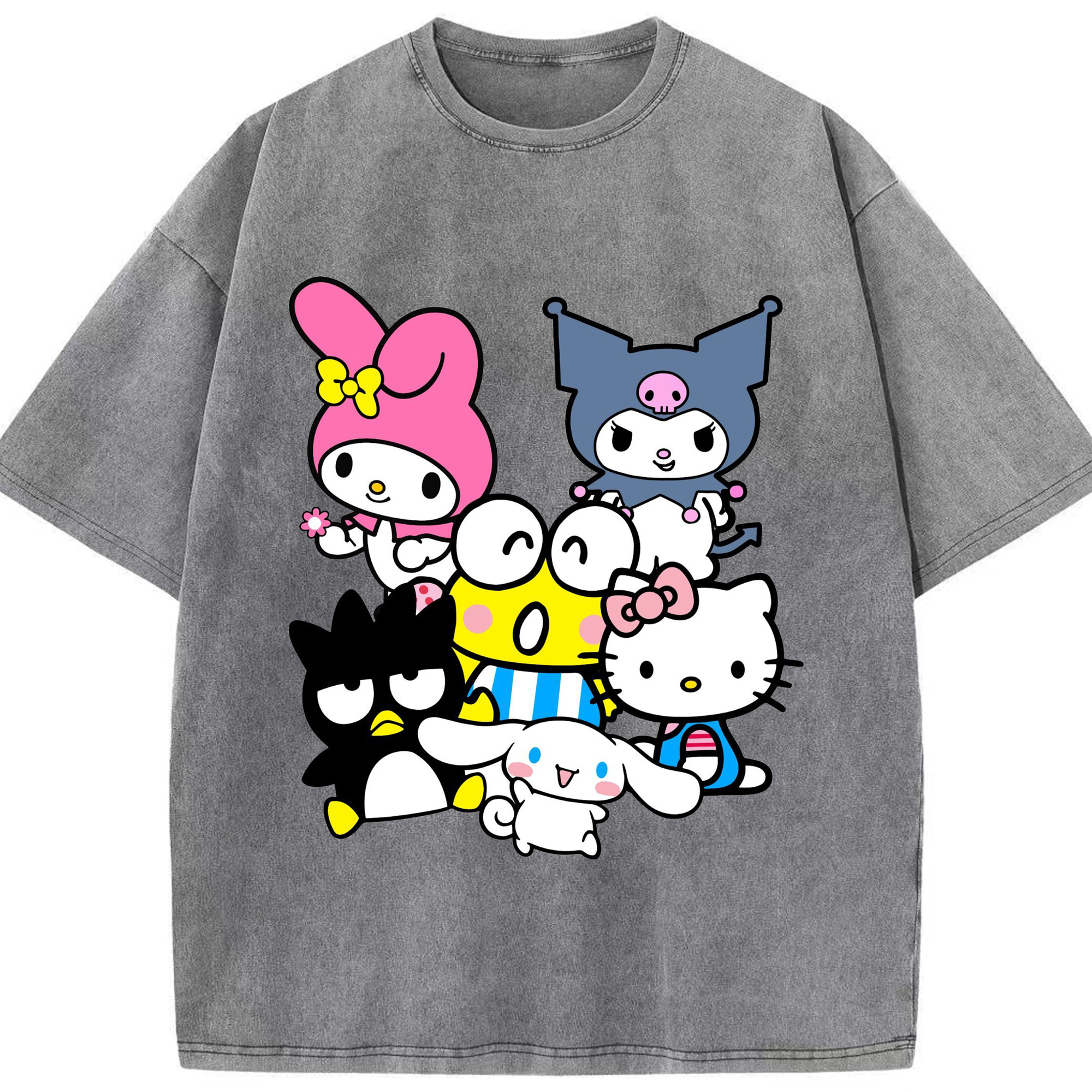 かわいい系サンリオ - 綿100% ヴィンテージ風 半袖Tシャツ ・ フロントプリント ・ 柔らか肌触り ・ 通気性 快適 ・ スポーツ カジュアル 外出用