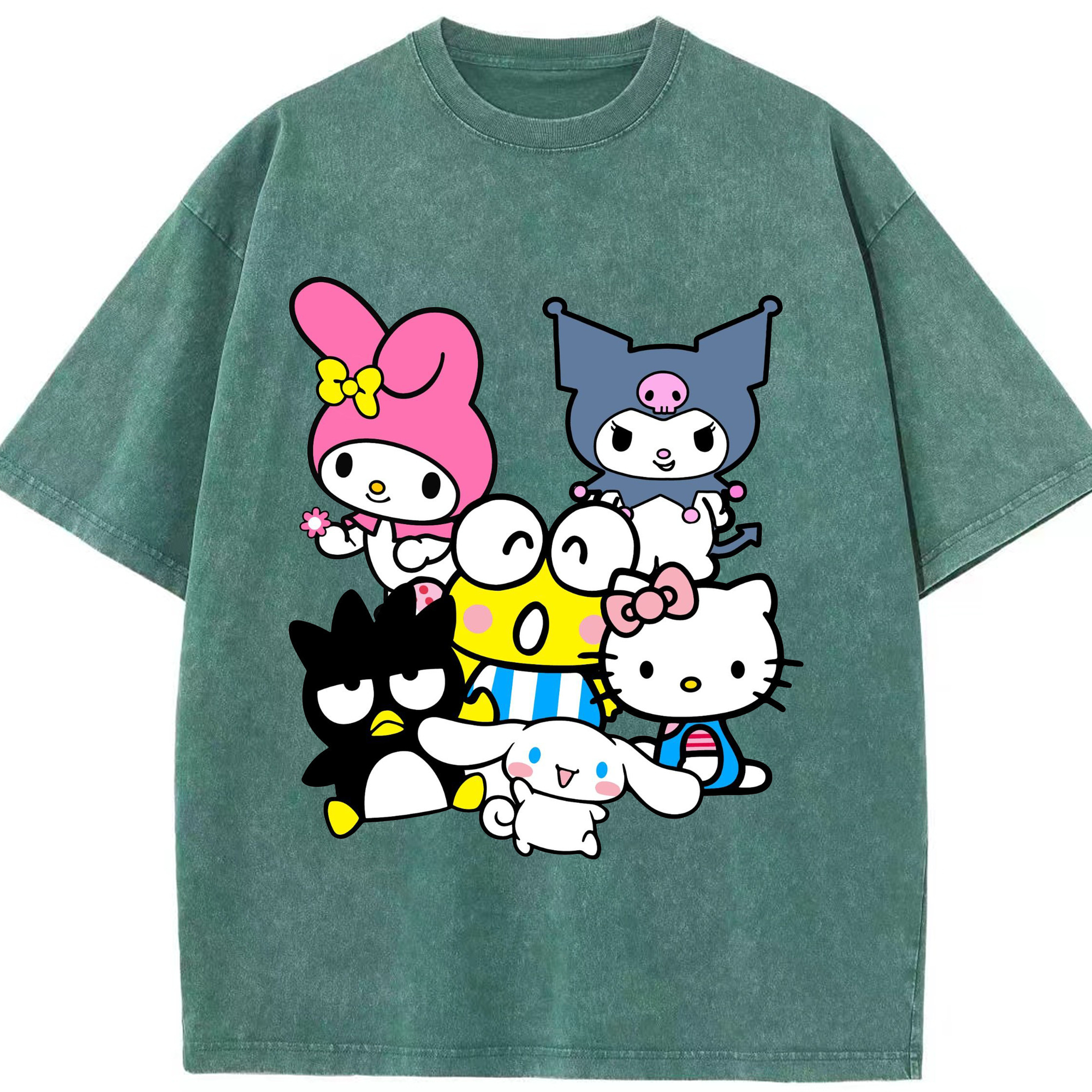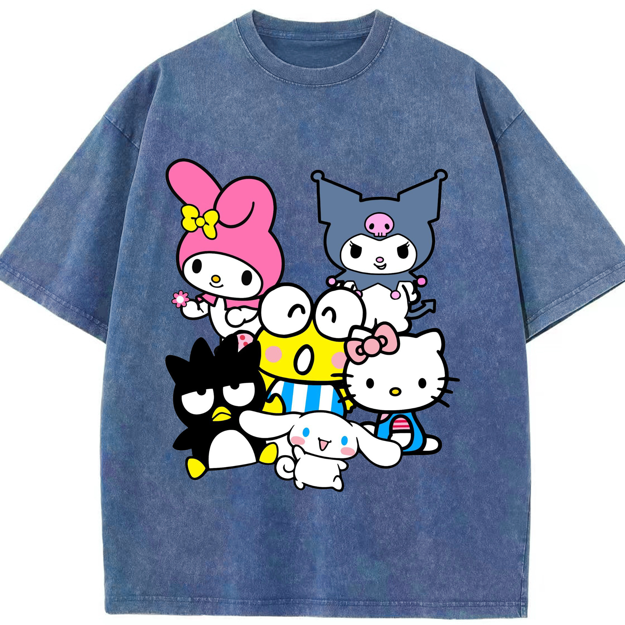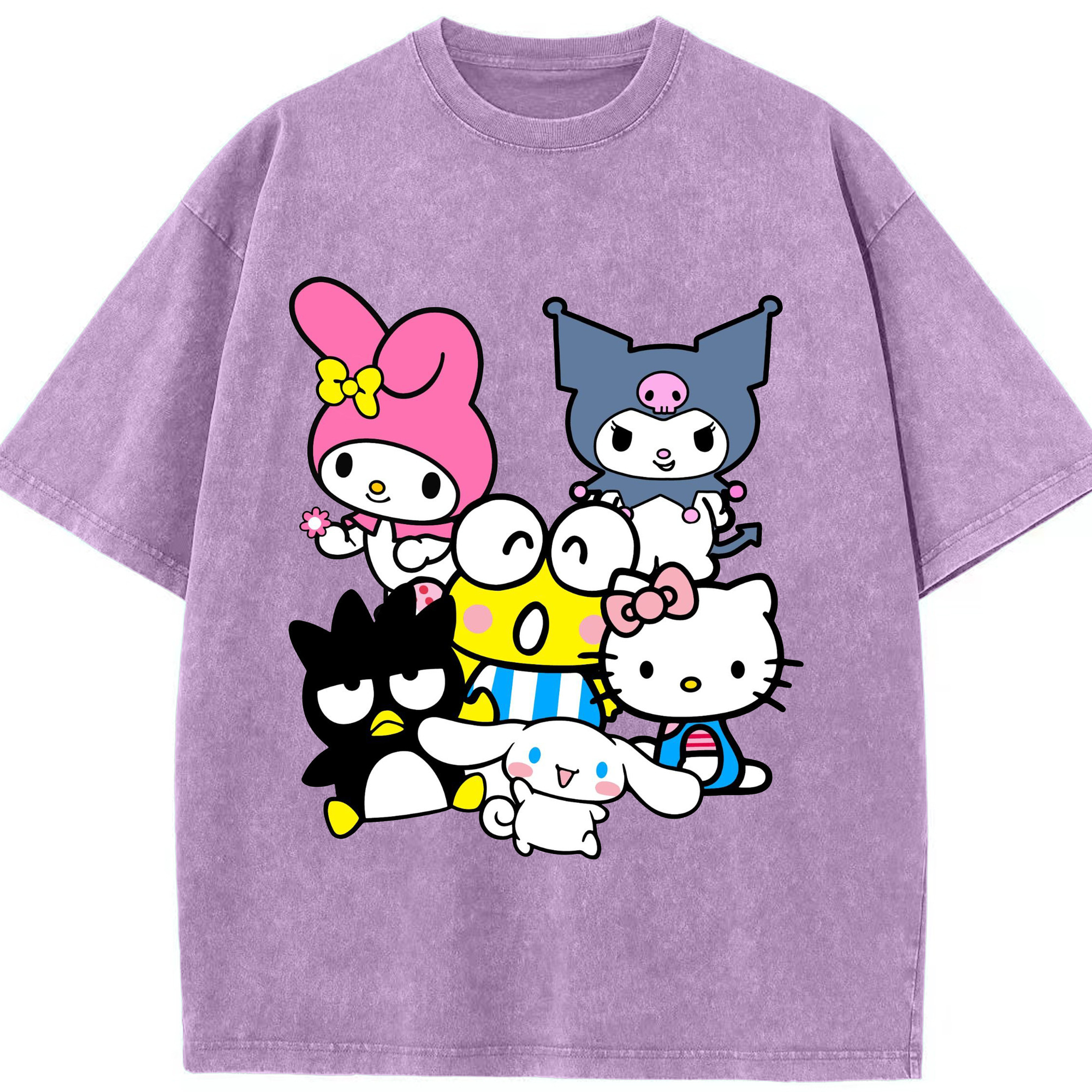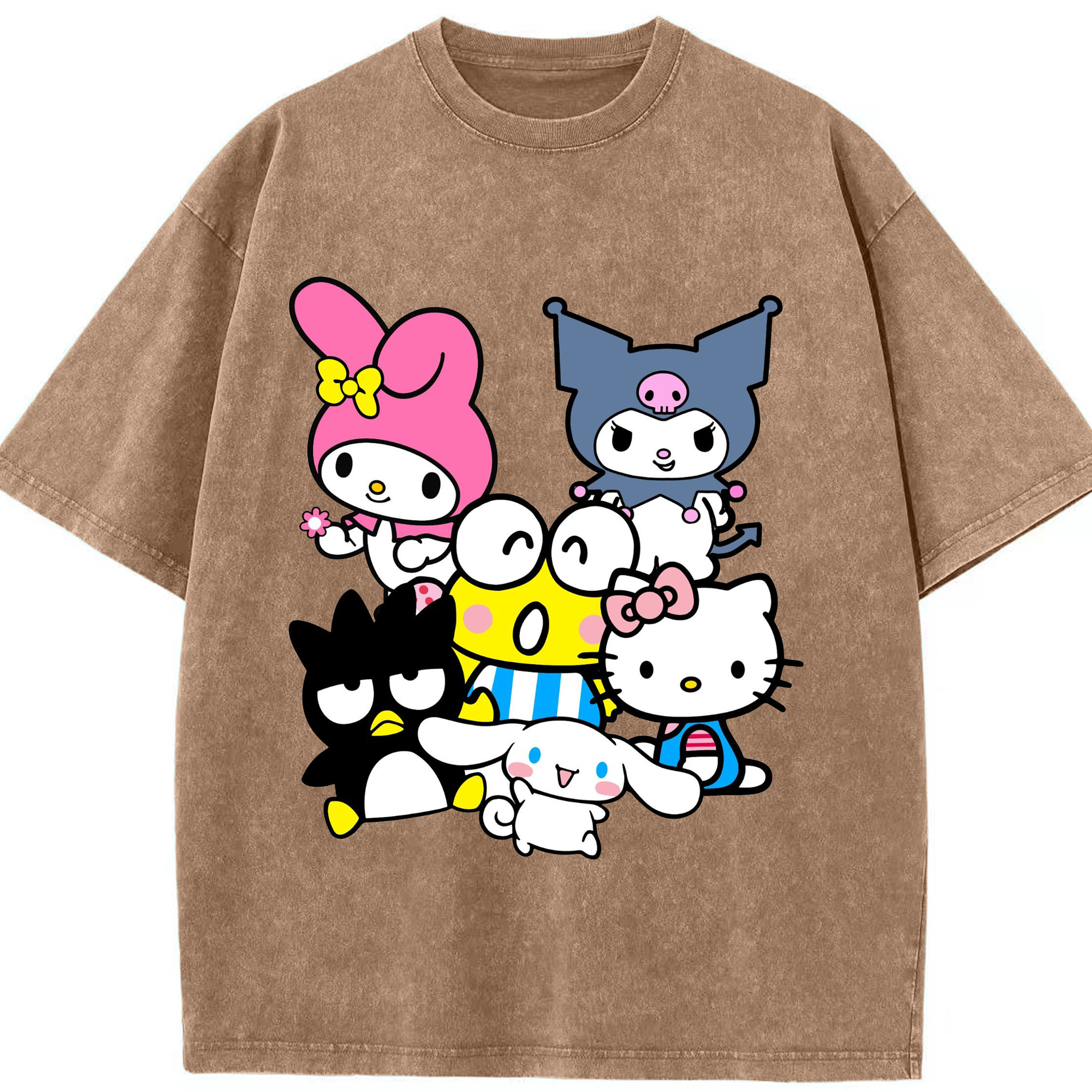 かわいい系サンリオ - 綿100% ヴィンテージ風 半袖Tシャツ ・ フロントプリント ・ 柔らか肌触り ・ 通気性 快適 ・ スポーツ カジュアル 外出用