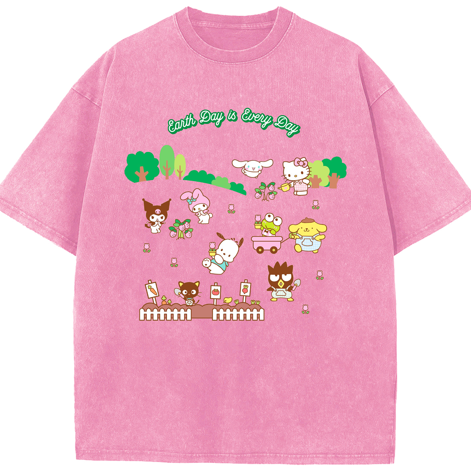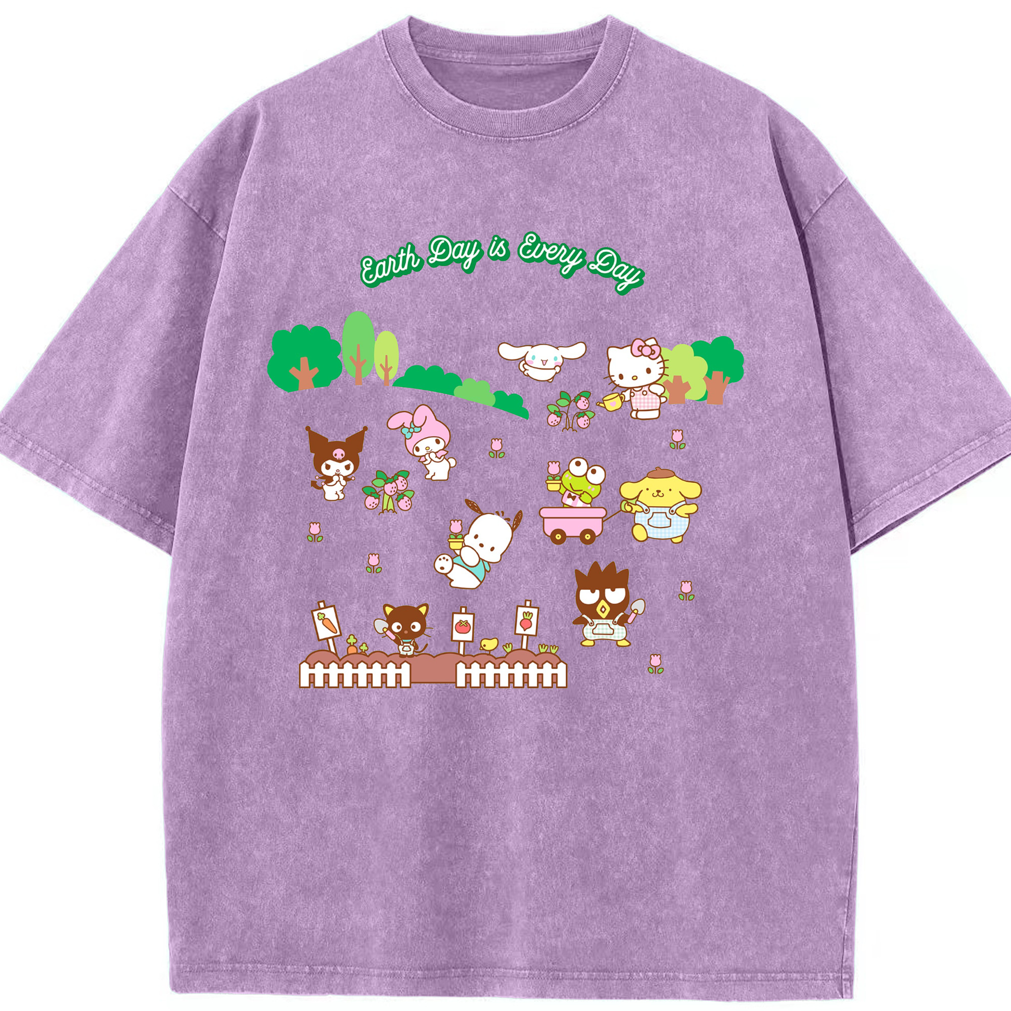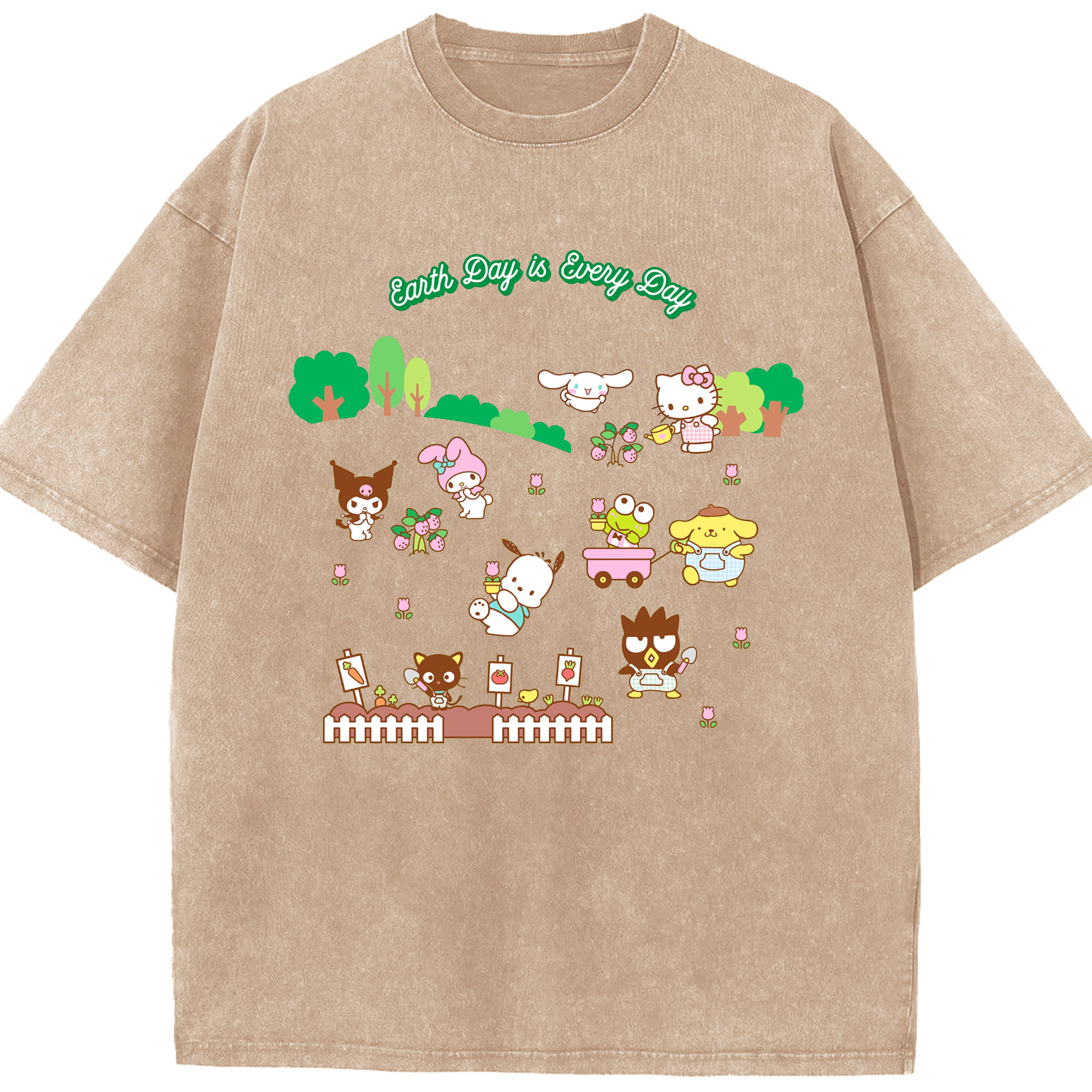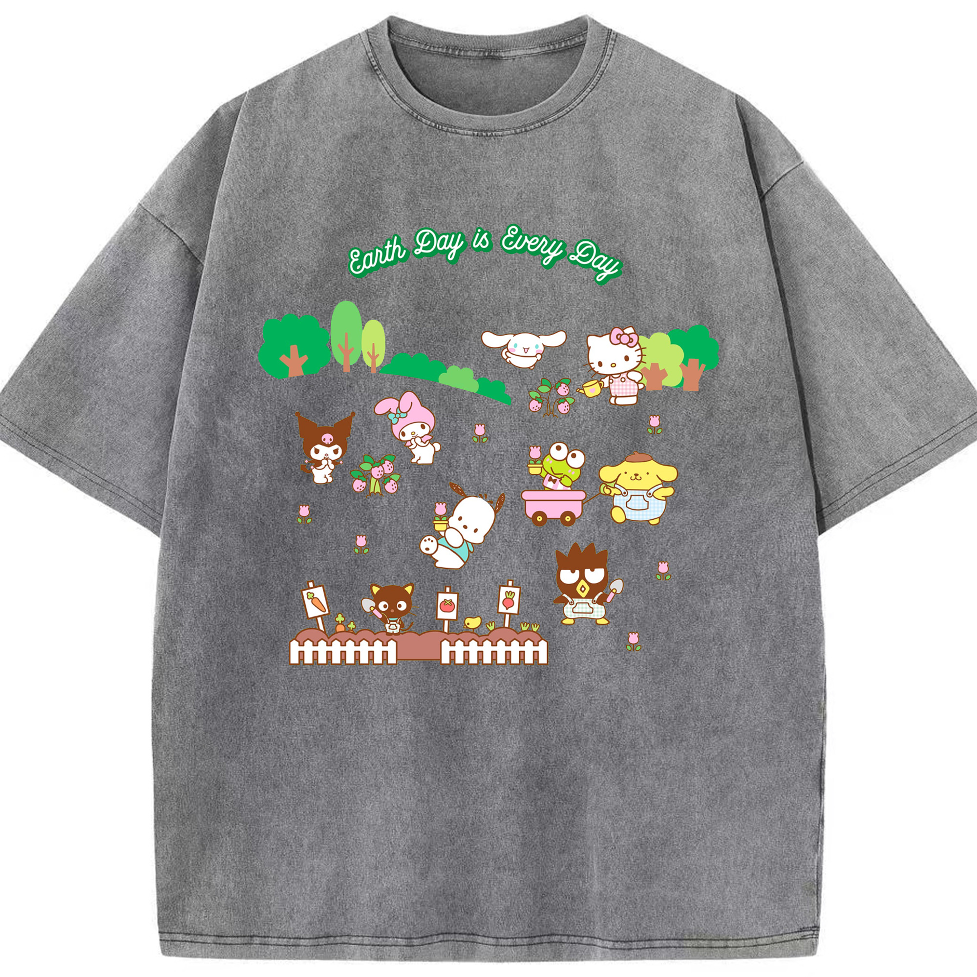 サンリオファミリー新作 - 綿100% ヴィンテージ風 半袖Tシャツ ・ 背面プリント ・ 柔らか肌触り ・ 通気性 快適 ・ スポーツ カジュアル 外出用
