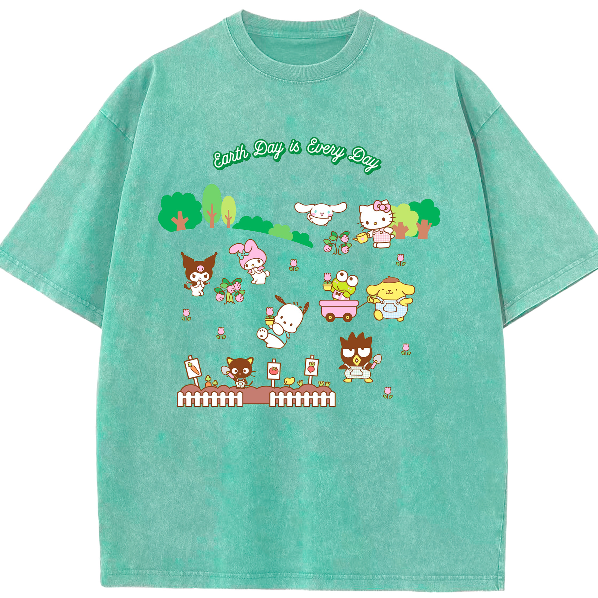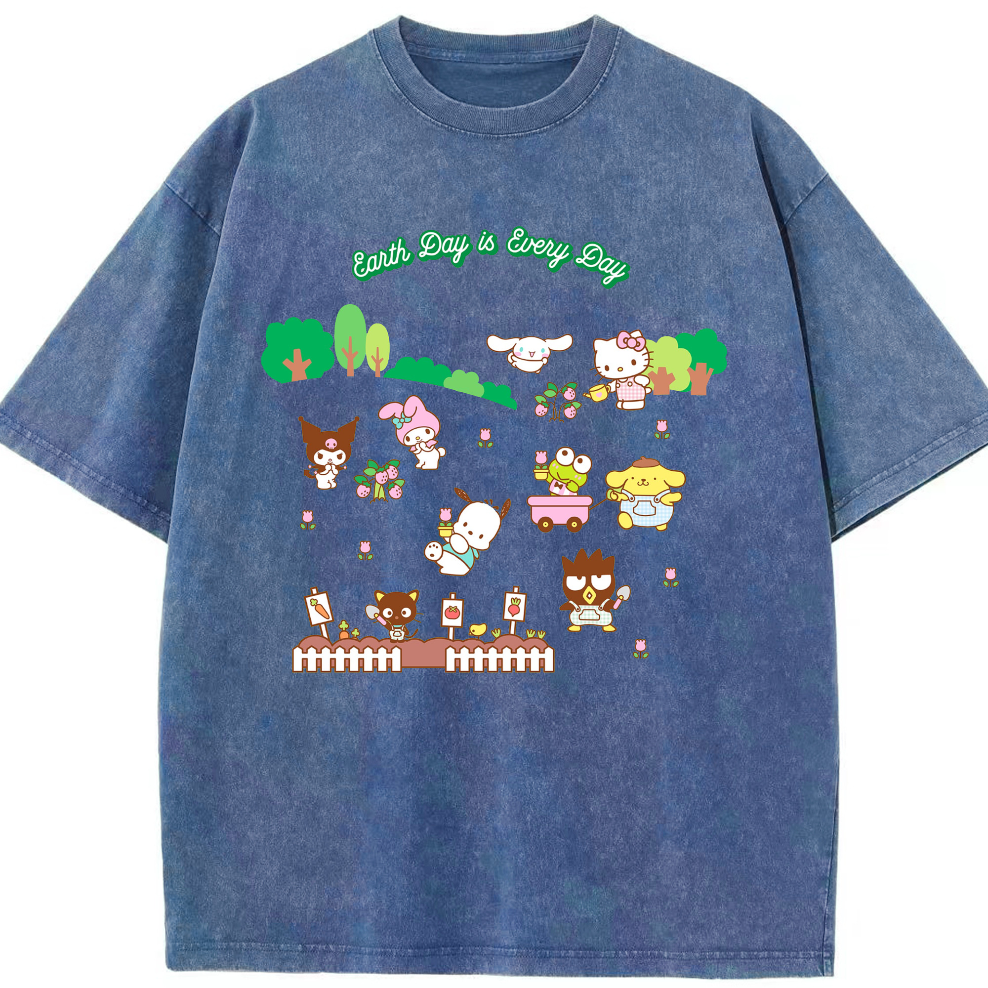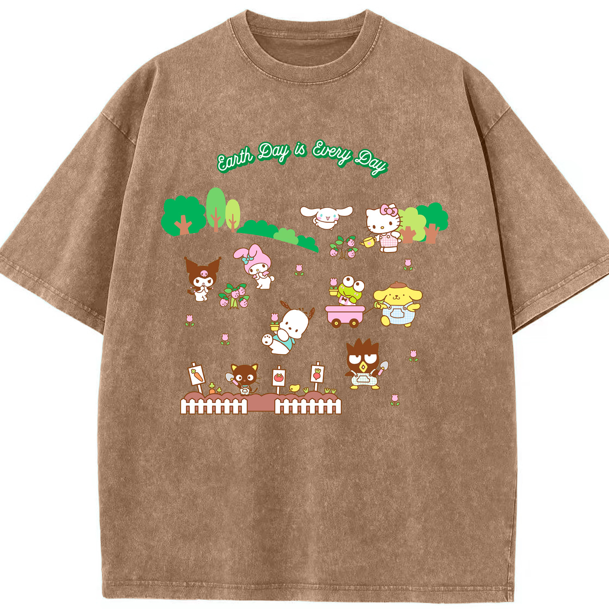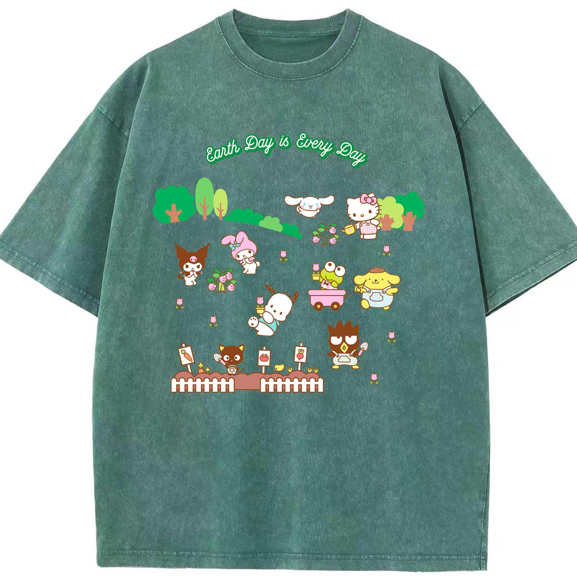 サンリオファミリー新作 - 綿100% ヴィンテージ風 半袖Tシャツ ・ 背面プリント ・ 柔らか肌触り ・ 通気性 快適 ・ スポーツ カジュアル 外出用