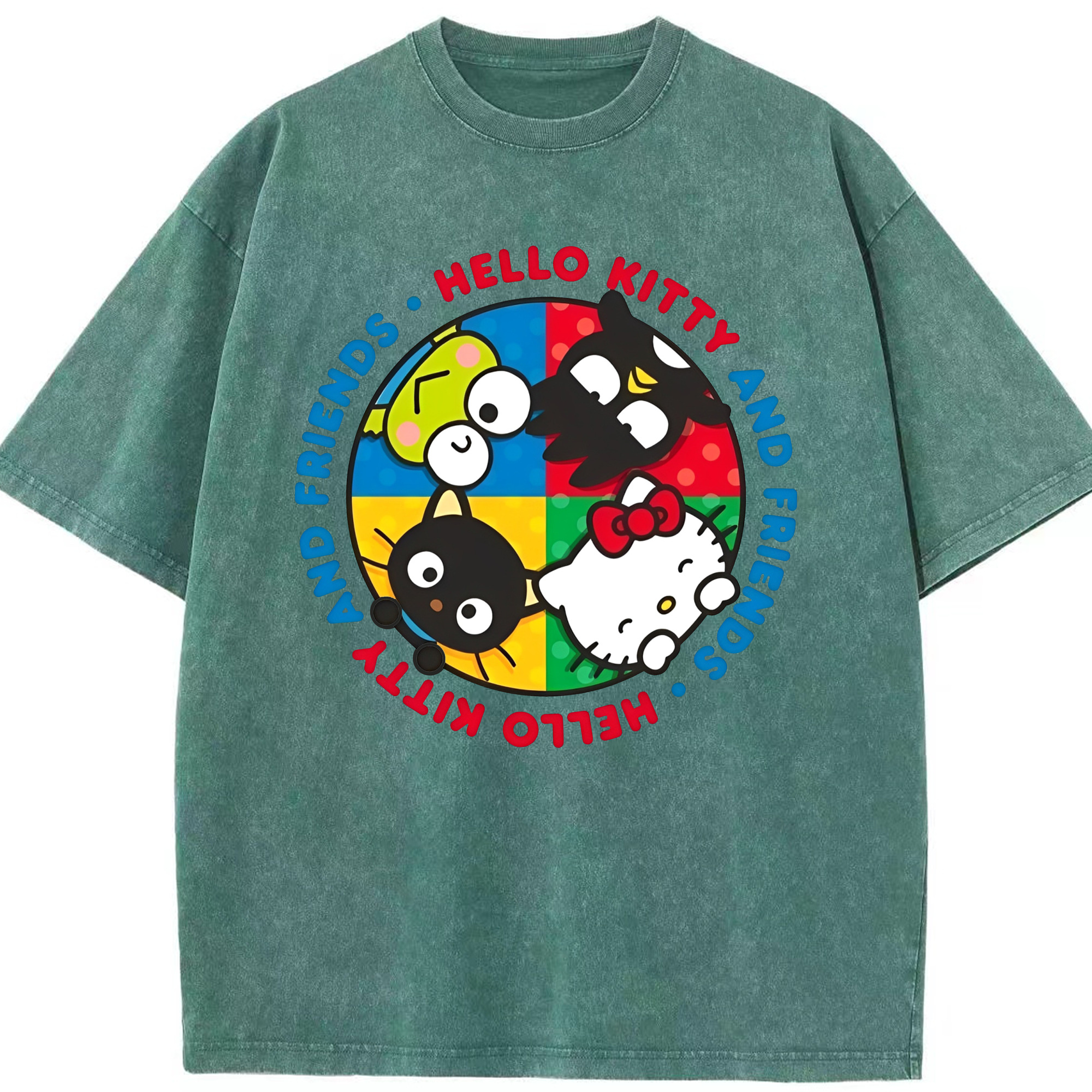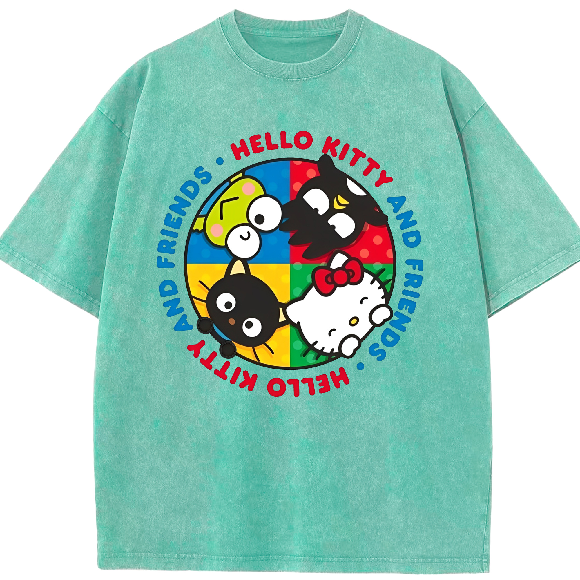 サンリオ - 綿100% ヴィンテージ風 半袖Tシャツ ・ フロントプリント ・ 柔らか肌触り ・ 通気性 快適 ・ スポーツ カジュアル 外出用