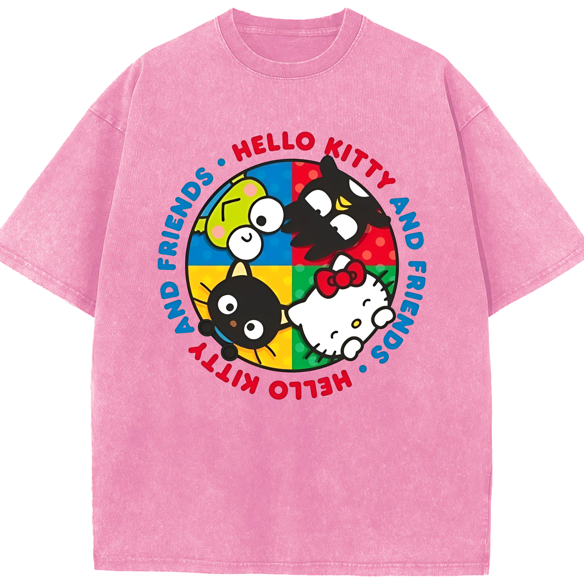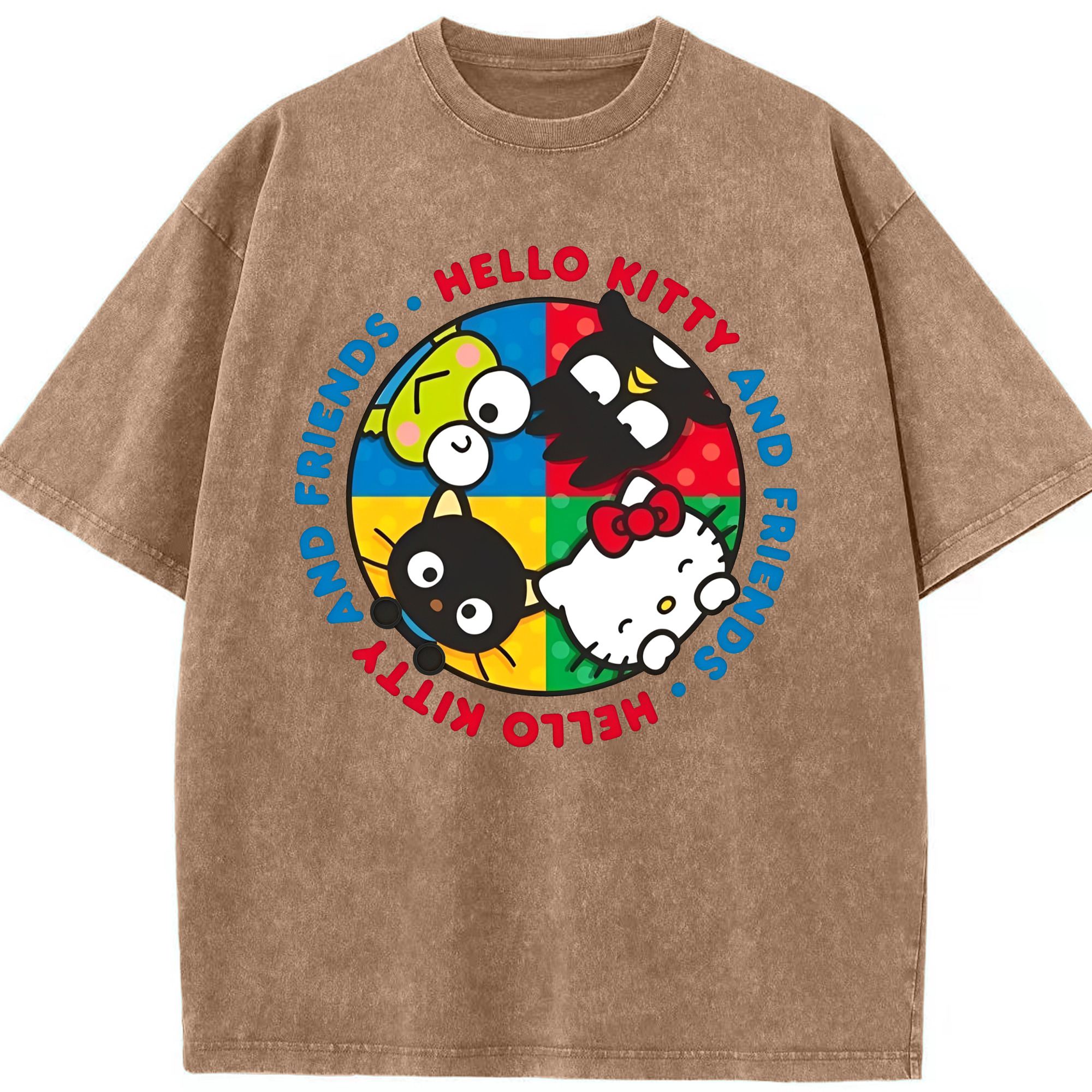 サンリオファミリー - 綿100% ヴィンテージ風 半袖Tシャツ ・ フロントプリント ・ 柔らか肌触り ・ 通気性 快適 ・ スポーツ カジュアル 外出用
