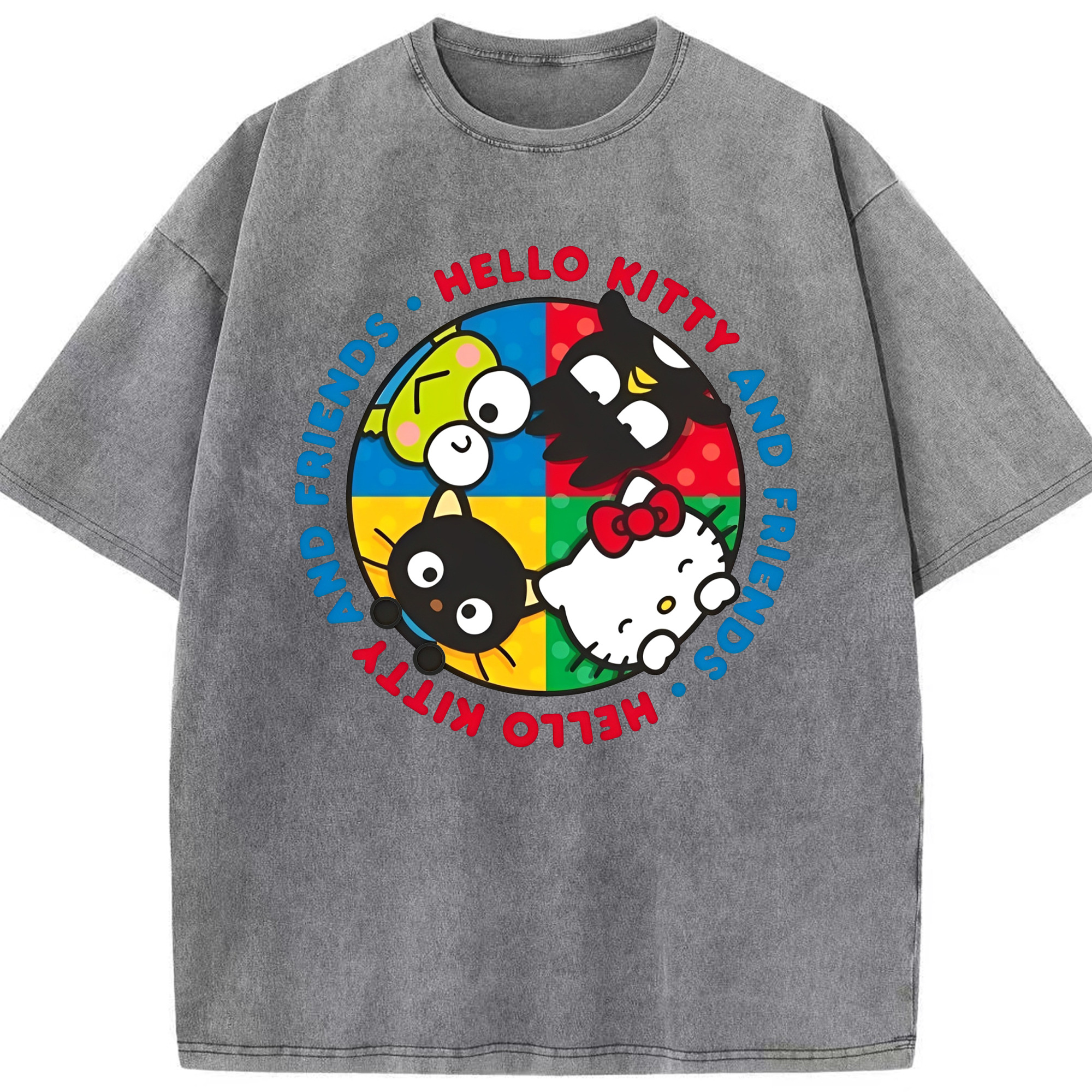 スタイリッシュでクール!サンリオファミリー - 綿100% ヴィンテージ風 半袖Tシャツ ・ フロントプリント ・ 柔らか肌触り ・ 通気性 快適 ・ スポーツ カジュアル 外出用