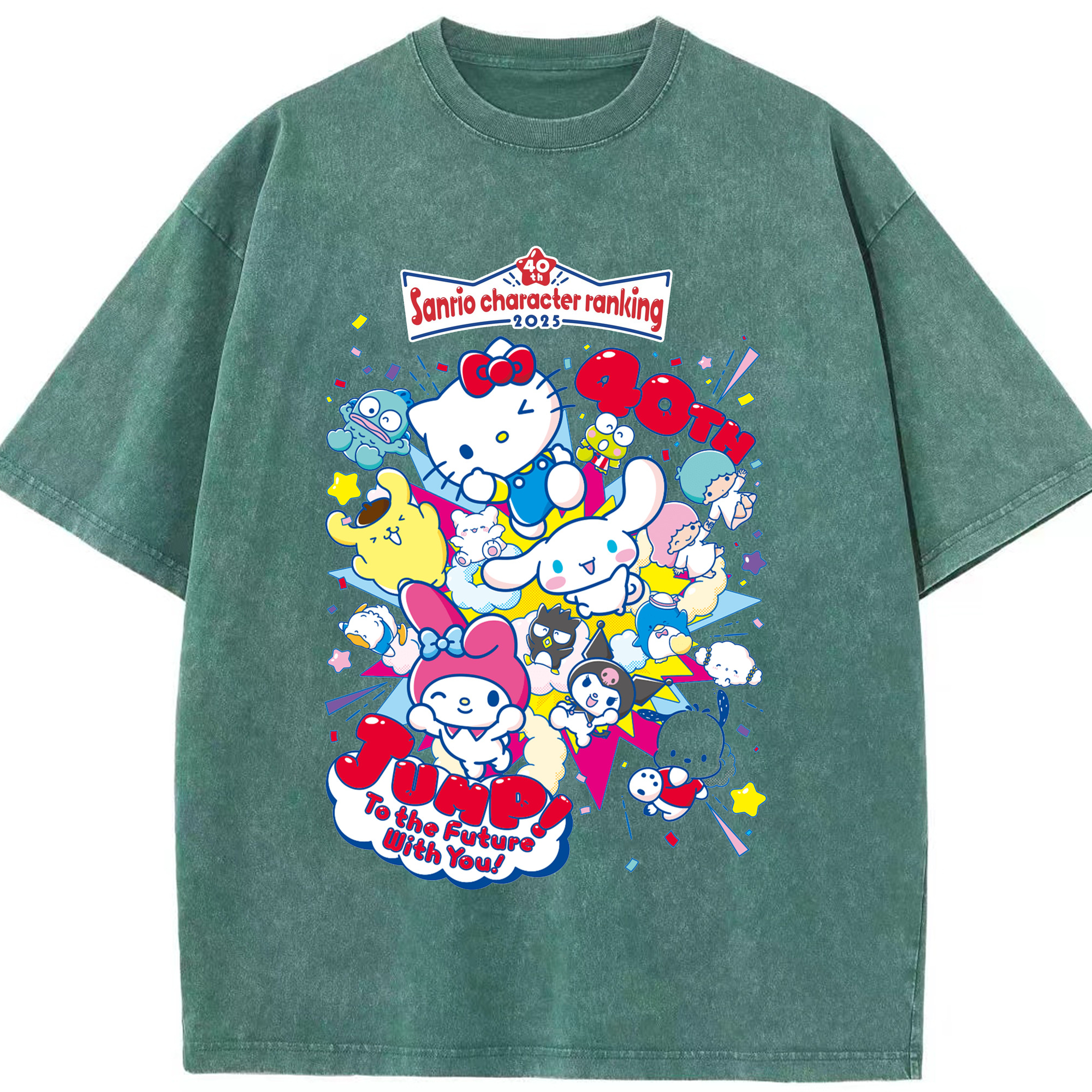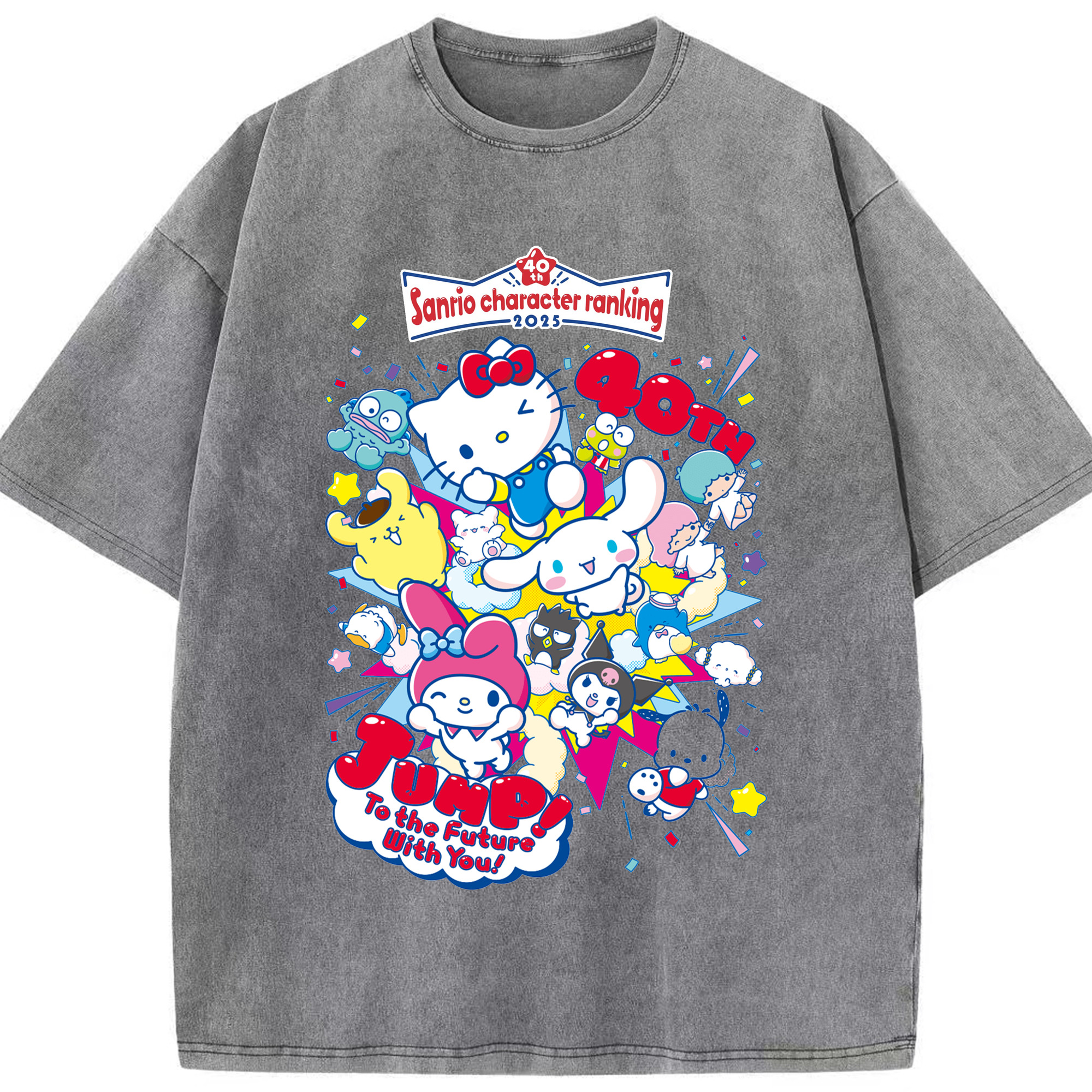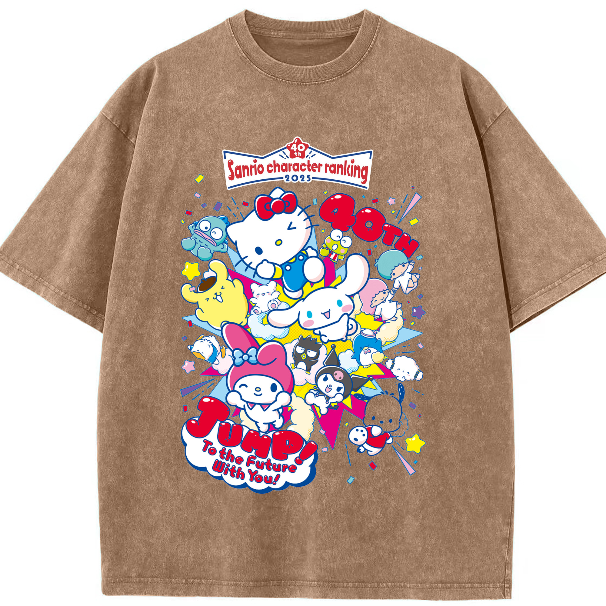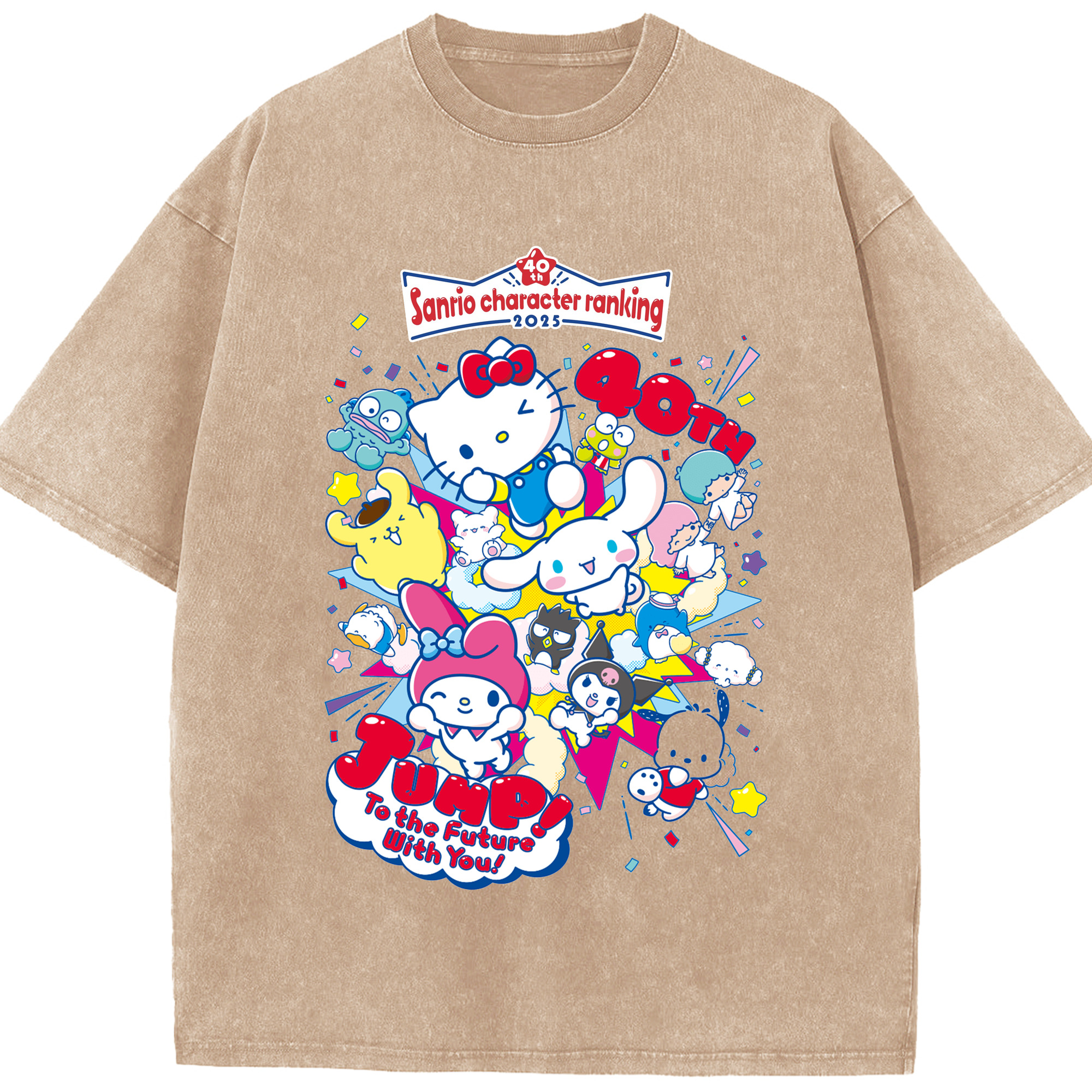 サンリオファミリー 2025年新作 - 綿100% ヴィンテージ風 半袖Tシャツ ・ 背面プリント ・ 柔らか肌触り ・ 通気性 快適 ・ スポーツ カジュアル 外出用