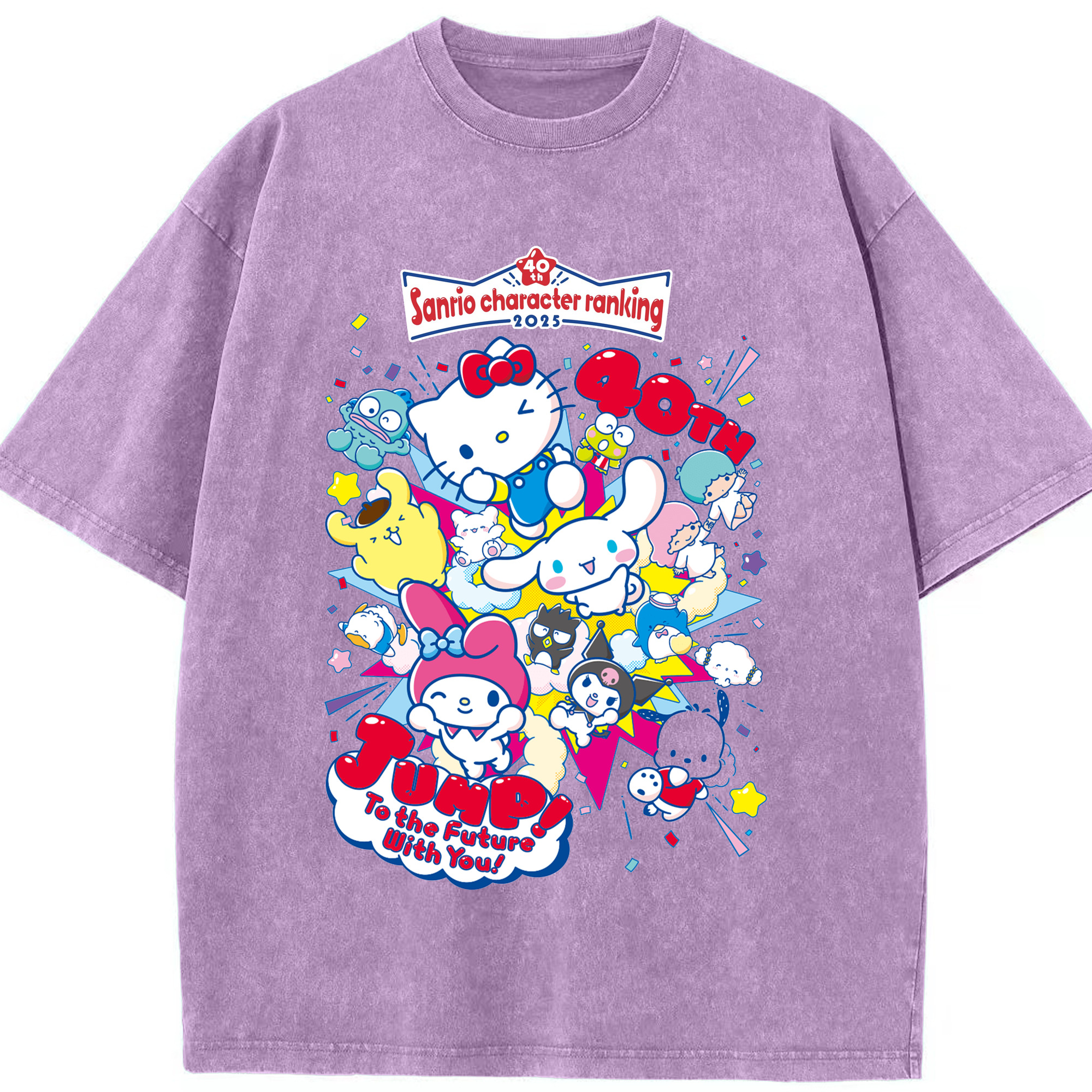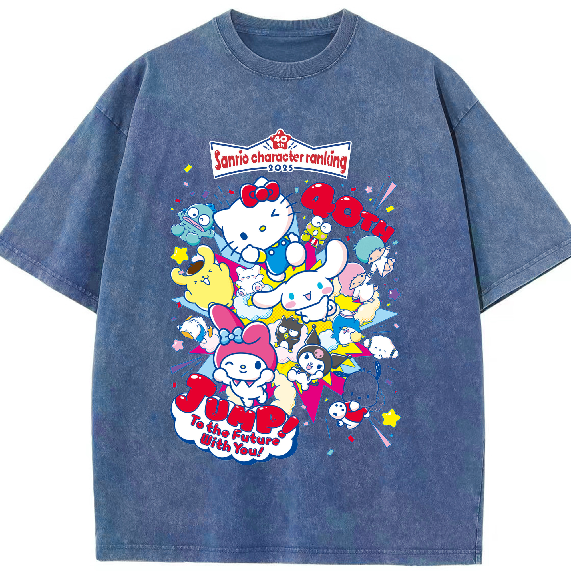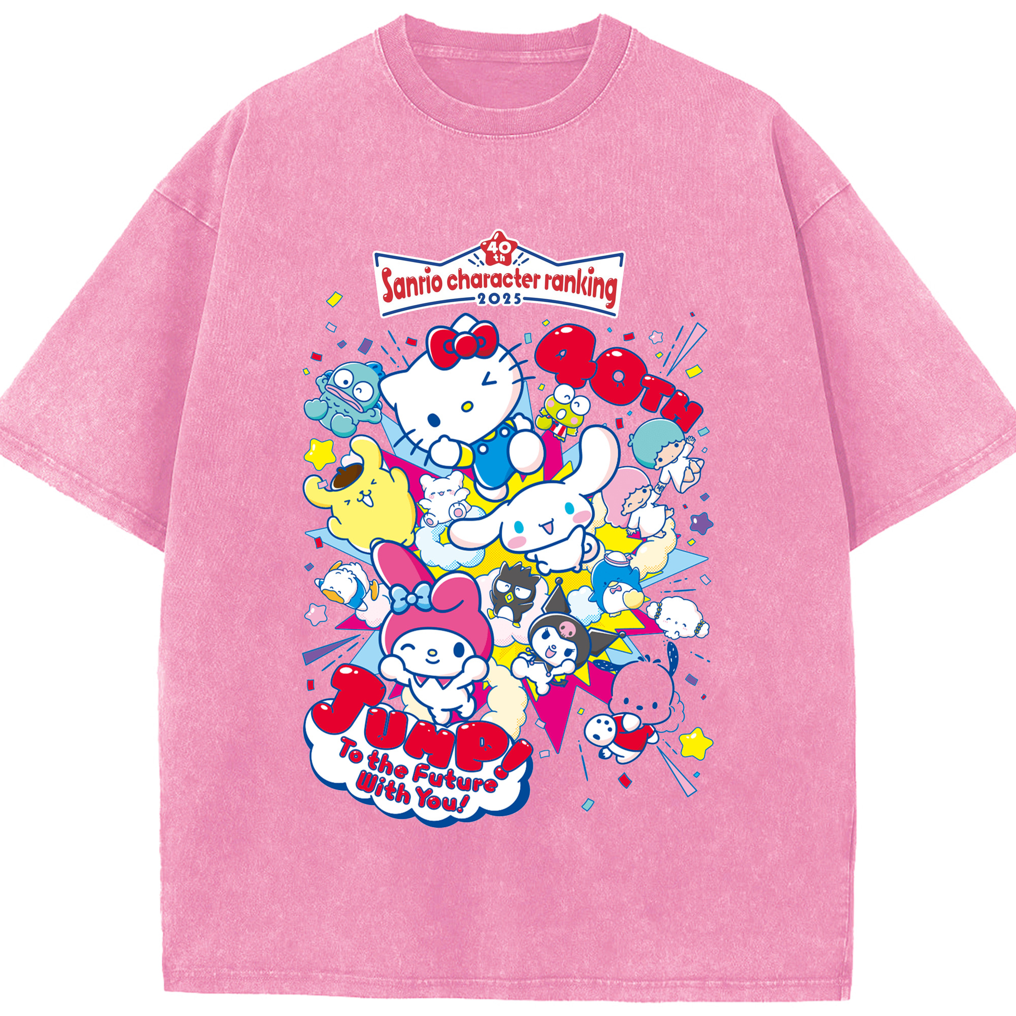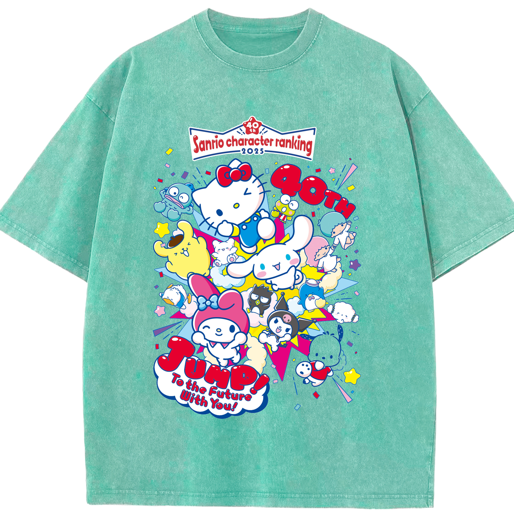 サンリオファミリー 2025年新作 - 綿100% ヴィンテージ風 半袖Tシャツ ・ 背面プリント ・ 柔らか肌触り ・ 通気性 快適 ・ スポーツ カジュアル 外出用
