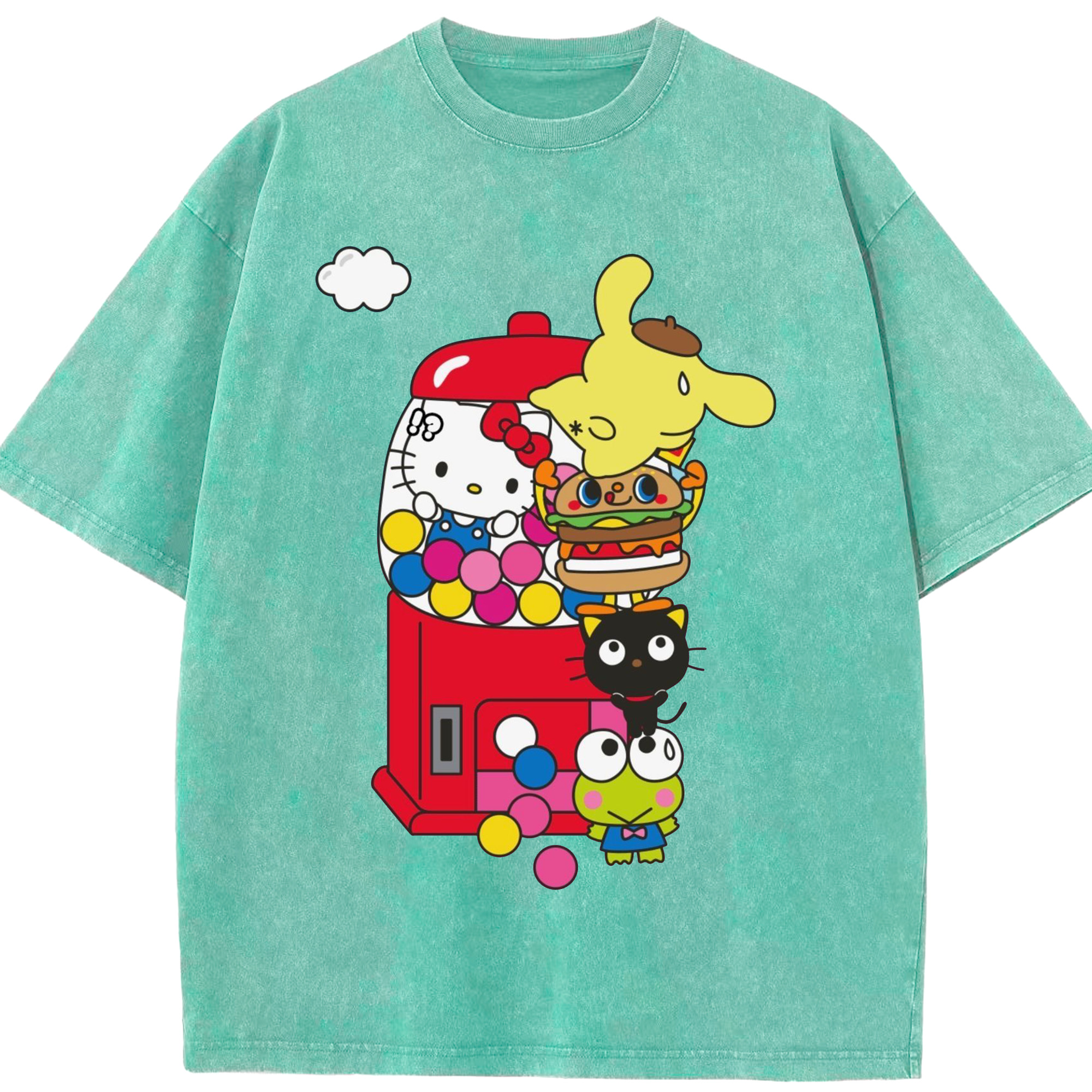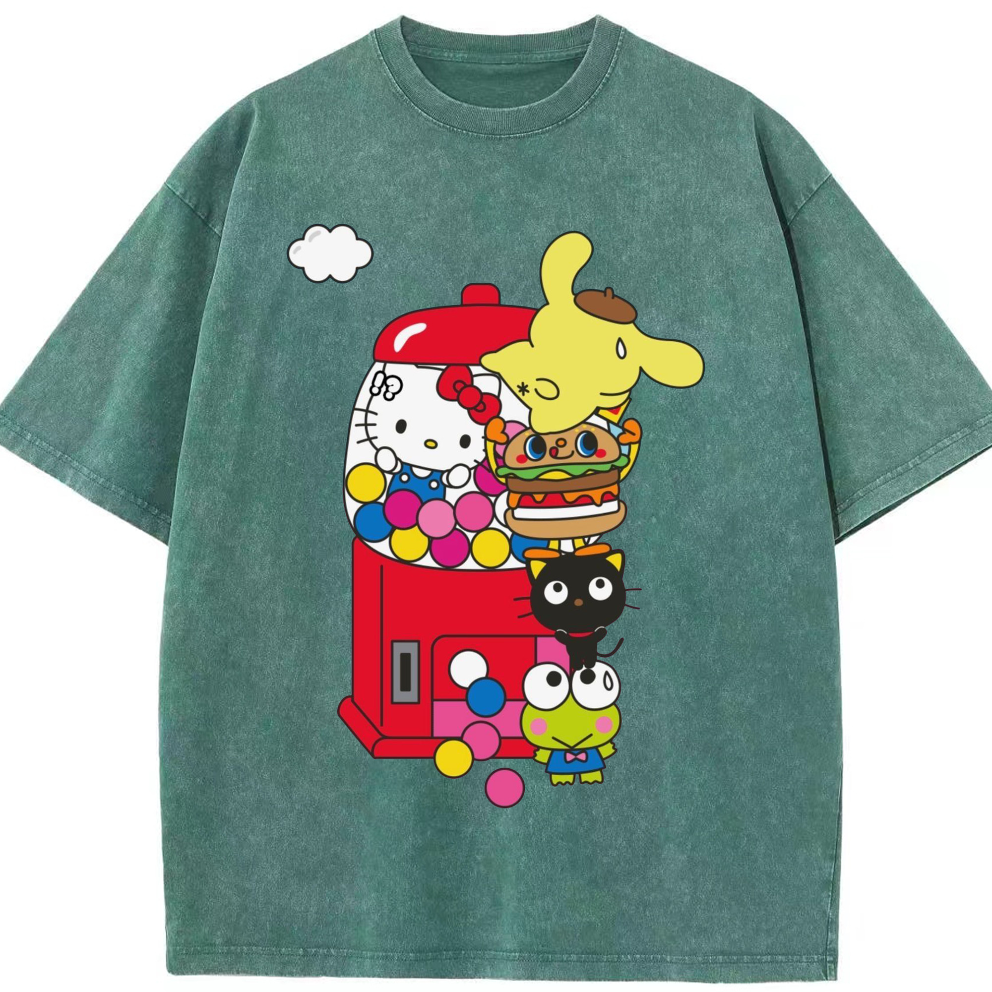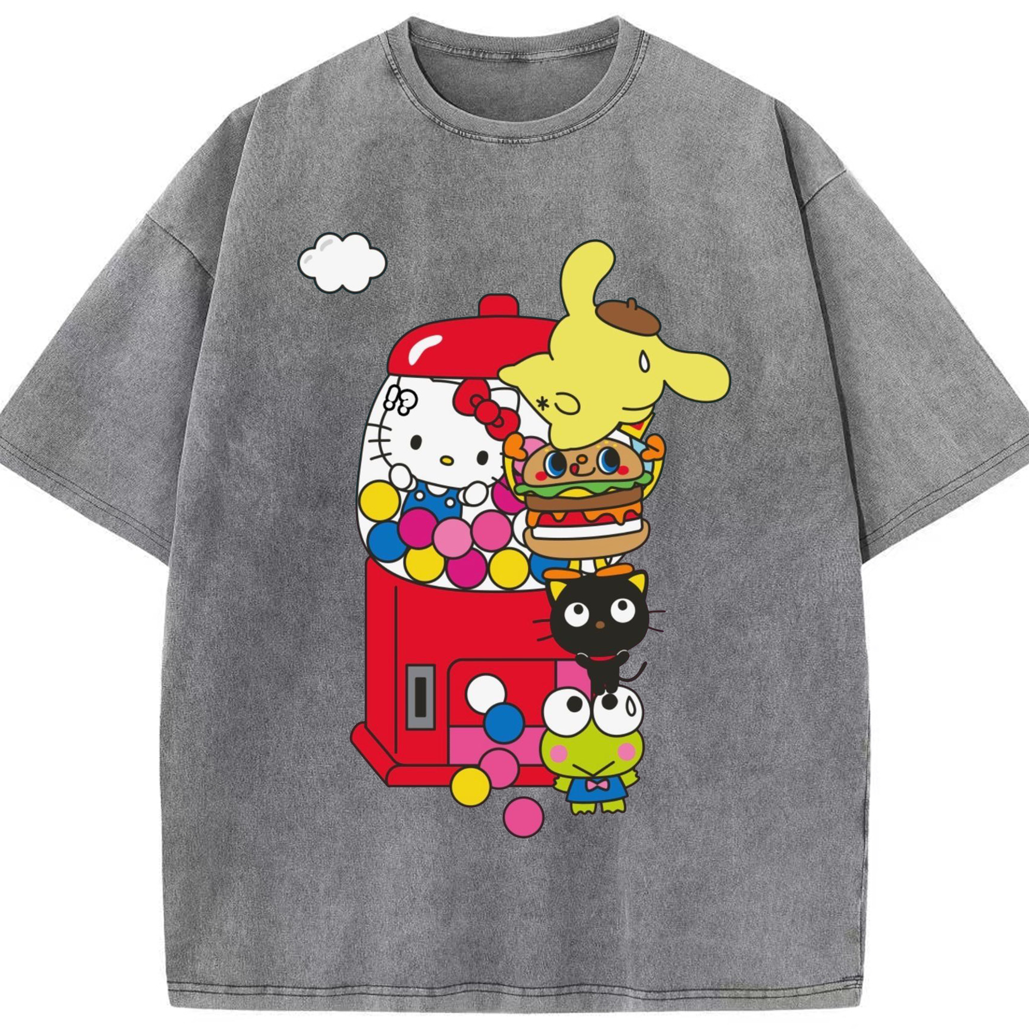 サンリオ - 綿100% ヴィンテージ風 半袖Tシャツ ・ フロントプリント ・ 柔らか肌触り ・ 通気性 快適 ・ スポーツ カジュアル 外出用