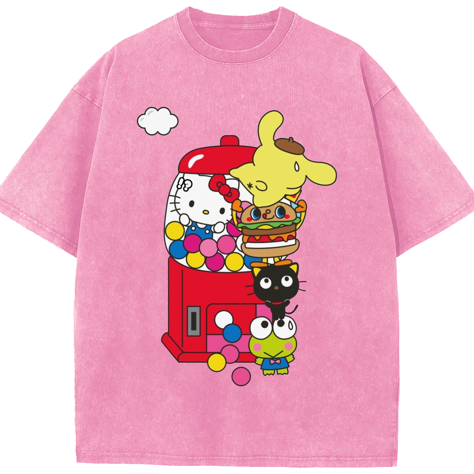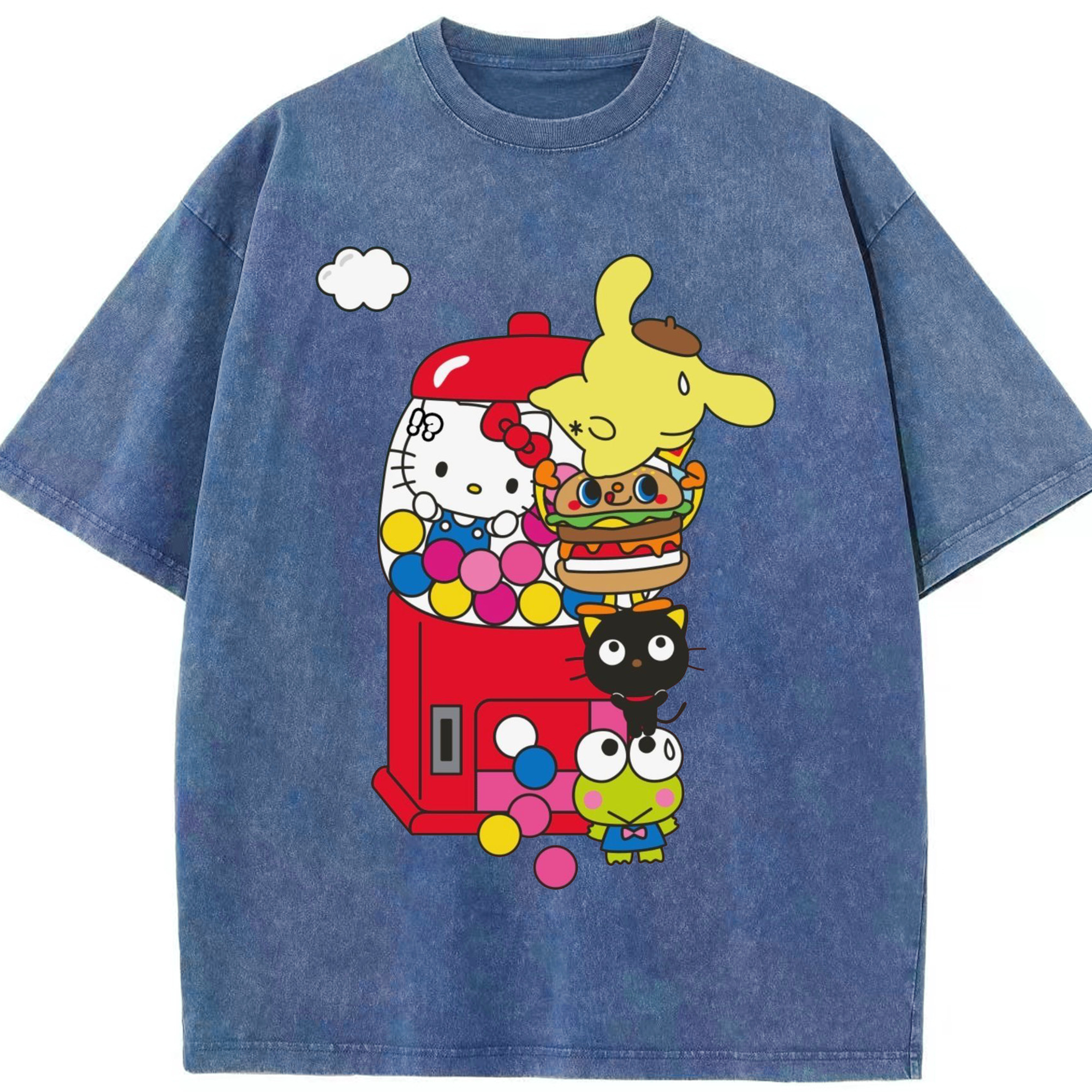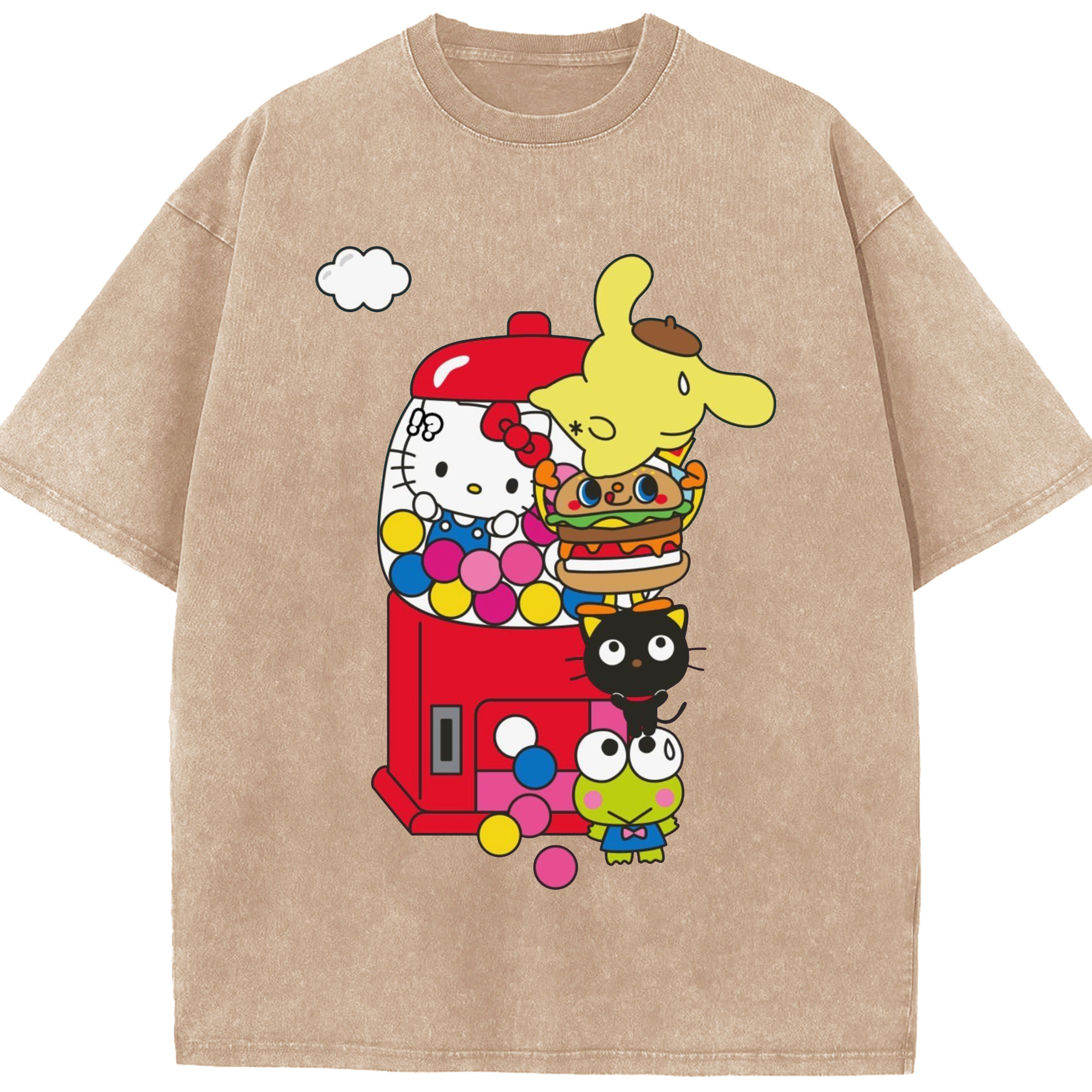 サンリオ - 綿100% ヴィンテージ風 半袖Tシャツ ・ フロントプリント ・ 柔らか肌触り ・ 通気性 快適 ・ スポーツ カジュアル 外出用