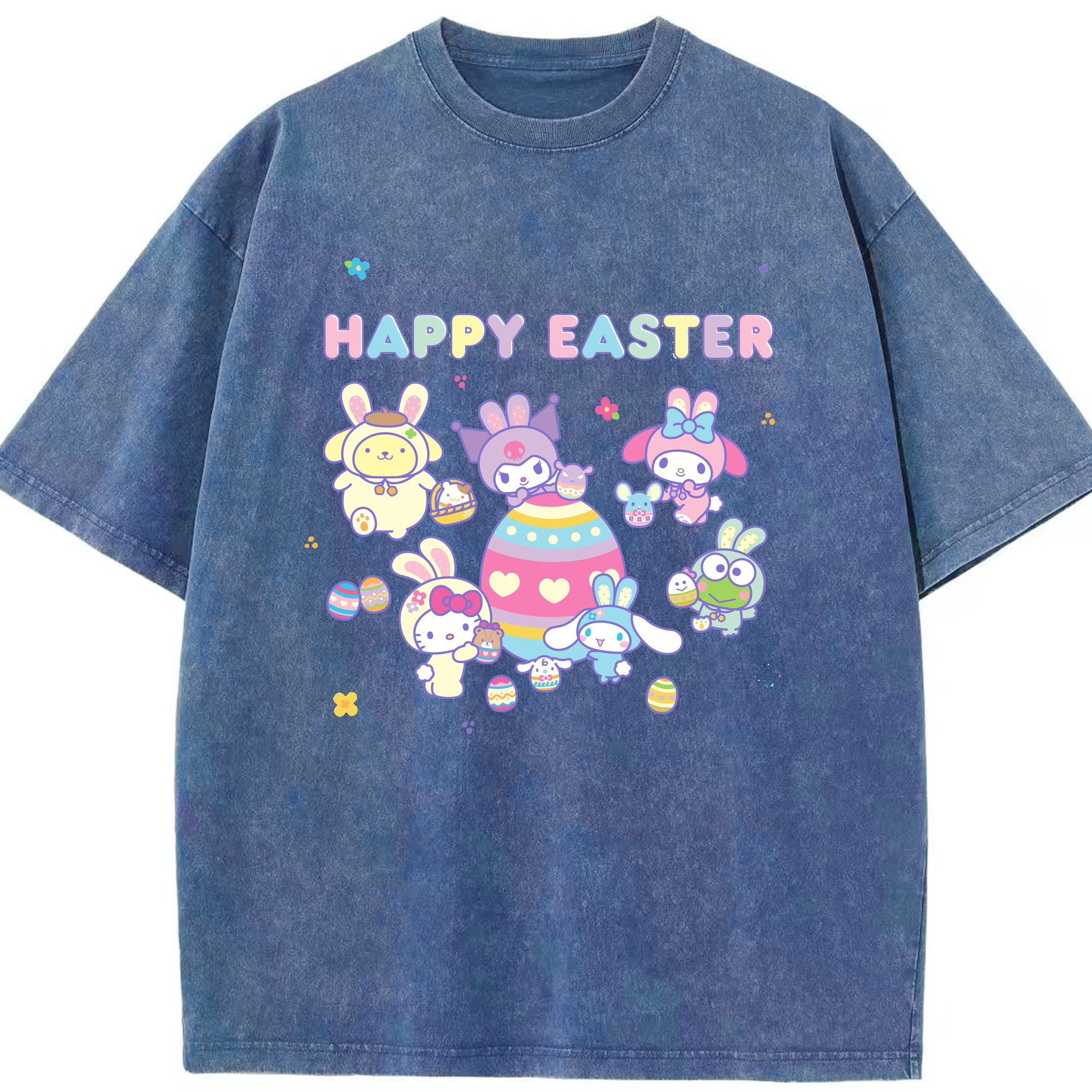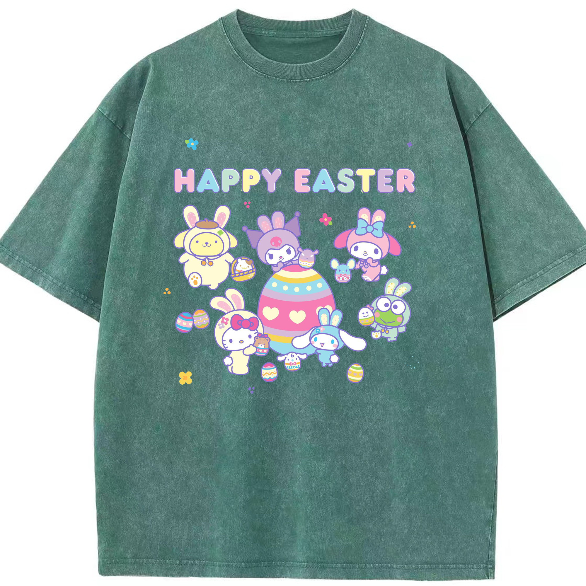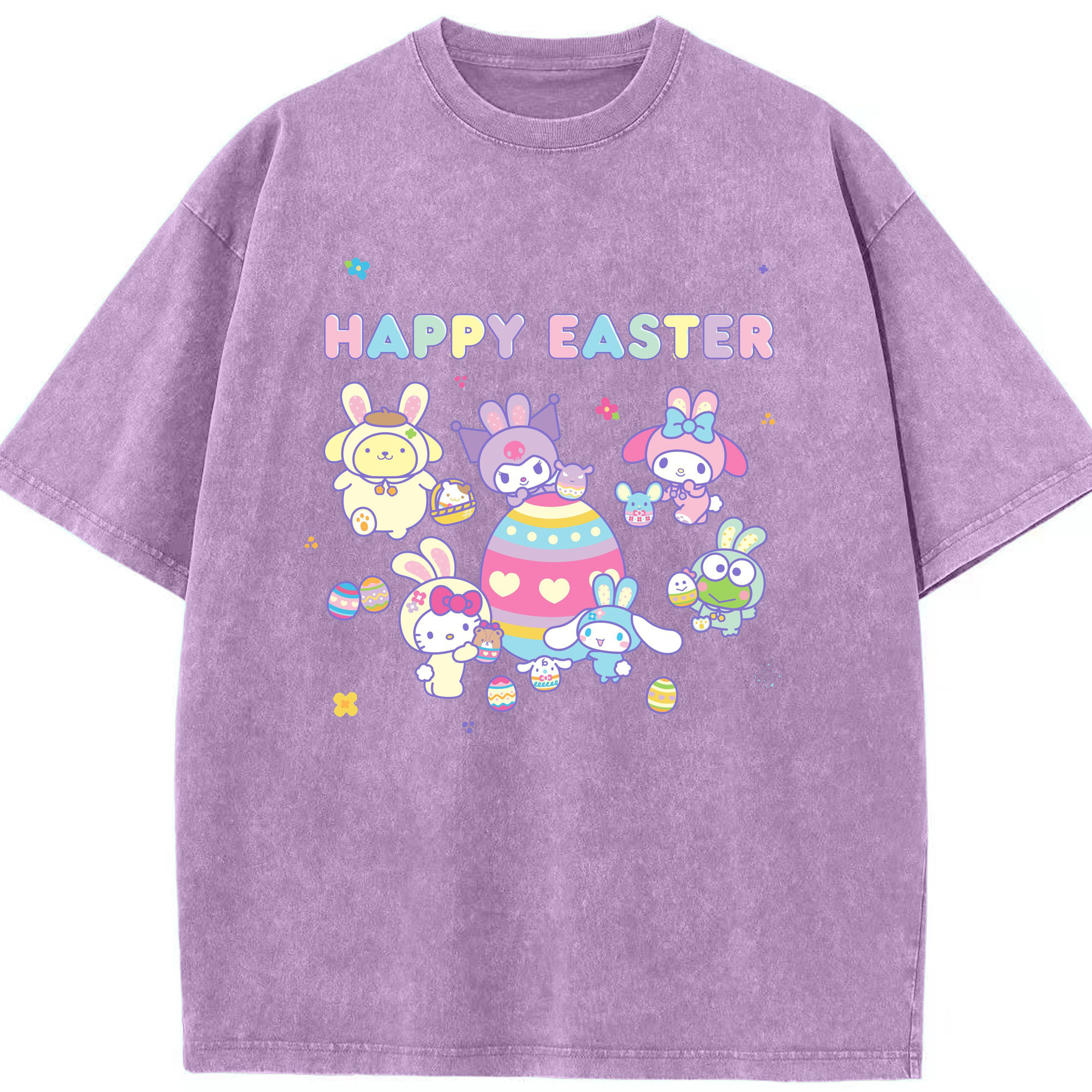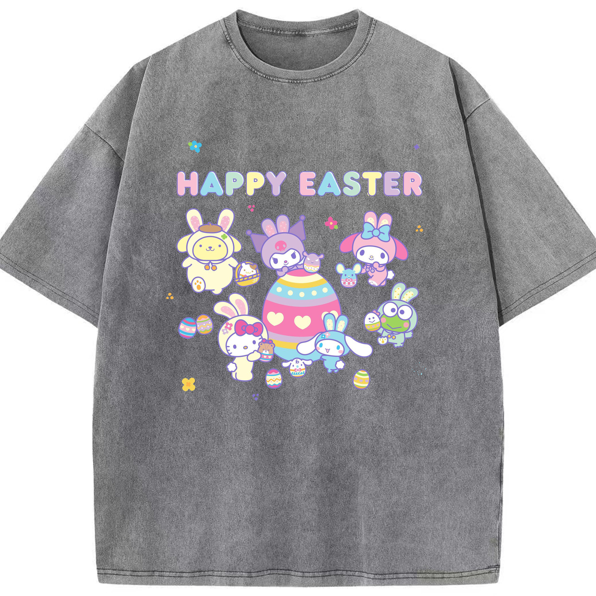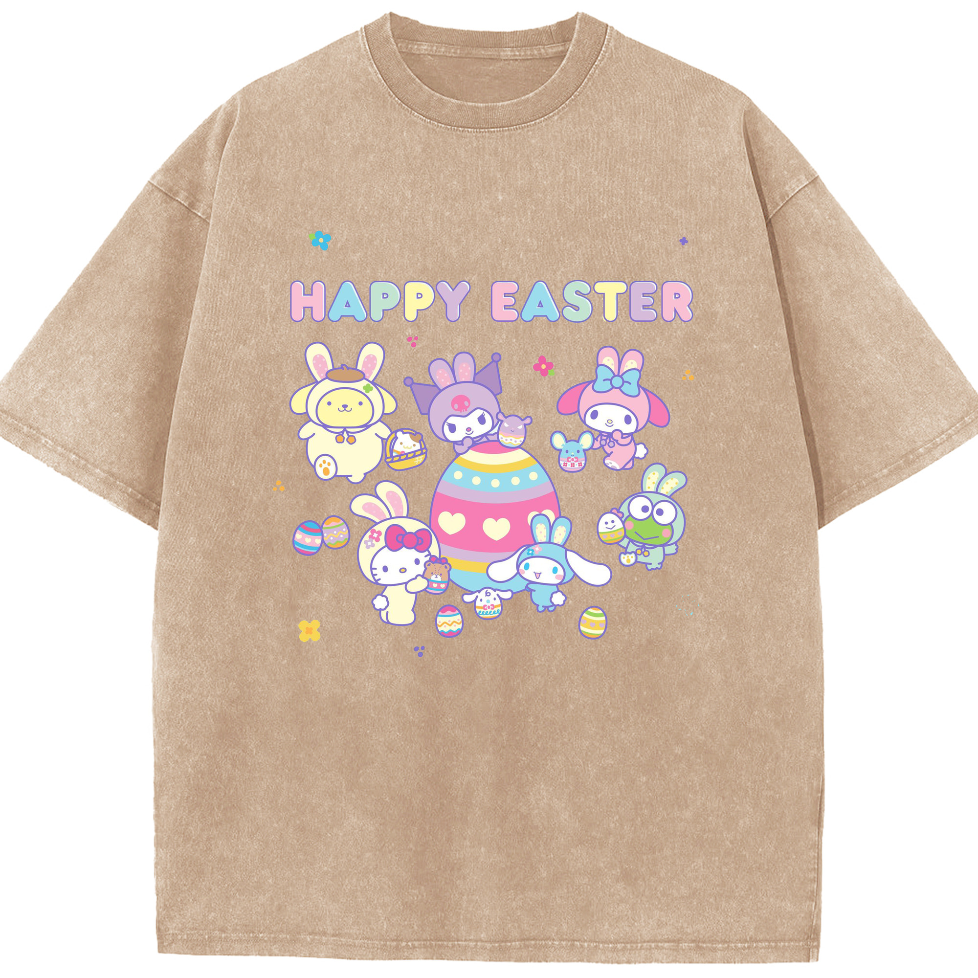 サンリオファミリー - 綿100% ヴィンテージ風 半袖Tシャツ ・ 背面プリント ・ 柔らか肌触り ・ 通気性 快適 ・ スポーツ カジュアル 外出用