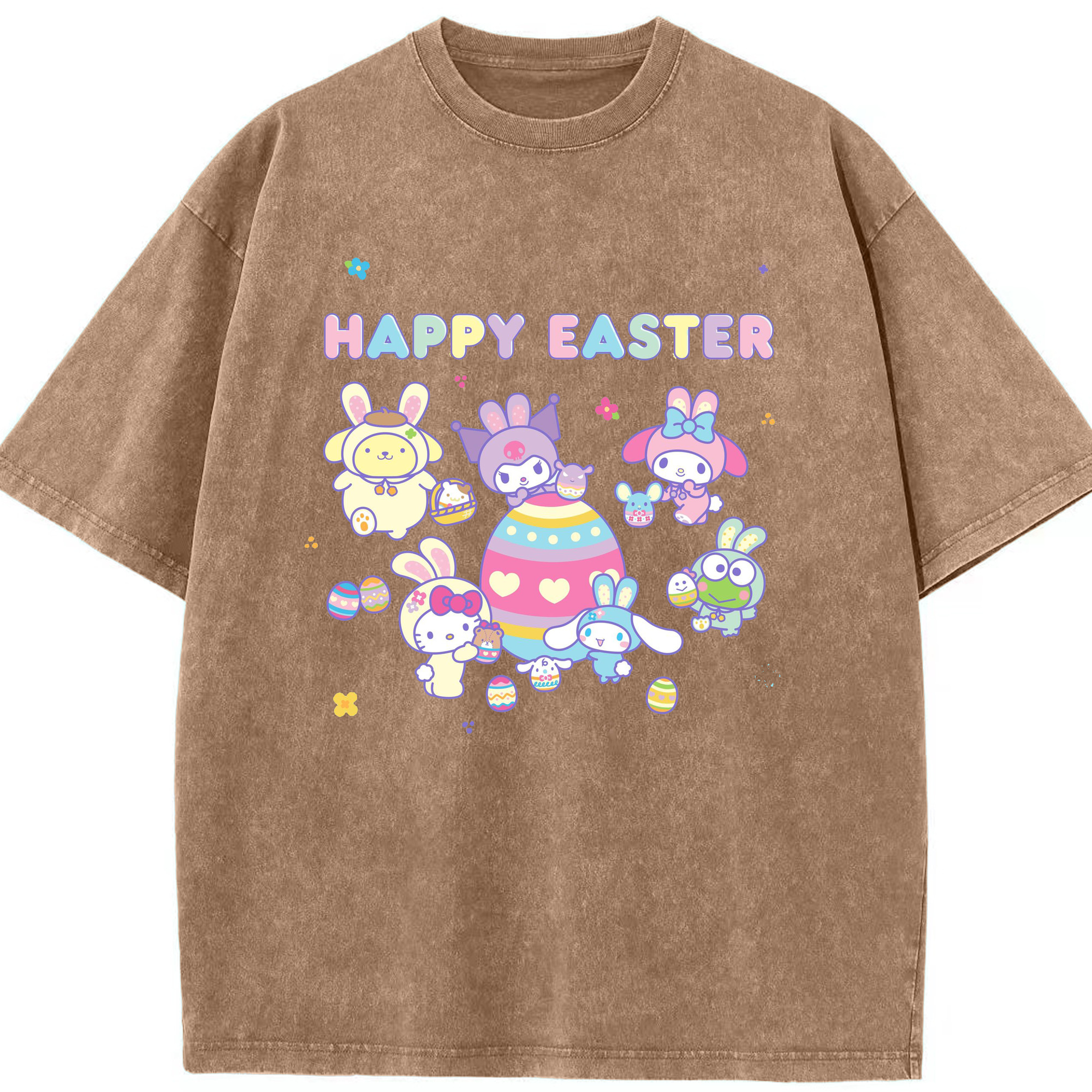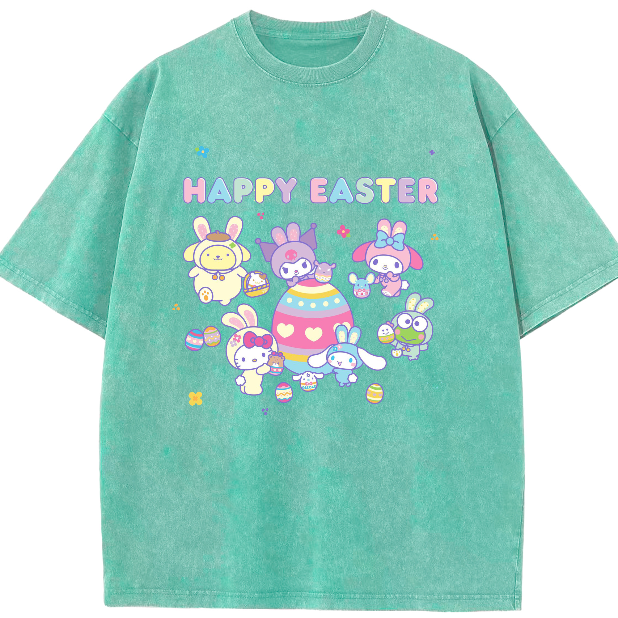 サンリオファミリー - 綿100% ヴィンテージ風 半袖Tシャツ ・ フロントプリント ・ 柔らか肌触り ・ 通気性 快適 ・ スポーツ カジュアル 外出用