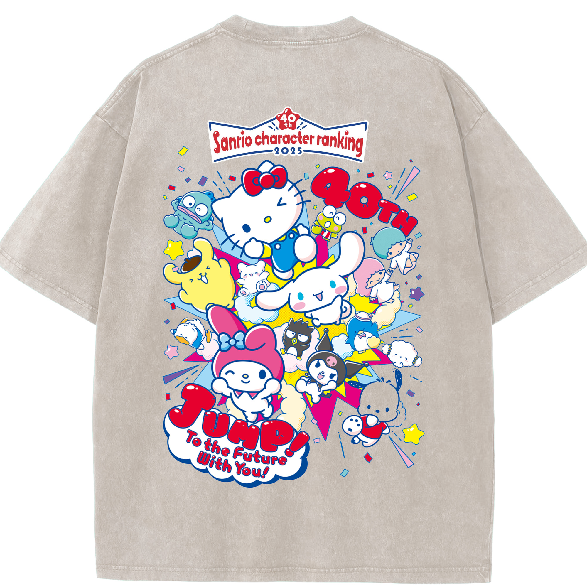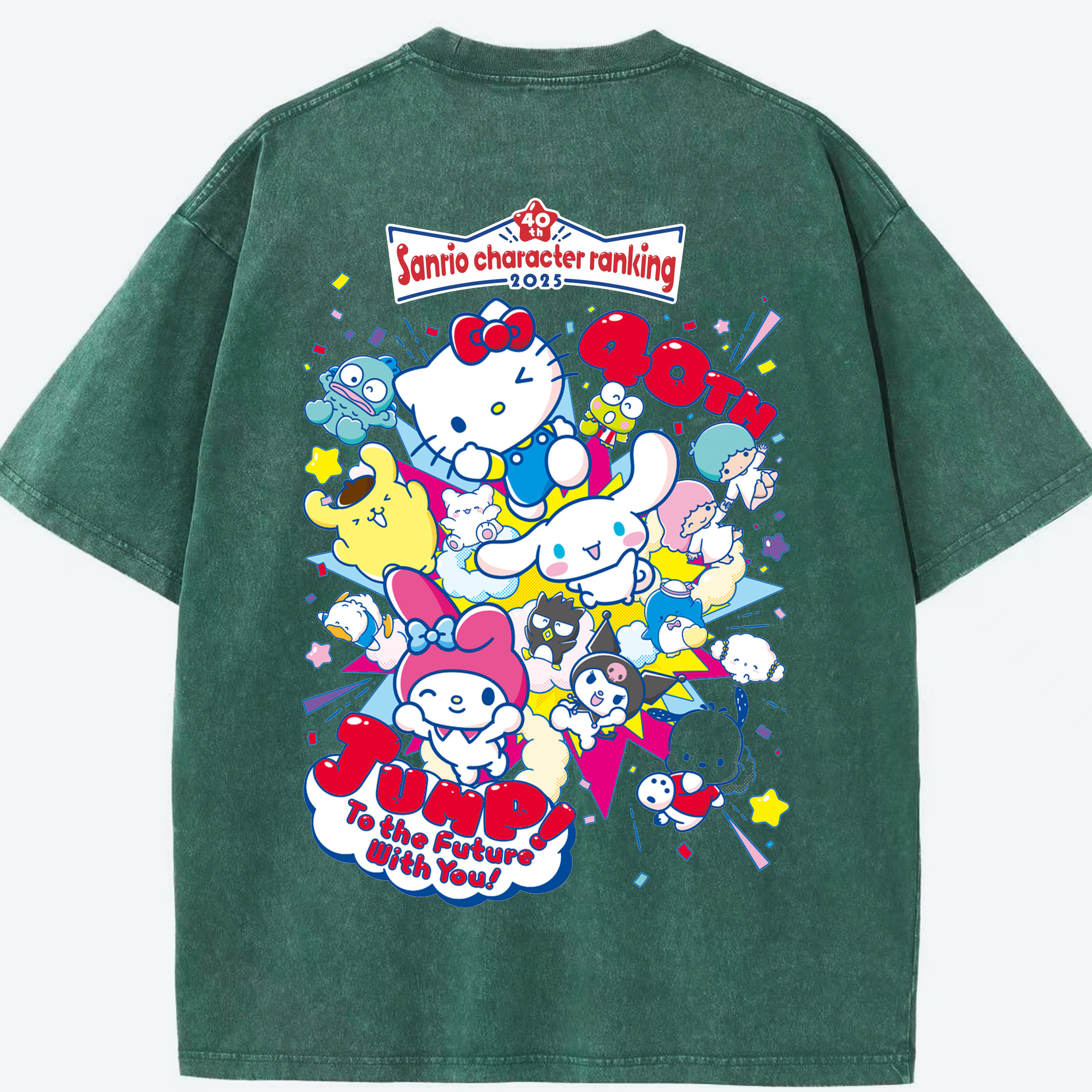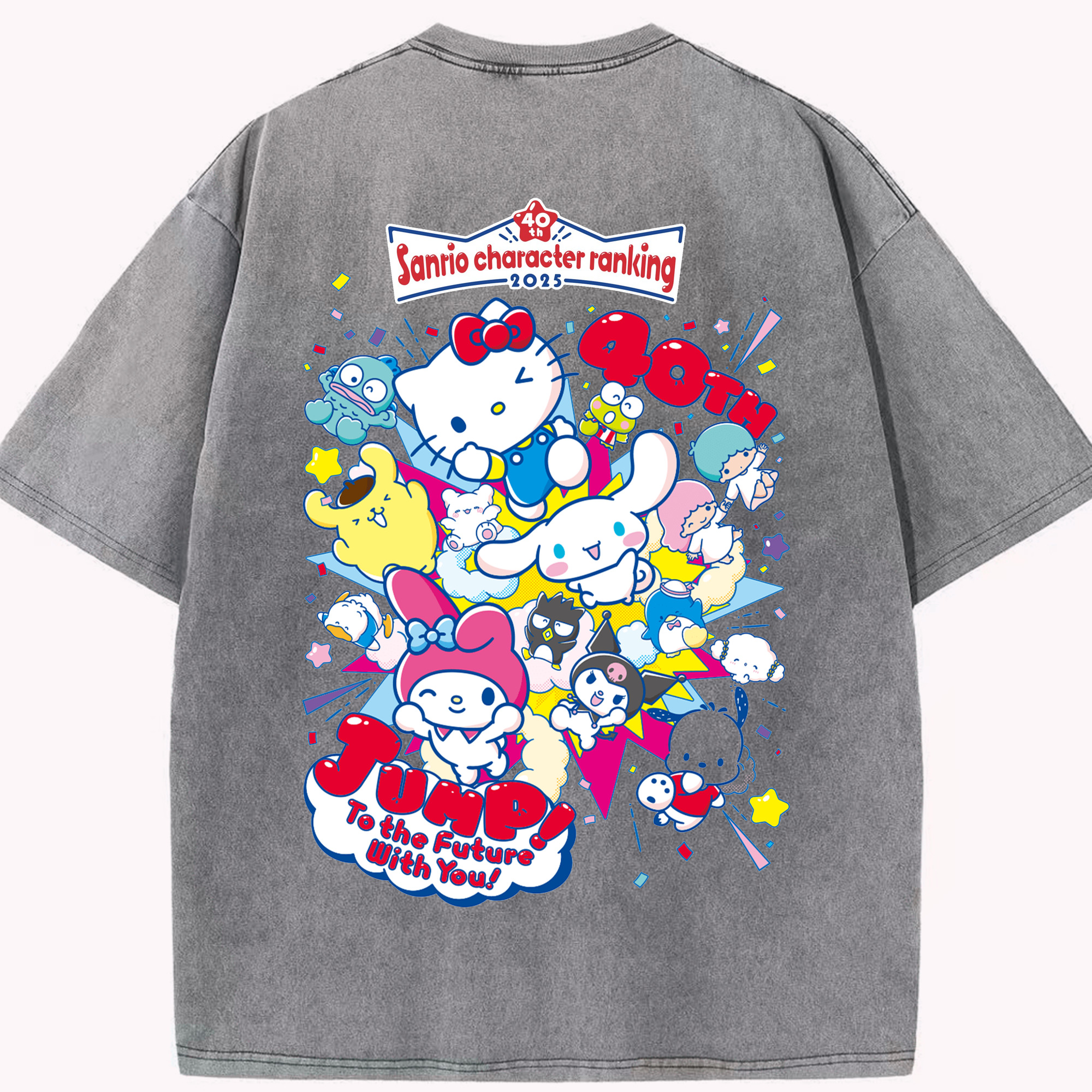 卒業シーズン×サンリオ - 綿100% ヴィンテージ風 半袖Tシャツ ・ 背面プリント ・ 柔らか肌触り ・ 通気性 快適 ・ スポーツ カジュアル 外出用