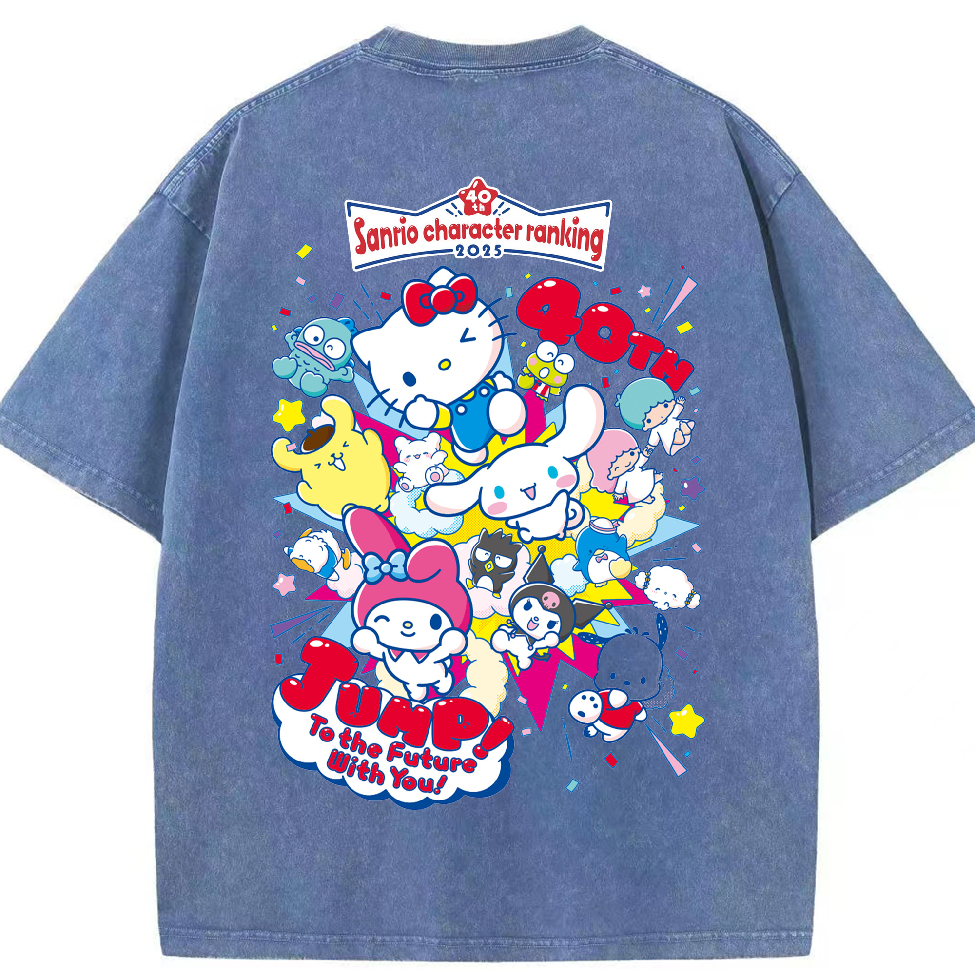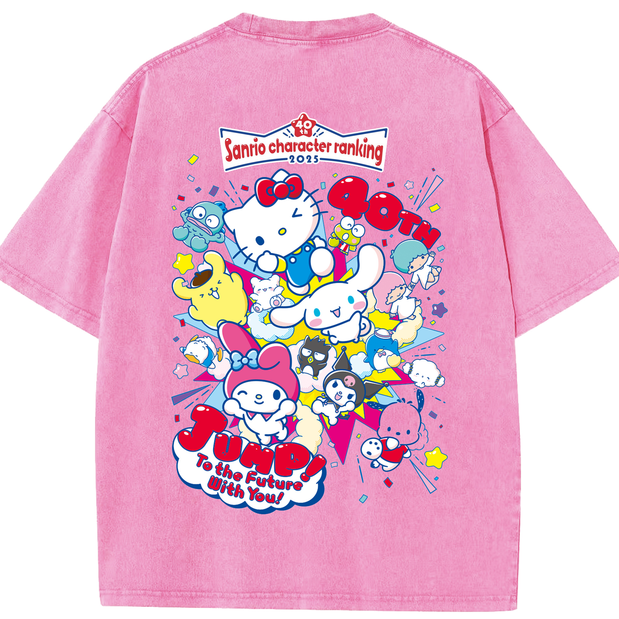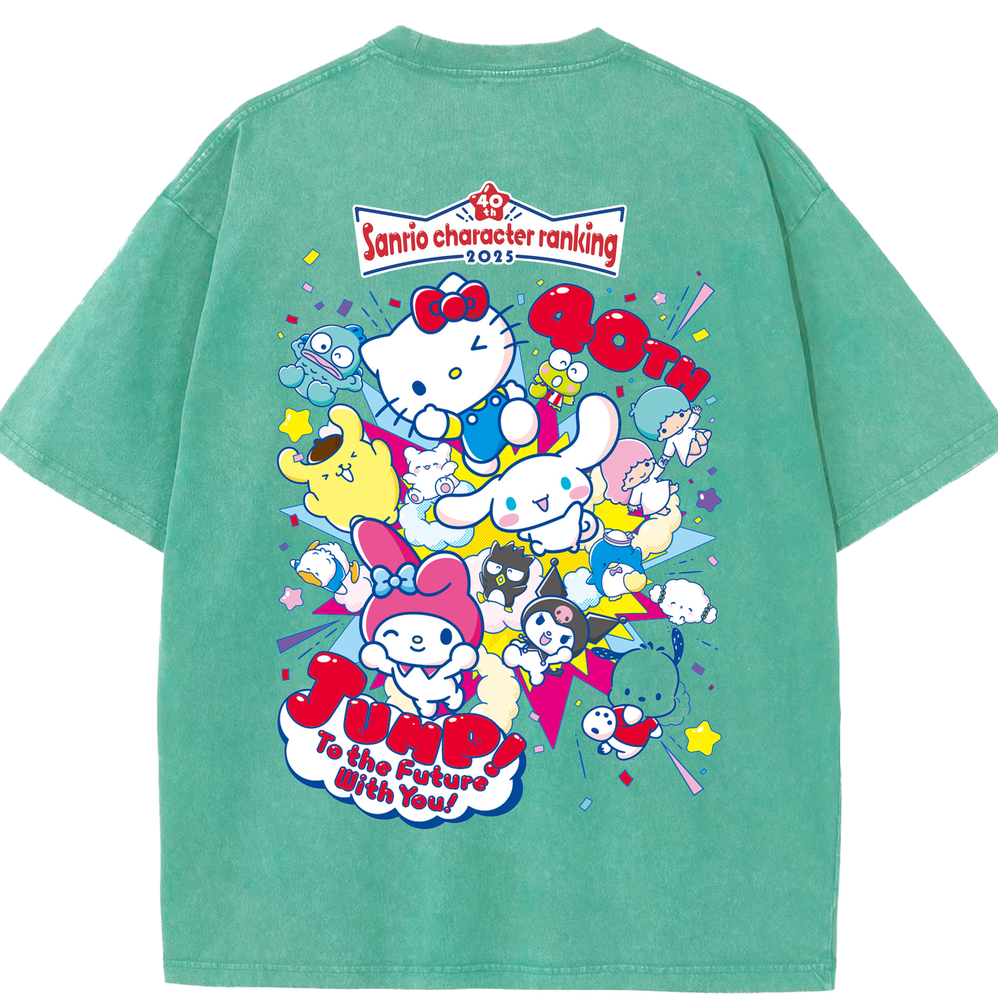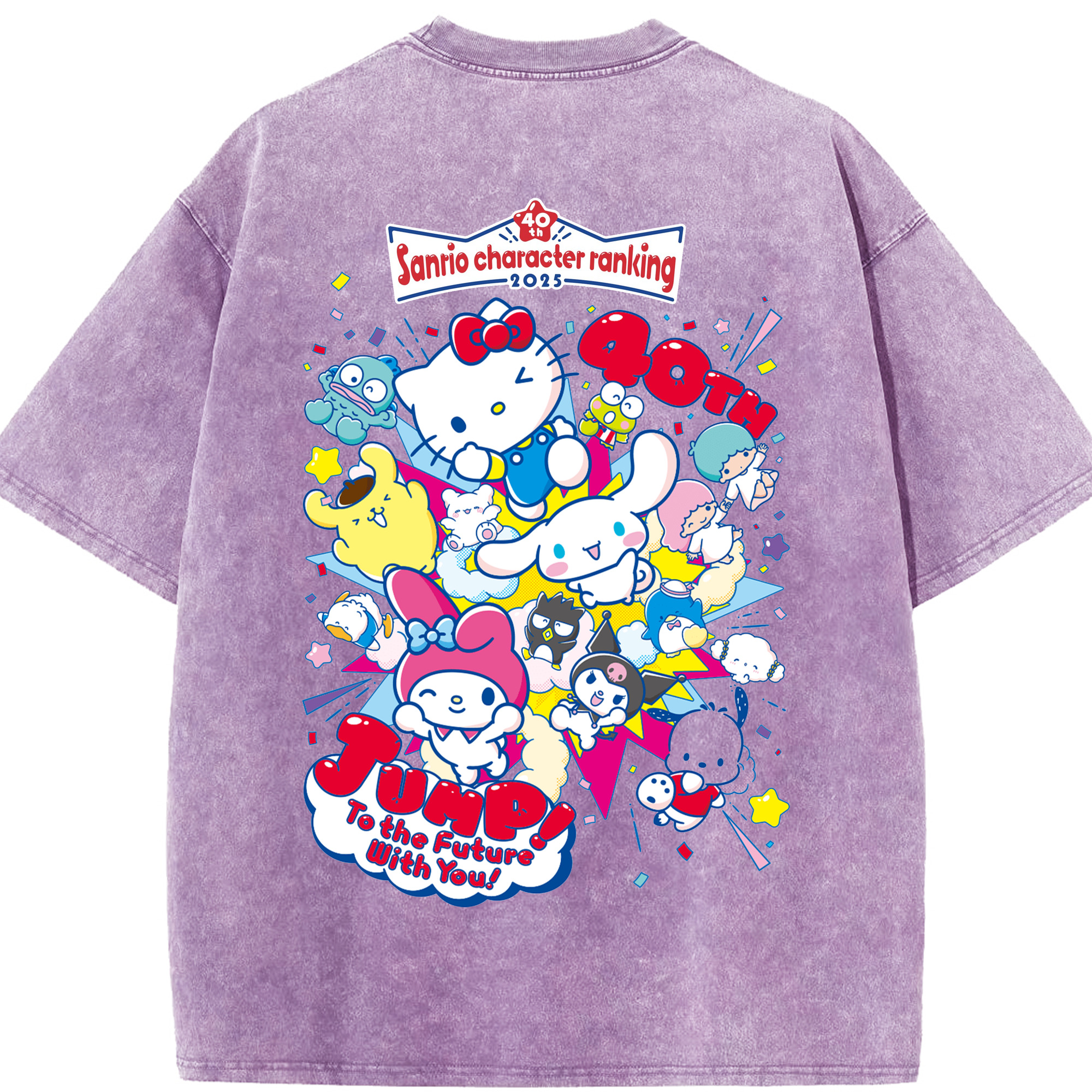 卒業シーズン×サンリオ - 綿100% ヴィンテージ風 半袖Tシャツ ・ 背面プリント ・ 柔らか肌触り ・ 通気性 快適 ・ スポーツ カジュアル 外出用