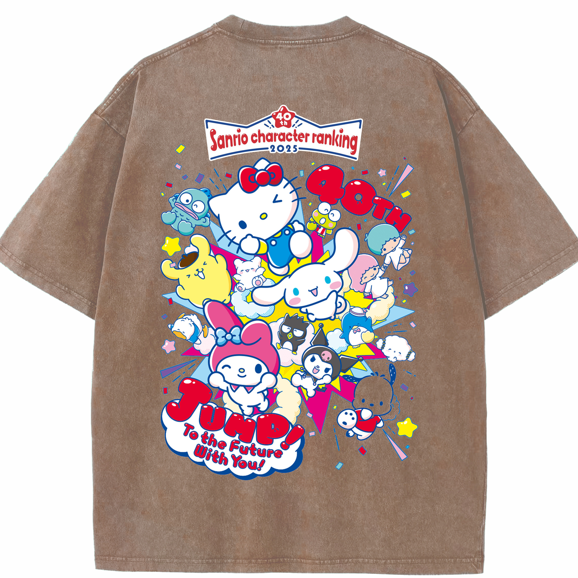 サンリオファミリー 2025年新作 - 綿100% ヴィンテージ風 半袖Tシャツ ・ フロントプリント ・ 柔らか肌触り ・ 通気性 快適 ・ スポーツ カジュアル 外出用
