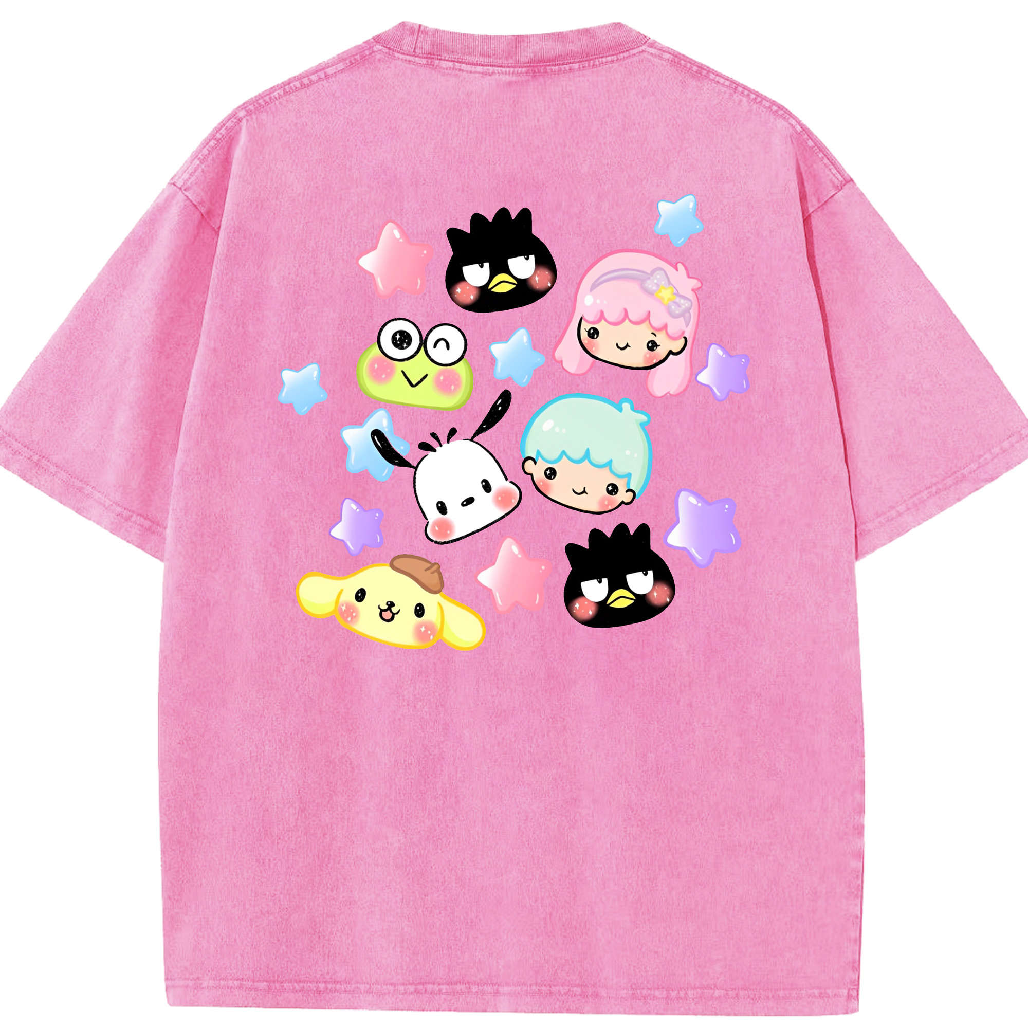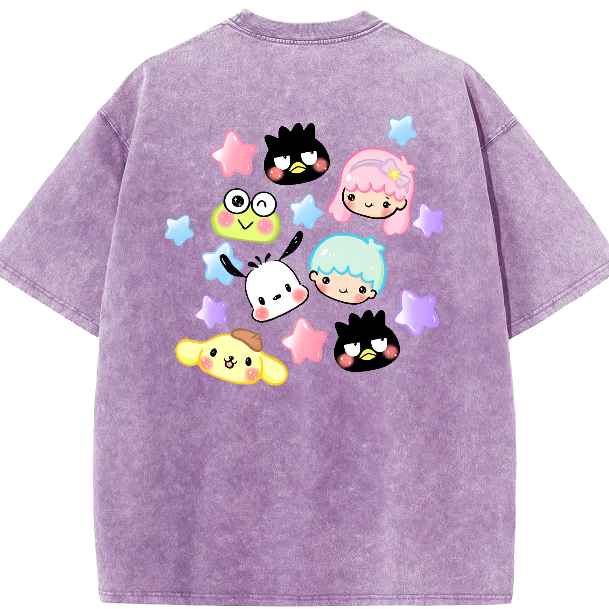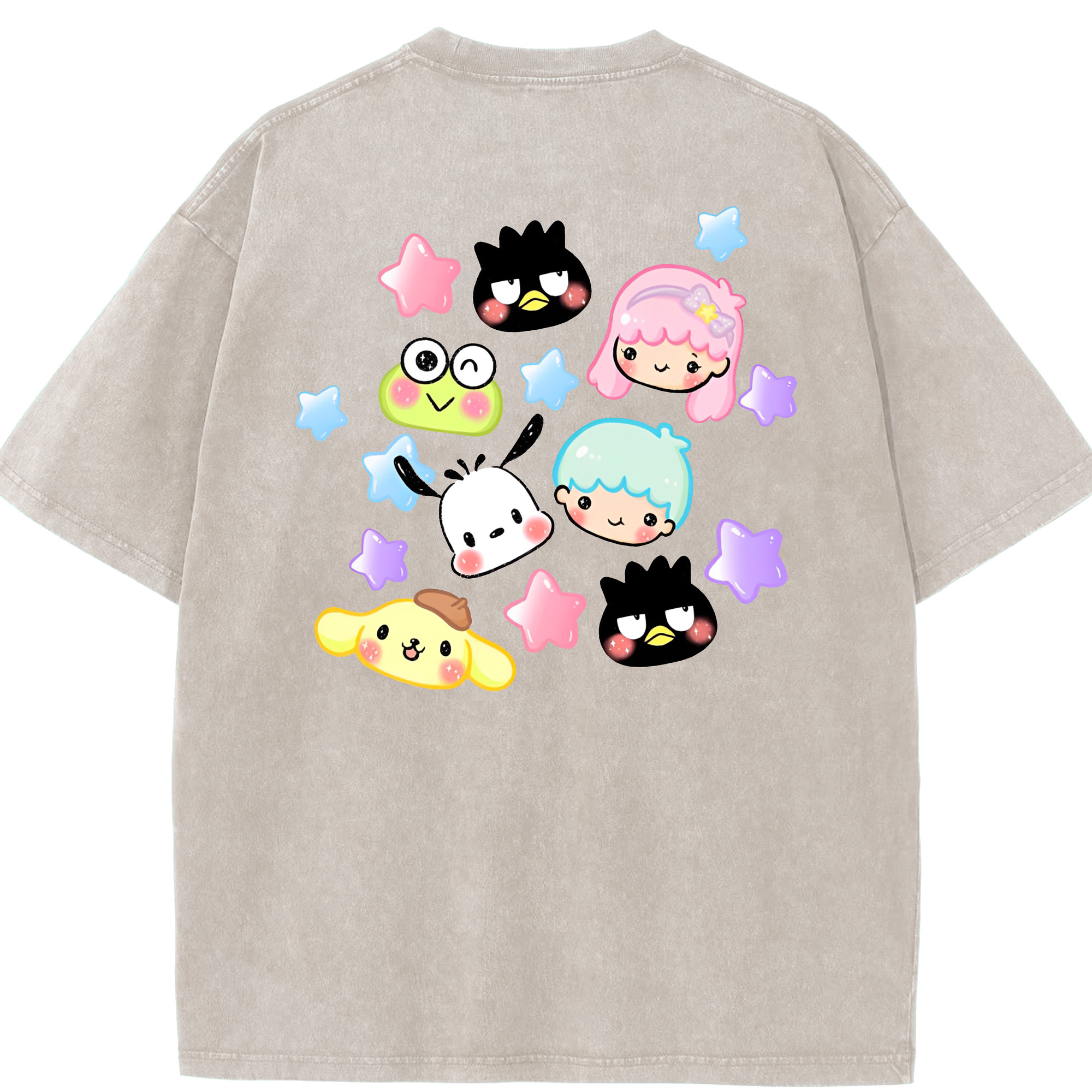 スイート系サンリオ - 綿100% ヴィンテージ風 半袖Tシャツ ・ 背面プリント ・ 柔らか肌触り ・ 通気性 快適 ・ スポーツ カジュアル 外出用